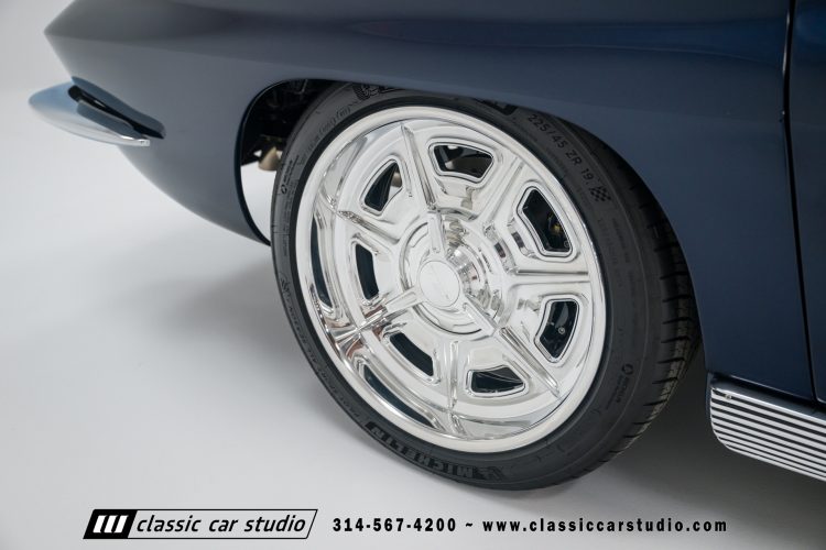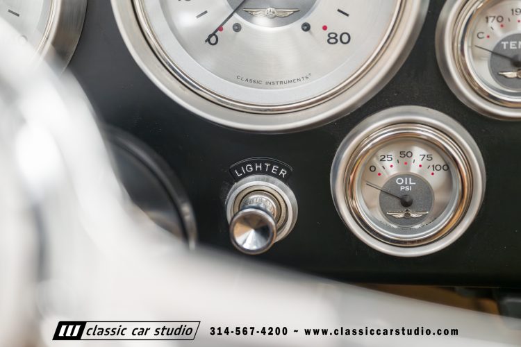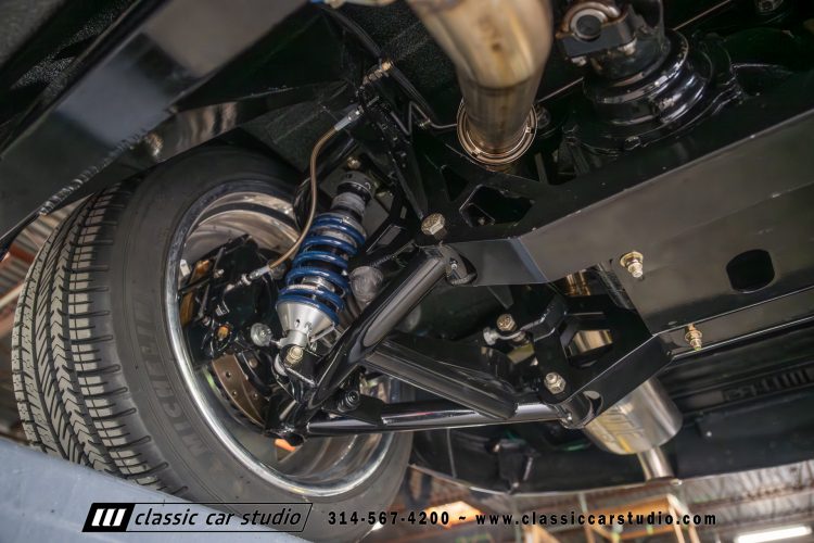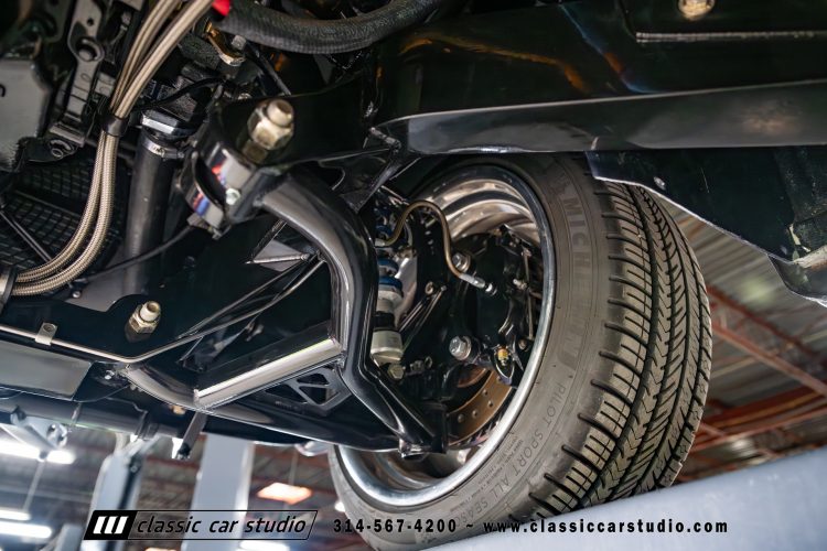 The 18 & 19″ Billet Specialties wheels are mounted with 215/45 front and 225/45 rear Michelin Pilot Sport All-Season tires. The car rides on a Roadster Shop Fast Track chassis and features Penske adjustable coilovers and Wilwood disc brakes at all four corners. Additional equipment includes a Wilwood brake master cylinder, power steering, and tubular control arms.