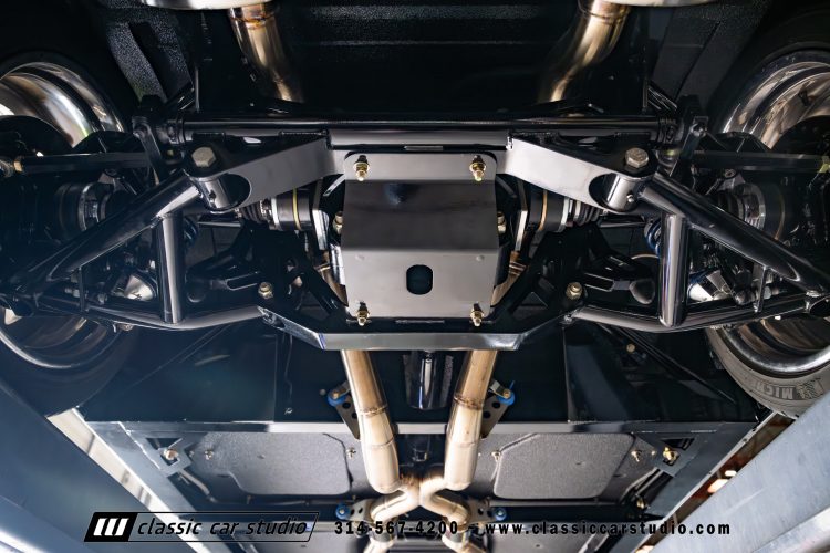 Power is sent to the rear wheels through a 4L70-E four-speed automatic transmission and a Positraction differential. A TIG-welded stainless steel exhaust system with Borla mufflers is fitted.