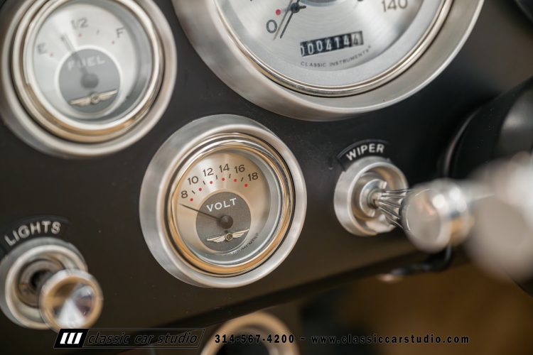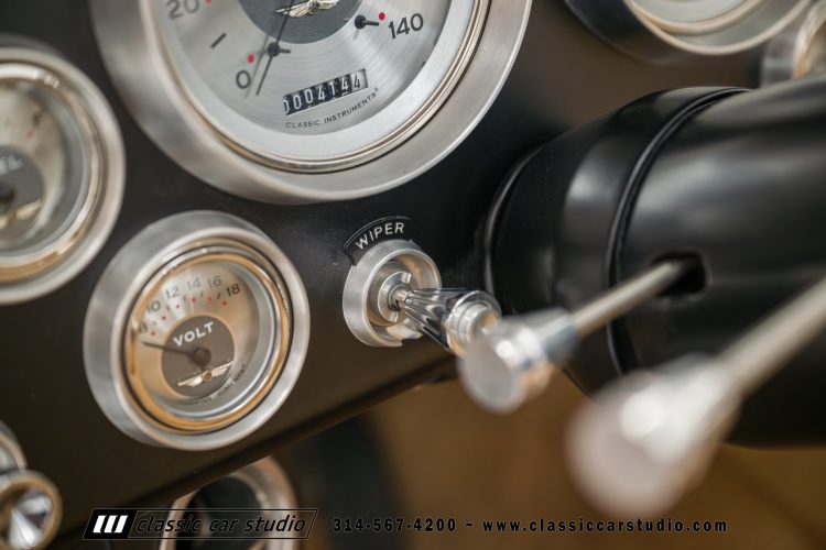 A Billet Specialties steering wheel frames Classic Instruments instrumentation consisting of a 140-mph speedometer, a tachometer, and gauges for fuel level, voltage, oil pressure, and coolant temperature. The five-digit odometer shows 473 miles. Total mileage is unknown.