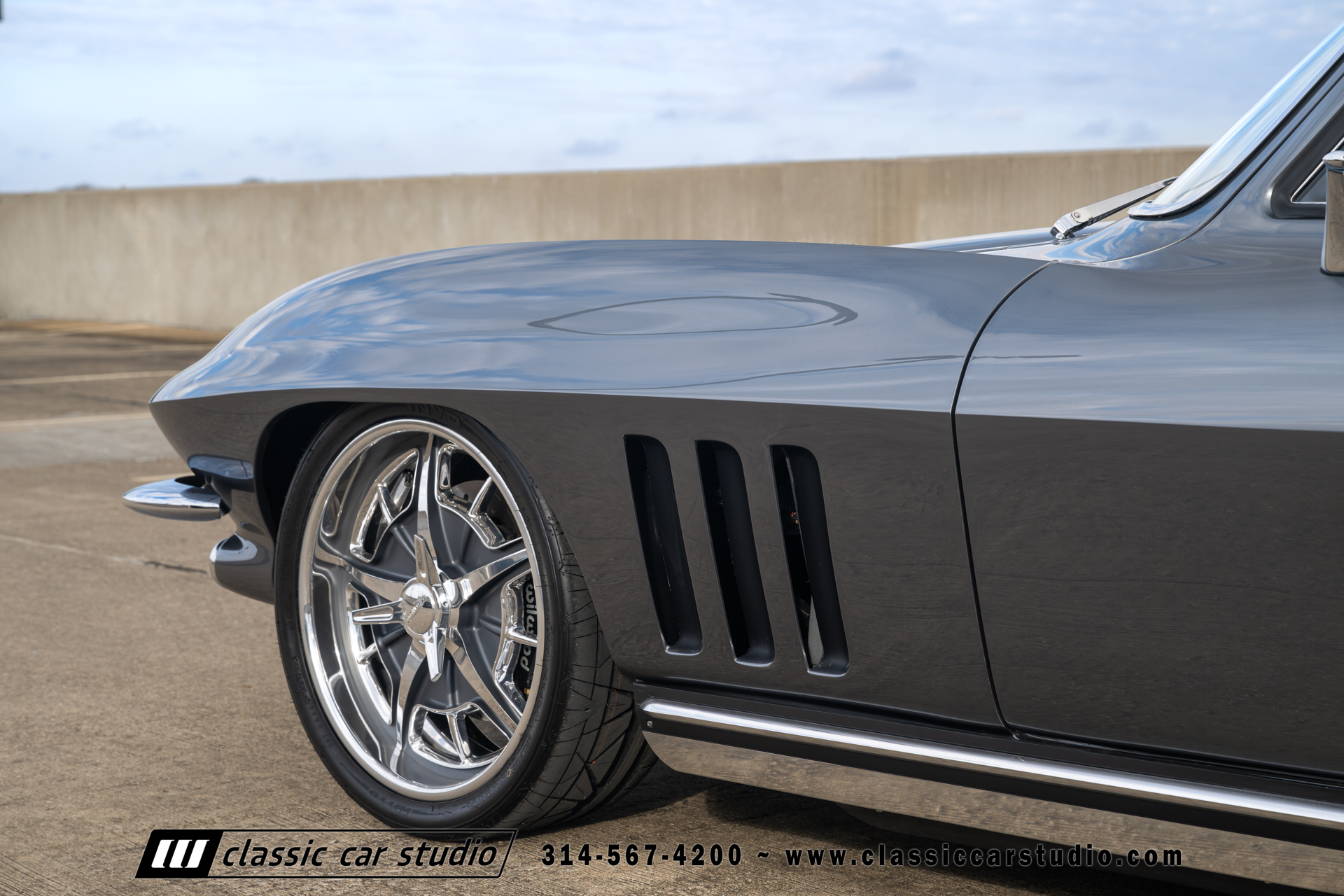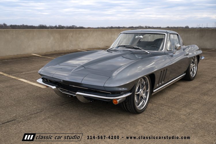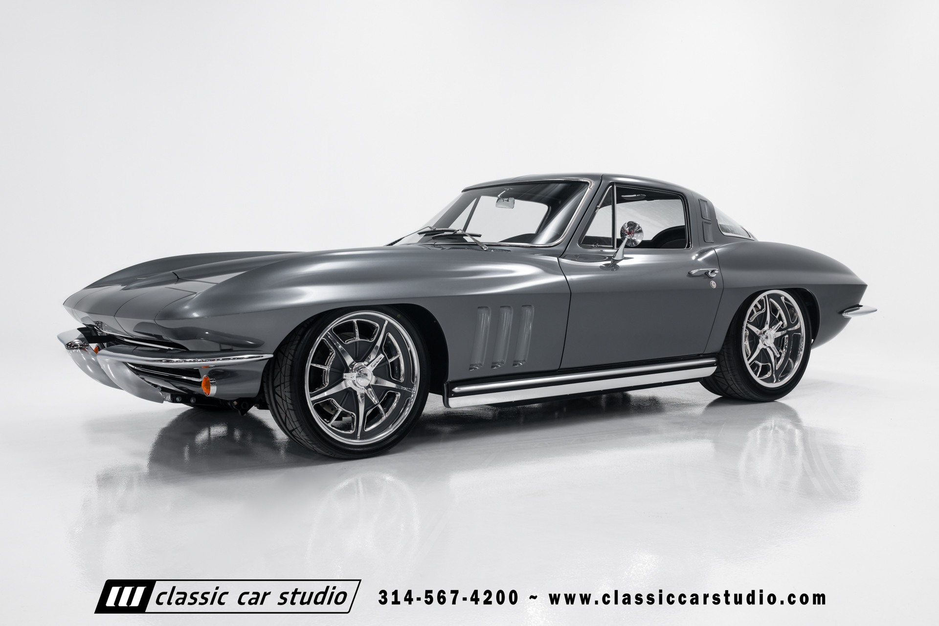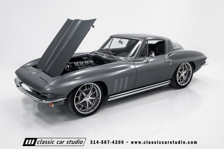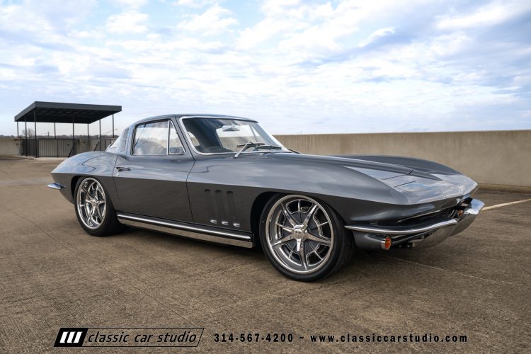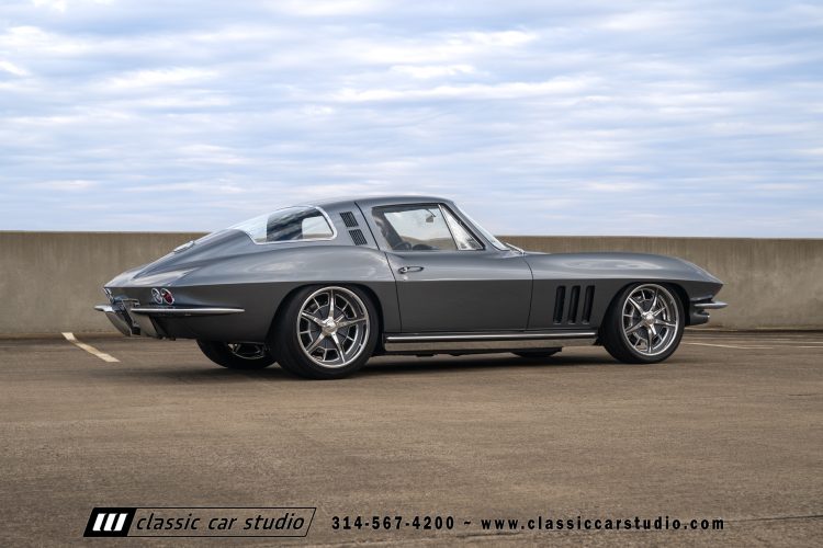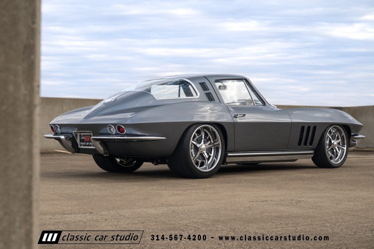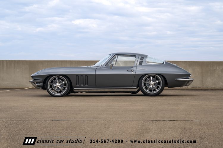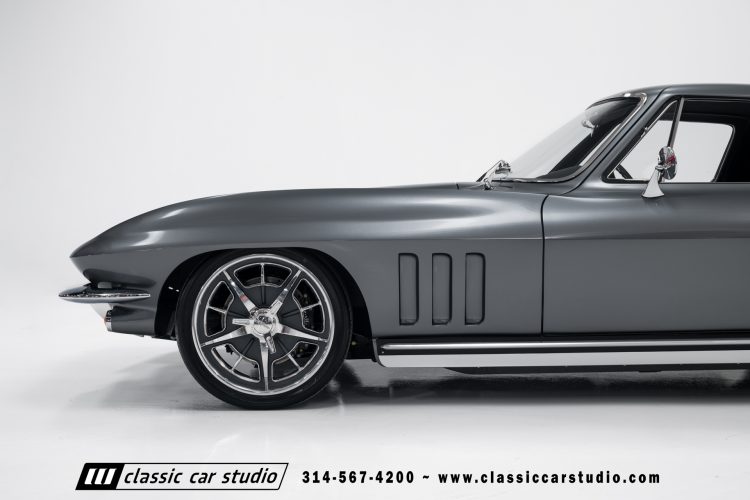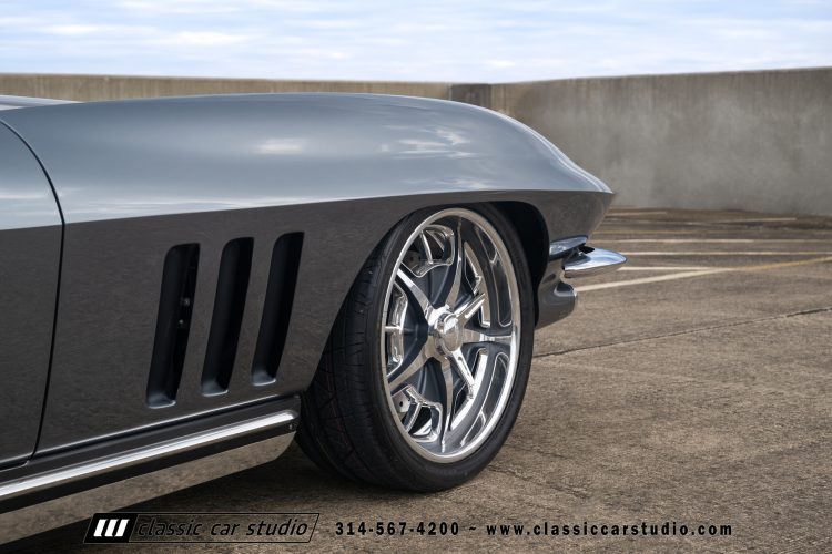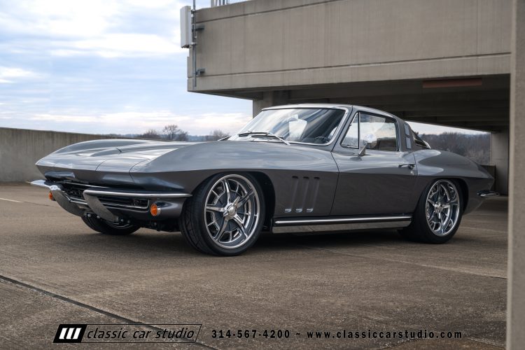 This 1965 Chevrolet Corvette coupe was acquired by the current owner in 2020 and was the subject of a custom build at Classic Car Studio of Brentwood, Missouri. A 6.2-liter LS3 V8 engine was installed along with a 4L75E four-speed automatic transmission, and the body was refinished in gray before being mounted to a Roadster Shop Fast Track IRS chassis with late-model Corvette suspension geometry, Penske Racing coilovers, and 19″ Billet Specialties wheels fitted over Wilwood disc brakes. Inside, the bucket seats, dashboard, and 3D-printed center console are trimmed in black Relicate leather upholstery and joined by a Vintage Air climate control system, sound insulation, an American Autowire harness, square-weave carpeting, and Classic Instruments gauges… (read full write up on bringatrailer.com)