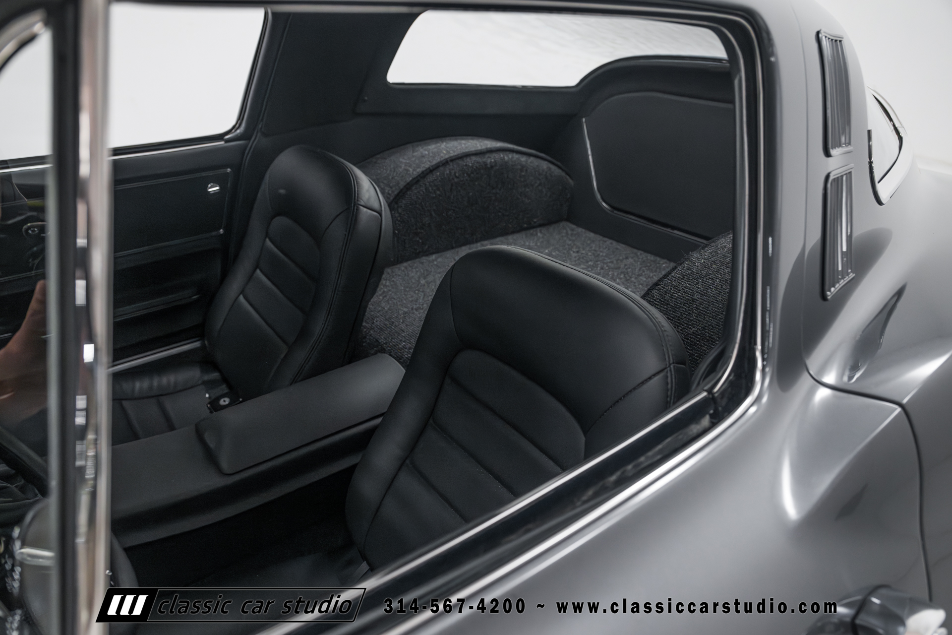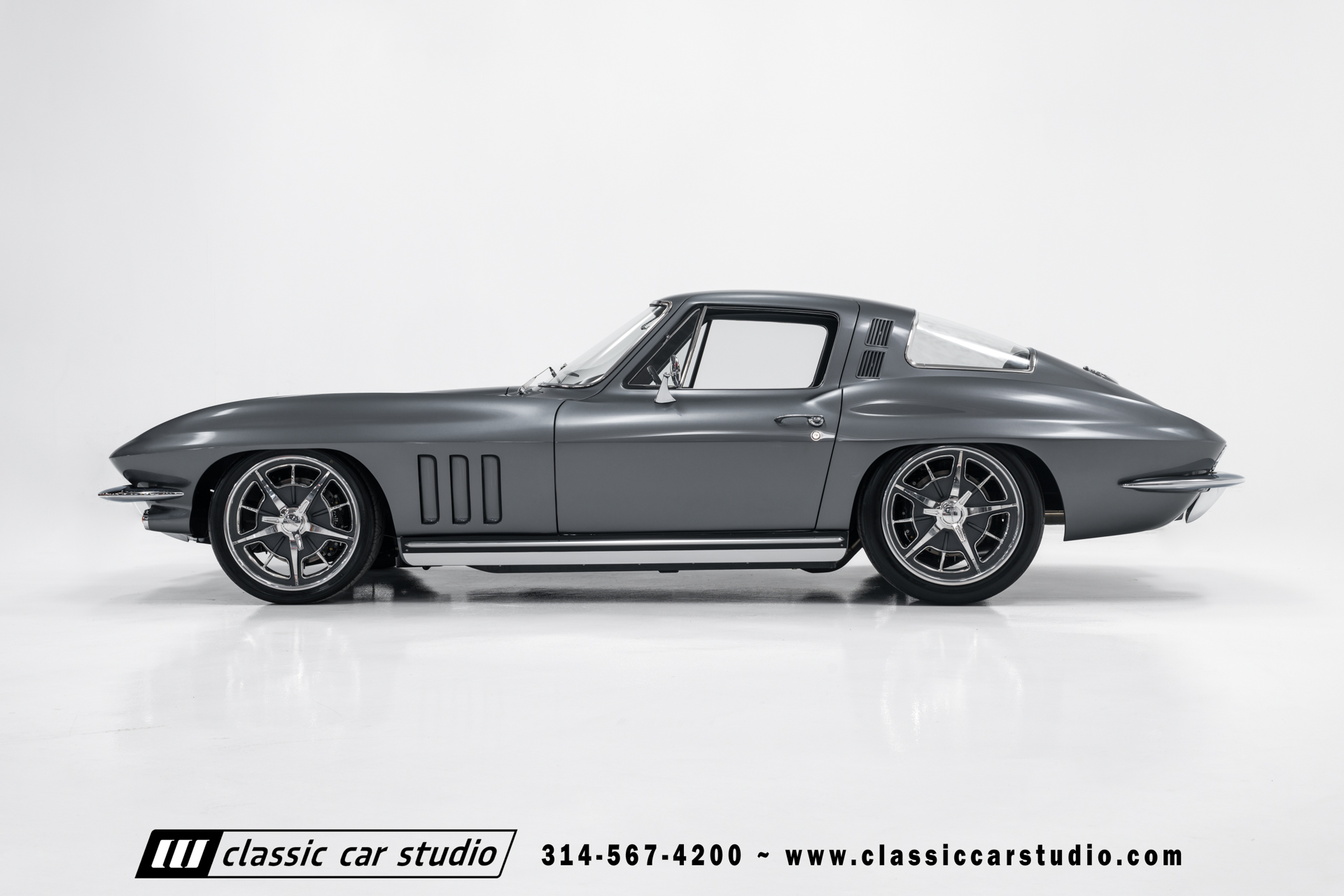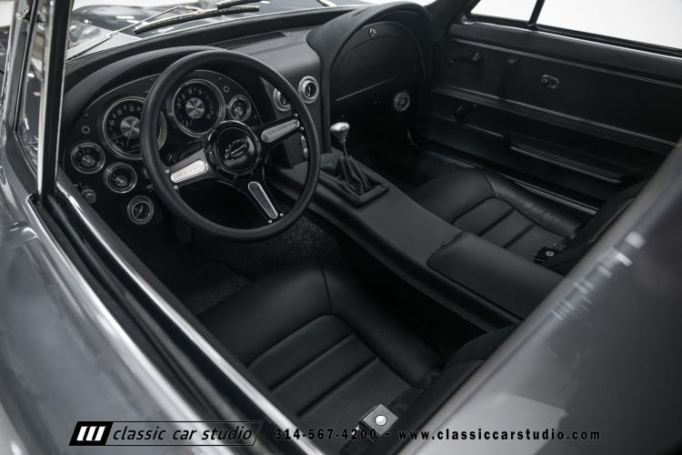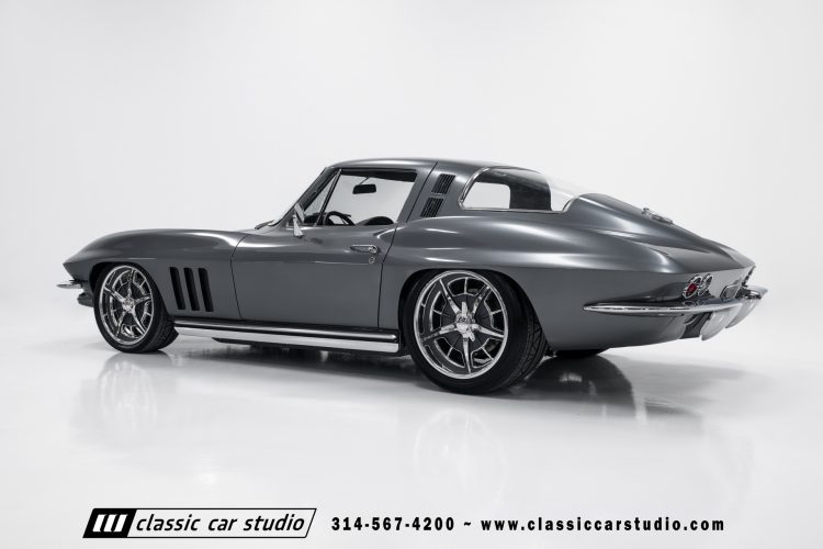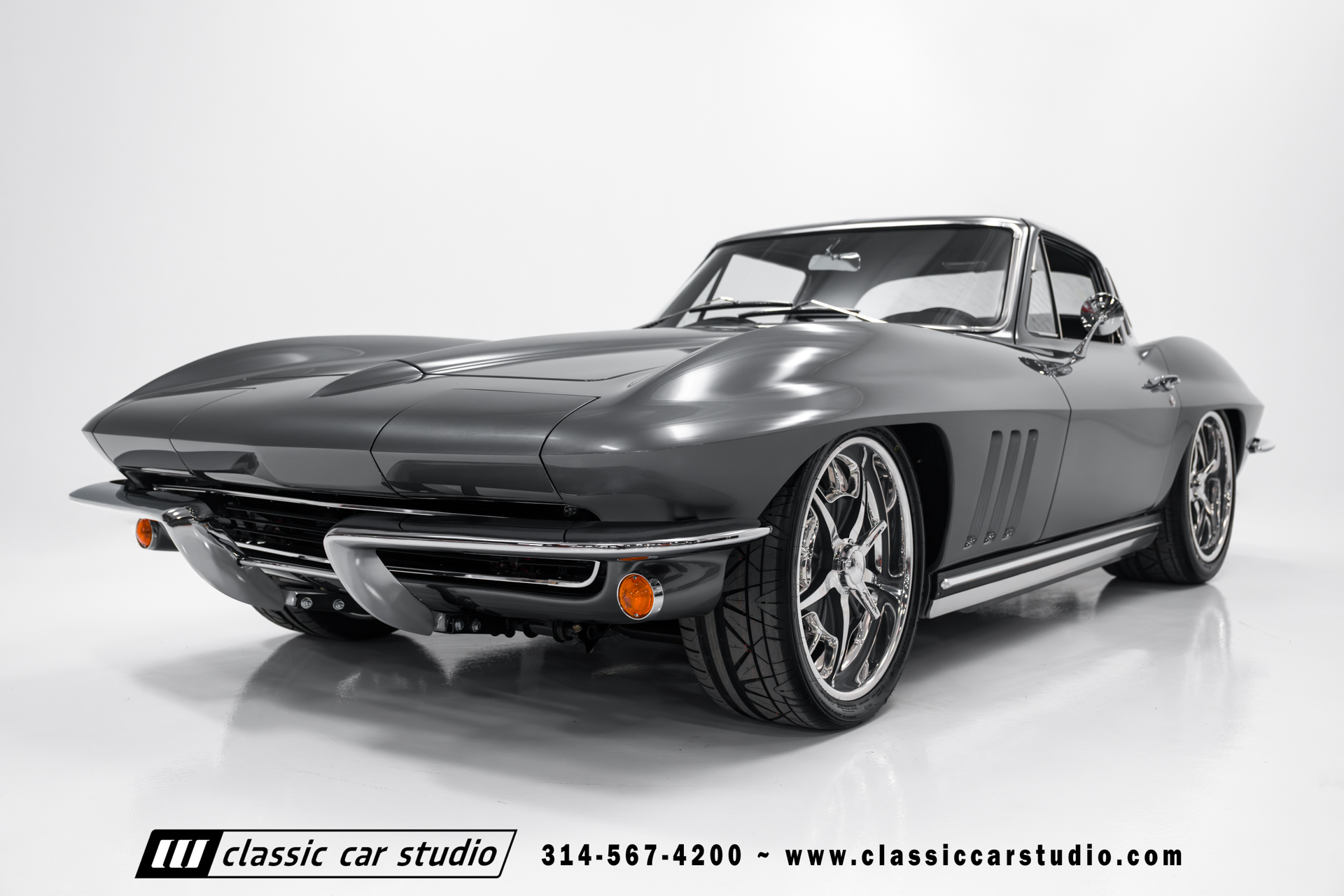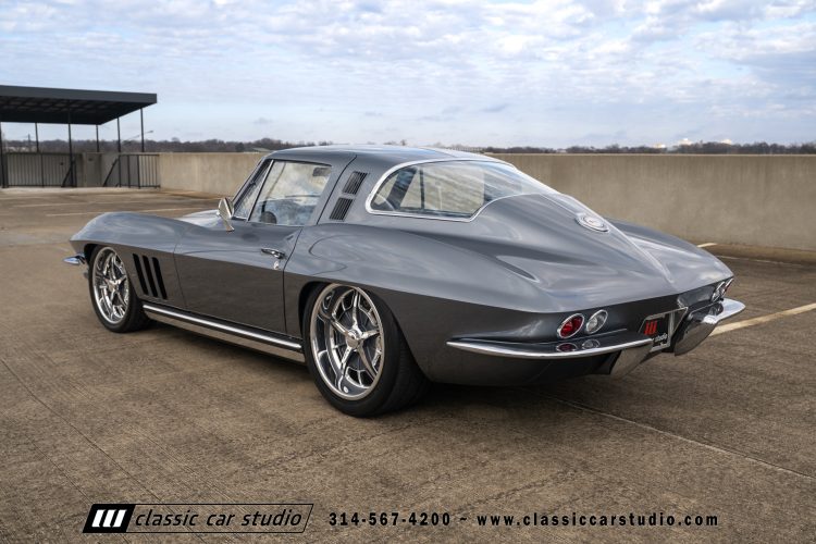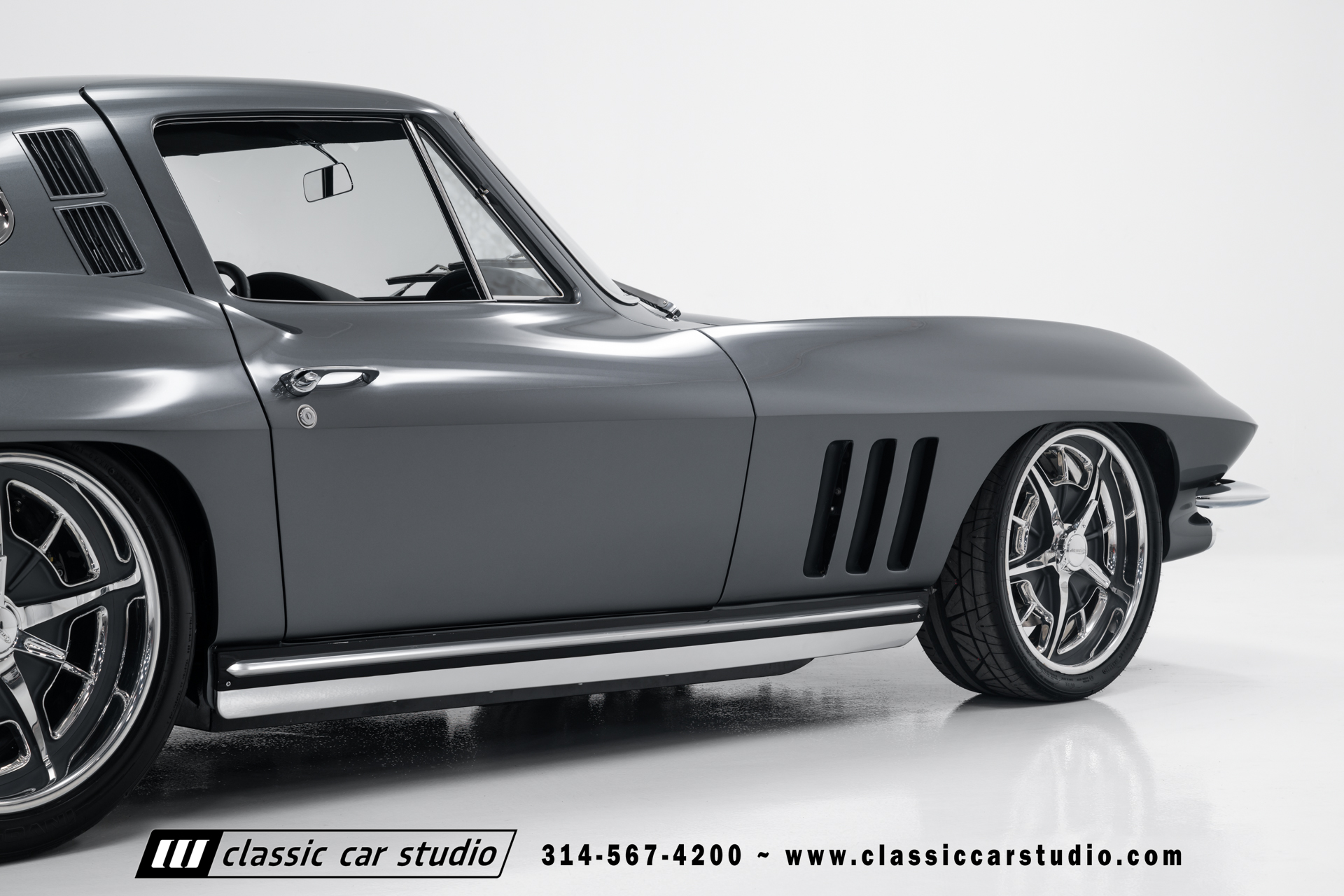 This 1965 Chevrolet Corvette coupe was acquired by the current owner in 2020 and was the subject of a custom build at Classic Car Studio of Brentwood, Missouri. A 6.2-liter LS3 V8 engine was installed along with a 4L75E four-speed automatic transmission, and the body was refinished in gray before being mounted to a Roadster Shop Fast Track IRS chassis with late-model Corvette suspension geometry, Penske Racing coilovers, and 19″ Billet Specialties wheels fitted over Wilwood disc brakes. Inside, the bucket seats, dashboard, and 3D-printed center console are trimmed in black Relicate leather upholstery and joined by a Vintage Air climate control system, sound insulation, an American Autowire harness, square-weave carpeting, and Classic Instruments gauges… (read full write up on bringatrailer.com)