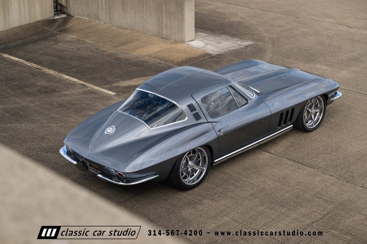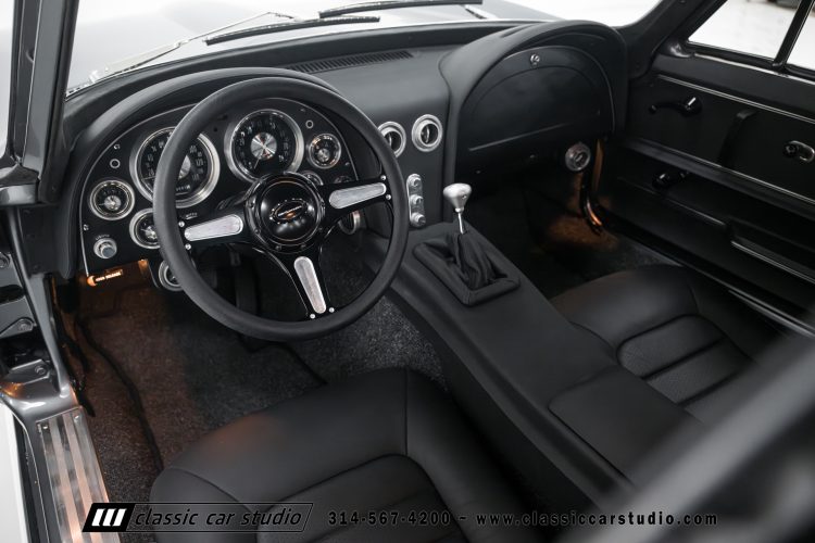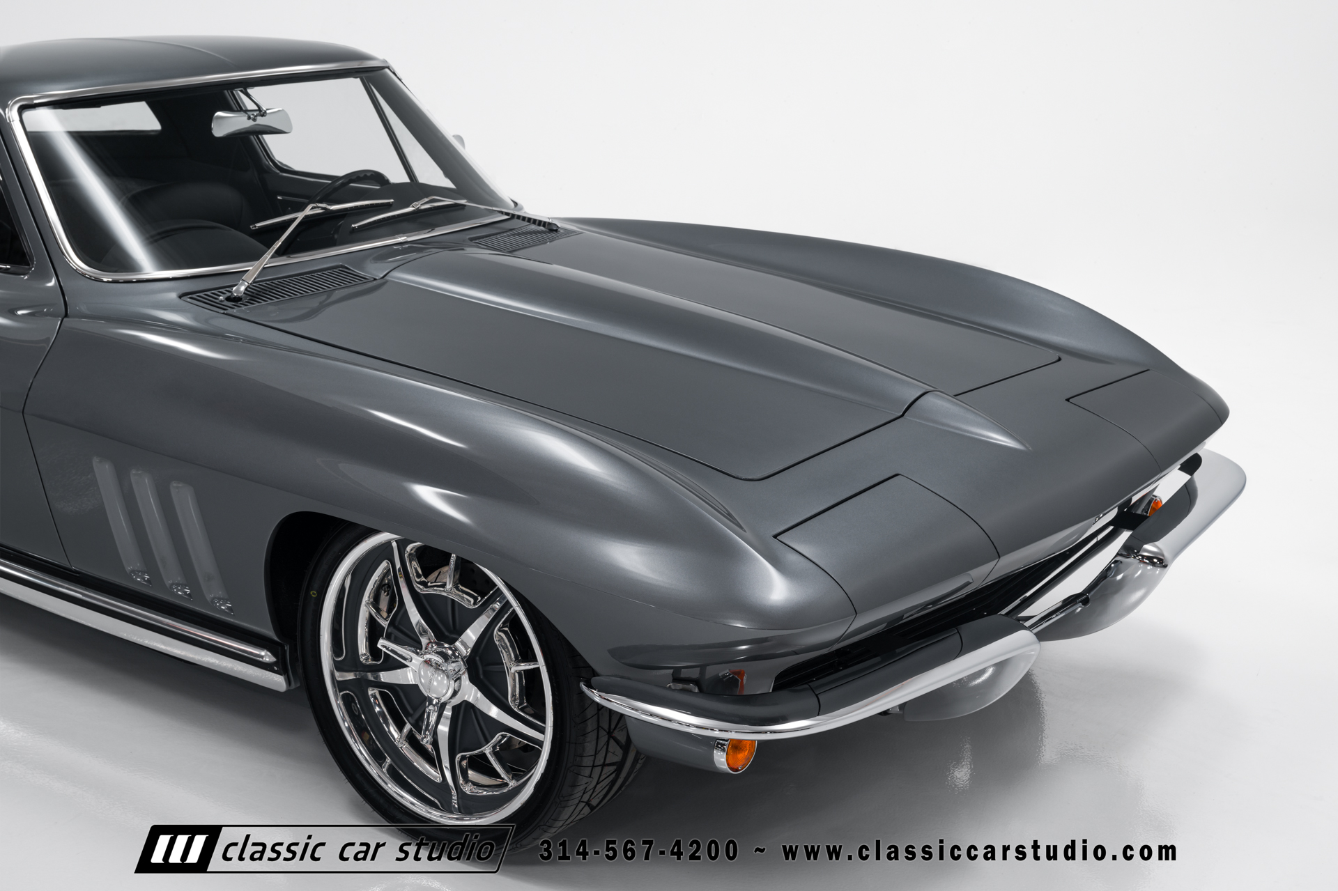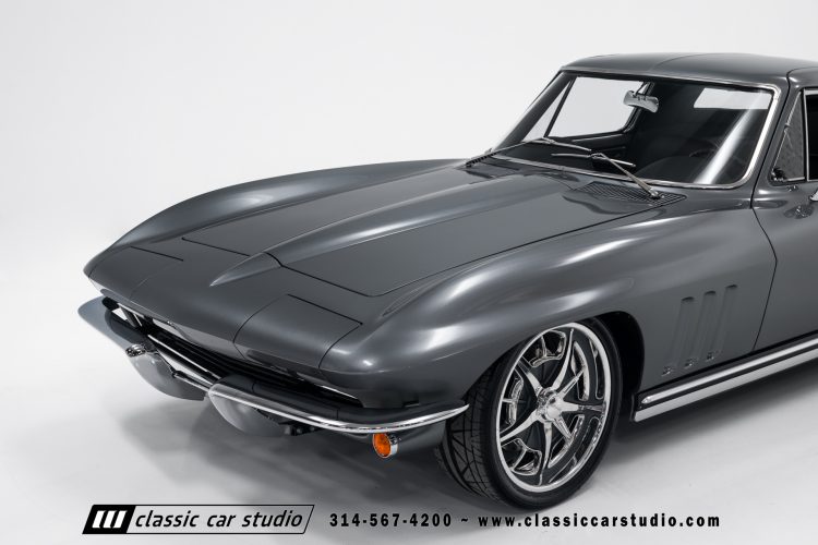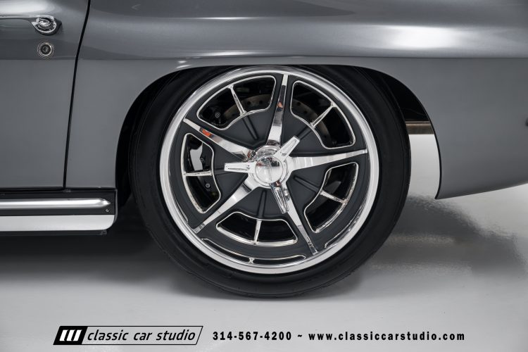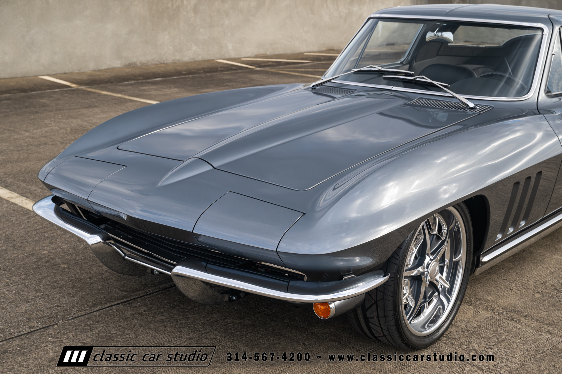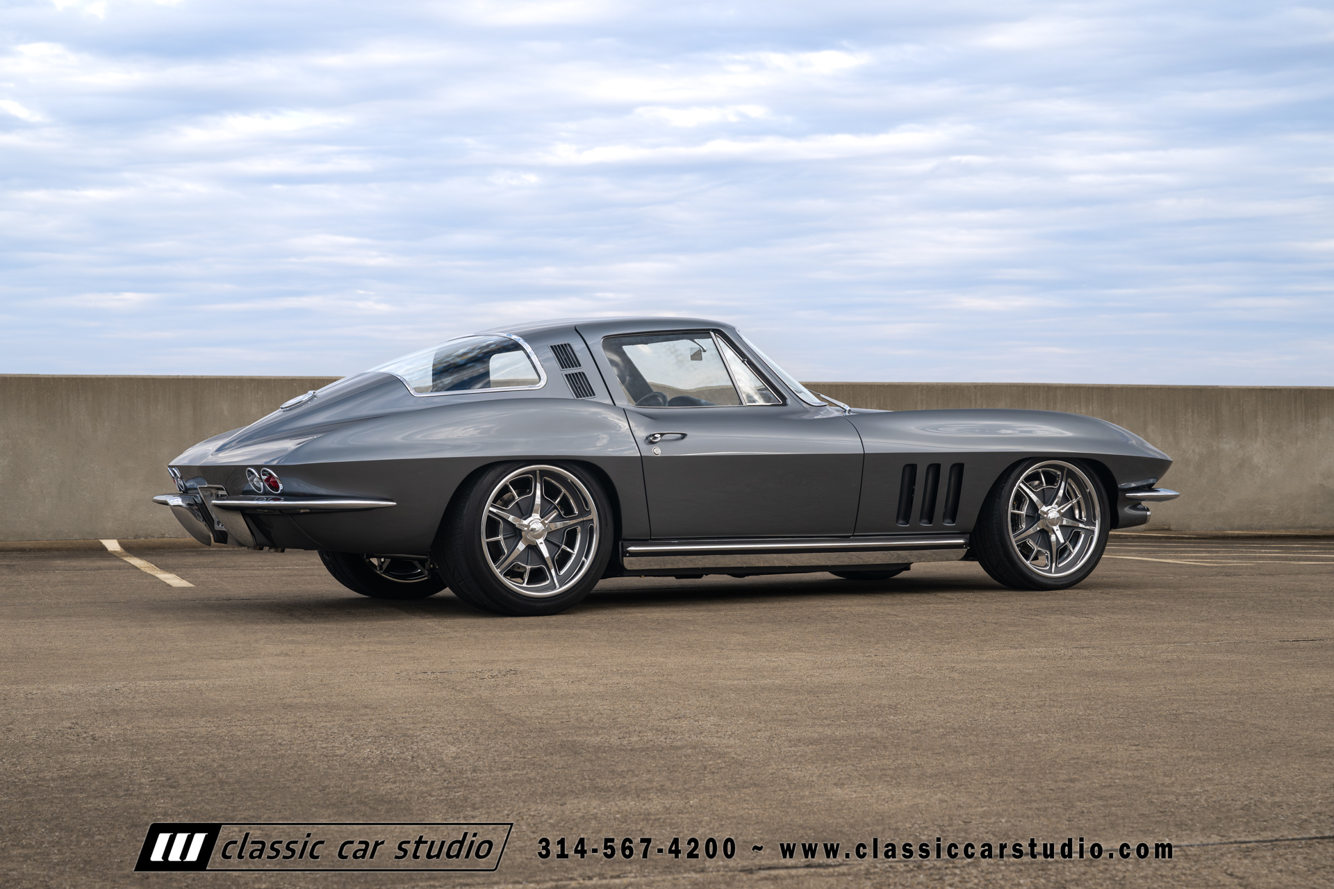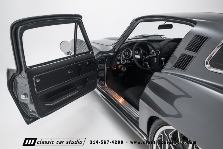 This 1965 Chevrolet Corvette coupe was acquired by the current owner in 2020 and was the subject of a custom build at Classic Car Studio of Brentwood, Missouri. A 6.2-liter LS3 V8 engine was installed along with a 4L75E four-speed automatic transmission, and the body was refinished in gray before being mounted to a Roadster Shop Fast Track IRS chassis with late-model Corvette suspension geometry, Penske Racing coilovers, and 19″ Billet Specialties wheels fitted over Wilwood disc brakes. Inside, the bucket seats, dashboard, and 3D-printed center console are trimmed in black Relicate leather upholstery and joined by a Vintage Air climate control system, sound insulation, an American Autowire harness, square-weave carpeting, and Classic Instruments gauges… (read full write up on bringatrailer.com)