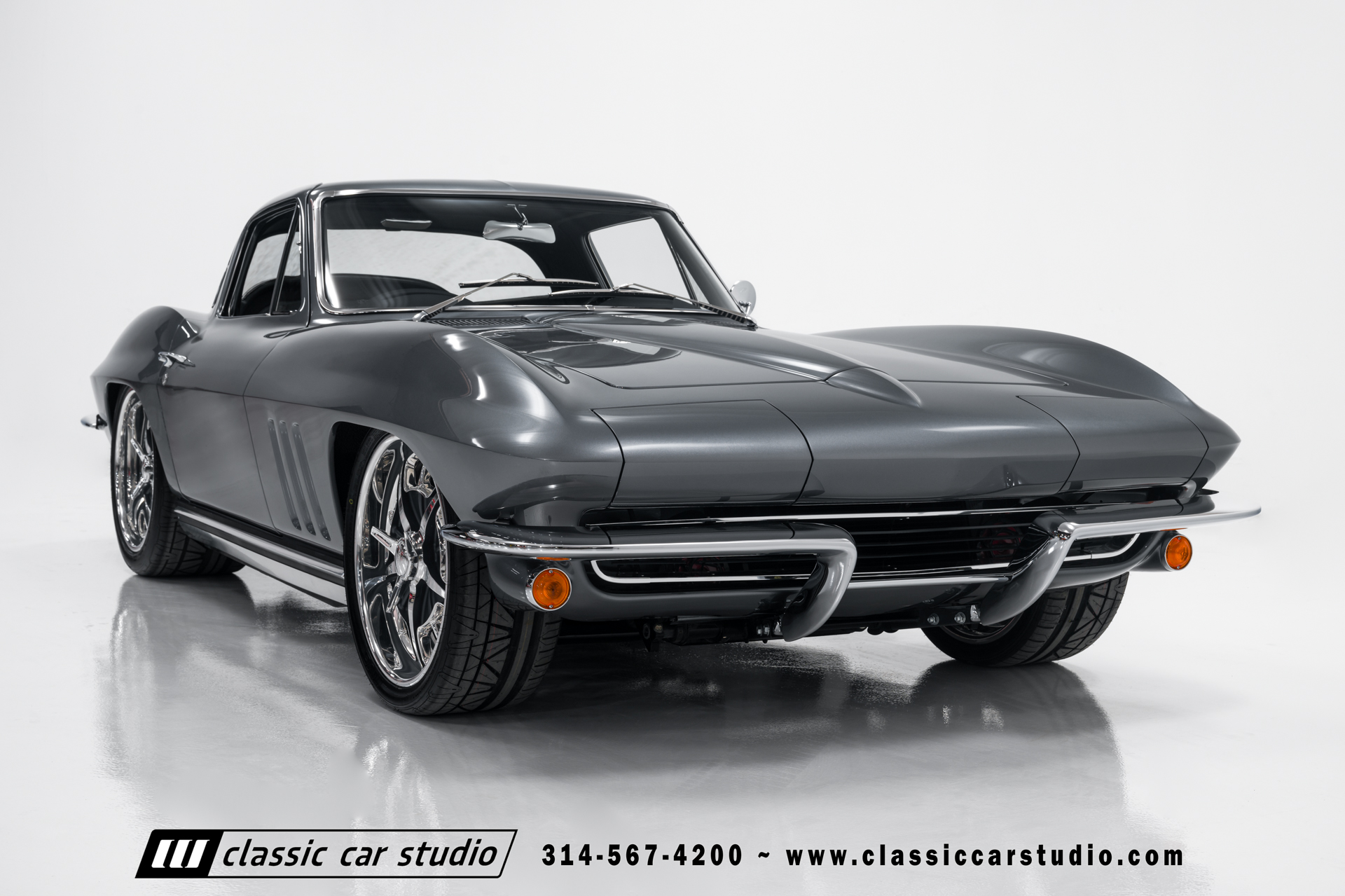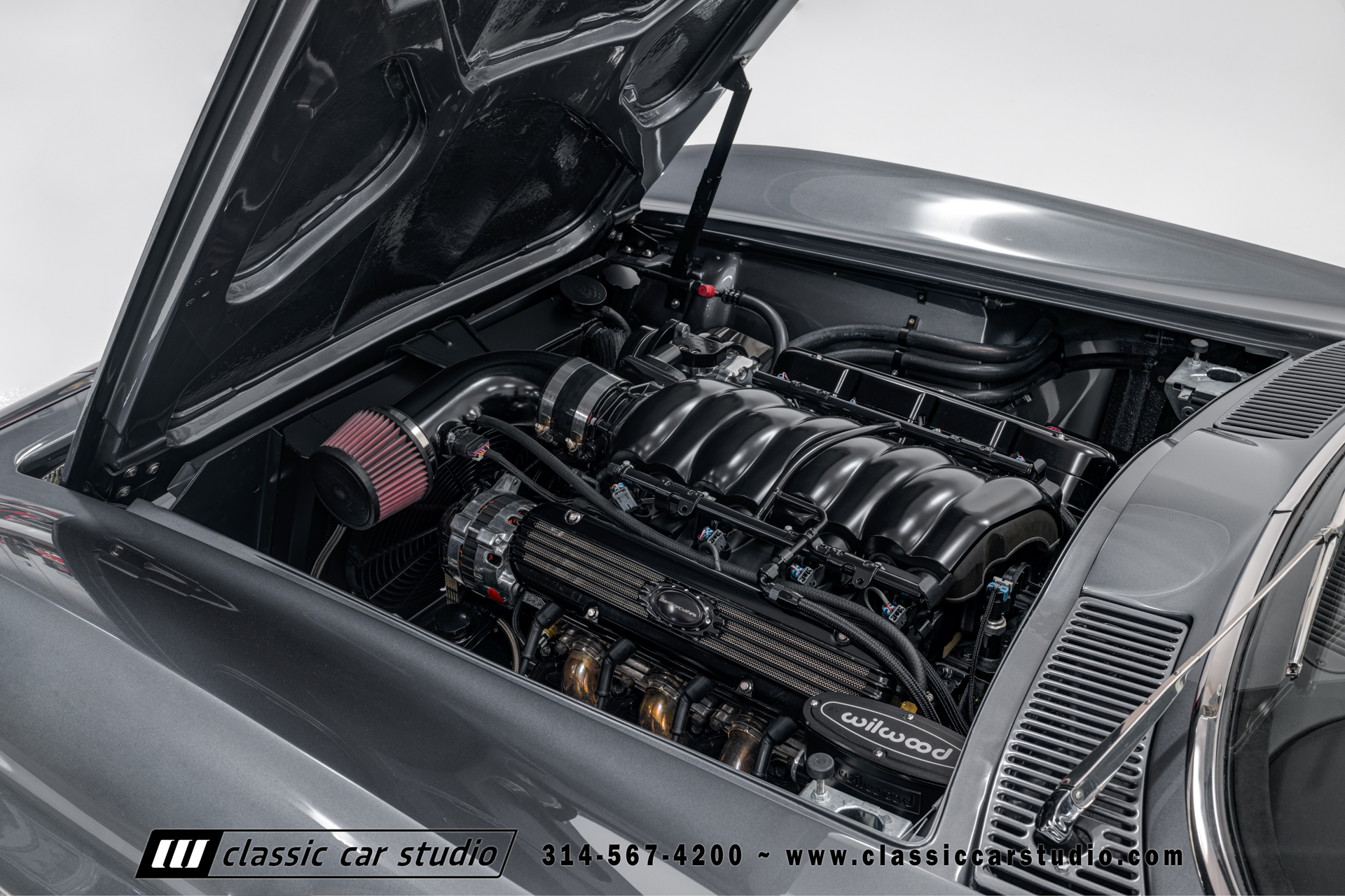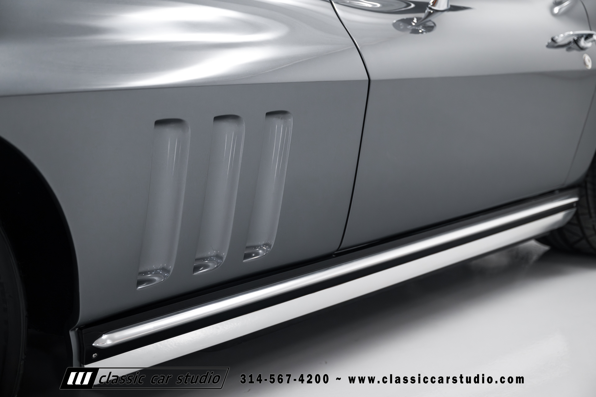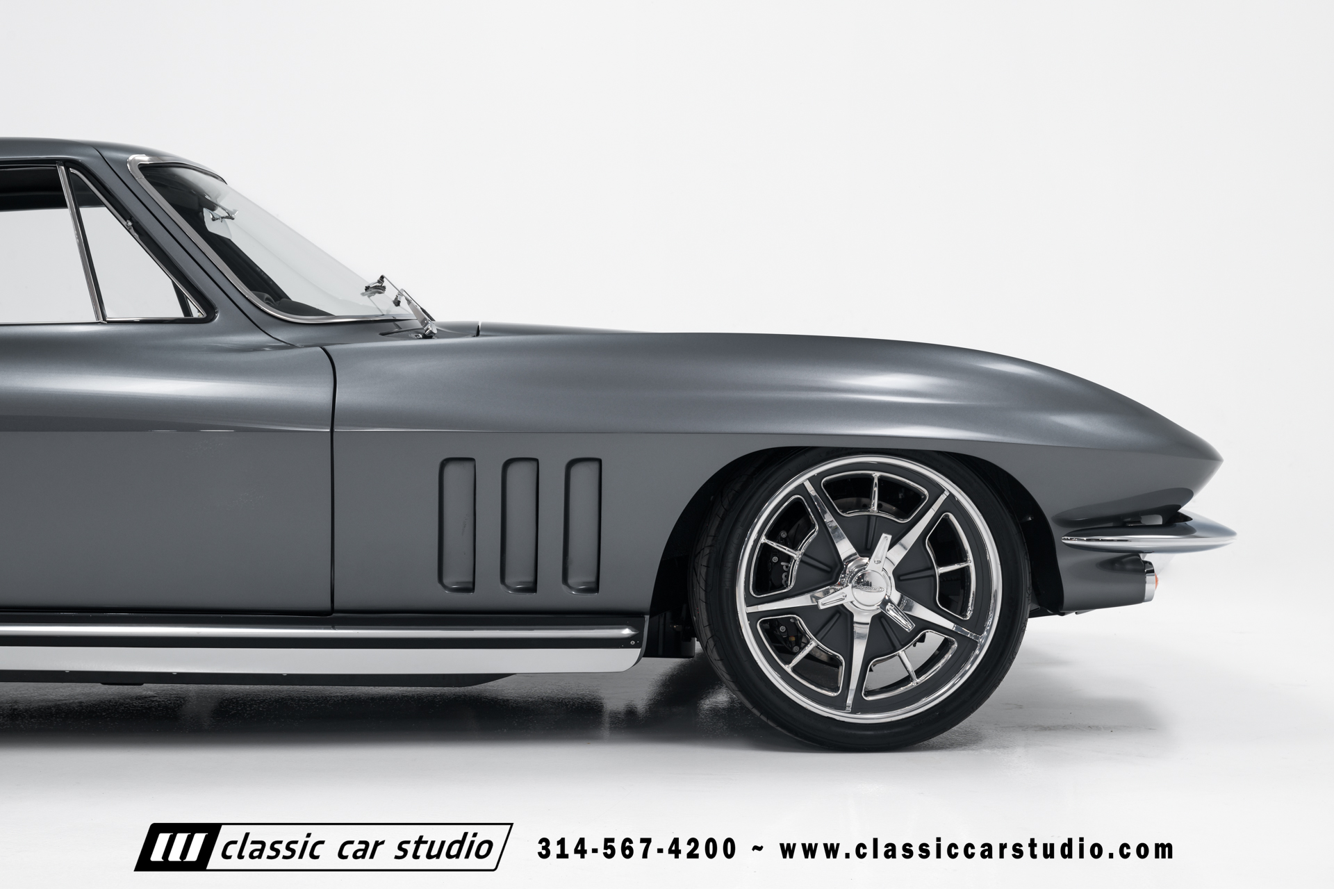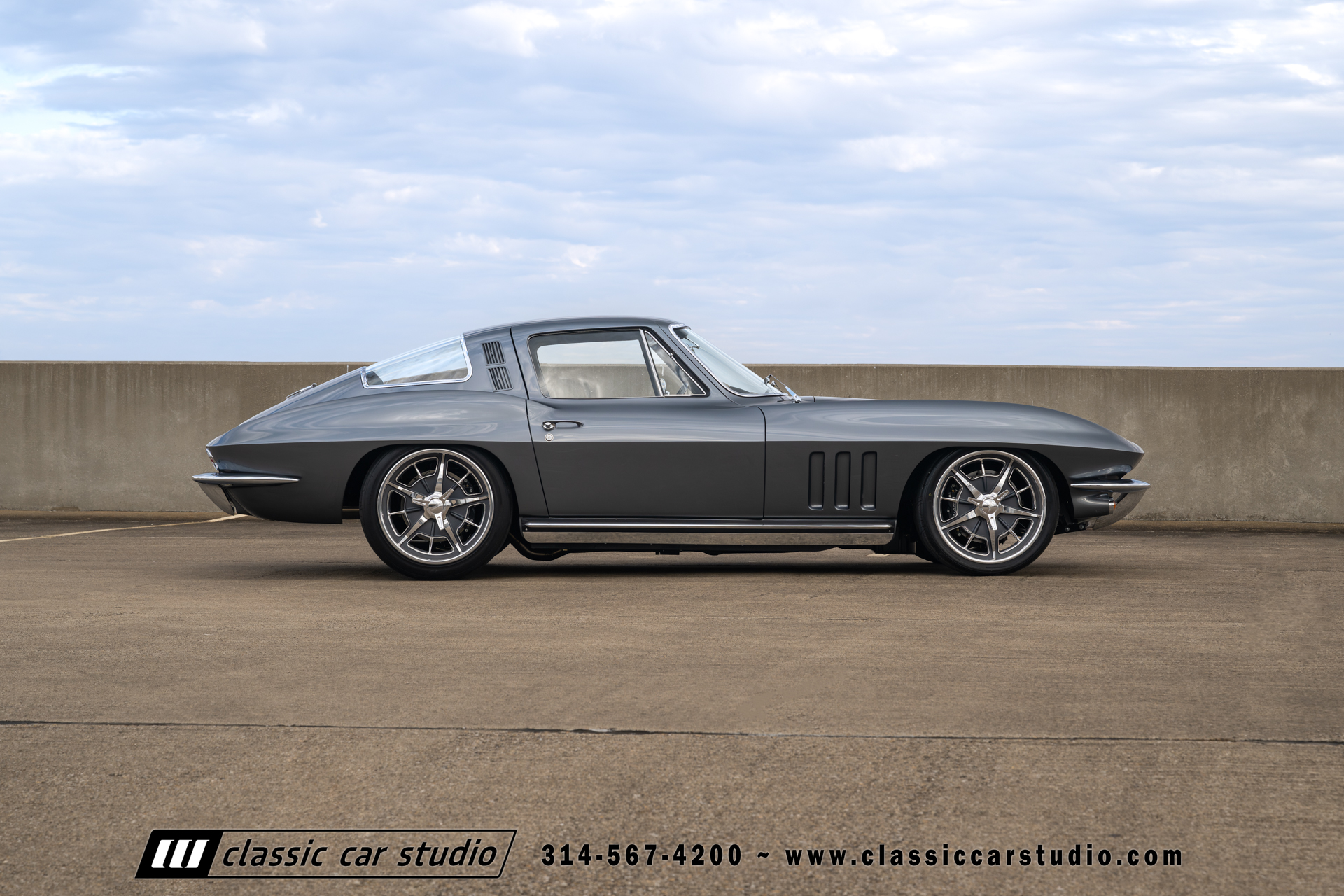 This 1965 Chevrolet Corvette coupe was acquired by the current owner in 2020 and was the subject of a custom build at Classic Car Studio of Brentwood, Missouri. A 6.2-liter LS3 V8 engine was installed along with a 4L75E four-speed automatic transmission, and the body was refinished in gray before being mounted to a Roadster Shop Fast Track IRS chassis with late-model Corvette suspension geometry, Penske Racing coilovers, and 19″ Billet Specialties wheels fitted over Wilwood disc brakes. Inside, the bucket seats, dashboard, and 3D-printed center console are trimmed in black Relicate leather upholstery and joined by a Vintage Air climate control system, sound insulation, an American Autowire harness, square-weave carpeting, and Classic Instruments gauges… (read full write up on bringatrailer.com)