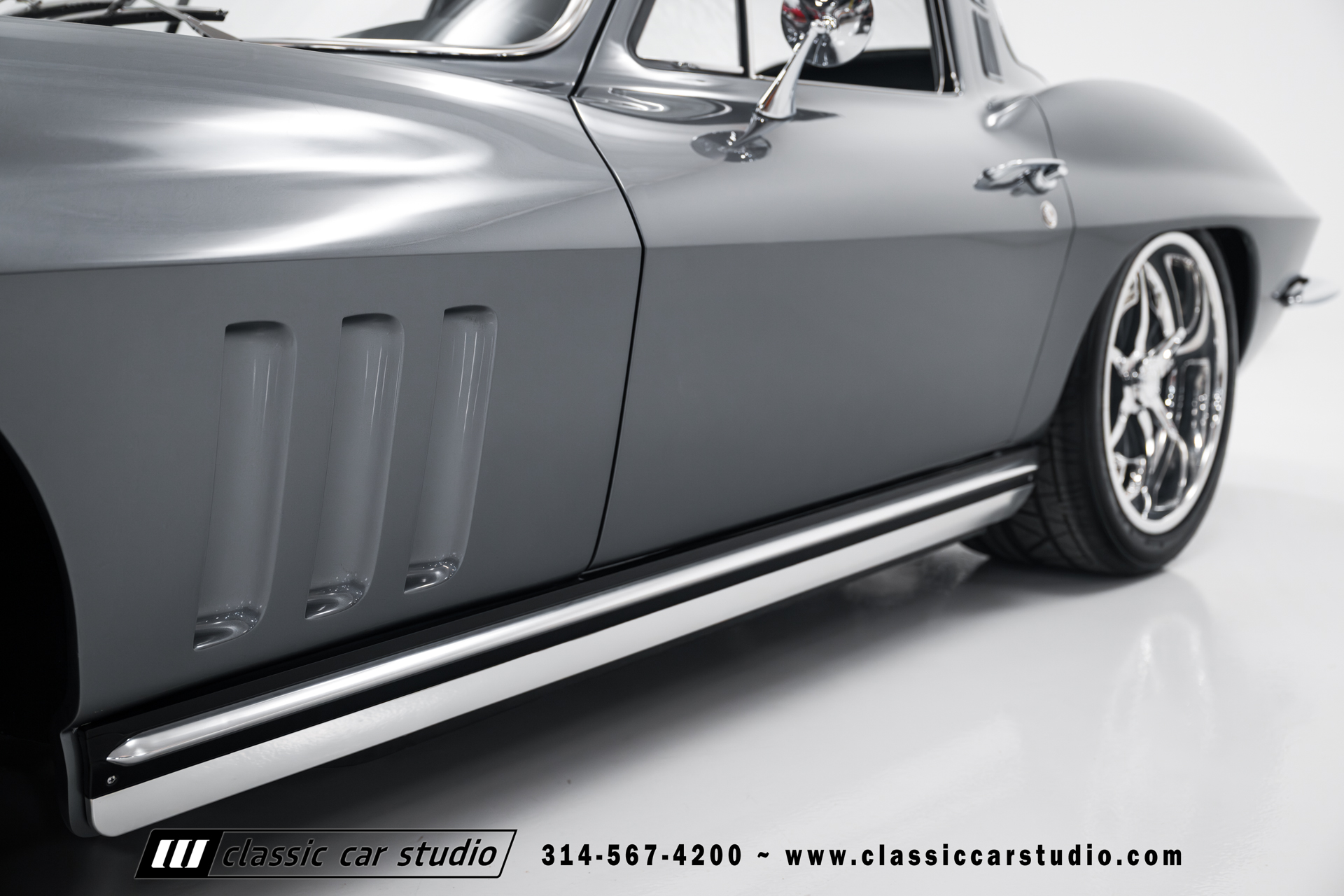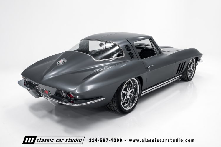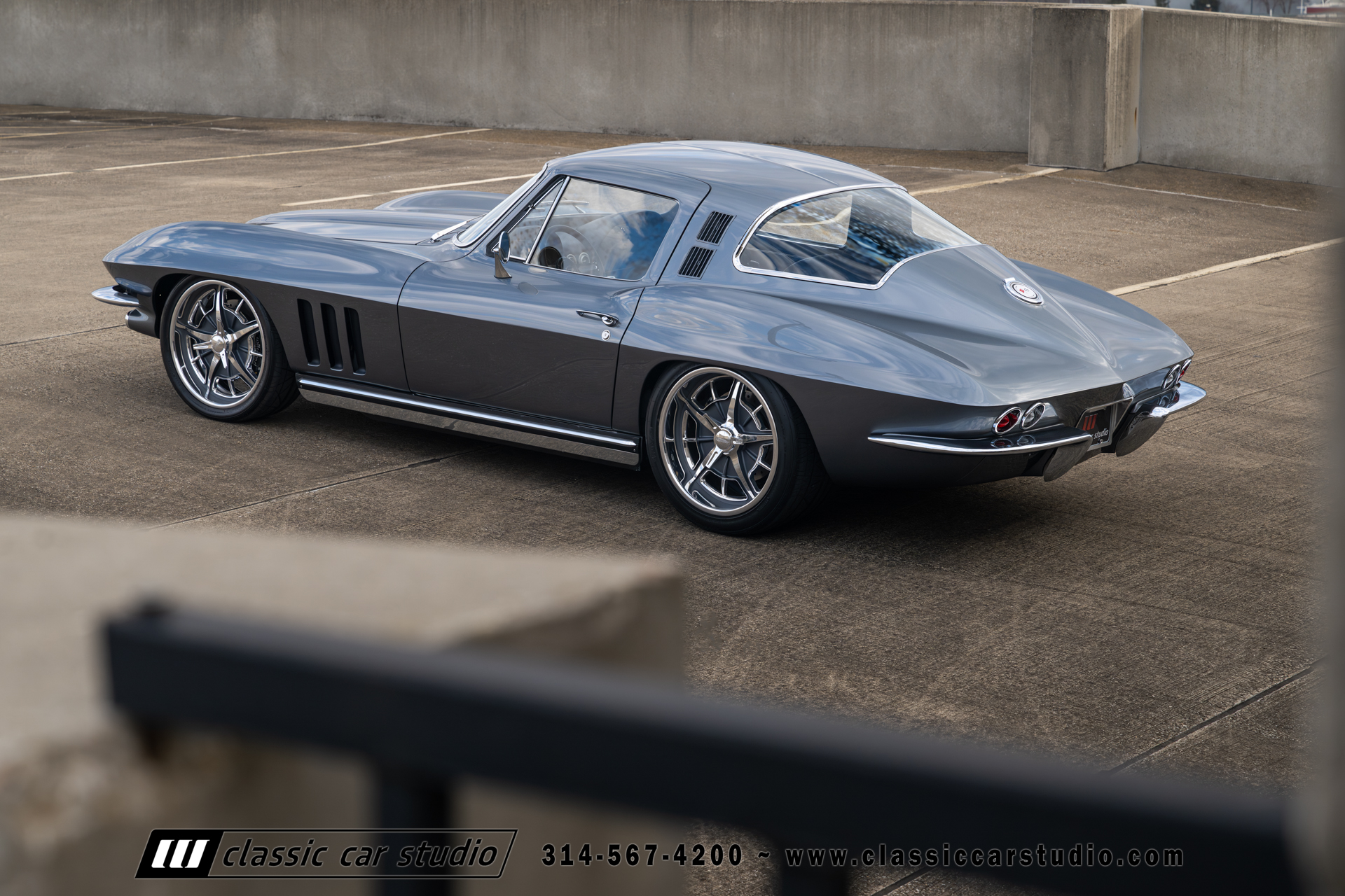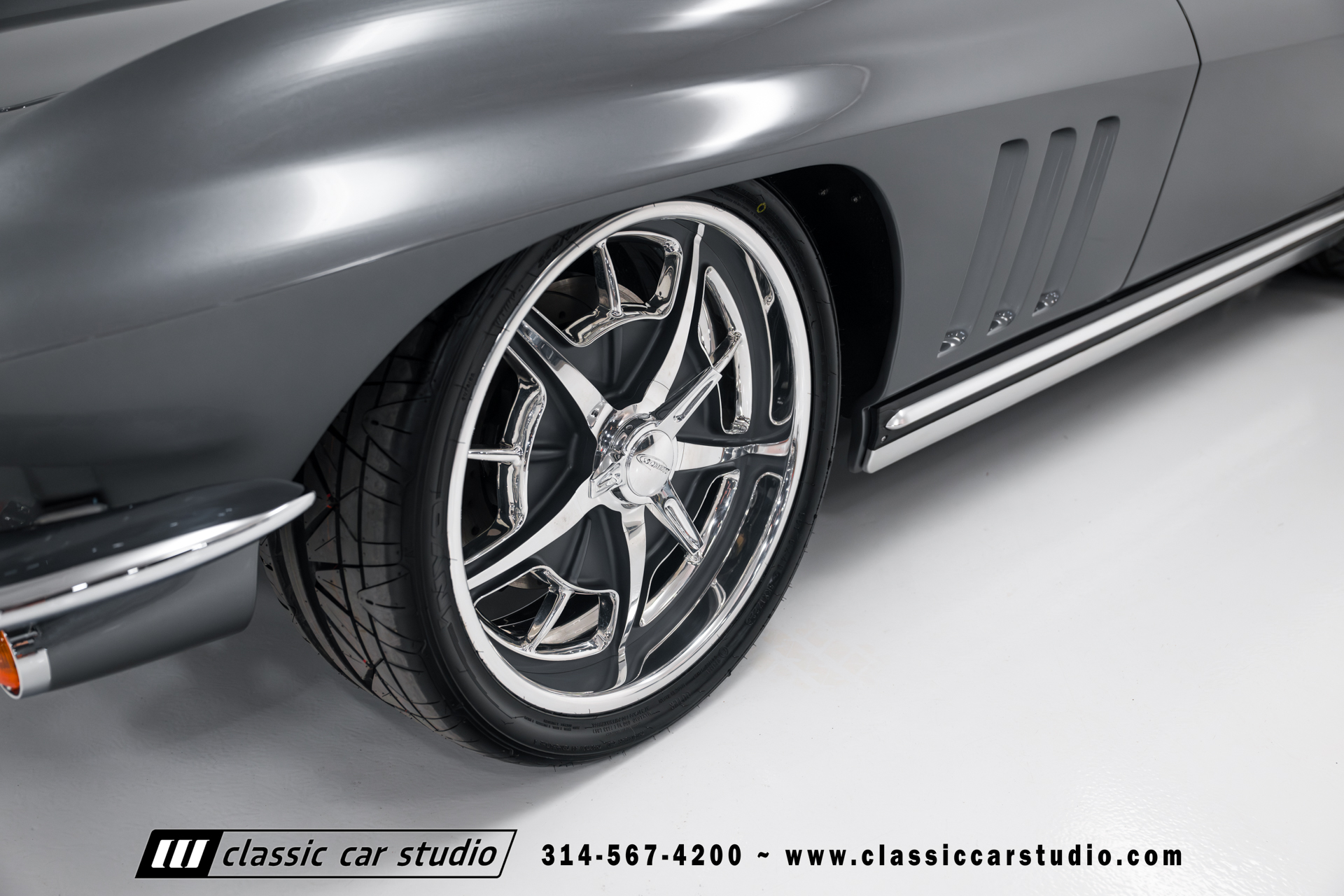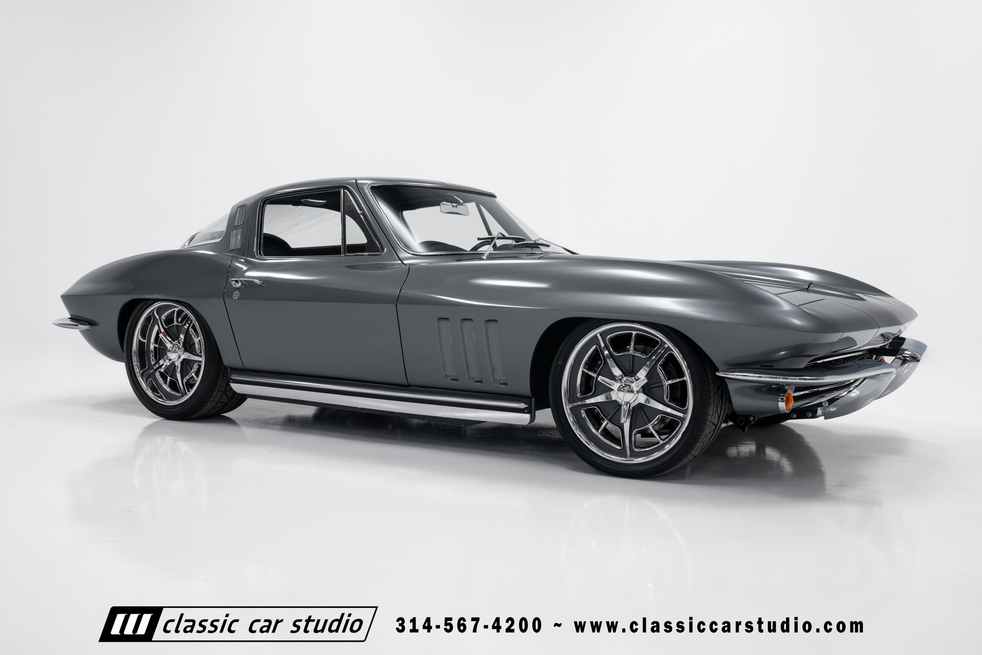 This 1965 Chevrolet Corvette coupe was acquired by the current owner in 2020 and was the subject of a custom build at Classic Car Studio of Brentwood, Missouri. A 6.2-liter LS3 V8 engine was installed along with a 4L75E four-speed automatic transmission, and the body was refinished in gray before being mounted to a Roadster Shop Fast Track IRS chassis with late-model Corvette suspension geometry, Penske Racing coilovers, and 19″ Billet Specialties wheels fitted over Wilwood disc brakes. Inside, the bucket seats, dashboard, and 3D-printed center console are trimmed in black Relicate leather upholstery and joined by a Vintage Air climate control system, sound insulation, an American Autowire harness, square-weave carpeting, and Classic Instruments gauges… (read full write up on bringatrailer.com)