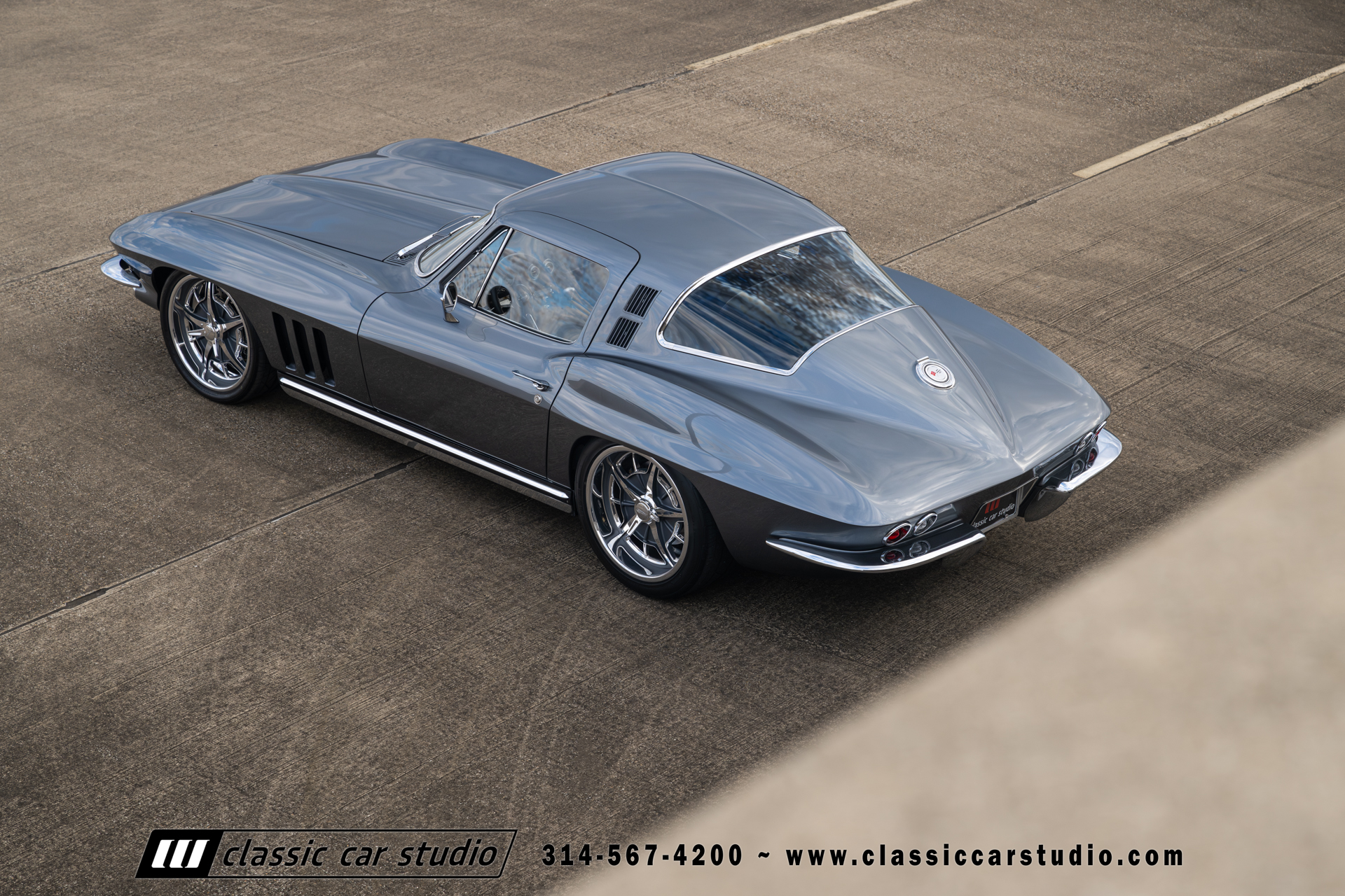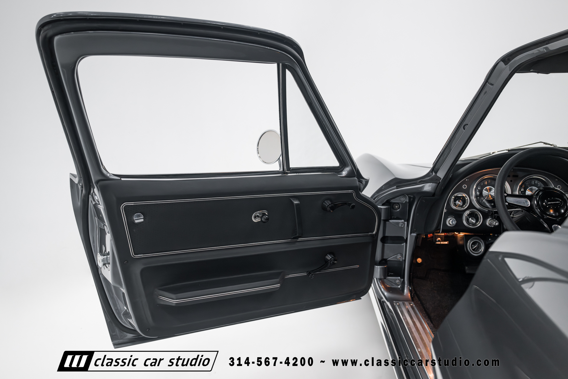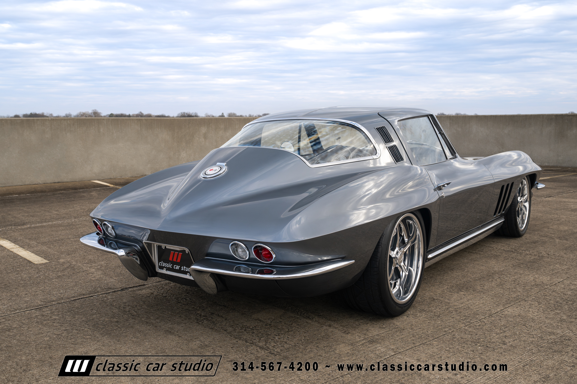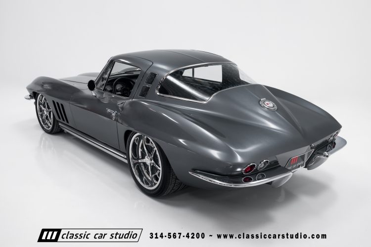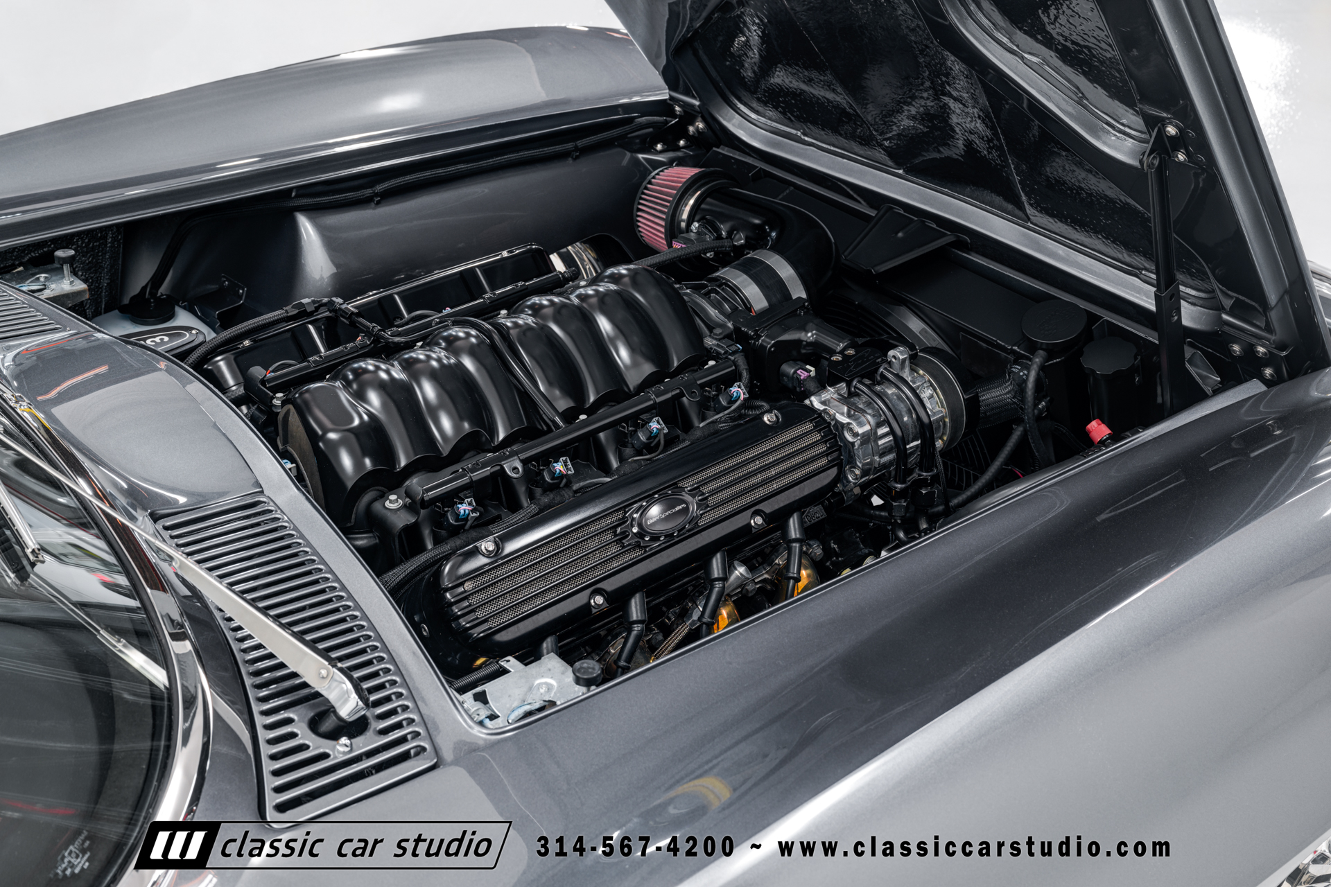 This 1965 Chevrolet Corvette coupe was acquired by the current owner in 2020 and was the subject of a custom build at Classic Car Studio of Brentwood, Missouri. A 6.2-liter LS3 V8 engine was installed along with a 4L75E four-speed automatic transmission, and the body was refinished in gray before being mounted to a Roadster Shop Fast Track IRS chassis with late-model Corvette suspension geometry, Penske Racing coilovers, and 19″ Billet Specialties wheels fitted over Wilwood disc brakes. Inside, the bucket seats, dashboard, and 3D-printed center console are trimmed in black Relicate leather upholstery and joined by a Vintage Air climate control system, sound insulation, an American Autowire harness, square-weave carpeting, and Classic Instruments gauges… (read full write up on bringatrailer.com)