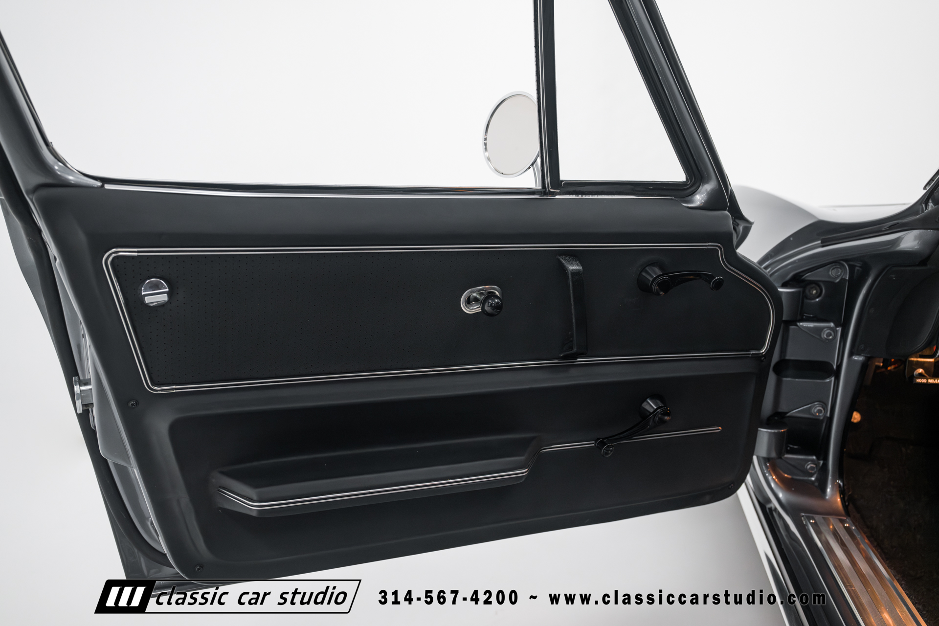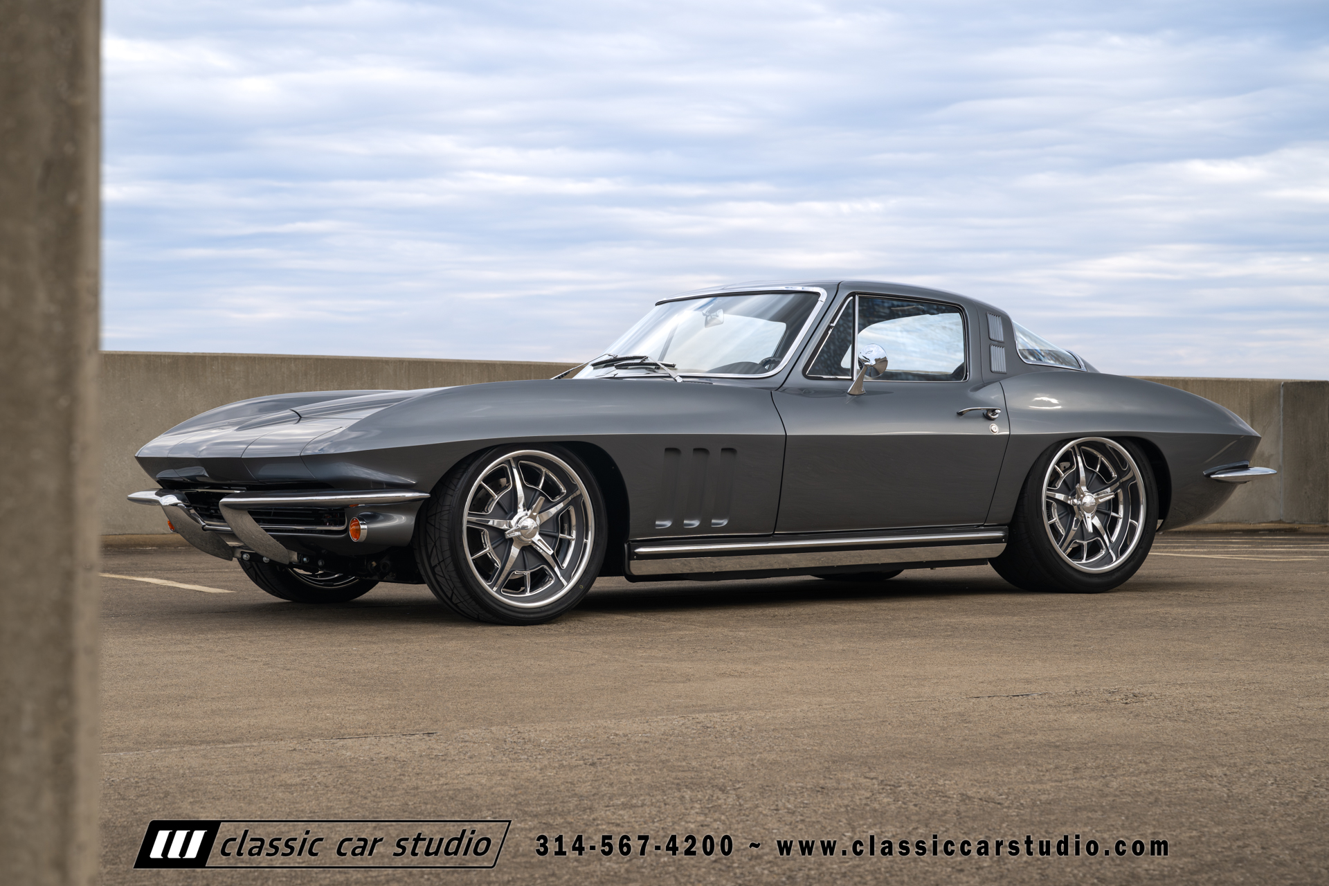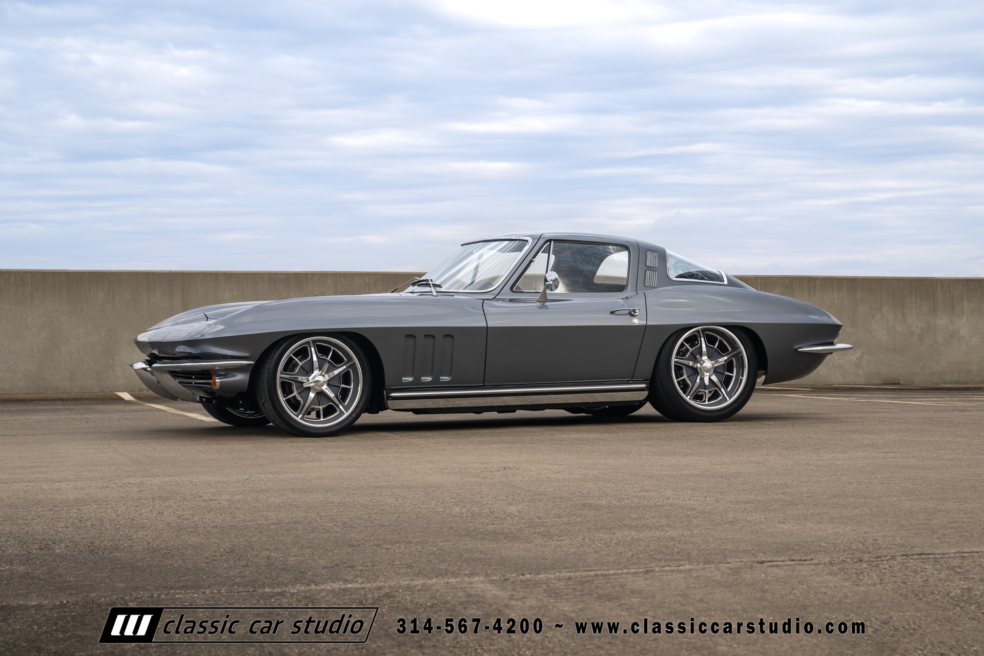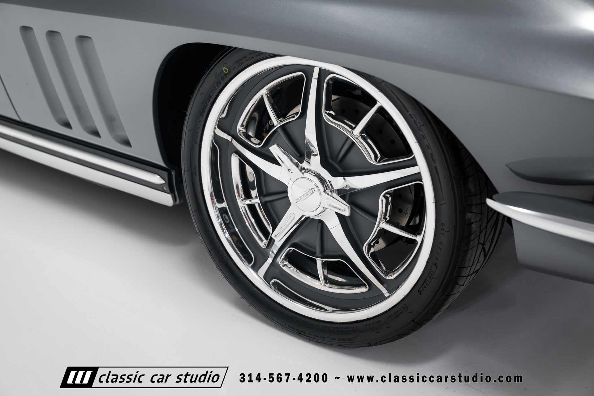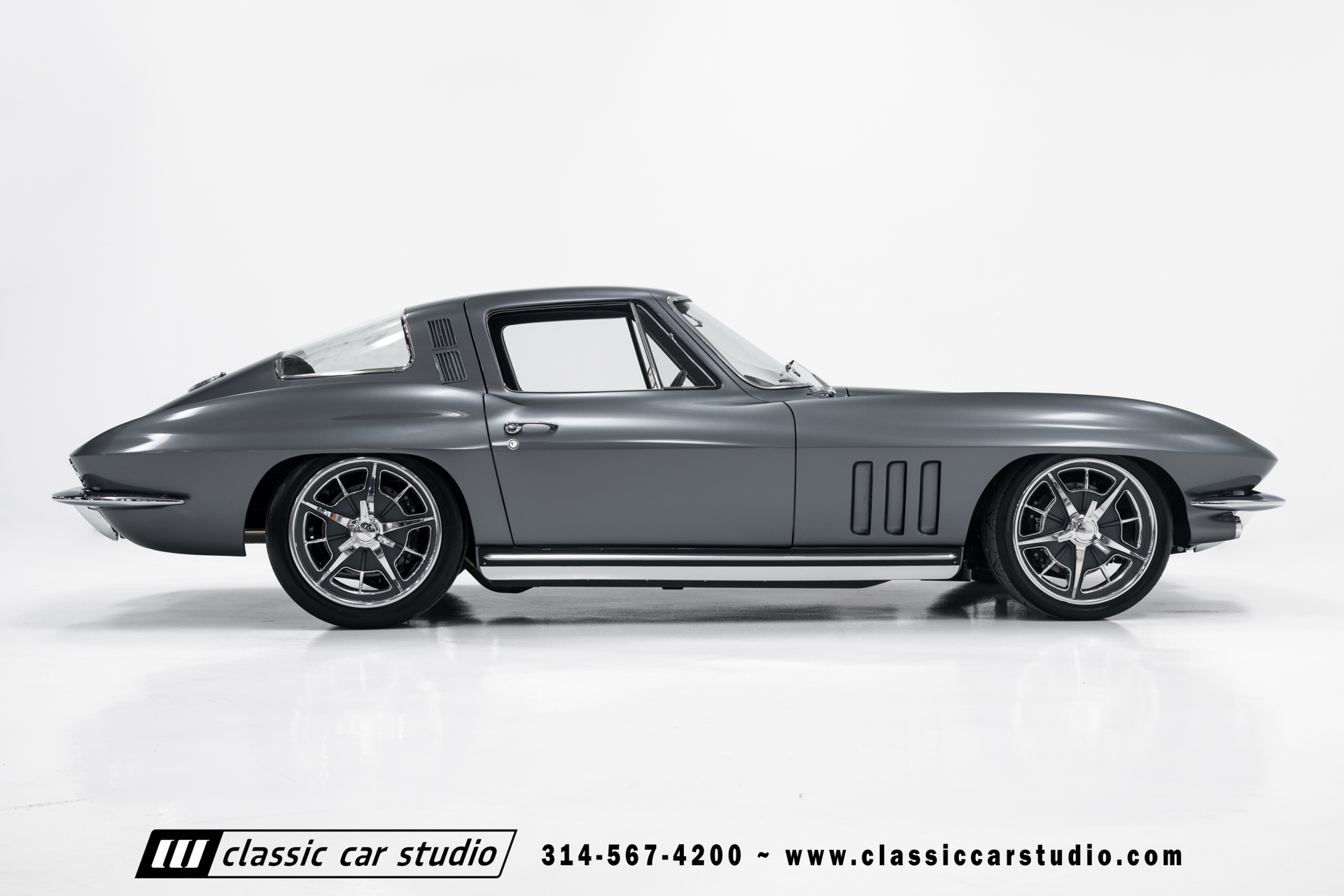 This 1965 Chevrolet Corvette coupe was acquired by the current owner in 2020 and was the subject of a custom build at Classic Car Studio of Brentwood, Missouri. A 6.2-liter LS3 V8 engine was installed along with a 4L75E four-speed automatic transmission, and the body was refinished in gray before being mounted to a Roadster Shop Fast Track IRS chassis with late-model Corvette suspension geometry, Penske Racing coilovers, and 19″ Billet Specialties wheels fitted over Wilwood disc brakes. Inside, the bucket seats, dashboard, and 3D-printed center console are trimmed in black Relicate leather upholstery and joined by a Vintage Air climate control system, sound insulation, an American Autowire harness, square-weave carpeting, and Classic Instruments gauges… (read full write up on bringatrailer.com)