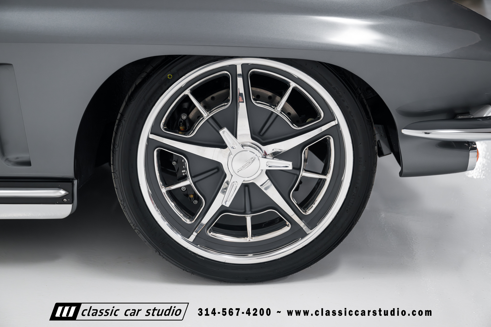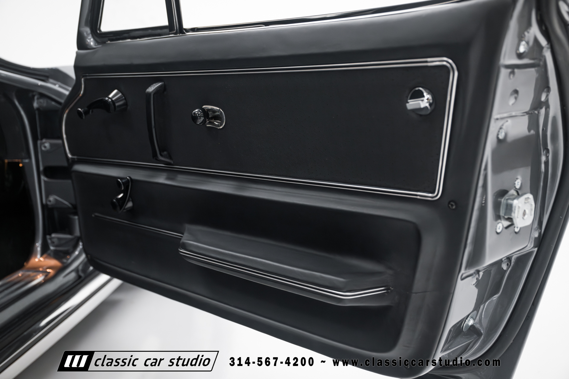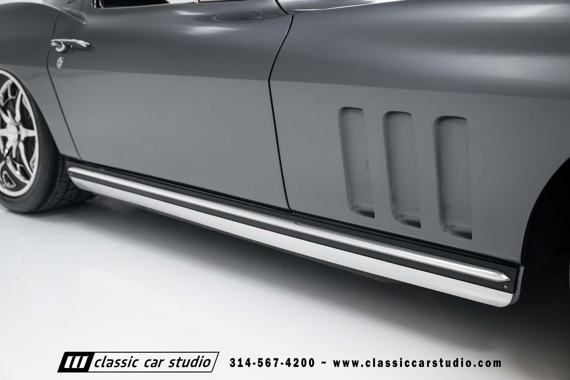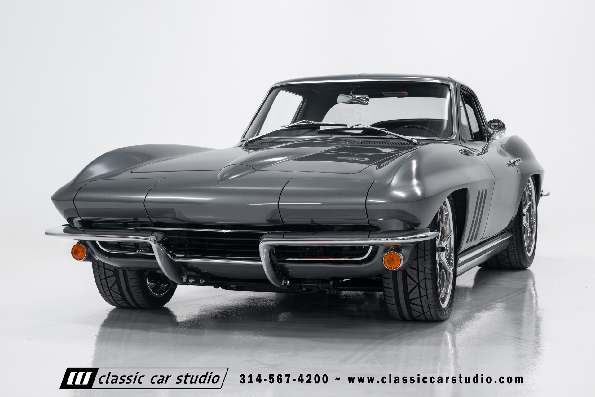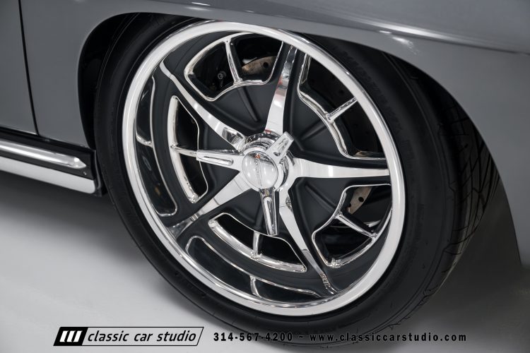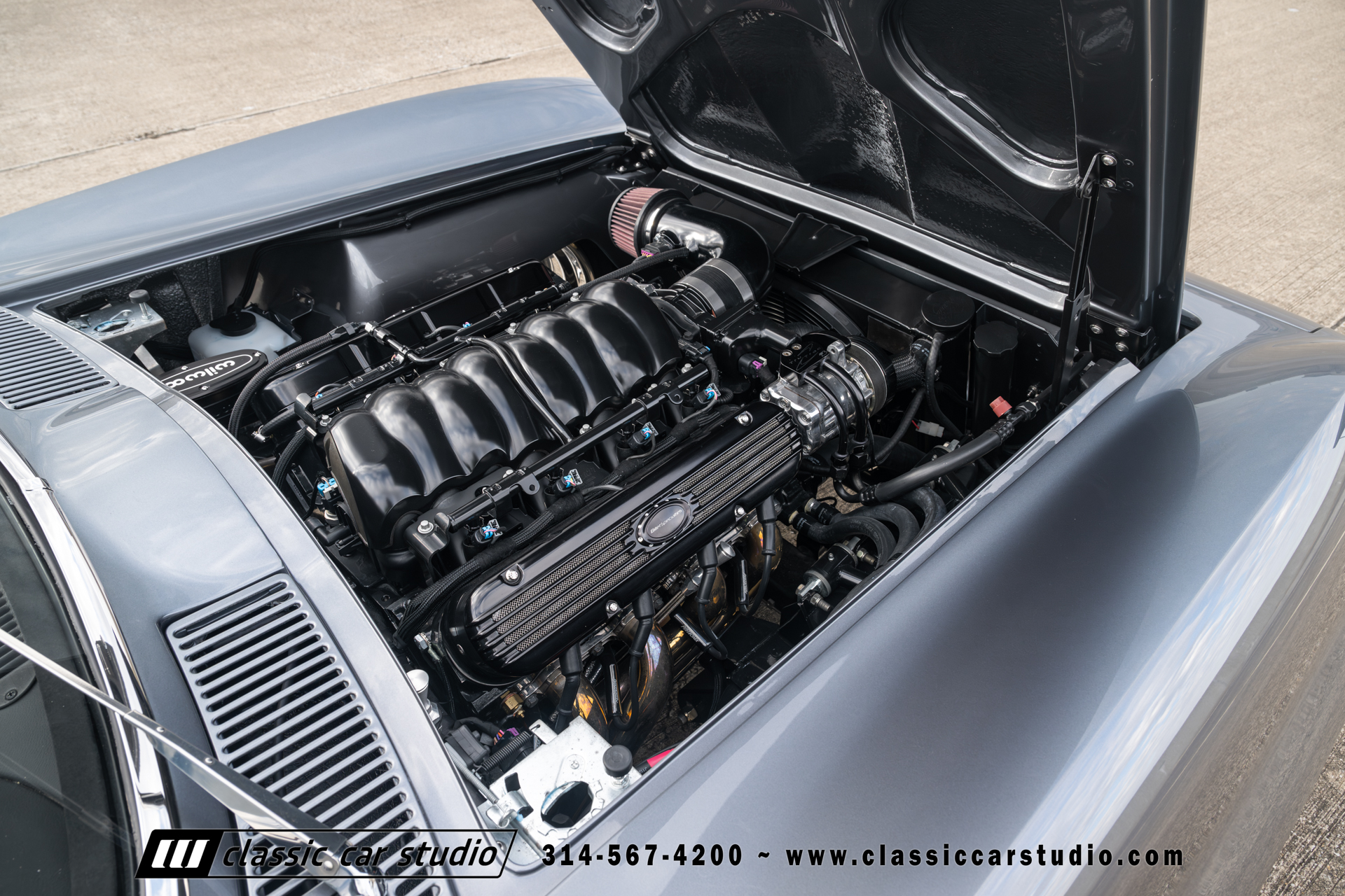 This 1965 Chevrolet Corvette coupe was acquired by the current owner in 2020 and was the subject of a custom build at Classic Car Studio of Brentwood, Missouri. A 6.2-liter LS3 V8 engine was installed along with a 4L75E four-speed automatic transmission, and the body was refinished in gray before being mounted to a Roadster Shop Fast Track IRS chassis with late-model Corvette suspension geometry, Penske Racing coilovers, and 19″ Billet Specialties wheels fitted over Wilwood disc brakes. Inside, the bucket seats, dashboard, and 3D-printed center console are trimmed in black Relicate leather upholstery and joined by a Vintage Air climate control system, sound insulation, an American Autowire harness, square-weave carpeting, and Classic Instruments gauges… (read full write up on bringatrailer.com)