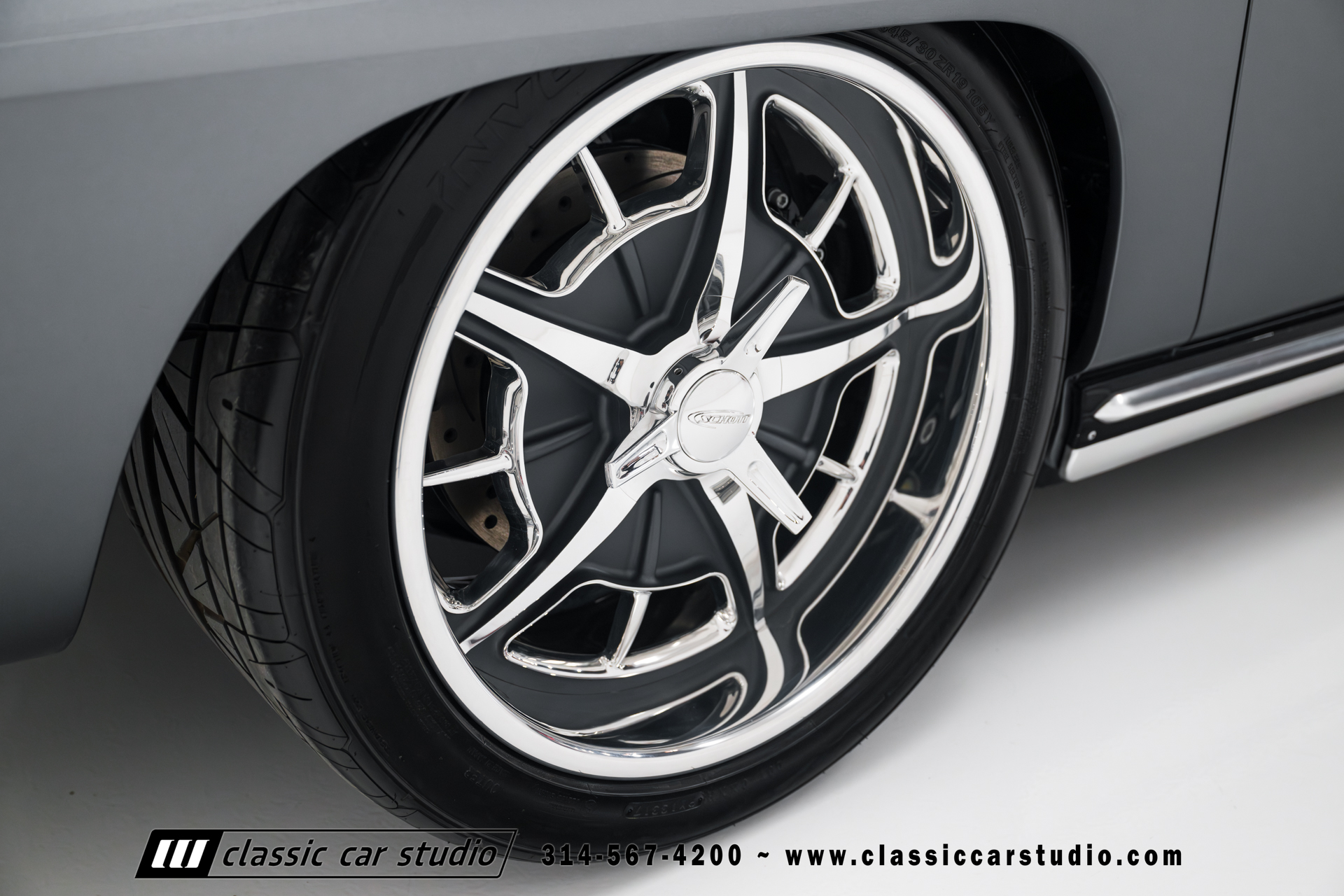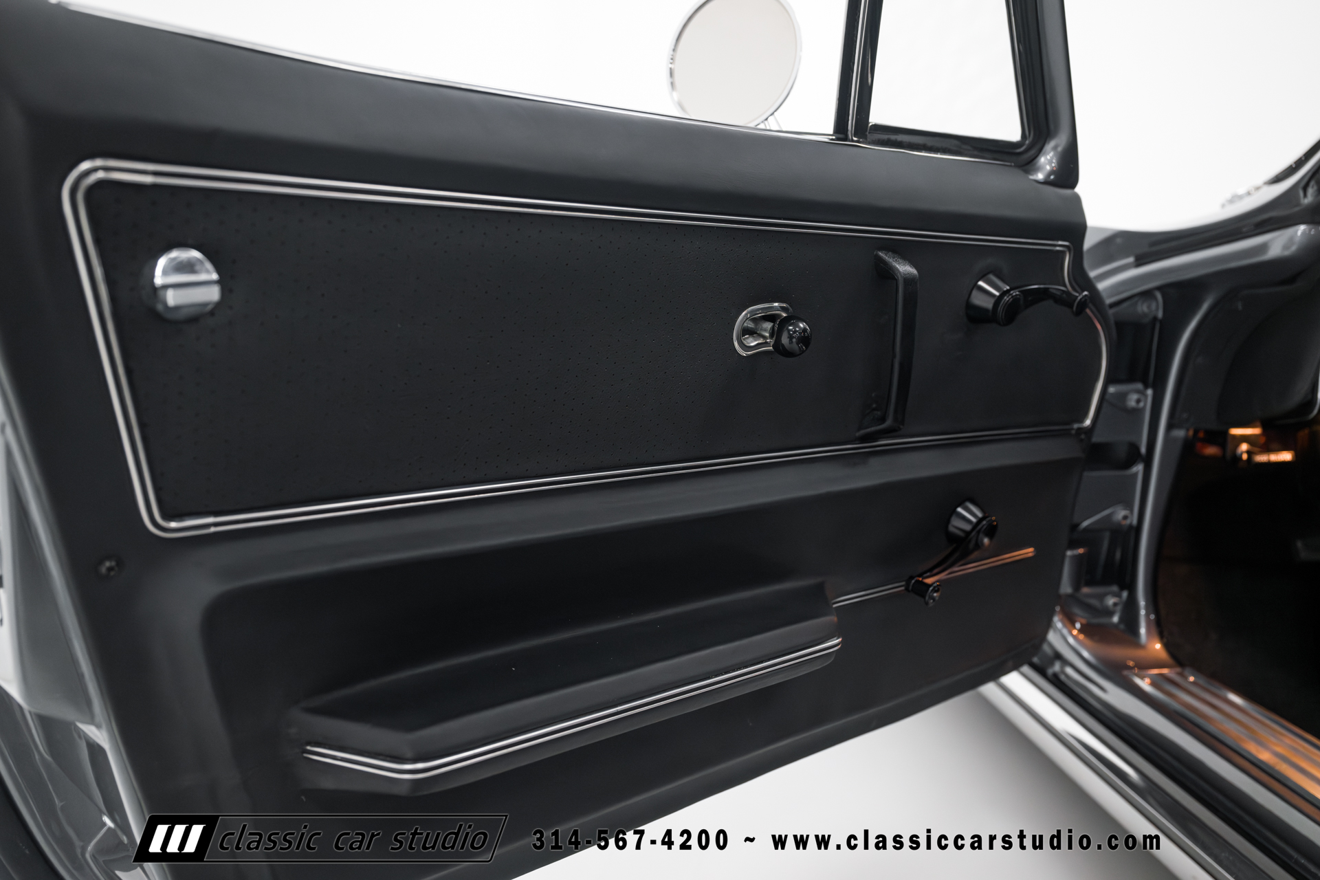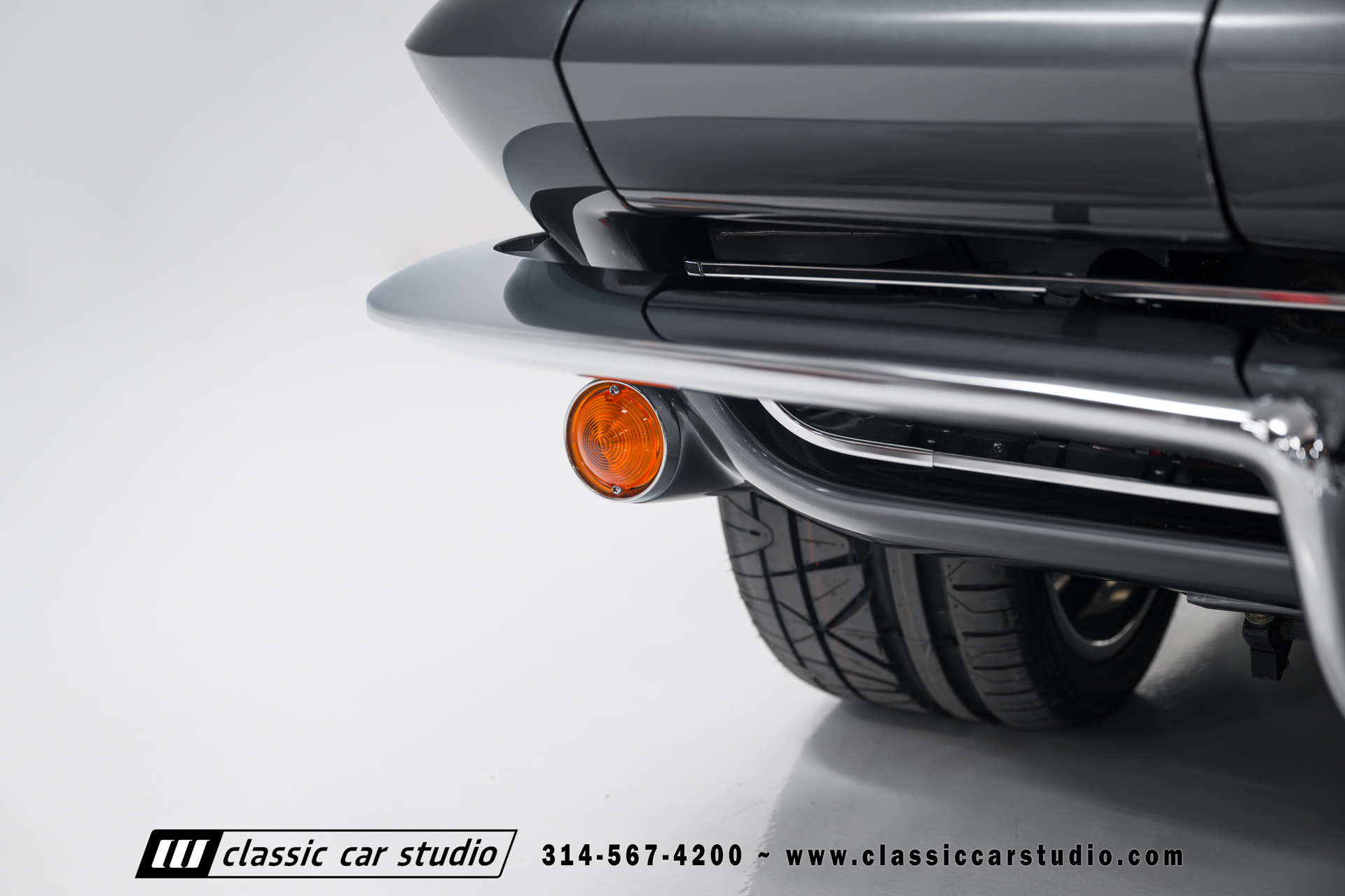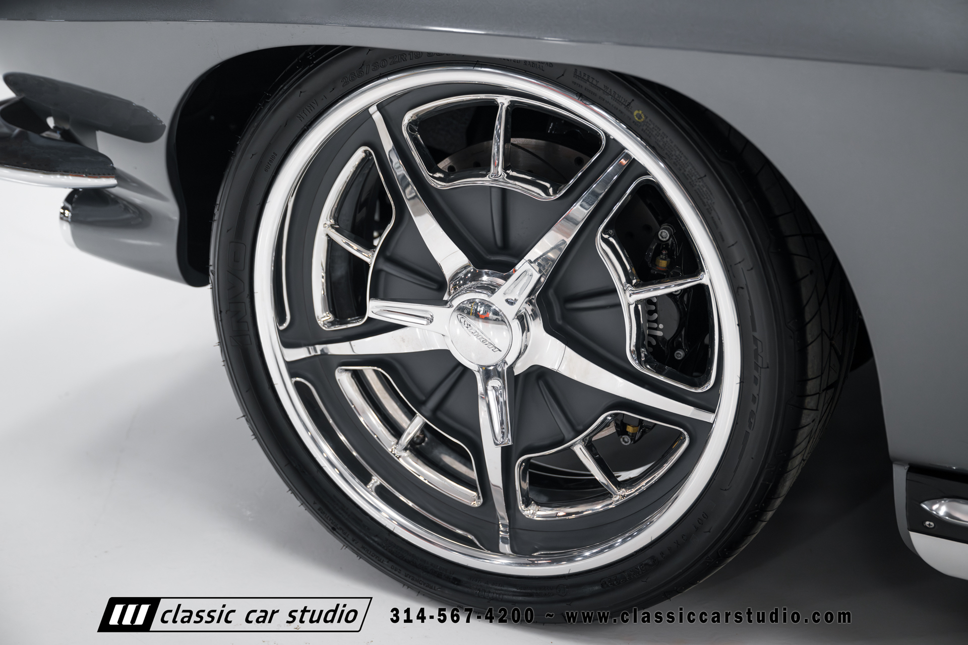This 1965 Chevrolet Corvette coupe was acquired by the current owner in 2020 and was the subject of a custom build at Classic Car Studio of Brentwood, Missouri. A 6.2-liter LS3 V8 engine was installed along with a 4L75E four-speed automatic transmission, and the body was refinished in gray before being mounted to a Roadster Shop Fast Track IRS chassis with late-model Corvette suspension geometry, Penske Racing coilovers, and 19″ Billet Specialties wheels fitted over Wilwood disc brakes. Inside, the bucket seats, dashboard, and 3D-printed center console are trimmed in black Relicate leather upholstery and joined by a Vintage Air climate control system, sound insulation, an American Autowire harness, square-weave carpeting, and Classic Instruments gauges… (read full write up on bringatrailer.com)