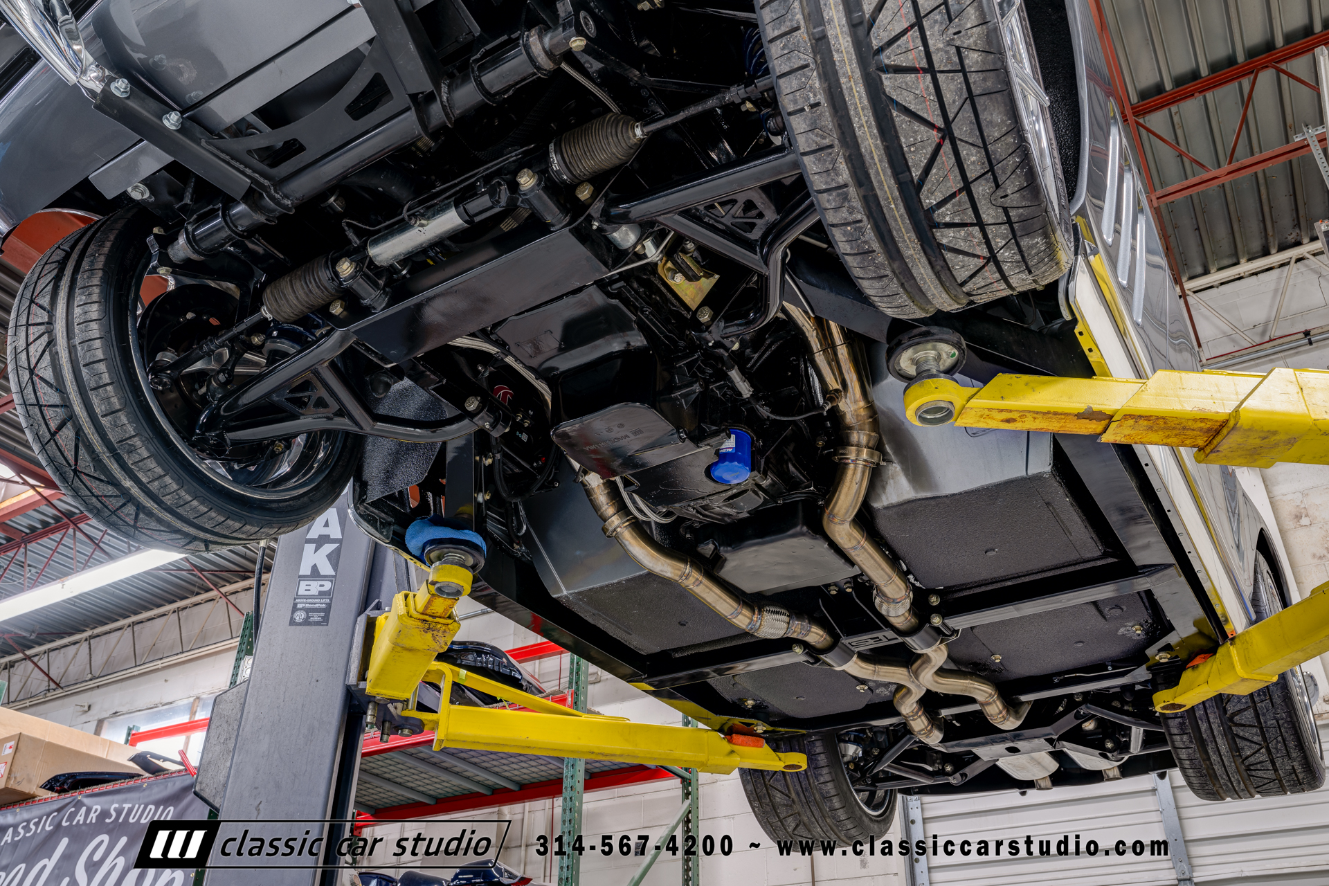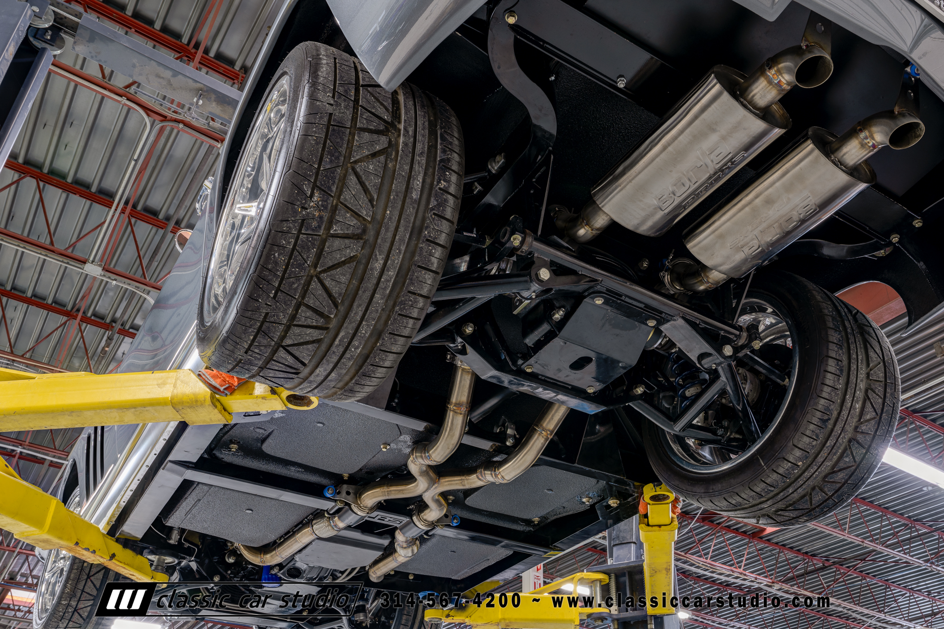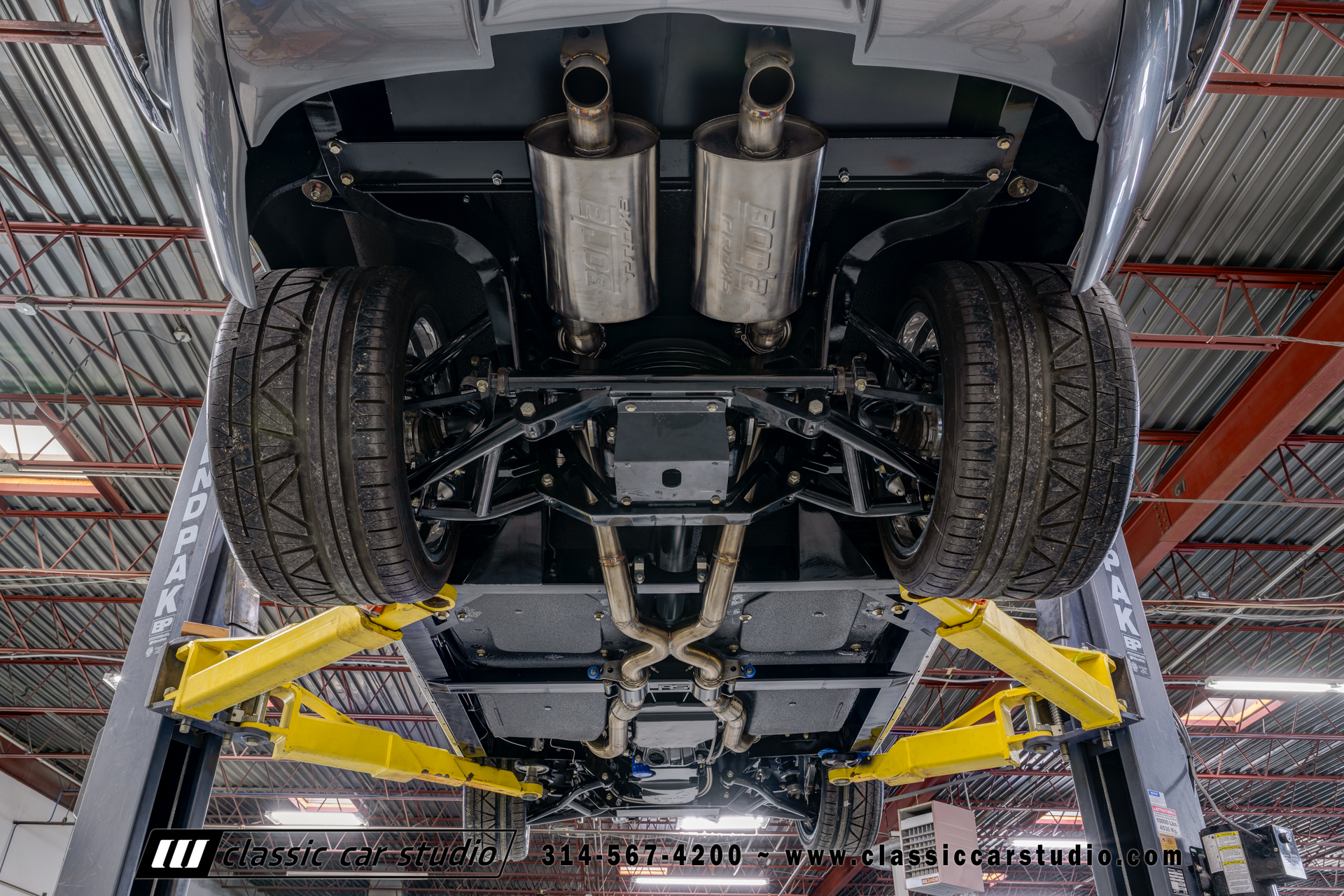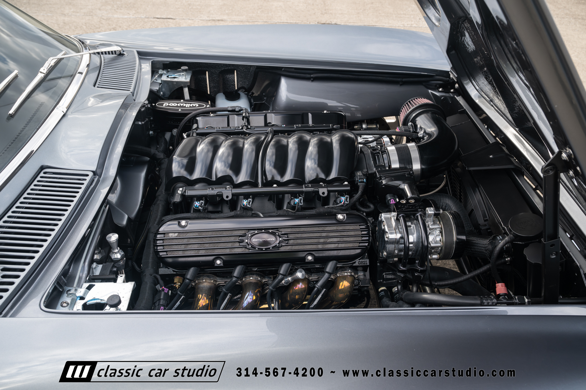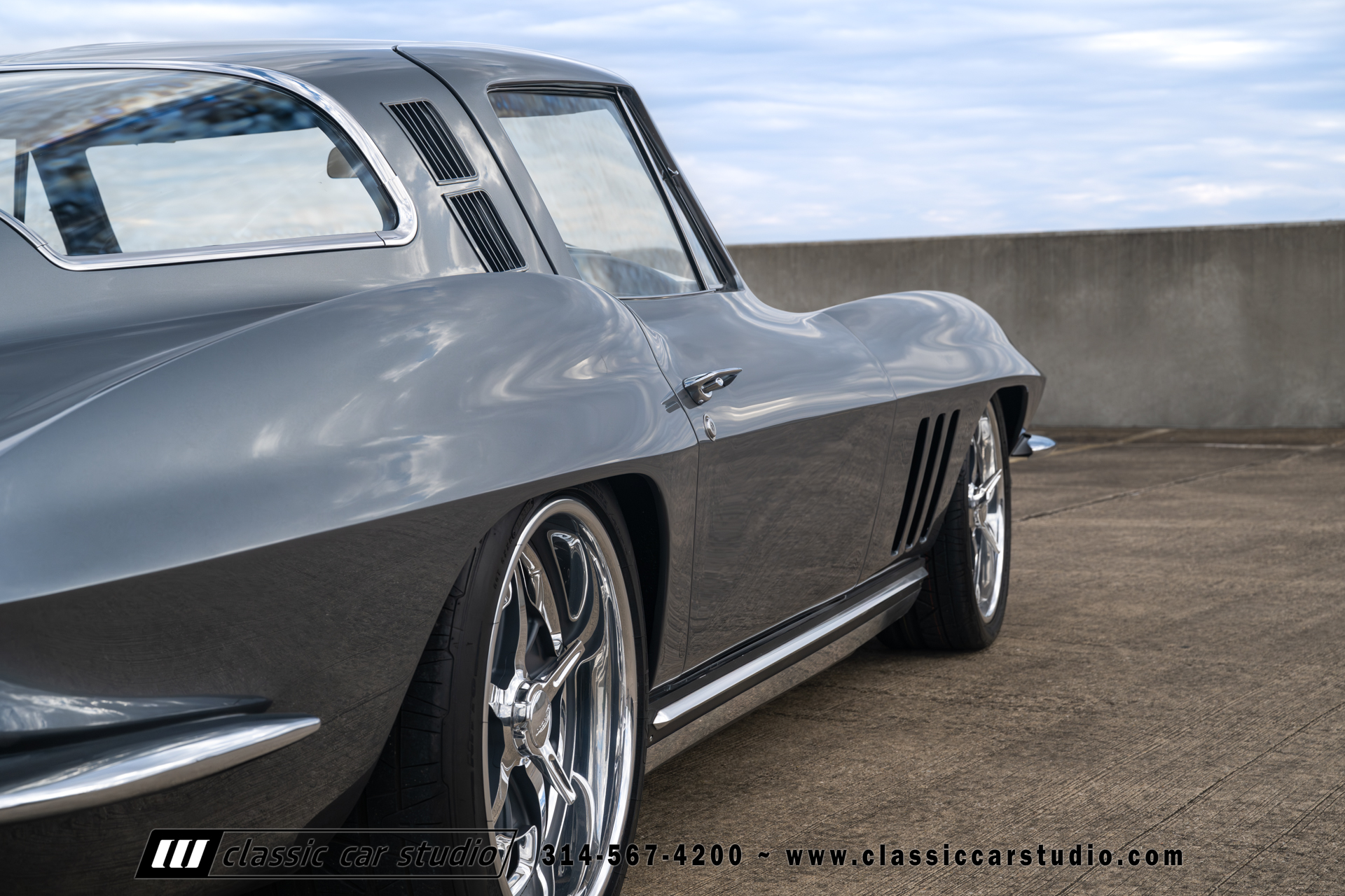 This 1965 Chevrolet Corvette coupe was acquired by the current owner in 2020 and was the subject of a custom build at Classic Car Studio of Brentwood, Missouri. A 6.2-liter LS3 V8 engine was installed along with a 4L75E four-speed automatic transmission, and the body was refinished in gray before being mounted to a Roadster Shop Fast Track IRS chassis with late-model Corvette suspension geometry, Penske Racing coilovers, and 19″ Billet Specialties wheels fitted over Wilwood disc brakes. Inside, the bucket seats, dashboard, and 3D-printed center console are trimmed in black Relicate leather upholstery and joined by a Vintage Air climate control system, sound insulation, an American Autowire harness, square-weave carpeting, and Classic Instruments gauges… (read full write up on bringatrailer.com)