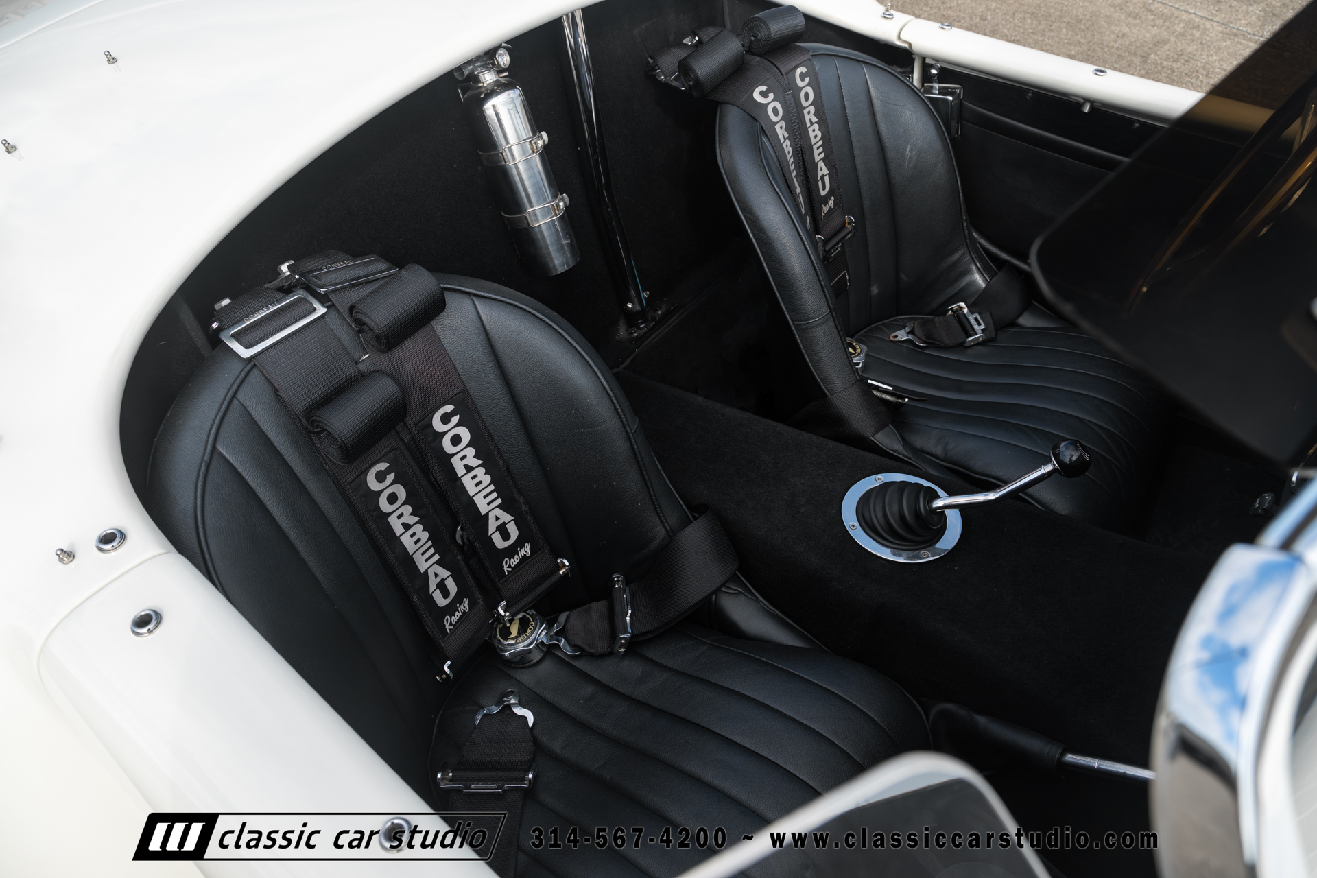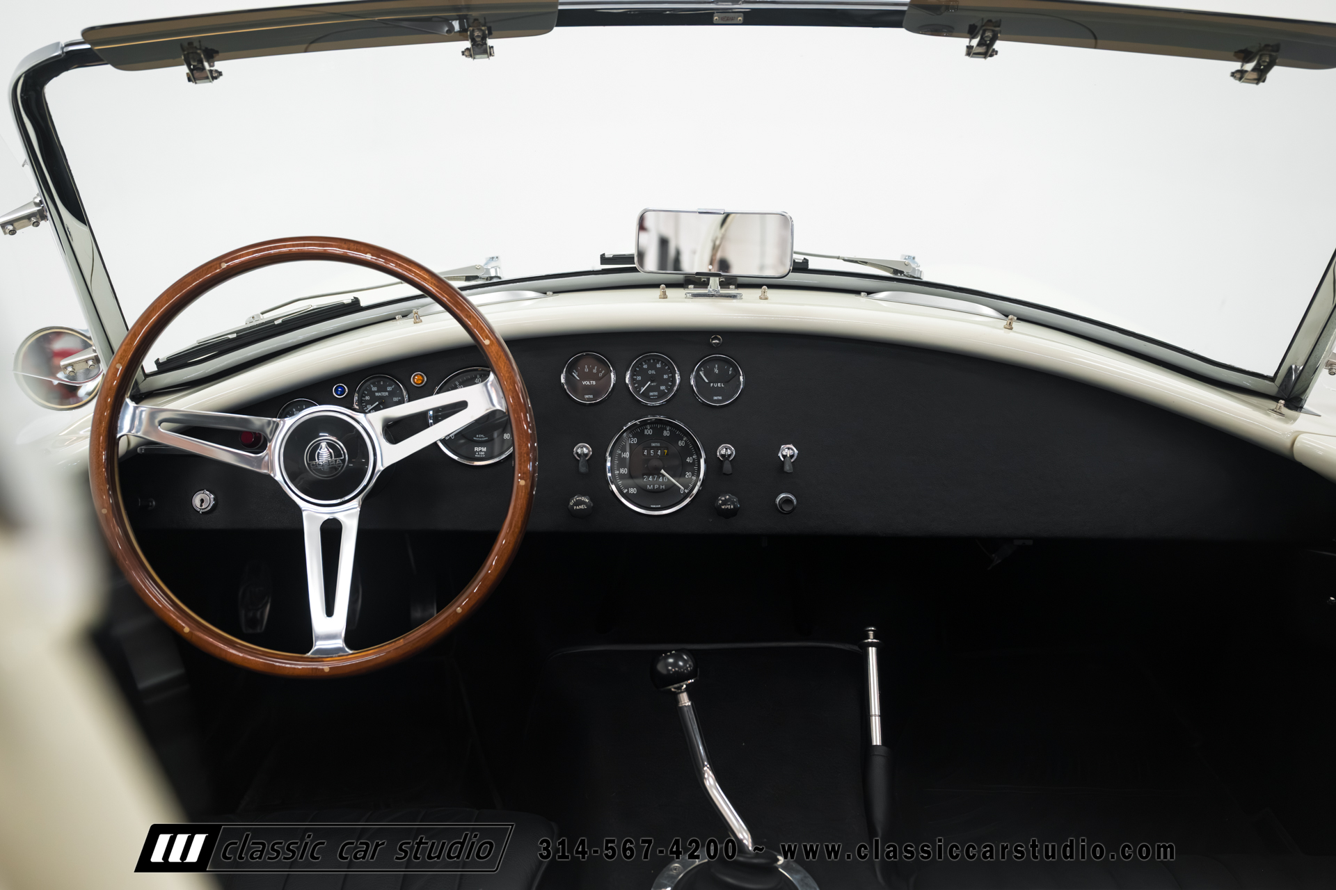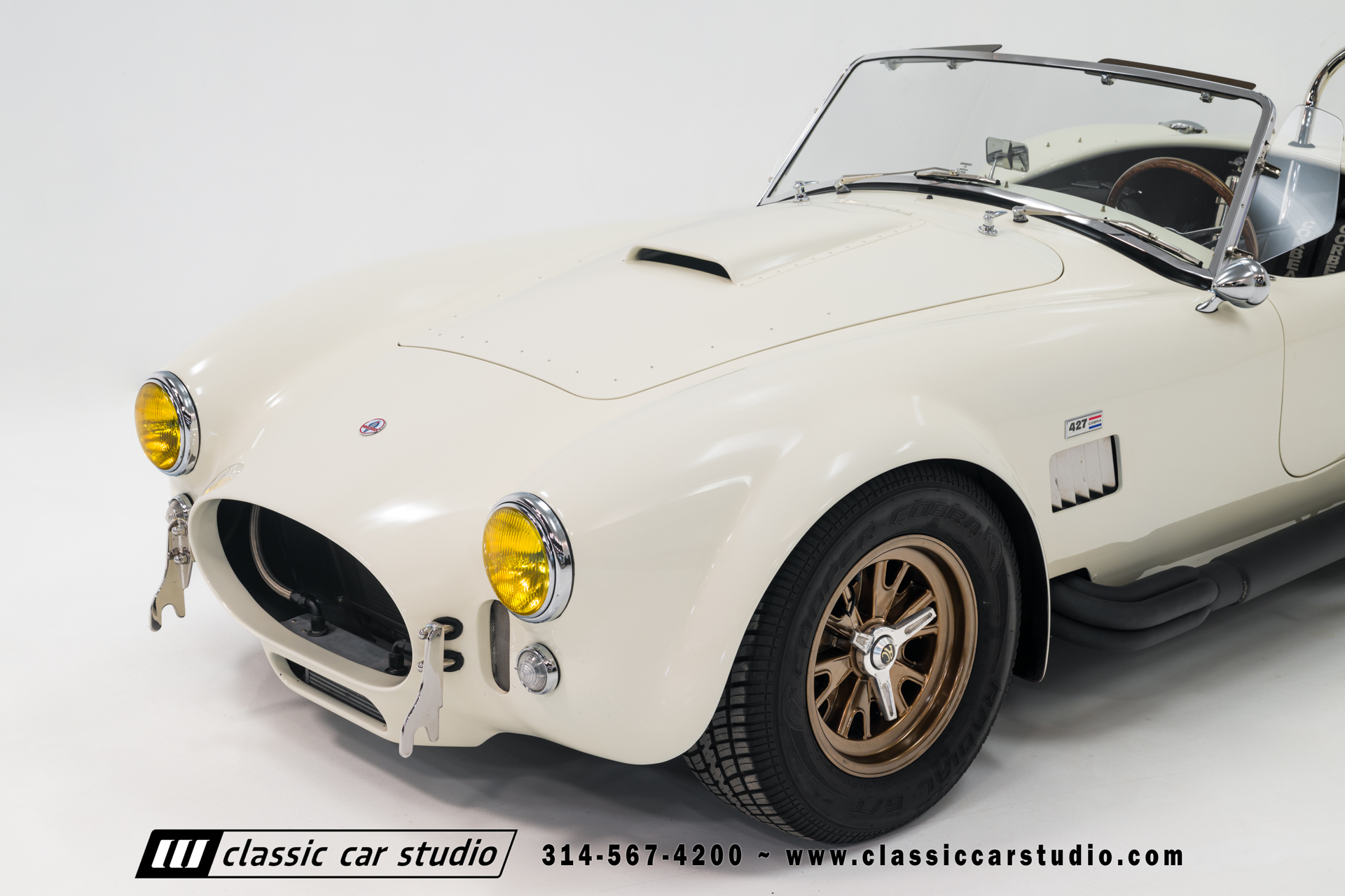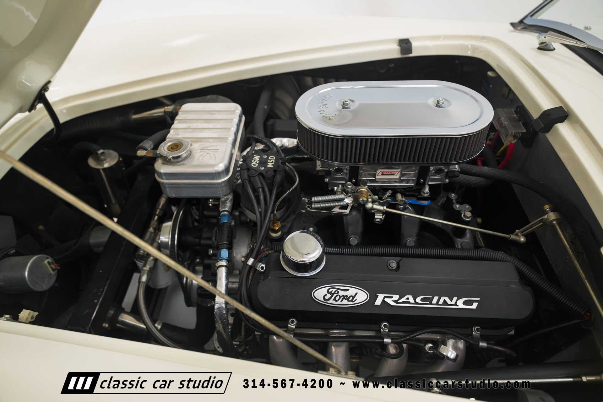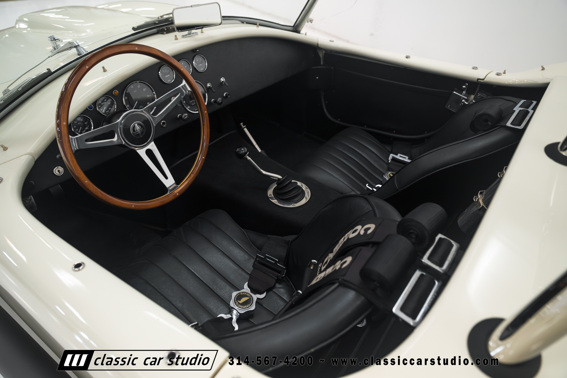Under the hood sits a Keith Craft–built 427ci V8, featuring a Quick Fuel carburetor, Edelbrock intake manifold, AFR aluminum cylinder heads, MSD ignition, and Ford Racing valve covers. Power is sent through a five-speed manual transmission, offering an engaging driving experience with plenty of torque on tap. The side-exit exhaust gives this roadster an unmistakable, aggressive sound.