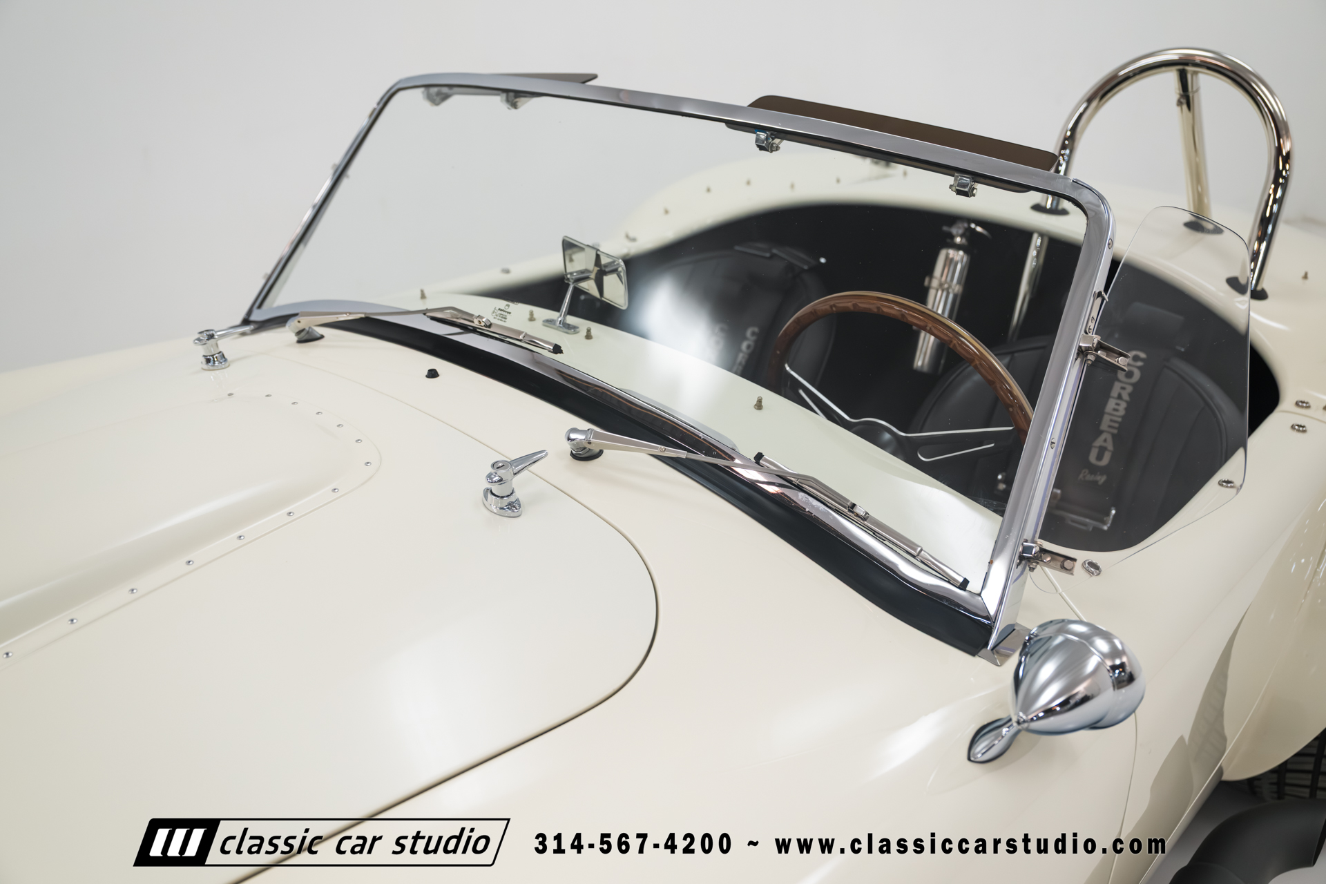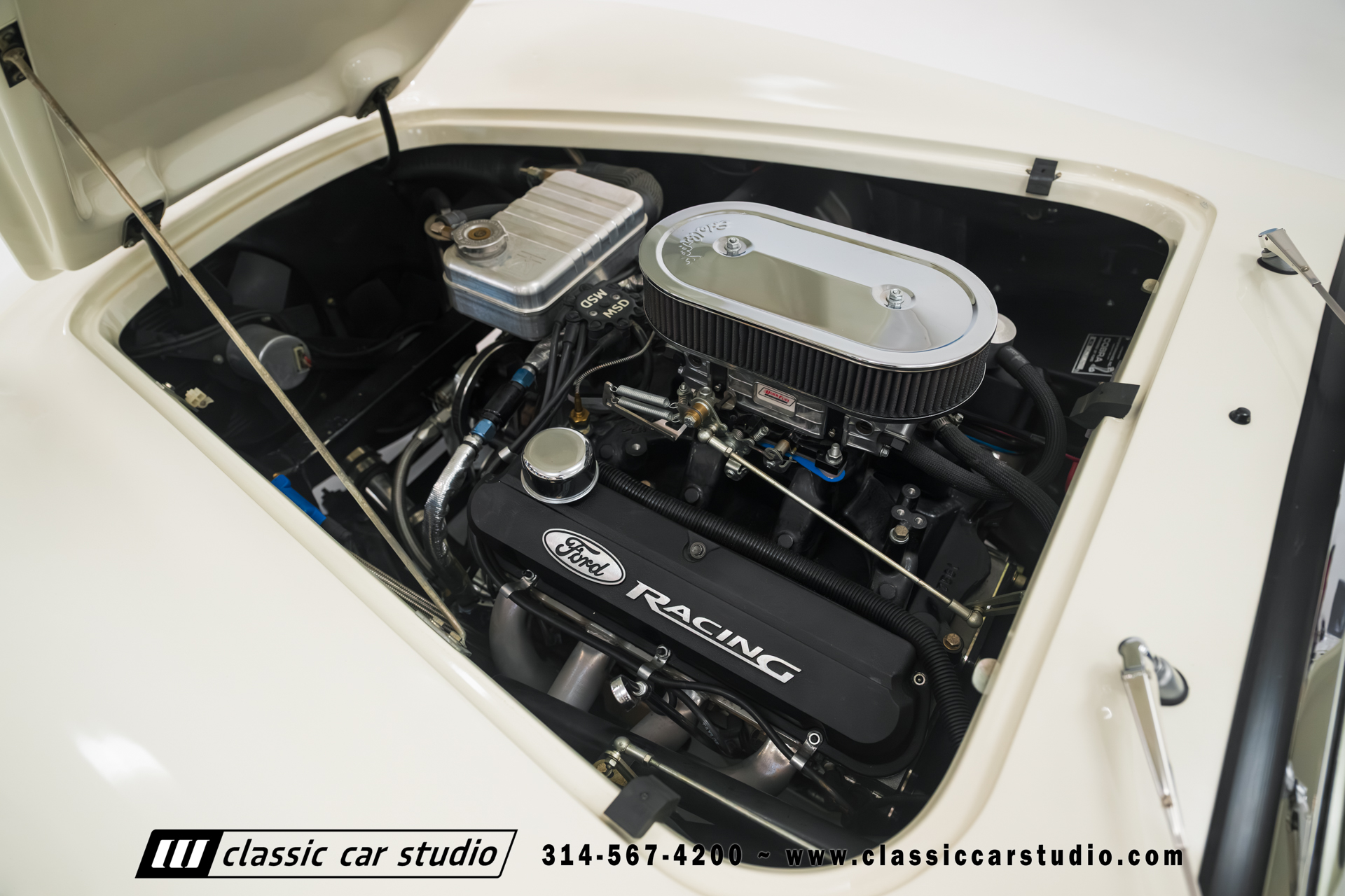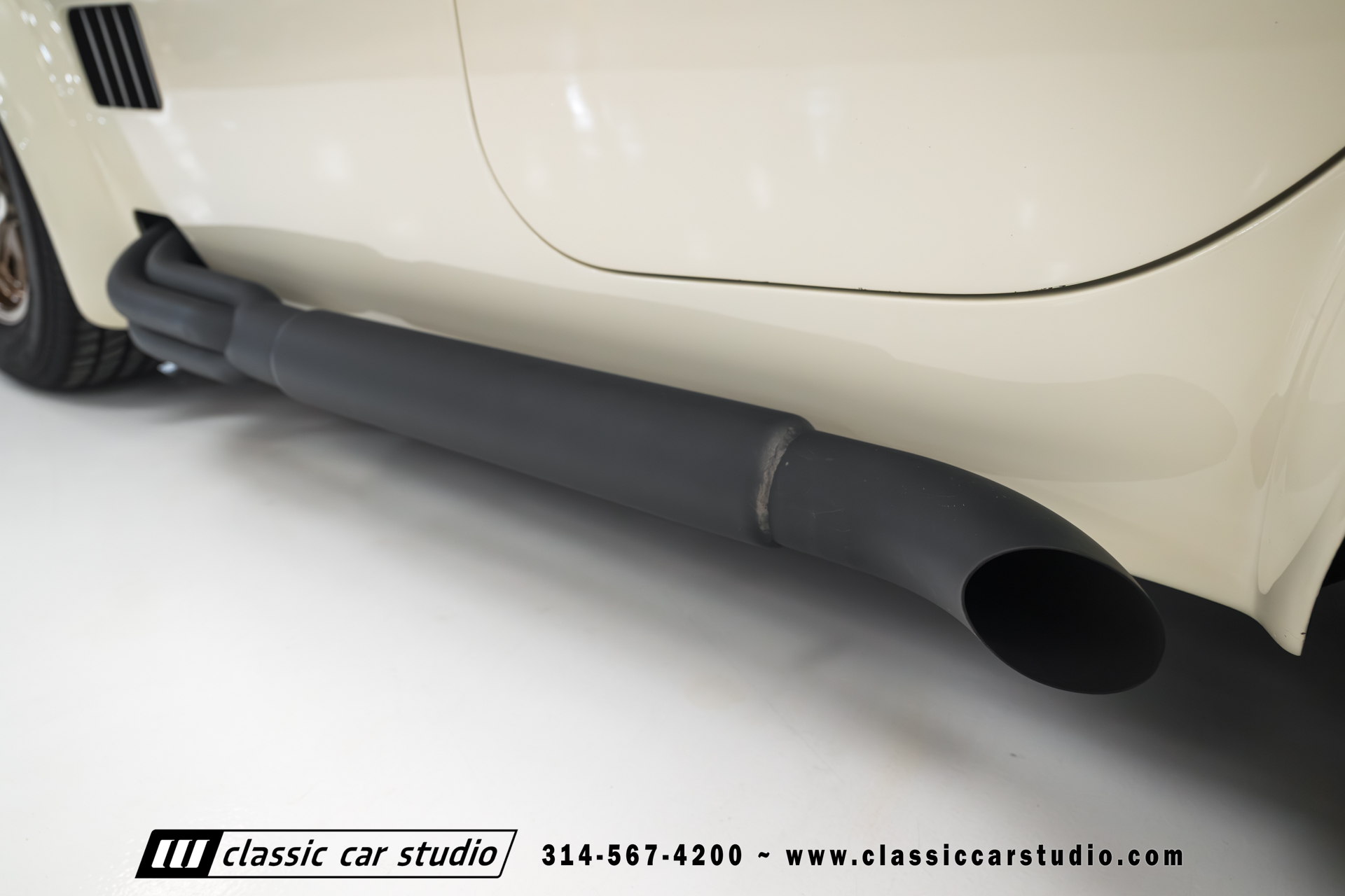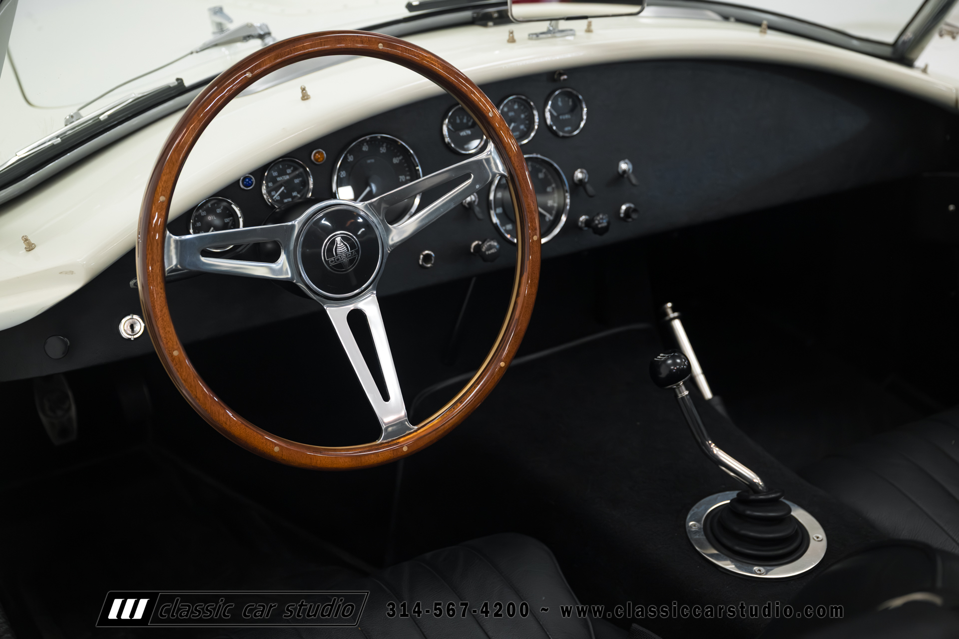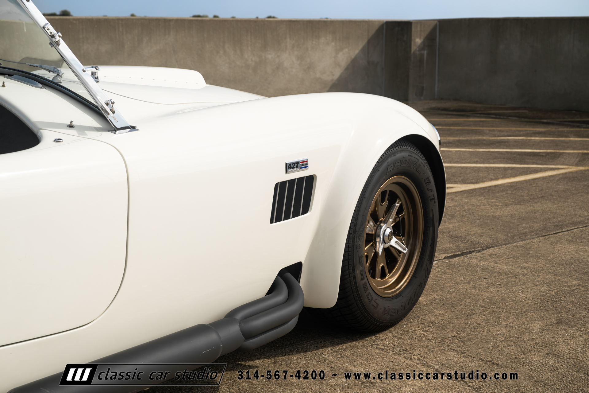 Under the hood sits a Keith Craft–built 427ci V8, featuring a Quick Fuel carburetor, Edelbrock intake manifold, AFR aluminum cylinder heads, MSD ignition, and Ford Racing valve covers. Power is sent through a five-speed manual transmission, offering an engaging driving experience with plenty of torque on tap. The side-exit exhaust gives this roadster an unmistakable, aggressive sound.