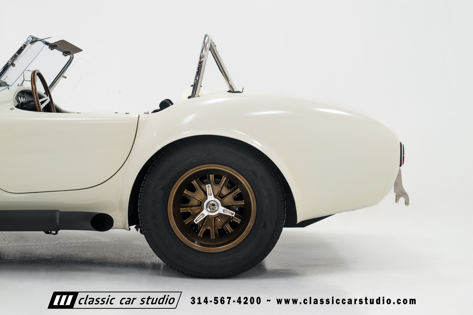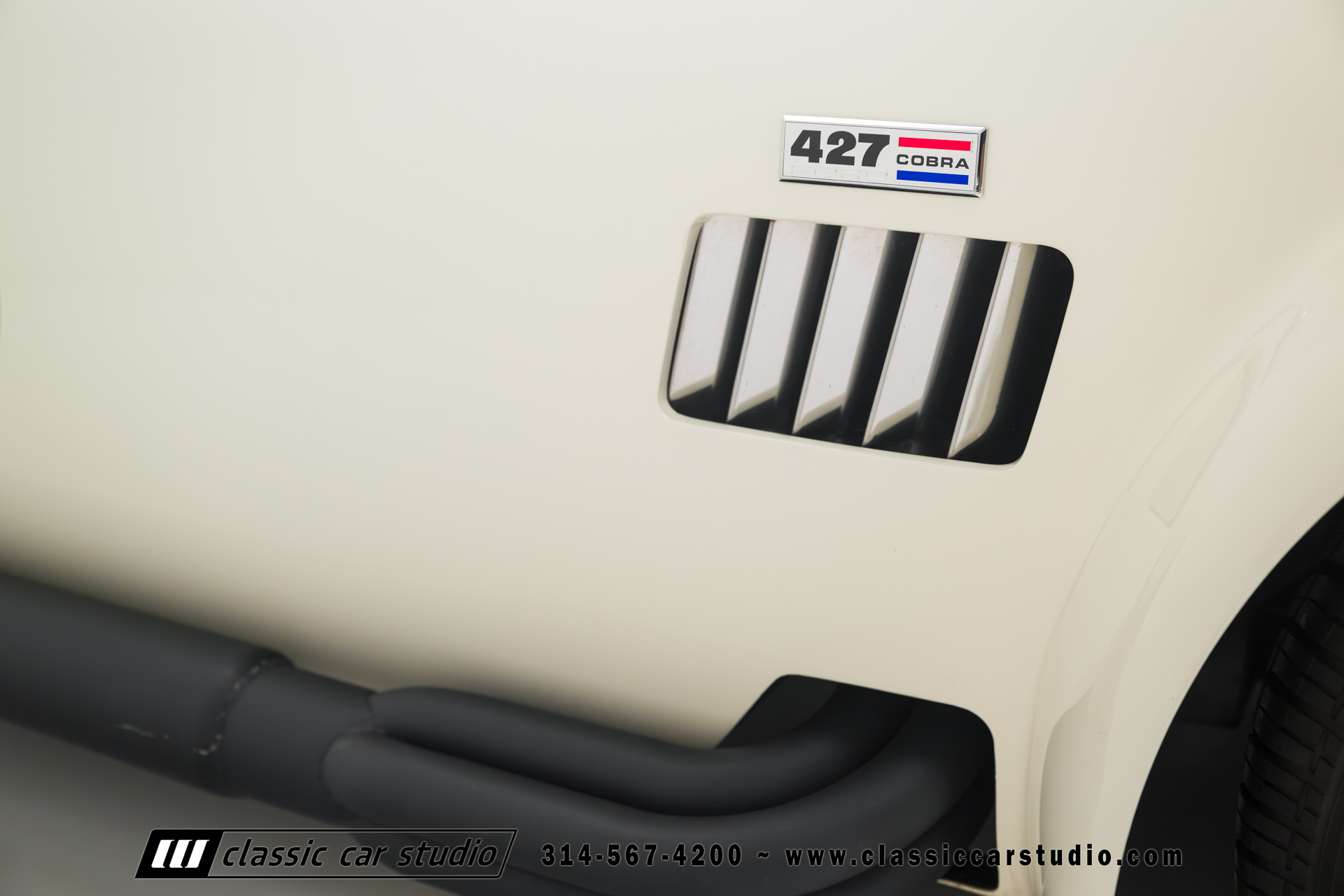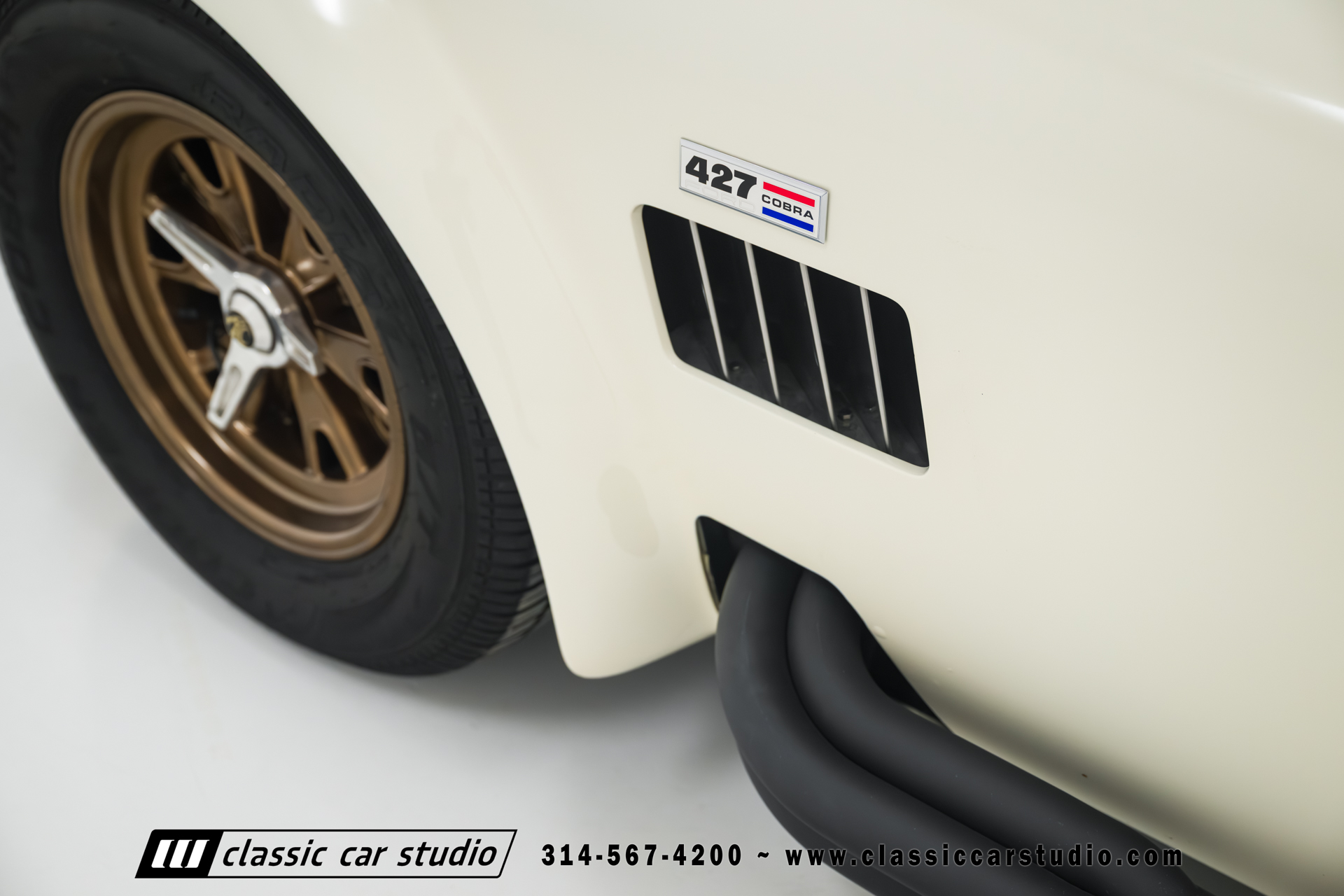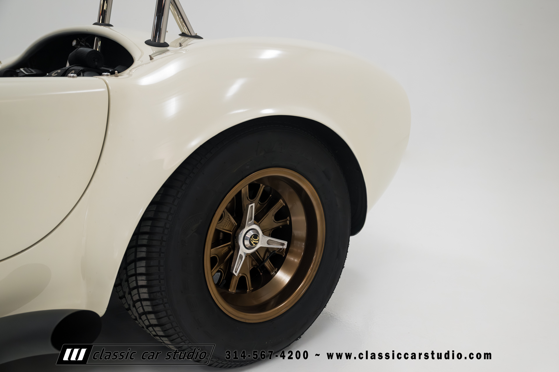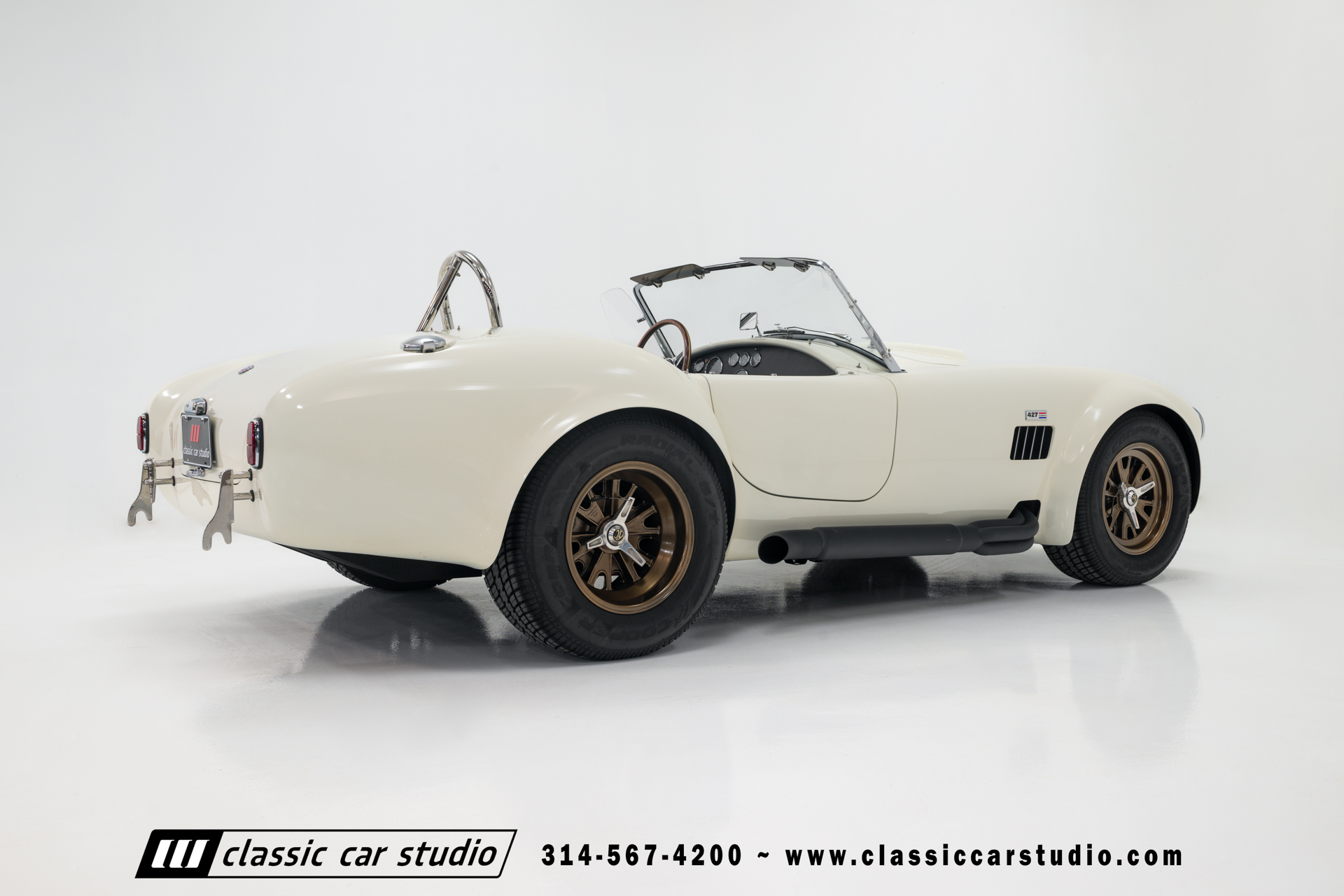 Under the hood sits a Keith Craft–built 427ci V8, featuring a Quick Fuel carburetor, Edelbrock intake manifold, AFR aluminum cylinder heads, MSD ignition, and Ford Racing valve covers. Power is sent through a five-speed manual transmission, offering an engaging driving experience with plenty of torque on tap. The side-exit exhaust gives this roadster an unmistakable, aggressive sound.