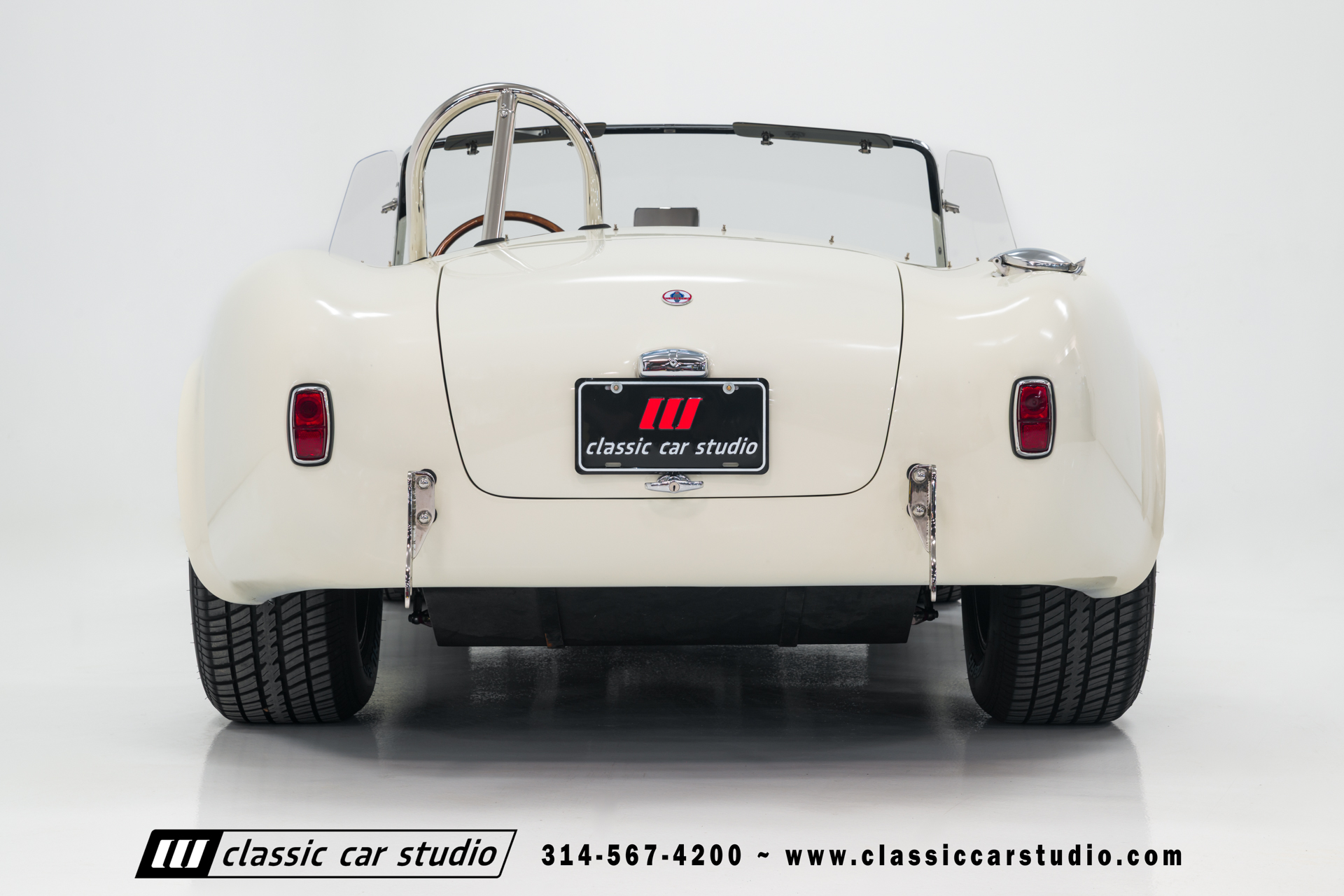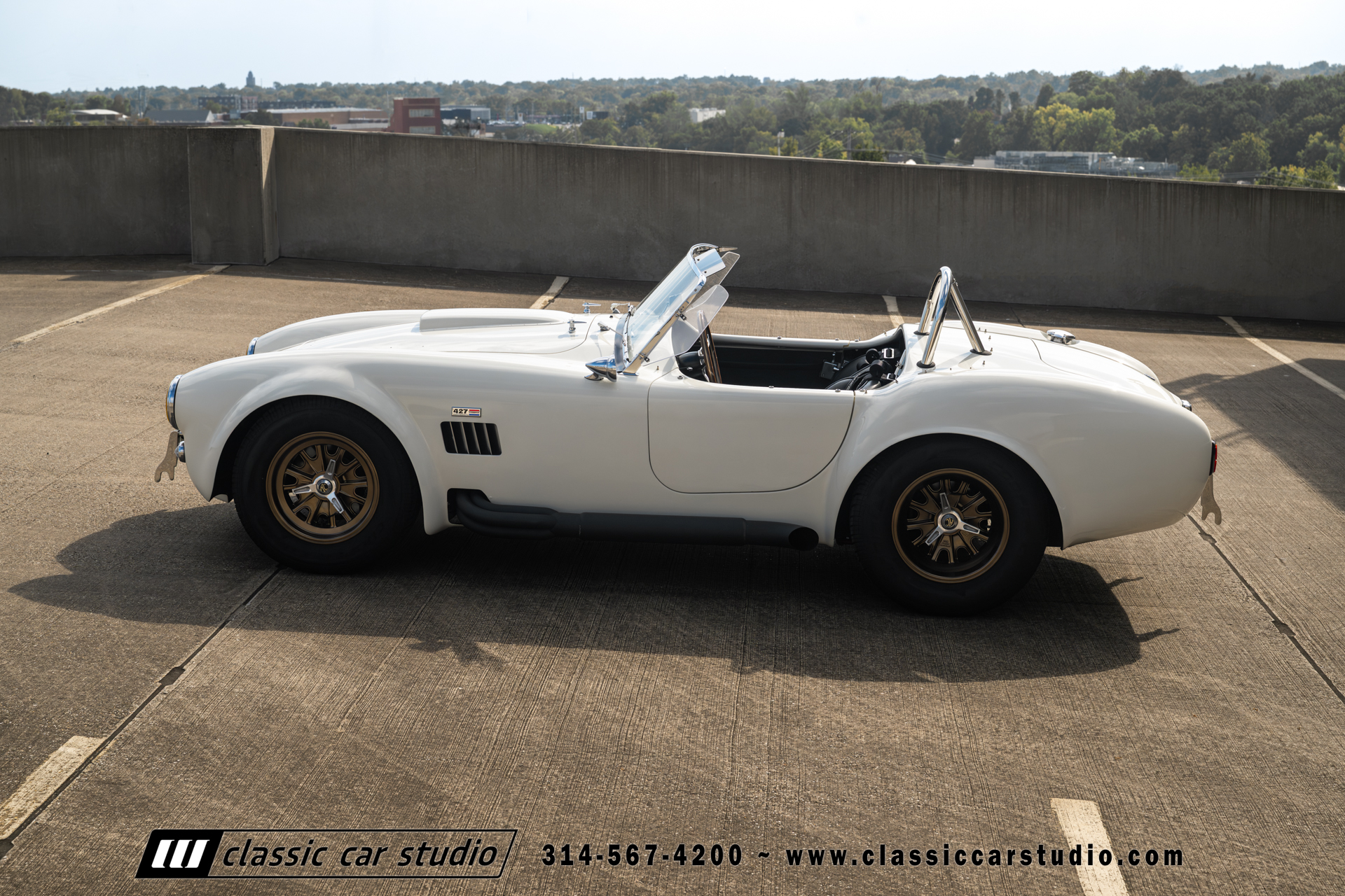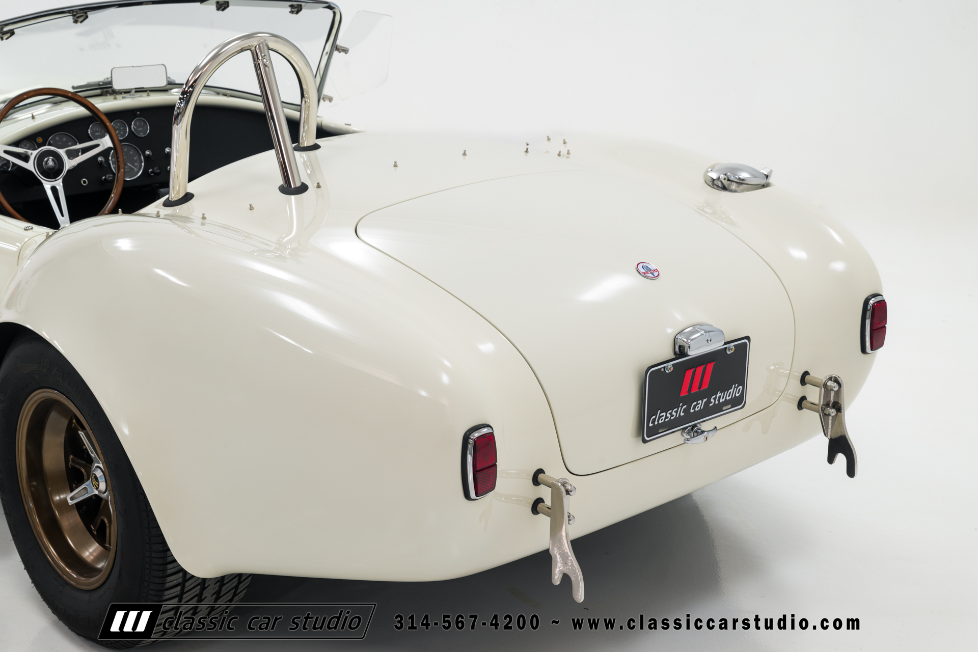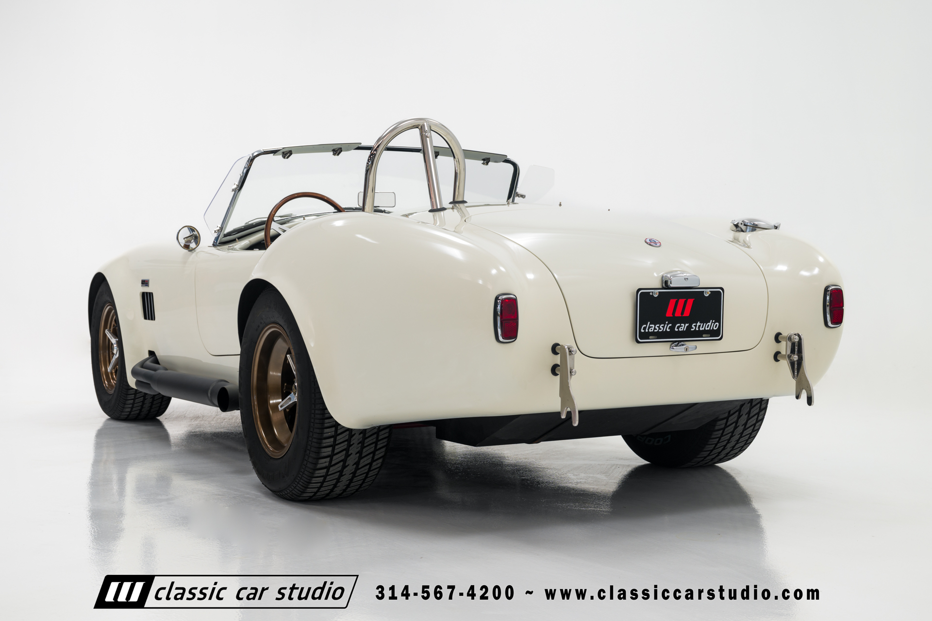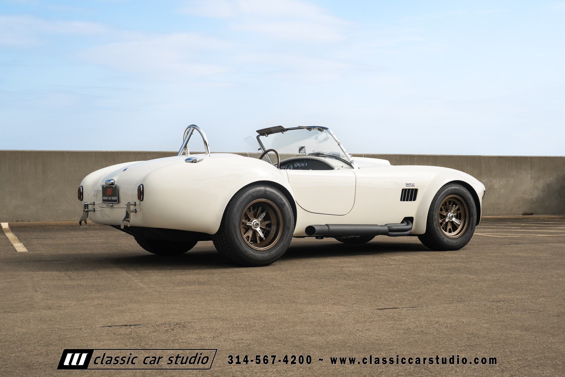 Under the hood sits a Keith Craft–built 427ci V8, featuring a Quick Fuel carburetor, Edelbrock intake manifold, AFR aluminum cylinder heads, MSD ignition, and Ford Racing valve covers. Power is sent through a five-speed manual transmission, offering an engaging driving experience with plenty of torque on tap. The side-exit exhaust gives this roadster an unmistakable, aggressive sound.