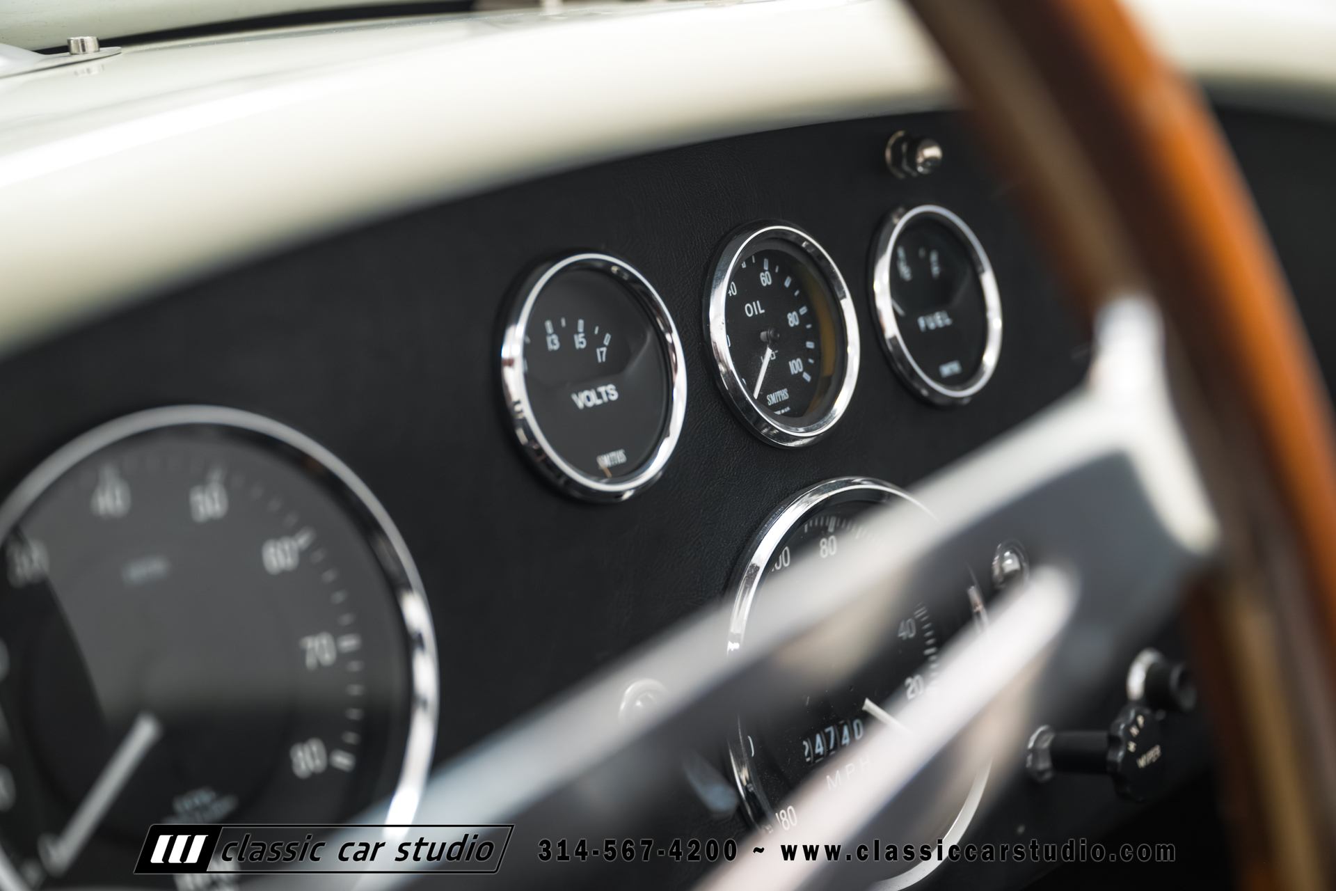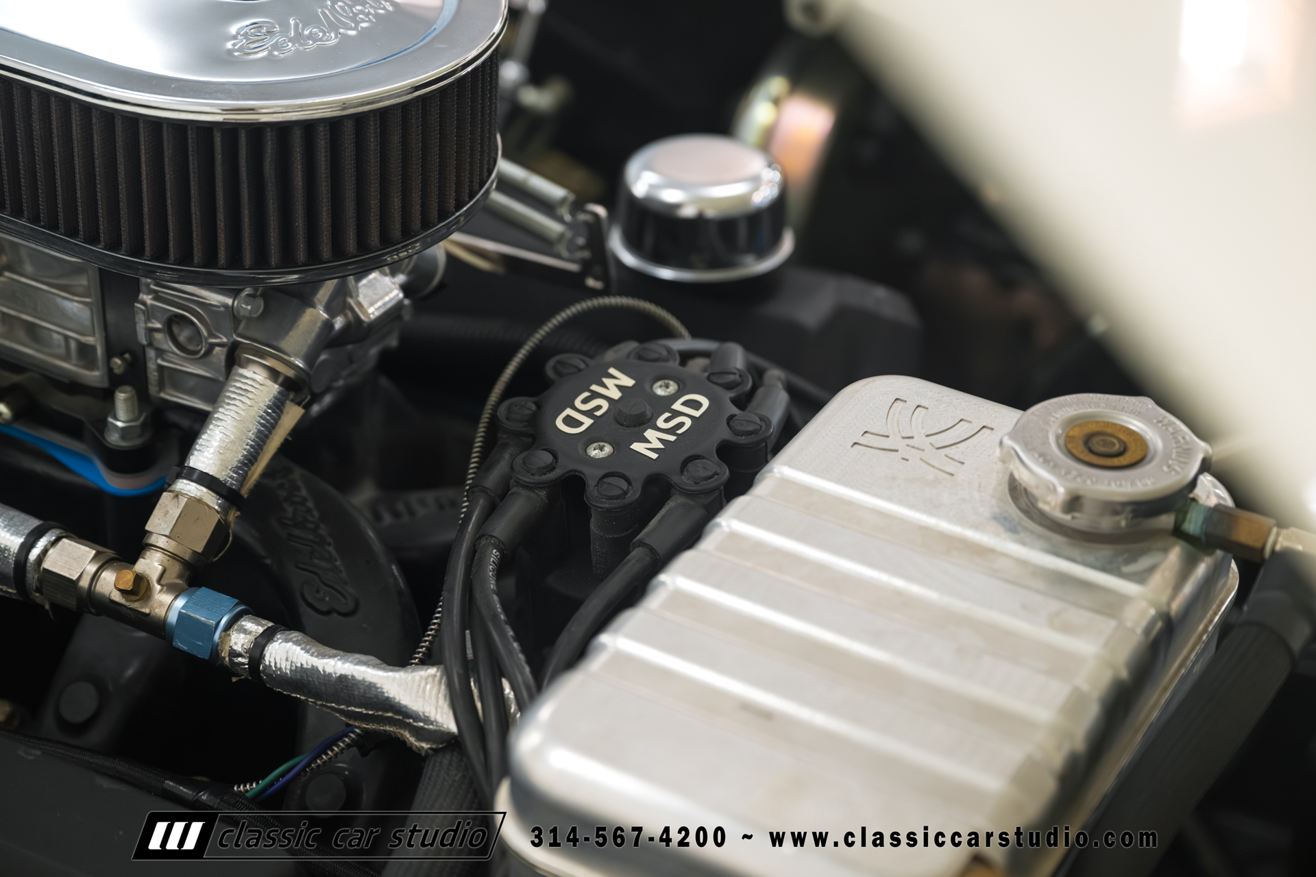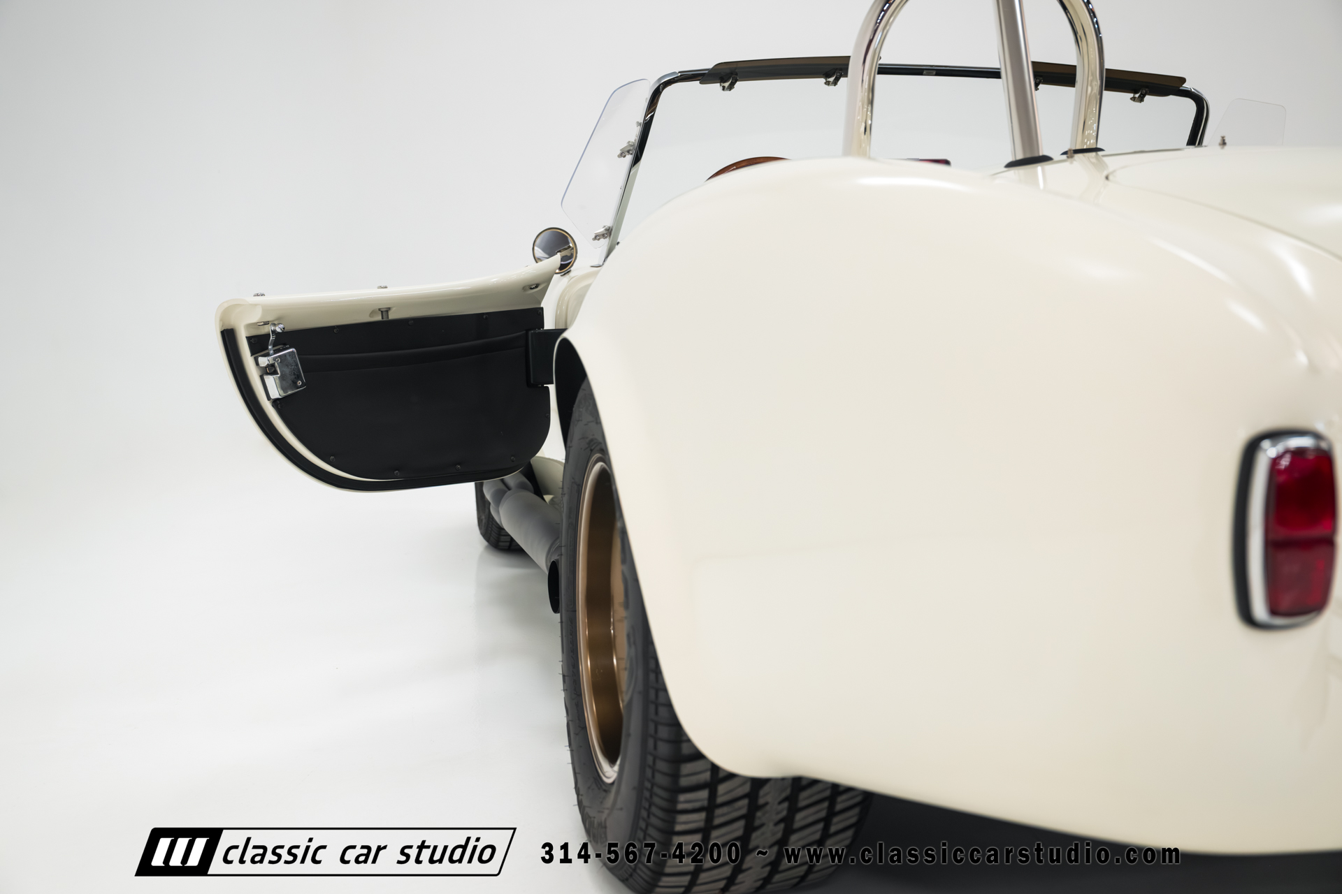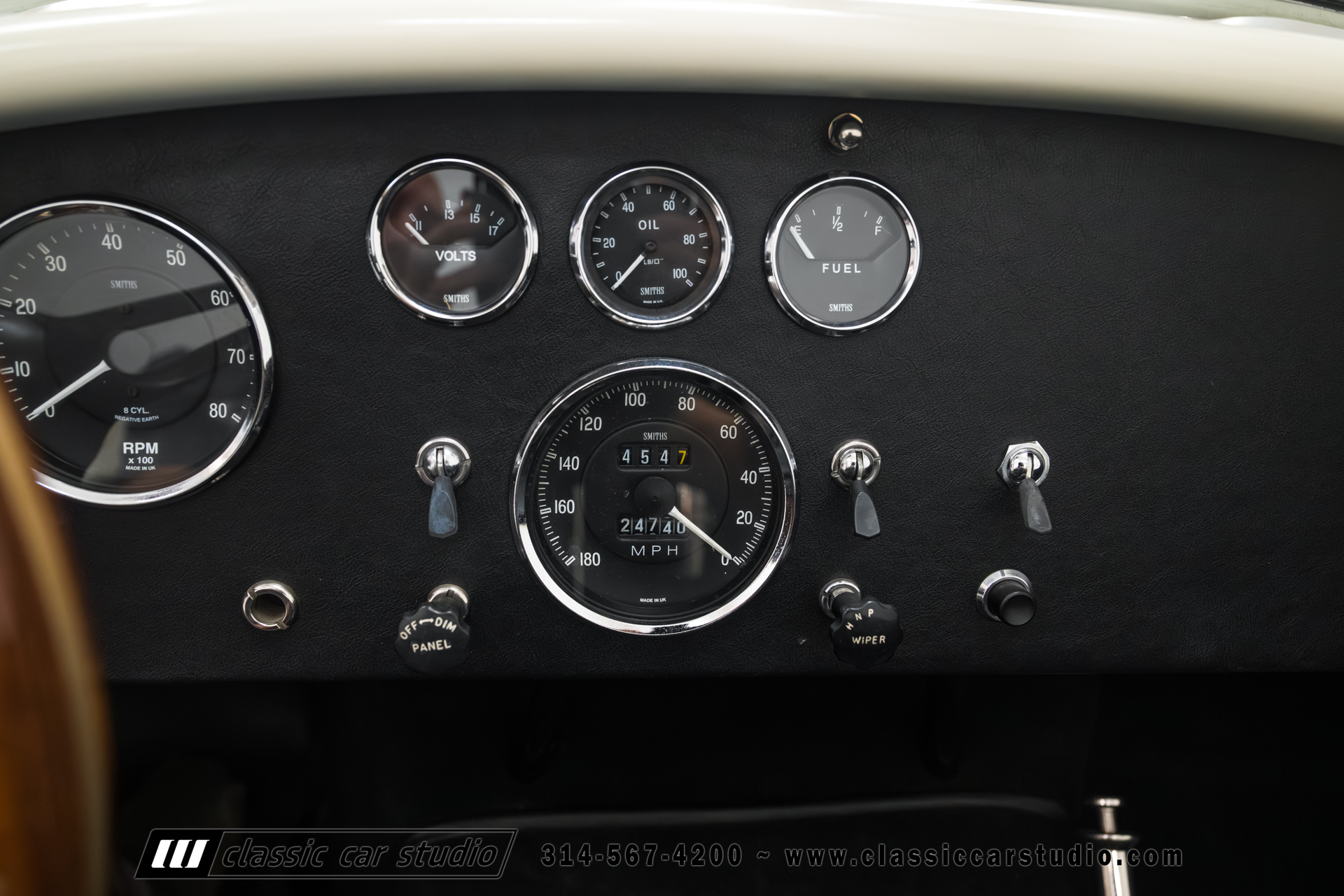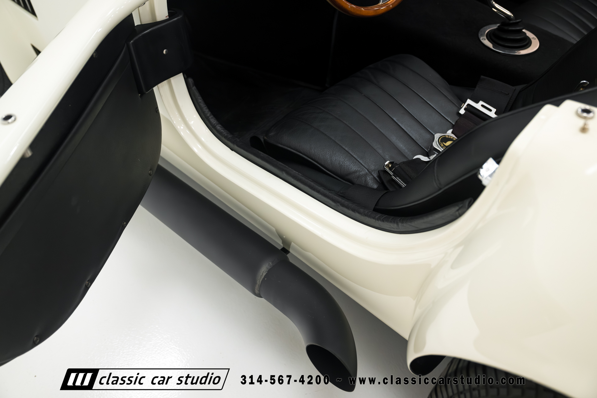 Under the hood sits a Keith Craft–built 427ci V8, featuring a Quick Fuel carburetor, Edelbrock intake manifold, AFR aluminum cylinder heads, MSD ignition, and Ford Racing valve covers. Power is sent through a five-speed manual transmission, offering an engaging driving experience with plenty of torque on tap. The side-exit exhaust gives this roadster an unmistakable, aggressive sound.