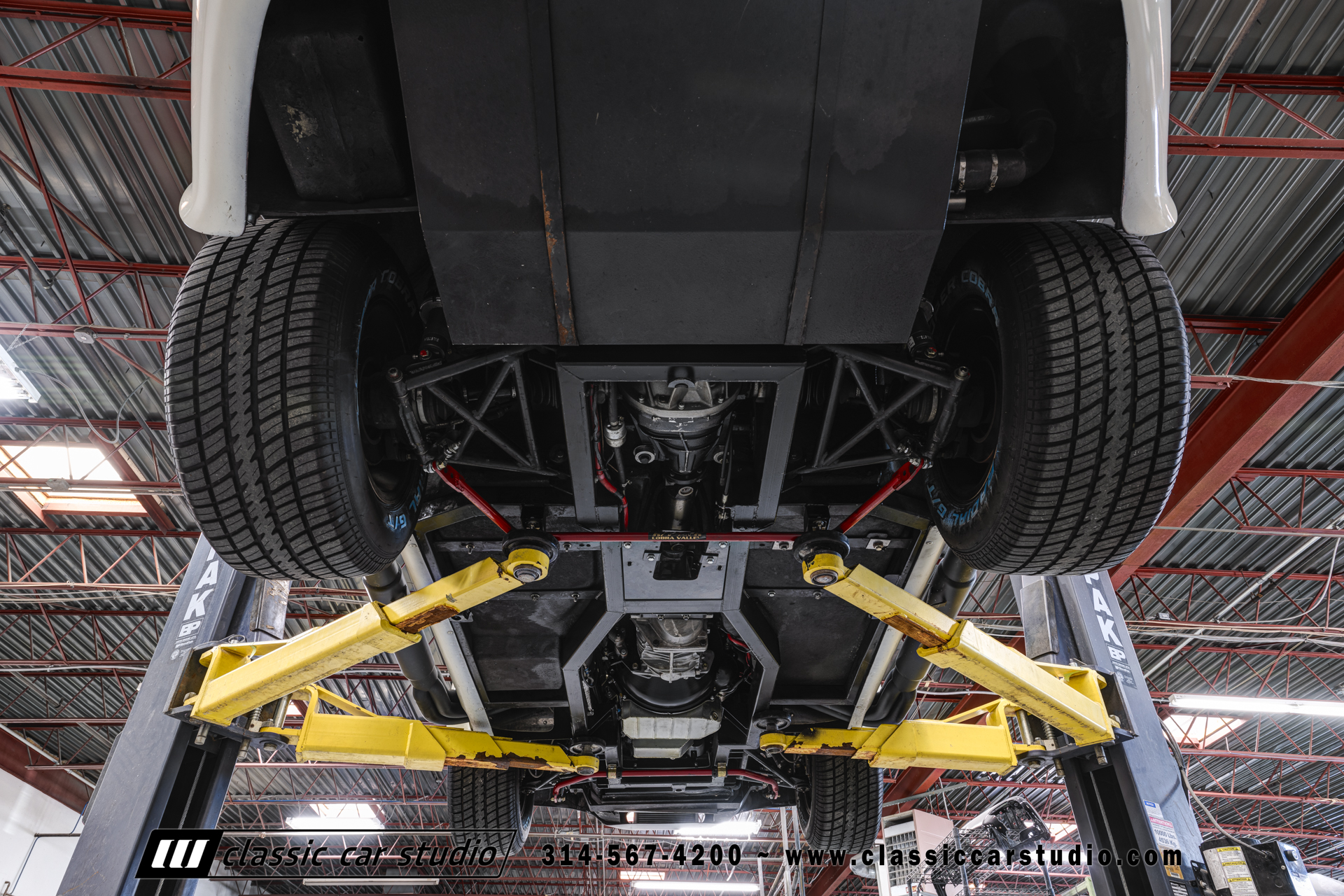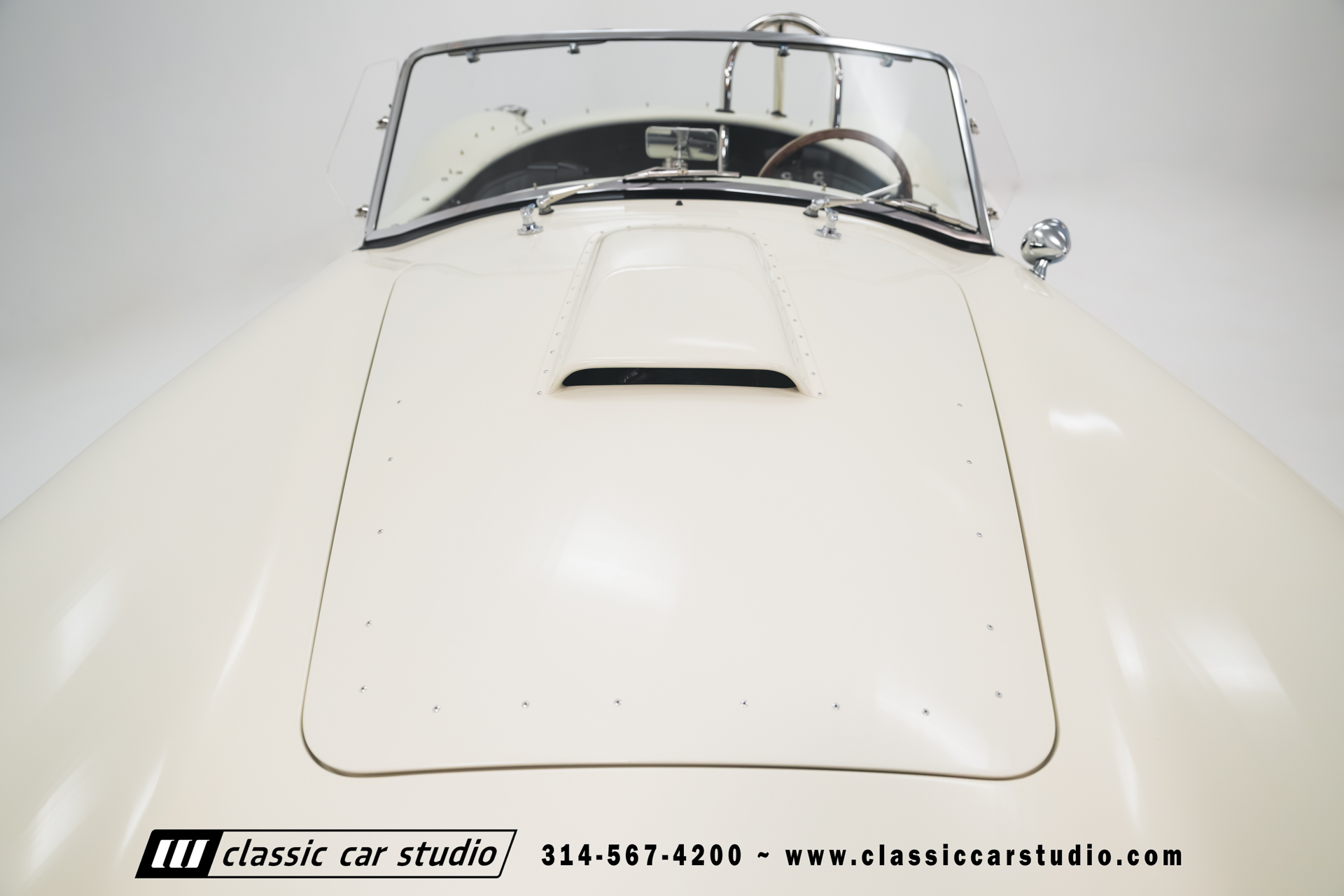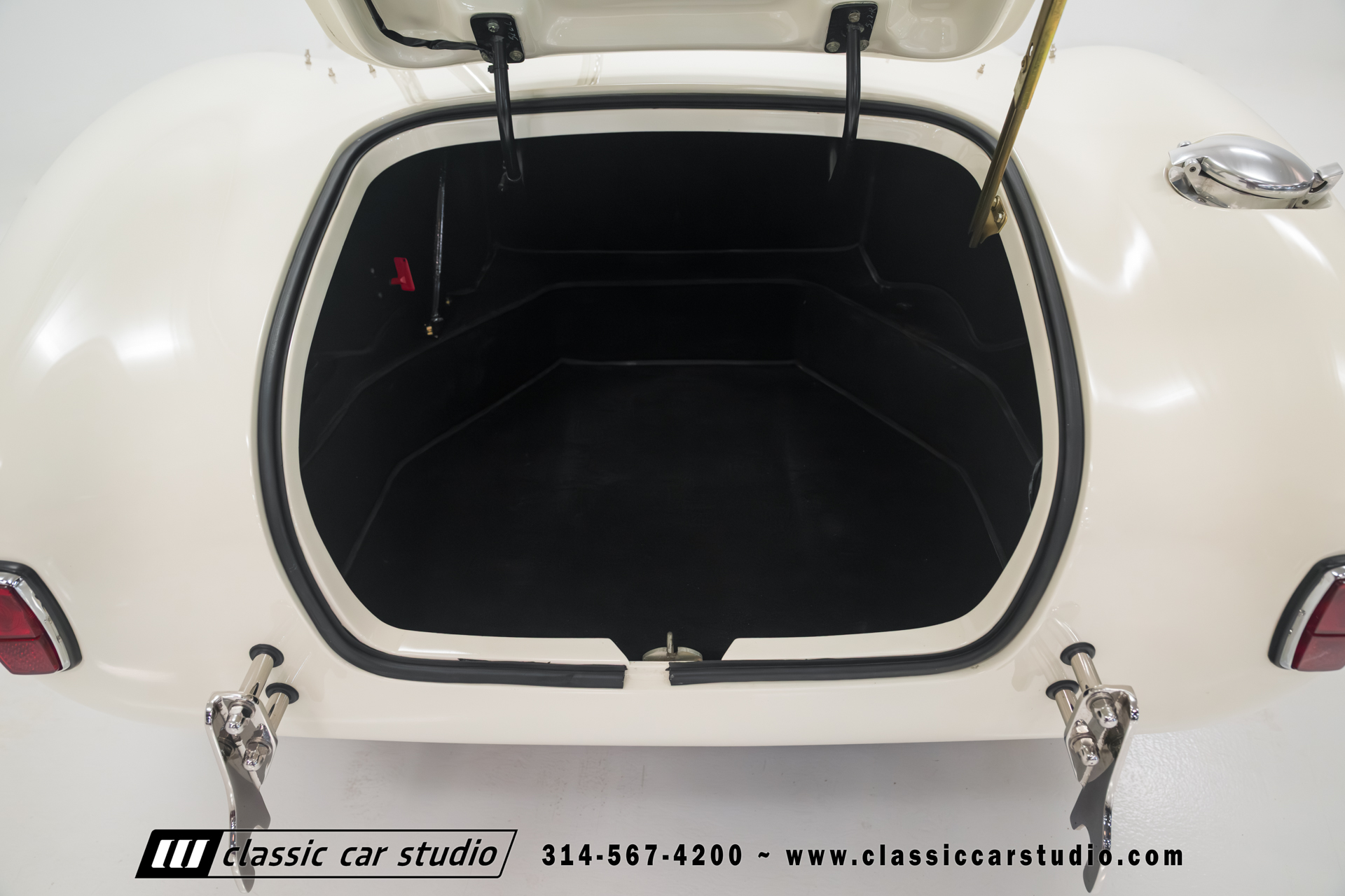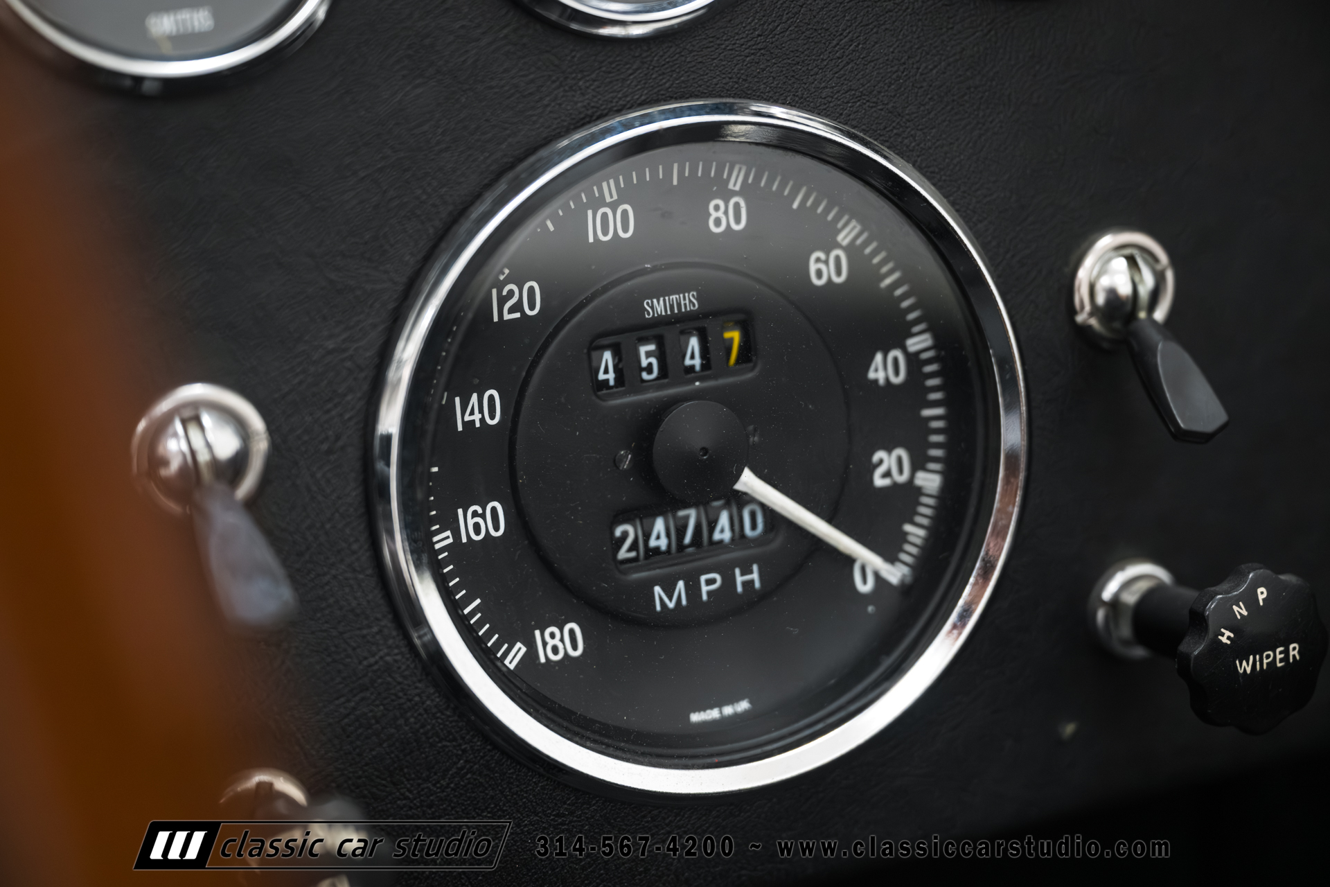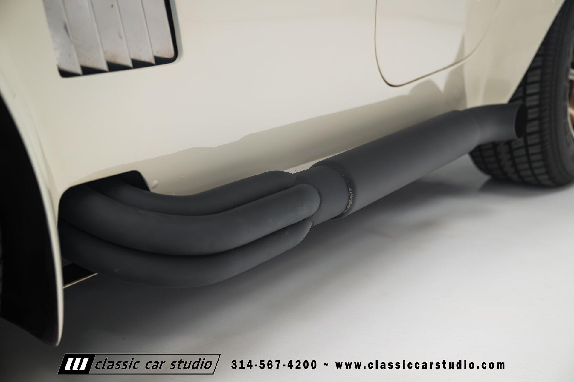 Under the hood sits a Keith Craft–built 427ci V8, featuring a Quick Fuel carburetor, Edelbrock intake manifold, AFR aluminum cylinder heads, MSD ignition, and Ford Racing valve covers. Power is sent through a five-speed manual transmission, offering an engaging driving experience with plenty of torque on tap. The side-exit exhaust gives this roadster an unmistakable, aggressive sound.