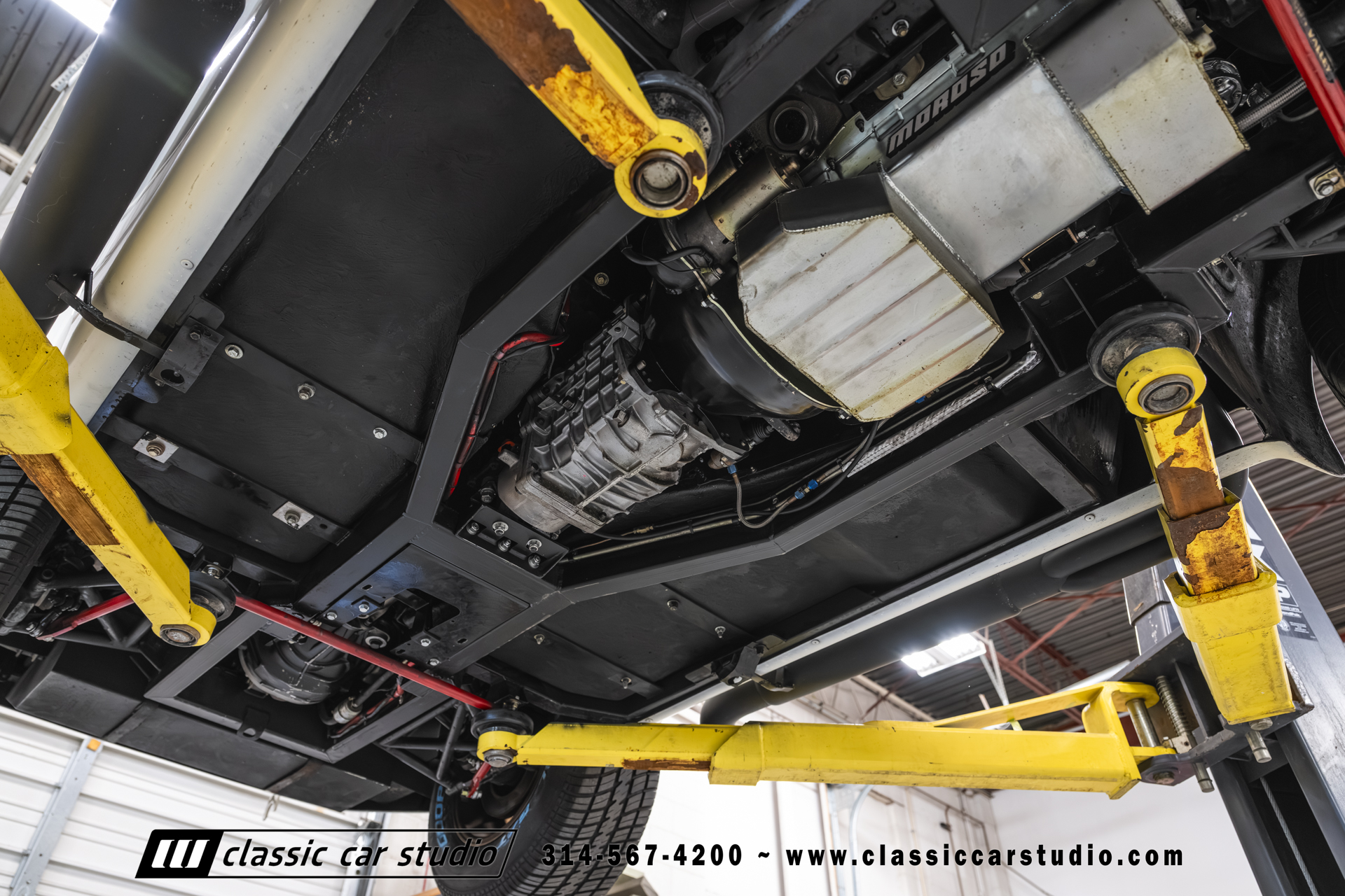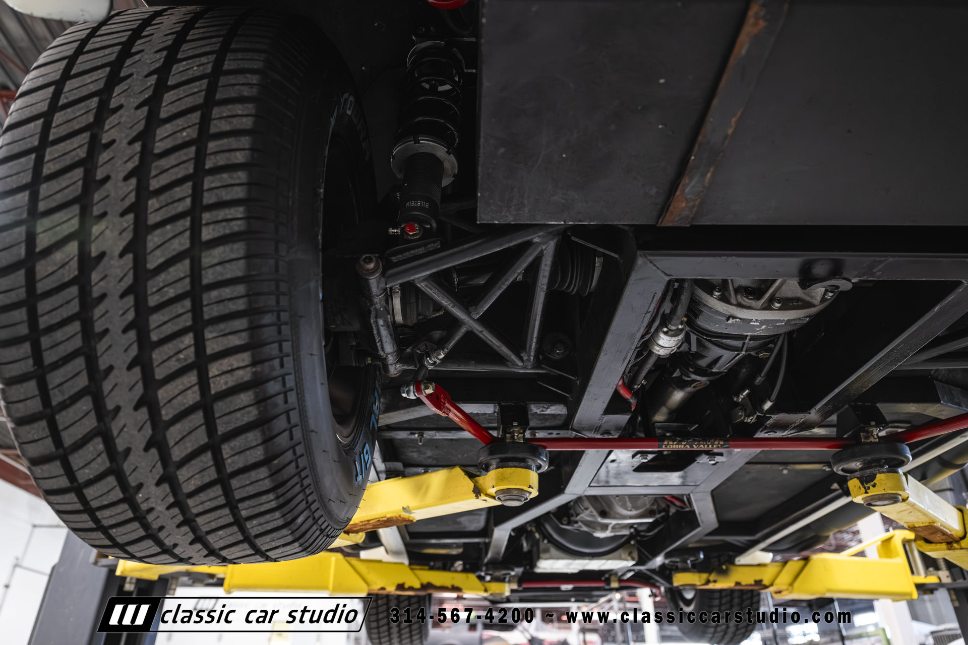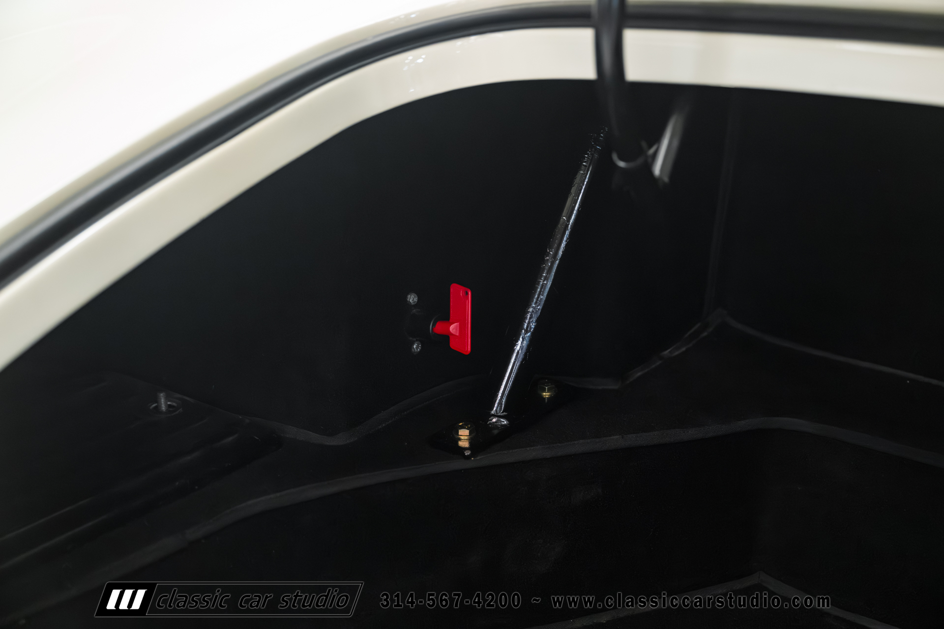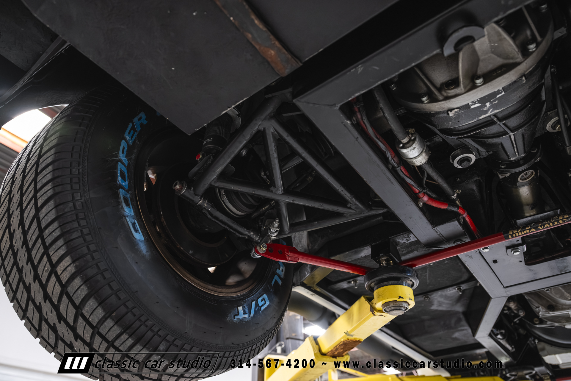 Inside, you’ll find black leather low-back bucket seats with Corbeau multi-point racing harnesses. A wood-rimmed steering wheel and dash-mounted rearview mirror keep the vintage feel authentic, while a fire extinguisher mounted between the seats adds a finishing touch of race-ready detail.