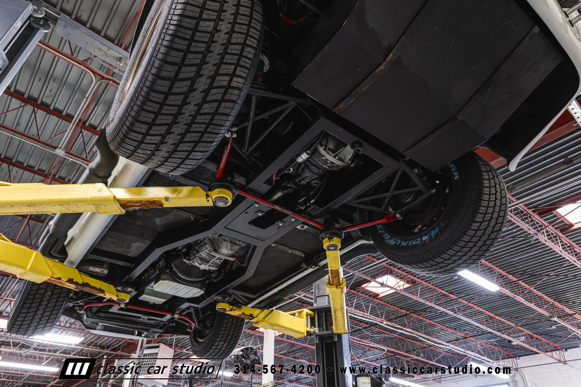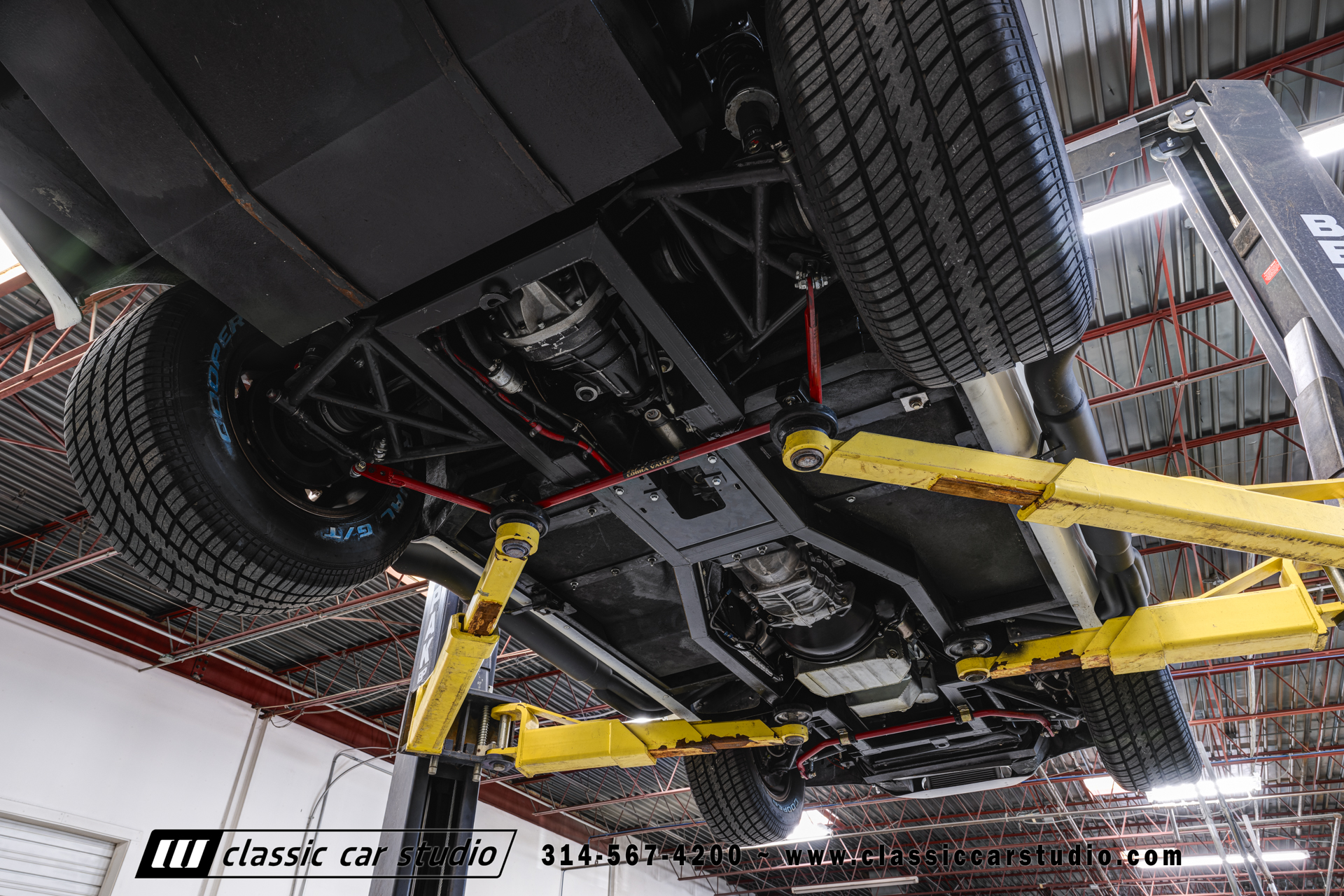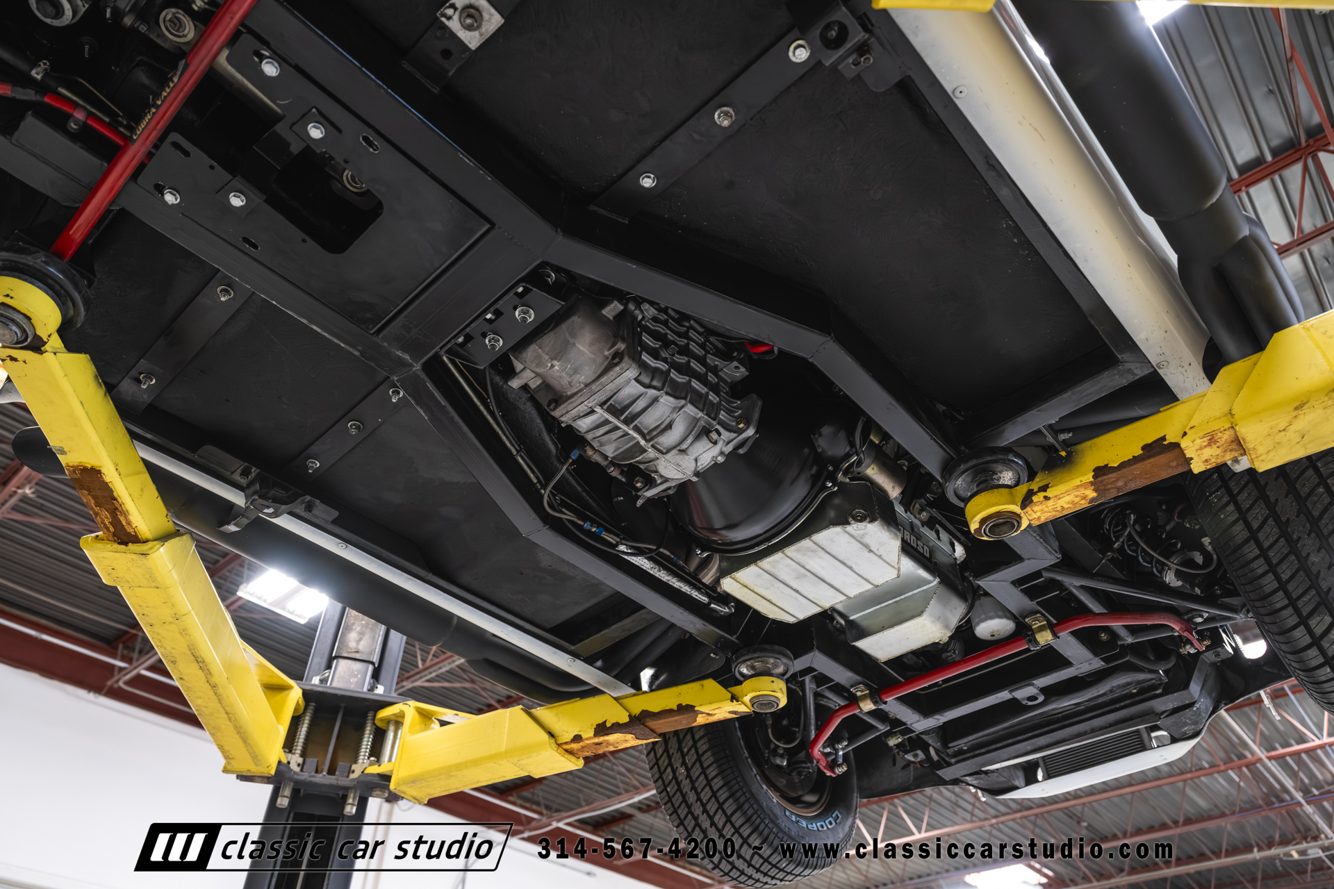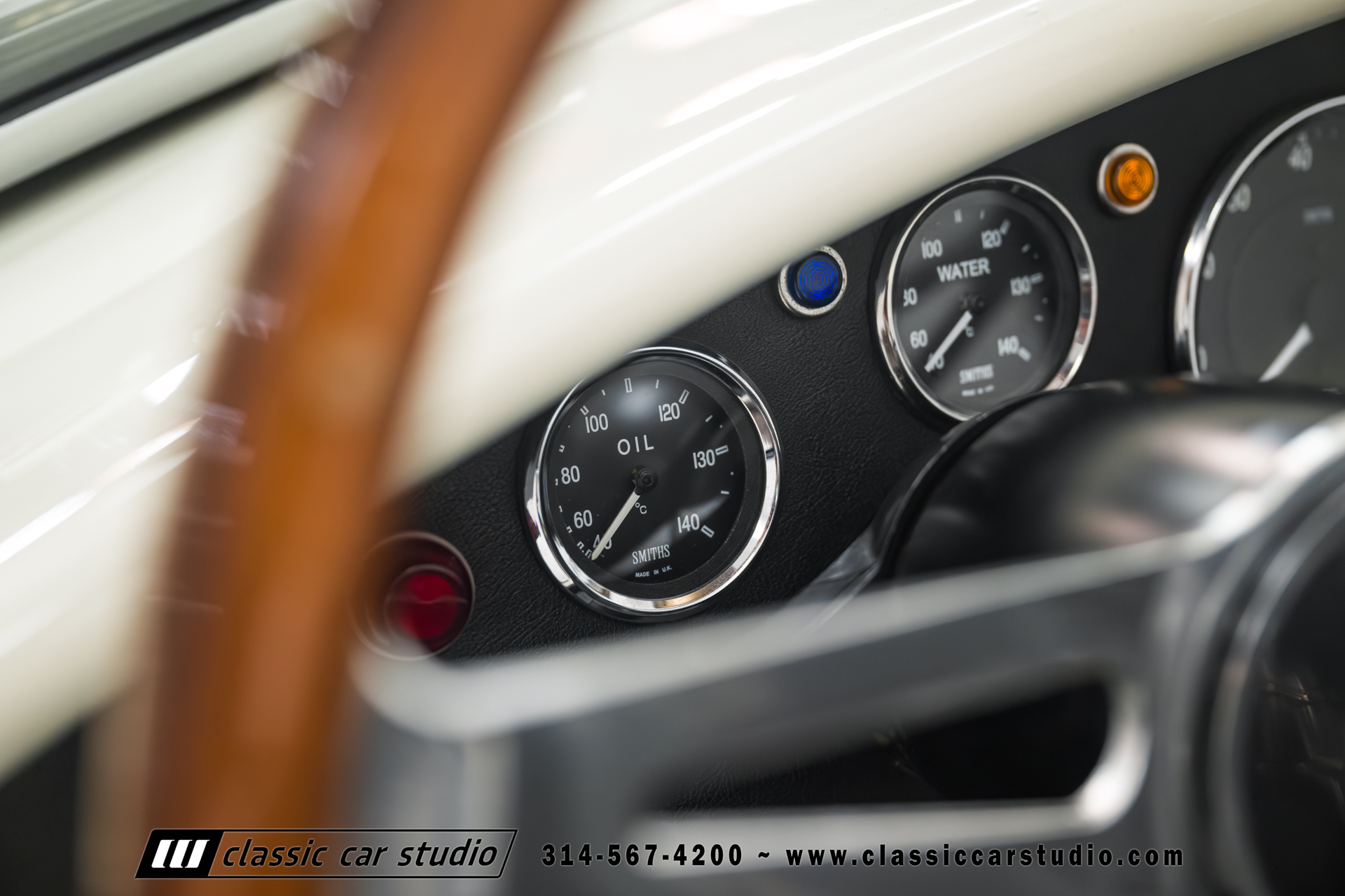 Inside, you’ll find black leather low-back bucket seats with Corbeau multi-point racing harnesses. A wood-rimmed steering wheel and dash-mounted rearview mirror keep the vintage feel authentic, while a fire extinguisher mounted between the seats adds a finishing touch of race-ready detail.
