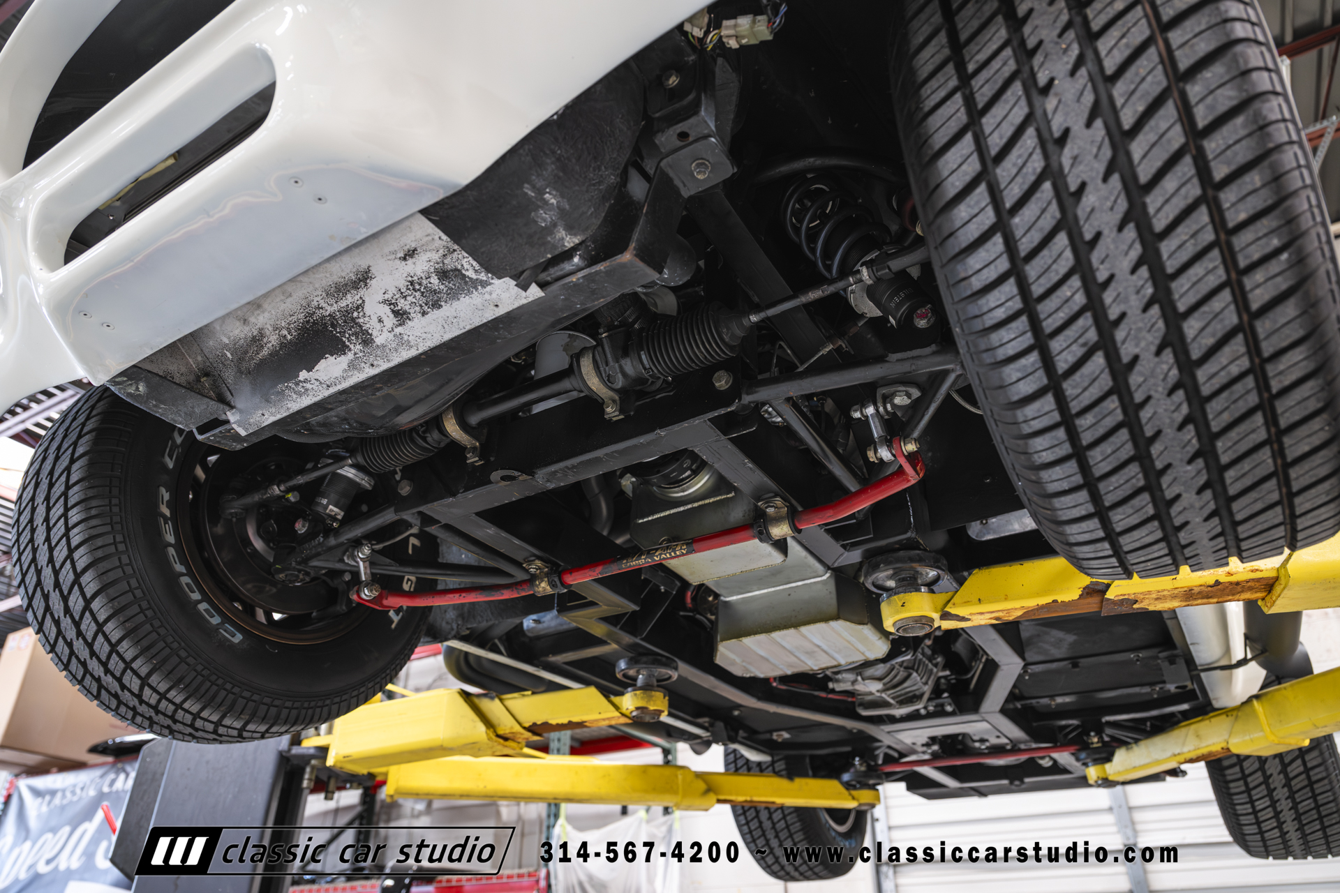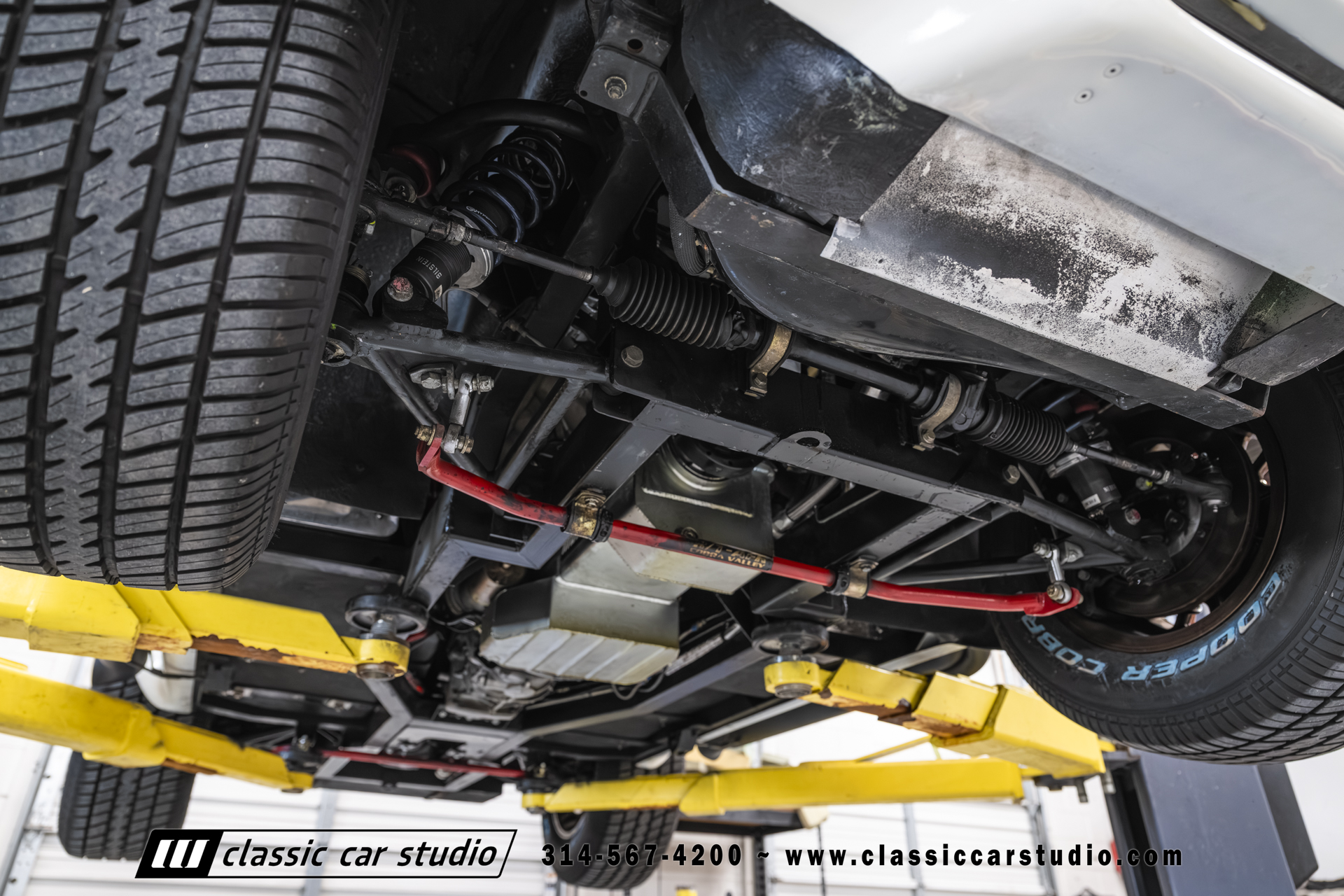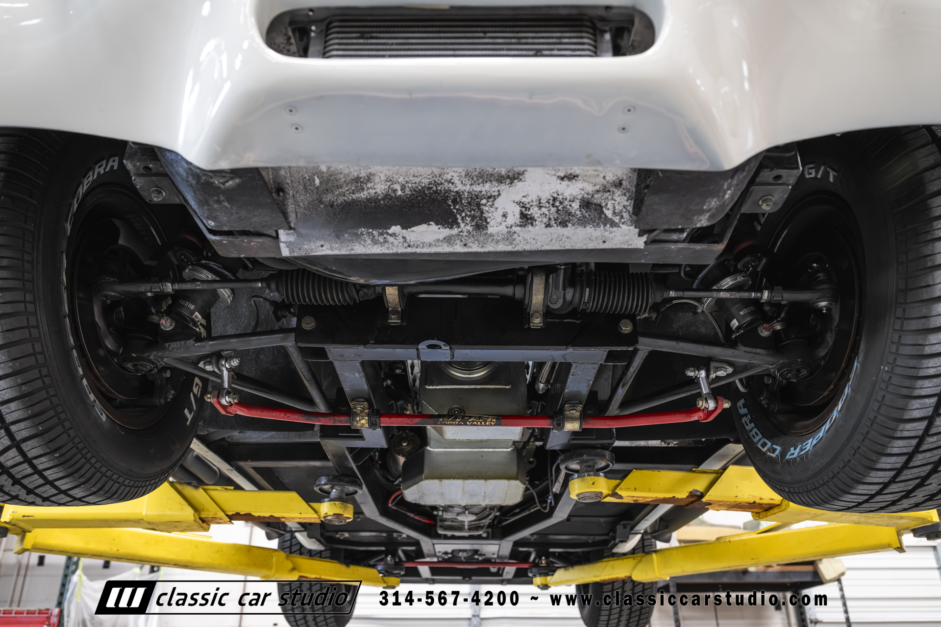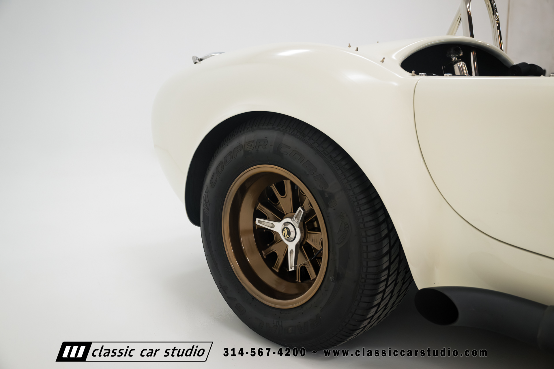 The MKIII rides on adjustable Bilstein coilovers and Cobra Valley sway bars, delivering confident handling and a smooth ride. Rack-and-pinion steering provides precise control, while four-wheel disc brakes with Wilwood front calipers ensure reliable stopping power. The car sits on 15-inch bronze Halibrand-style wheels wrapped in Cooper Cobra Radial G/T tires, completing the period-correct stance.