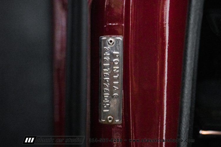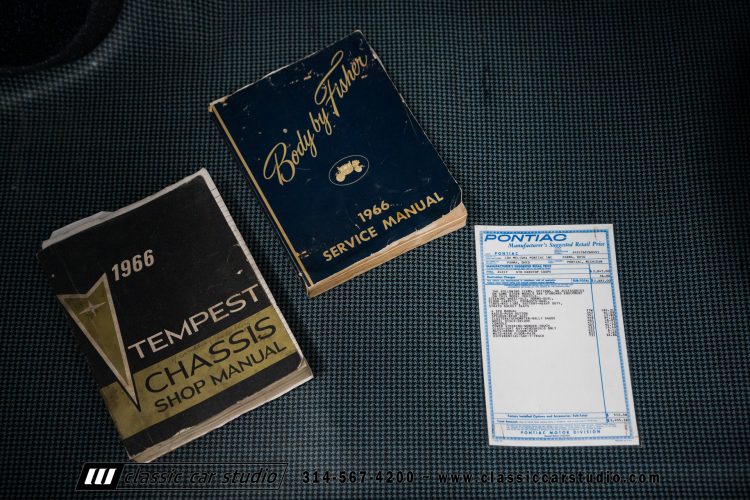 The engine was cast on March 10th, 1966 and the engine casting number is 9778789. It’s important to note that GM did not stamp VIN codes on these motors until late 1967, so calling them “matching numbers” would not be the correct usage of the term. What we can say about this car is that the engine was cast a few months before the build date of the car and that it is a WT code that matches the PHS docs we have with the car. During the restoration, a Tri-Power setup was added to the car, however, the correct 4bbl intake, carb, and air cleaner have been retained with the GTO. The GTO is equipped with the correct 4-speed wide ratio transmission and YH safety track 3.55 gears.