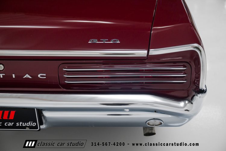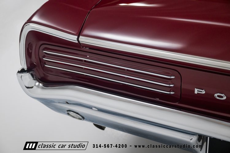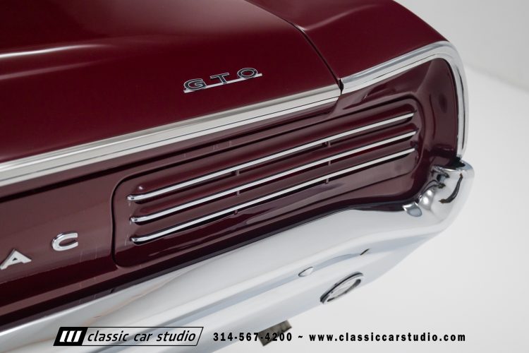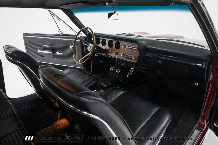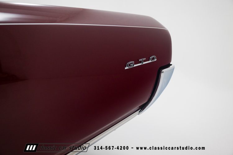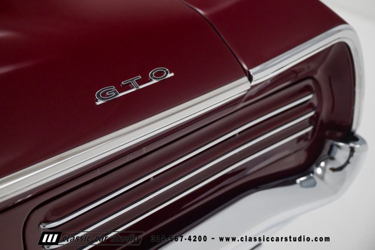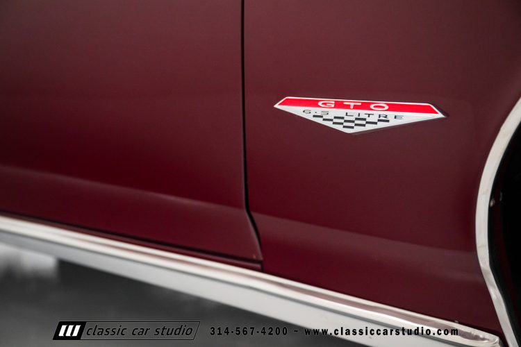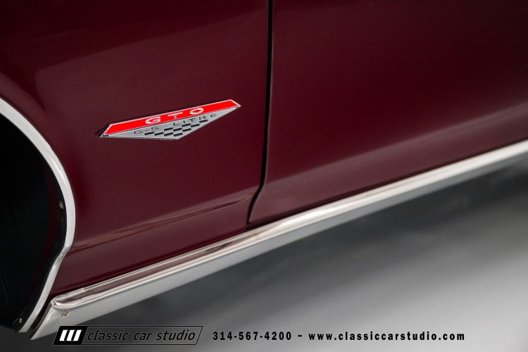 The car is the result of a frame-off rotisserie restoration and it is drop-dead gorgeous. The bodywork on the car is very straight, and the gaps on the GTO are tight and nice throughout. The glass is all in very good condition and was replaced during the restoration. All of the chrome is new and all of the stainless is either new or restored. All of the rubber seals on the car were done as well at the time of the restoration. Overall, it’s a beautiful show car.