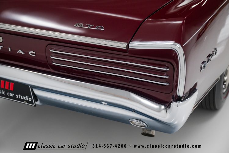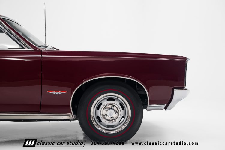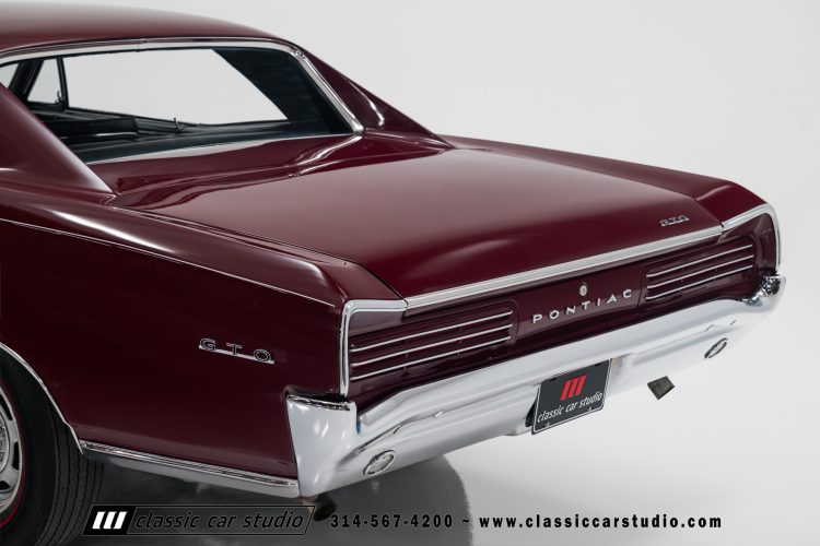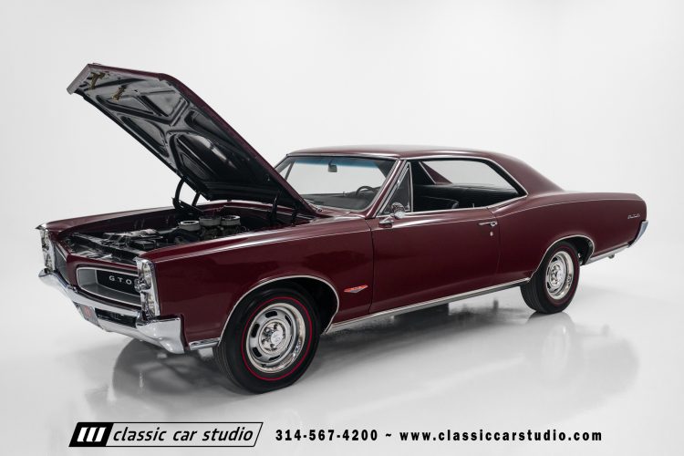 This 1966 GTO Hardtop Coupe was built in Pontiac, Michigan in the 3rd week of May, and delivered to Lou Meliska Pontiac in Parma, Ohio. The car is finished in Burgundy (N-N) over a Black (223) interior and came equipped with a WT code 389, 4-speed transmission, and 3.55 rear end. The car is PHS documented and received a GM Award of Excellence at Carlisle in 2010 shortly after the restoration was completed.
