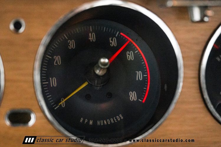 The interior is all redone and looks crisp. The dash has the factory tach, and the car is equipped with a factory console and push-button radio. All soft panels are new including the seat covers, door panels, carpets, carpet underlayment, headliner, dash, and package tray.