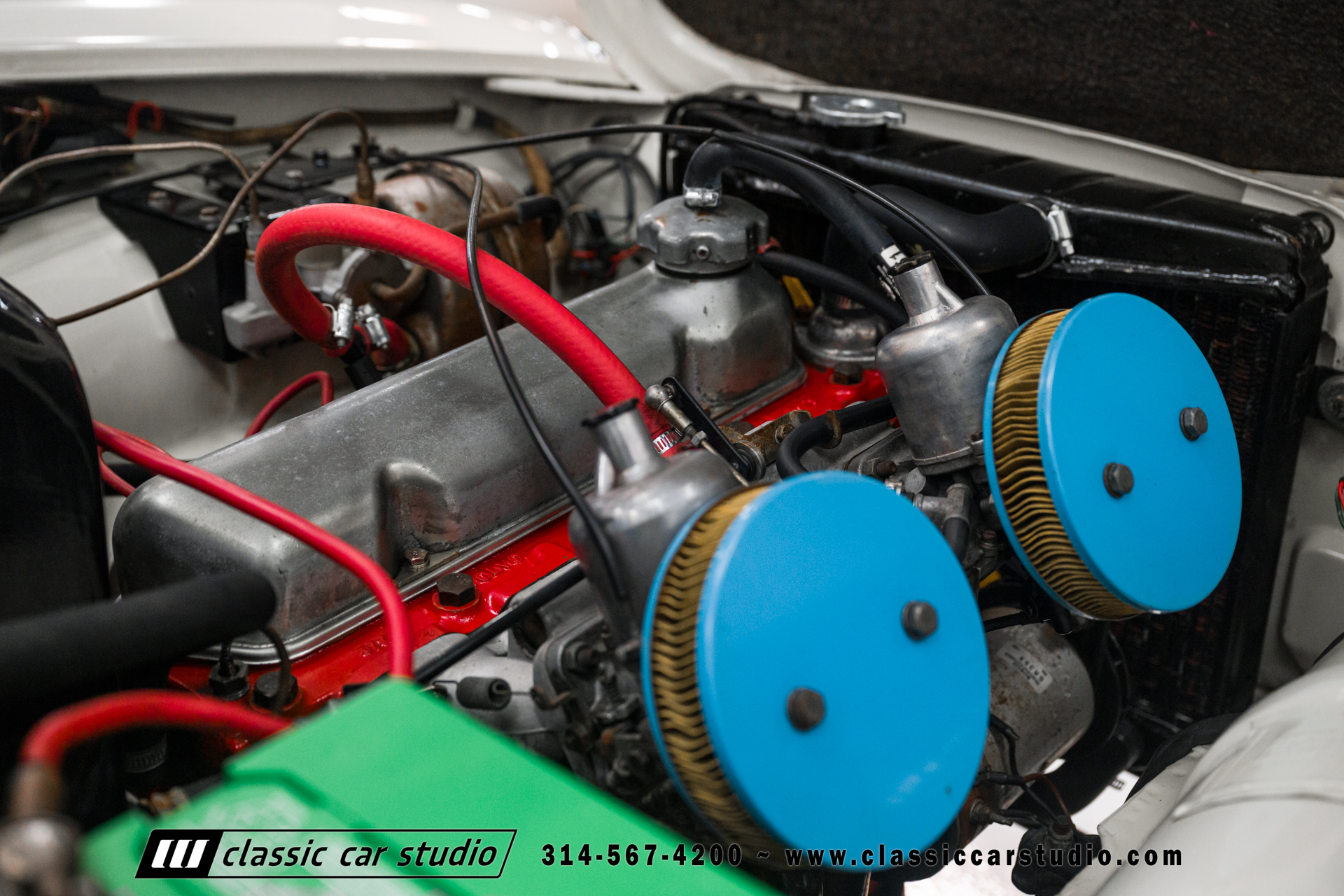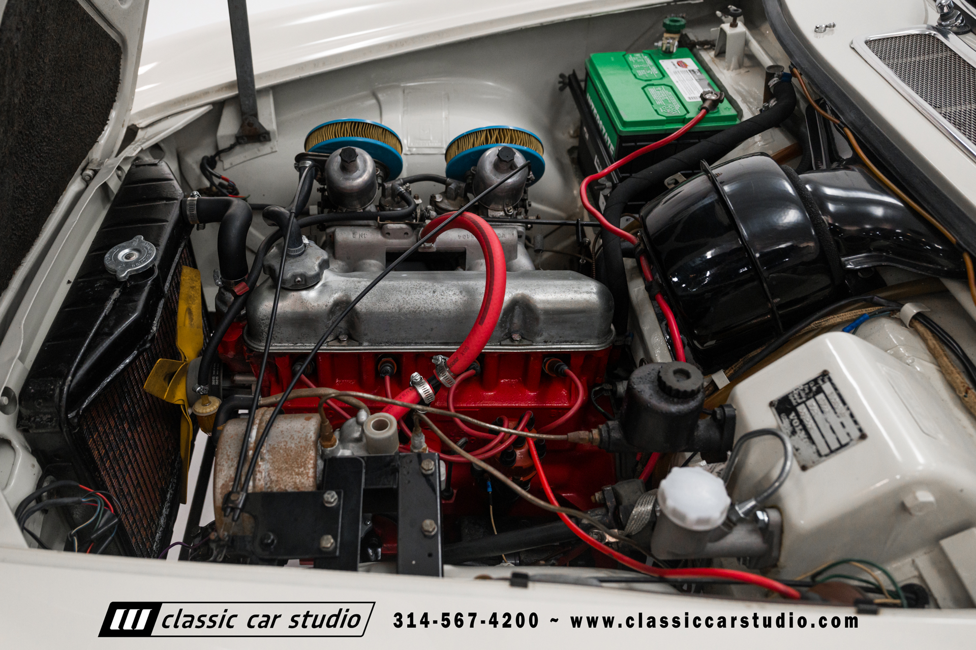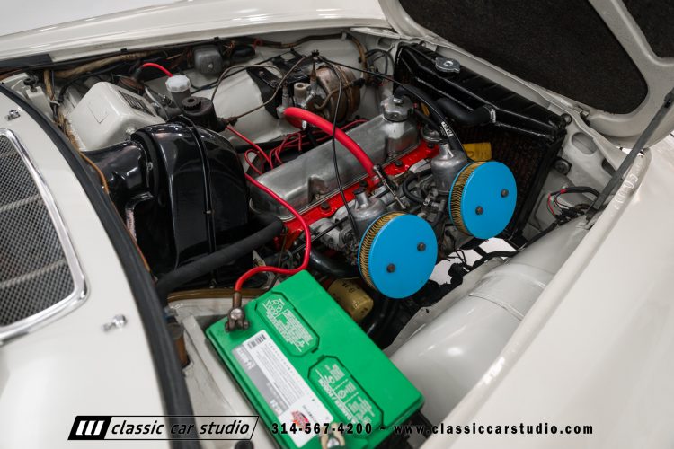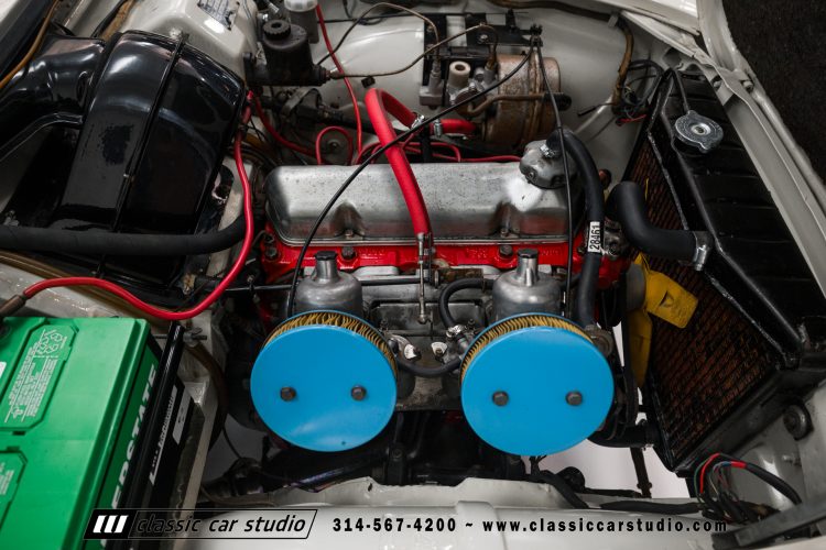 The 1.8-liter B18 inline-four is fitted with dual carburetors and was factory rated at 115 horsepower. Service in preparation for the sale included flushing the coolant, replacing the spark plugs, and performing an oil change.