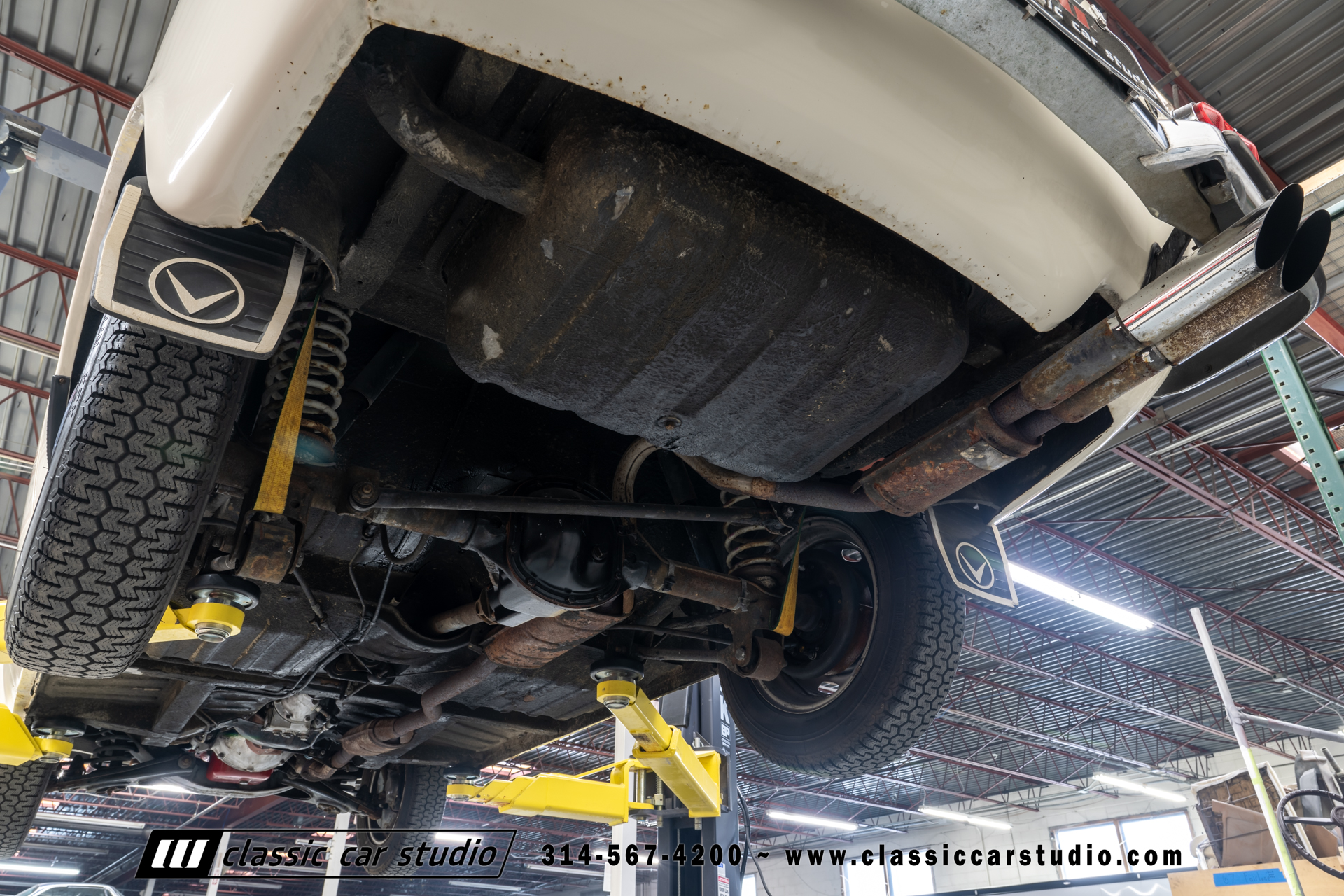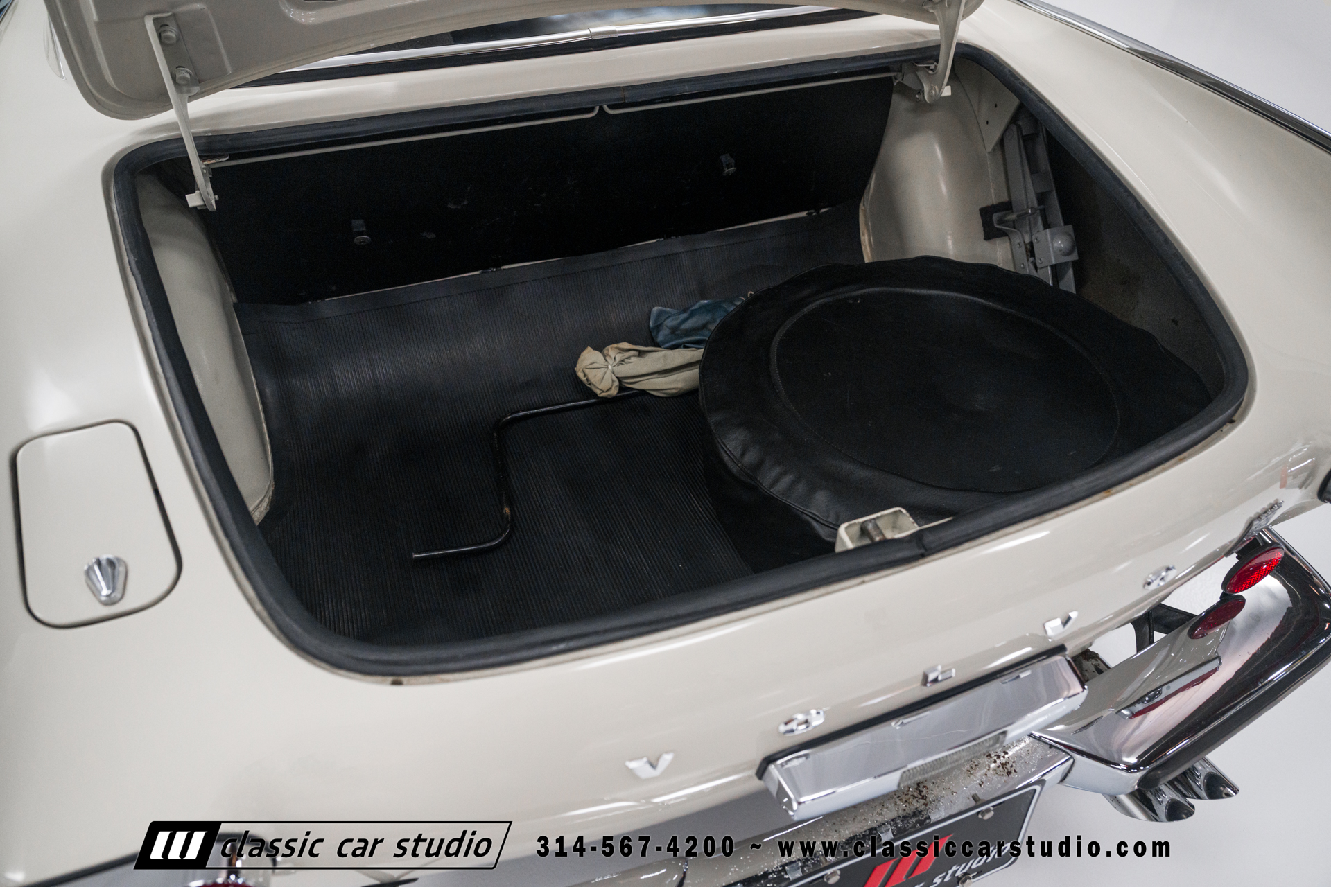 The car left the factory in Pearl White (79) and is said to have been repainted approximately two decades ago. Equipment includes chrome bumpers, quarter vent windows, mud flaps, and dual exhaust tips.