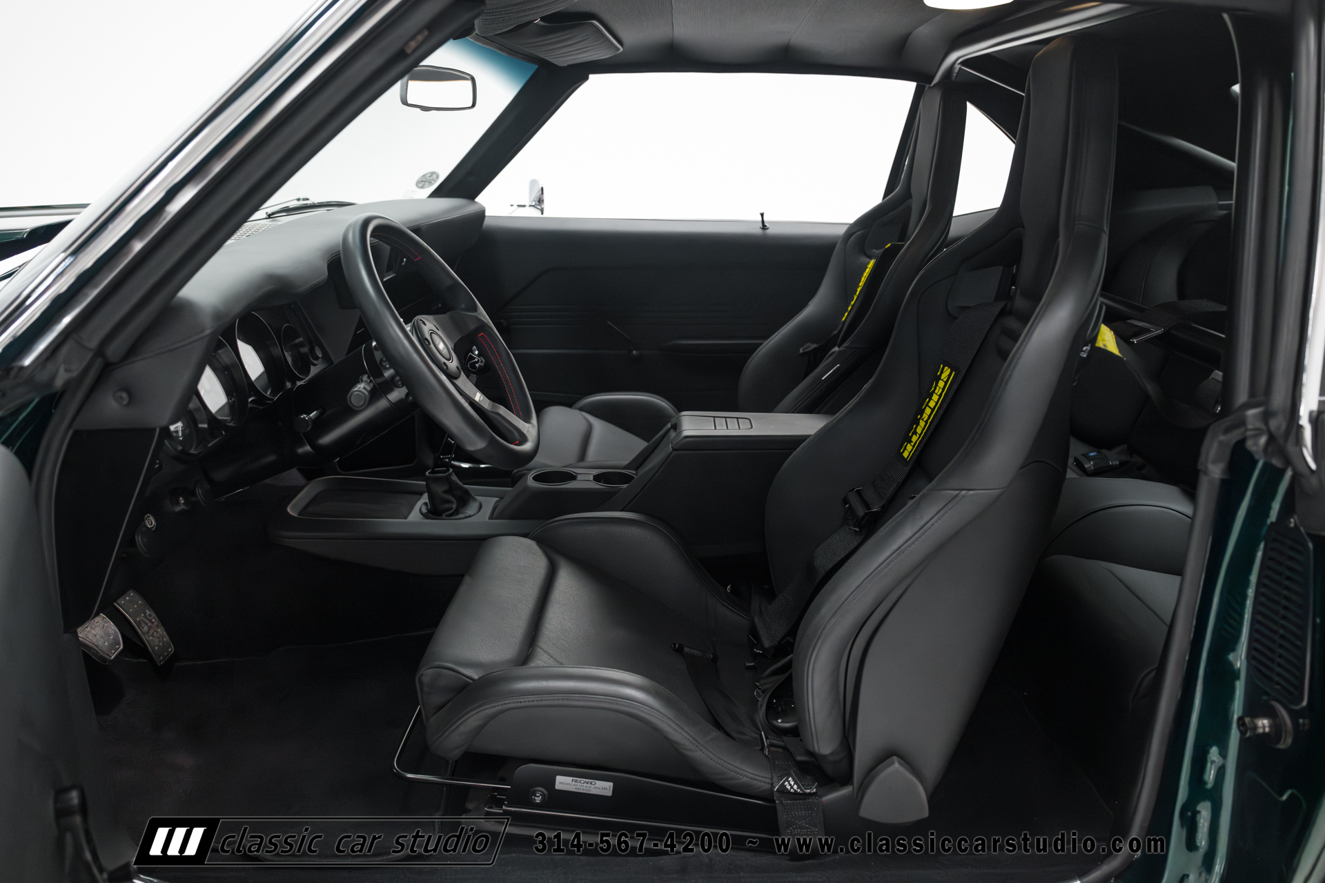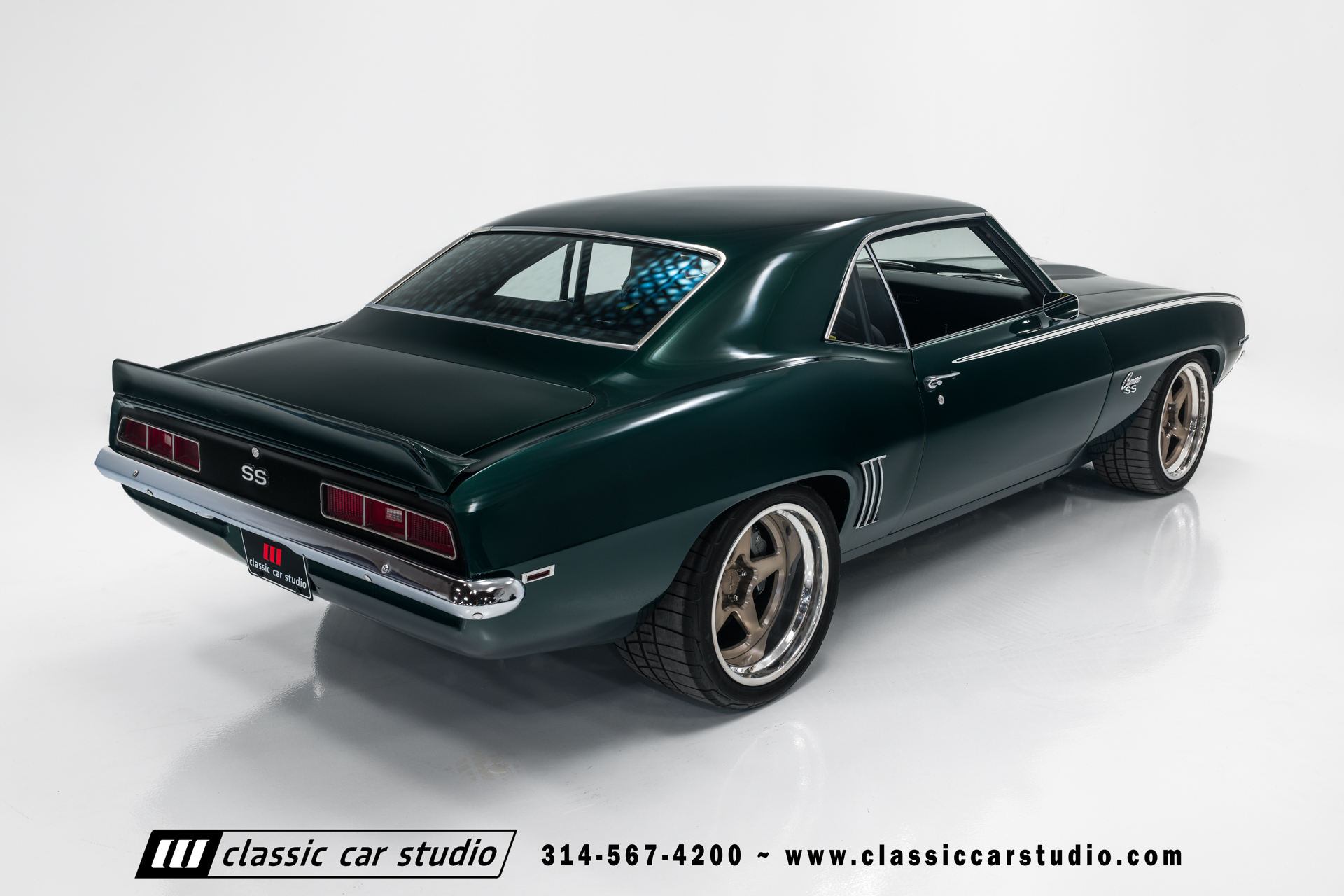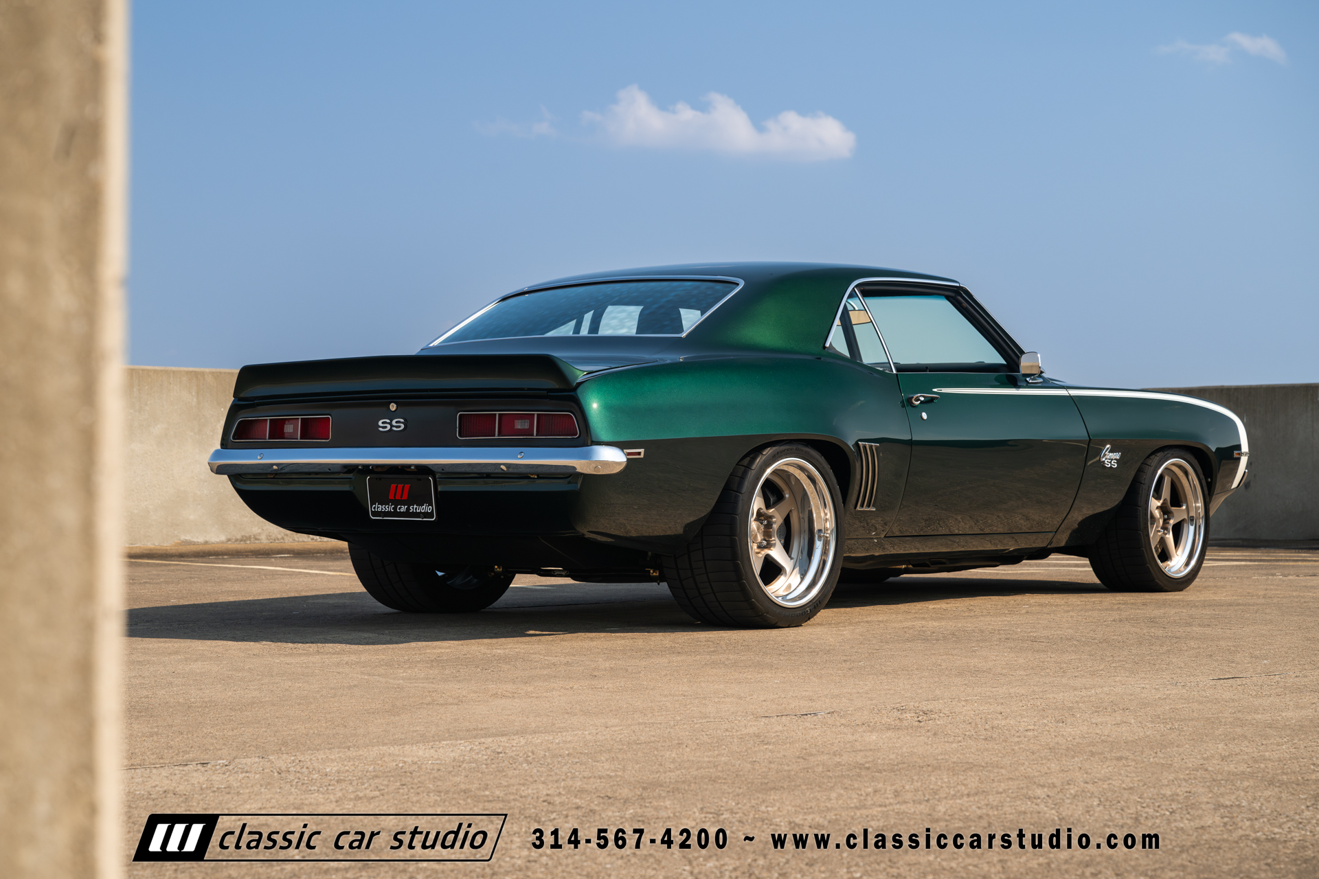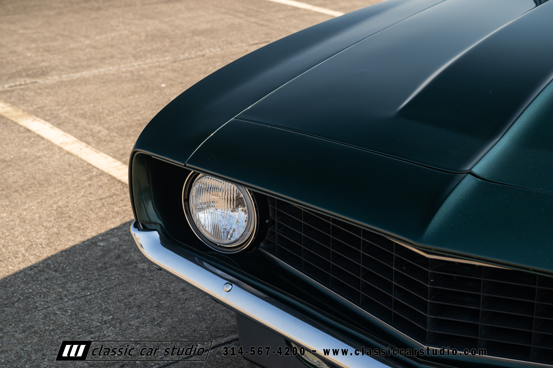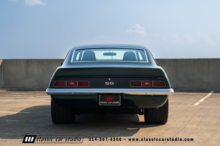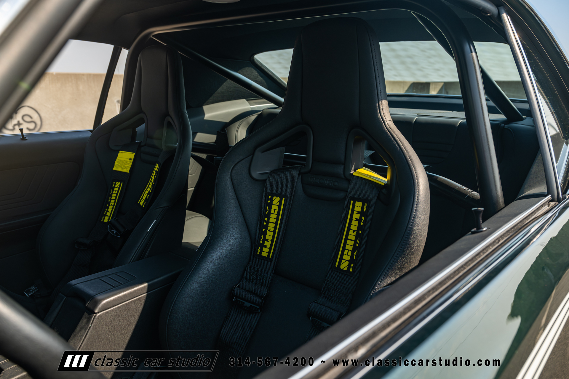 This 1969 Chevrolet Camaro coupe is powered by a 6.2-liter LT4 V8 that is equipped with a Katech supercharger and linked to a Tremec six-speed manual transmission. The car rides on a Detroit Speed suspension kit with a hydroformed front subframe, sway bars, and a Quadralink rear setup, and the Forgeline 18″ wheels are mounted over C6 Z06-specification brakes. The body is finished in dark green with white side stripes and features front and rear spoilers and a cowl induction hood, while the cabin is outfitted with a roll bar, digital climate control, a Kenwood head unit, Hertz audio, cruise control, and black leather Recaro front seats with Schroth harnesses…. (full write up on bringatrailer.com, at the link above)