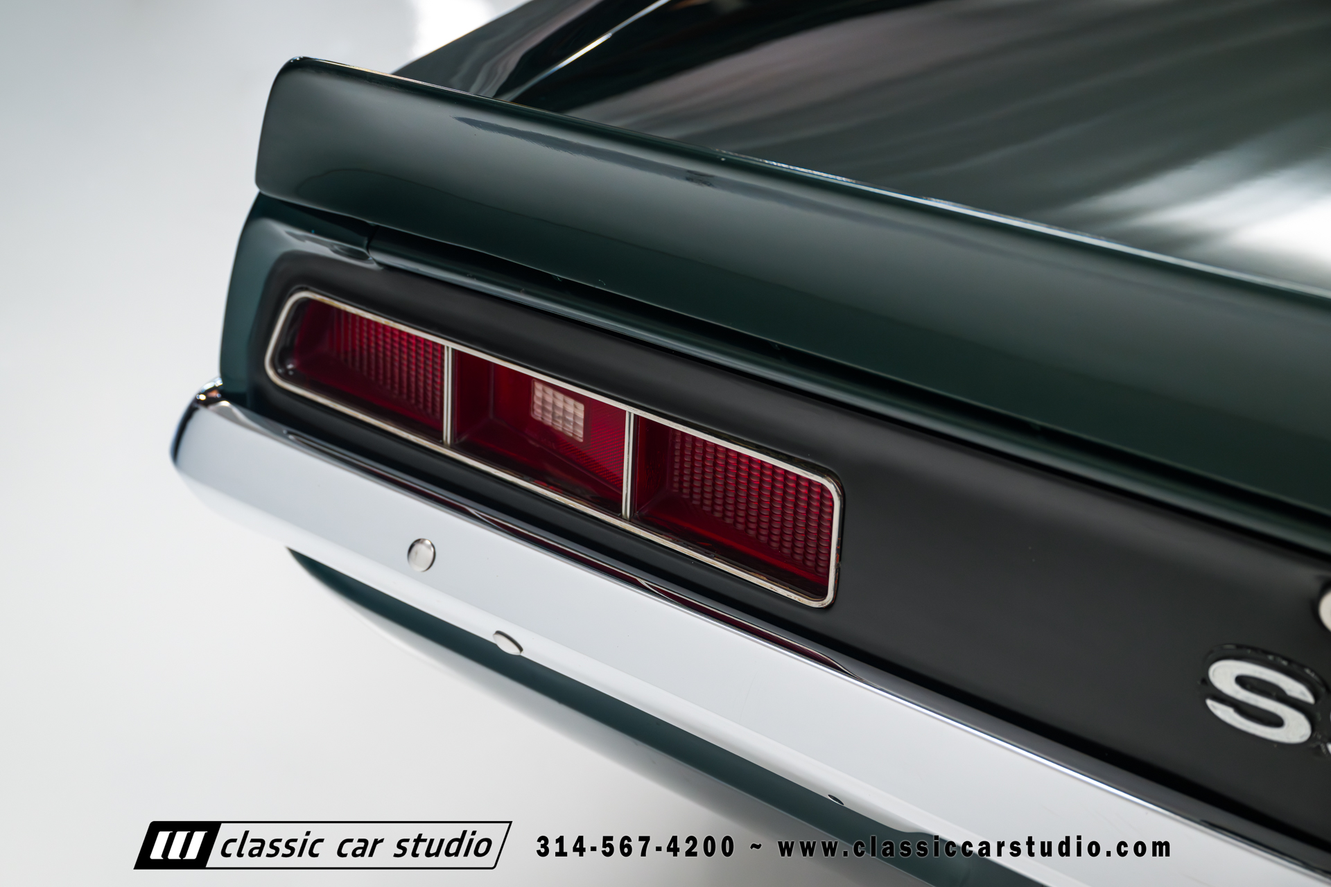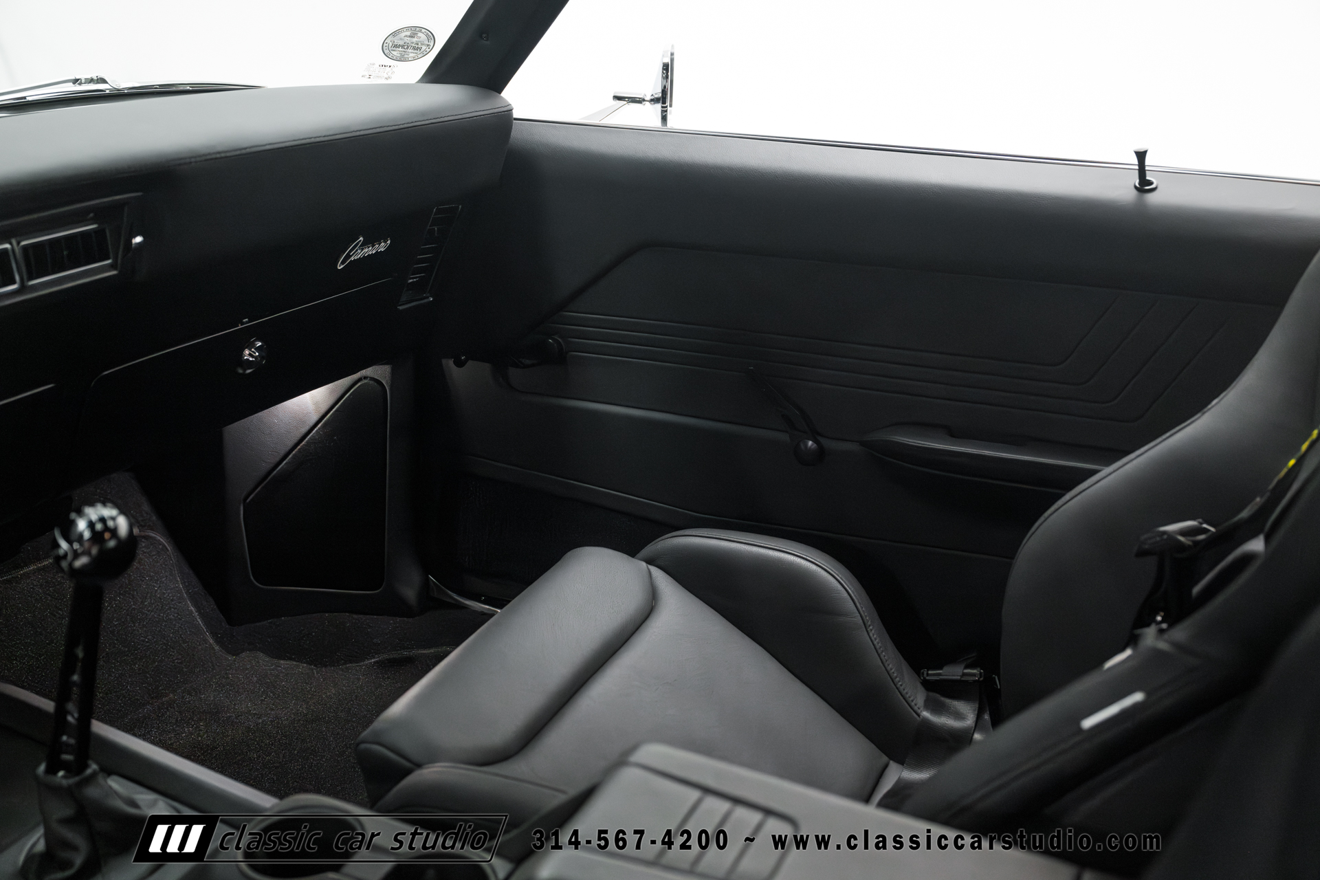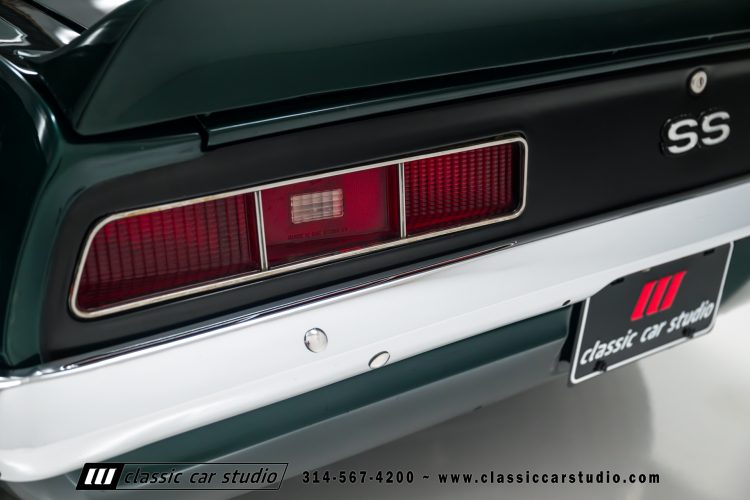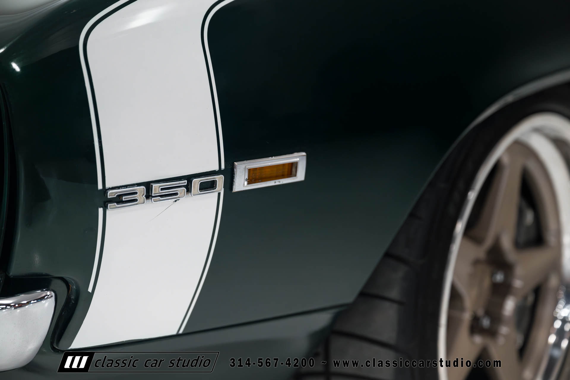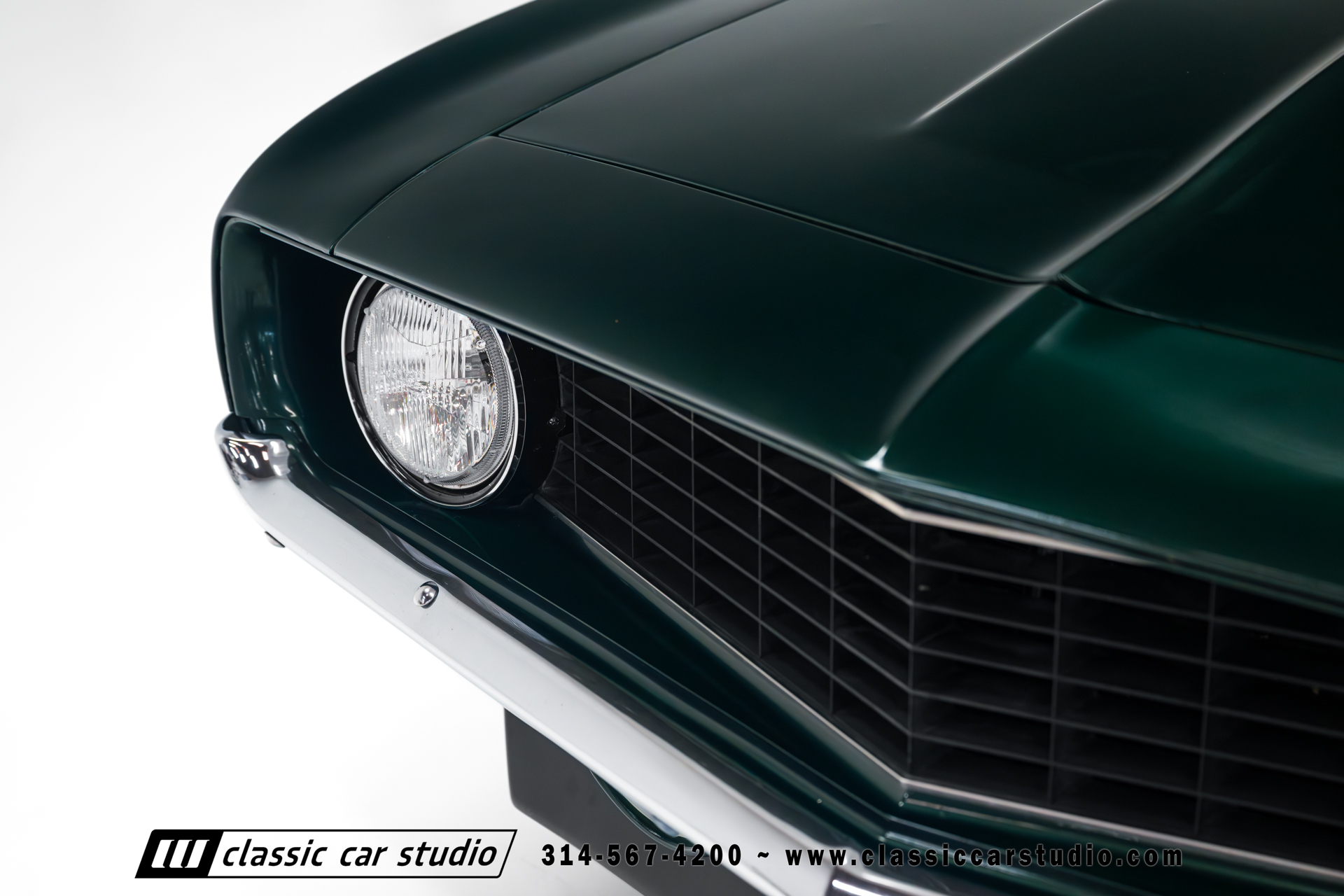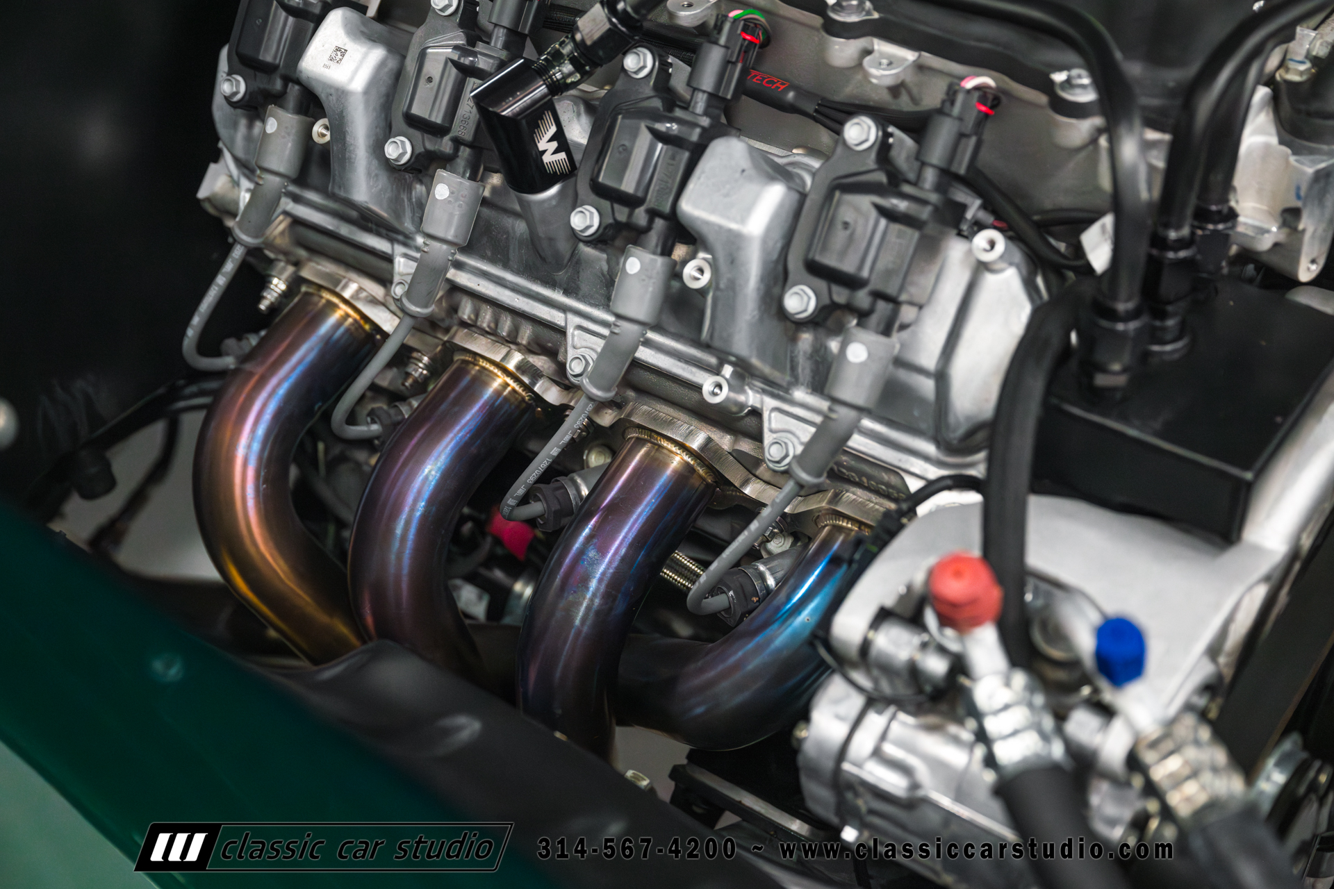 This 1969 Chevrolet Camaro coupe is powered by a 6.2-liter LT4 V8 that is equipped with a Katech supercharger and linked to a Tremec six-speed manual transmission. The car rides on a Detroit Speed suspension kit with a hydroformed front subframe, sway bars, and a Quadralink rear setup, and the Forgeline 18″ wheels are mounted over C6 Z06-specification brakes. The body is finished in dark green with white side stripes and features front and rear spoilers and a cowl induction hood, while the cabin is outfitted with a roll bar, digital climate control, a Kenwood head unit, Hertz audio, cruise control, and black leather Recaro front seats with Schroth harnesses…. (full write up on bringatrailer.com, at the link above)