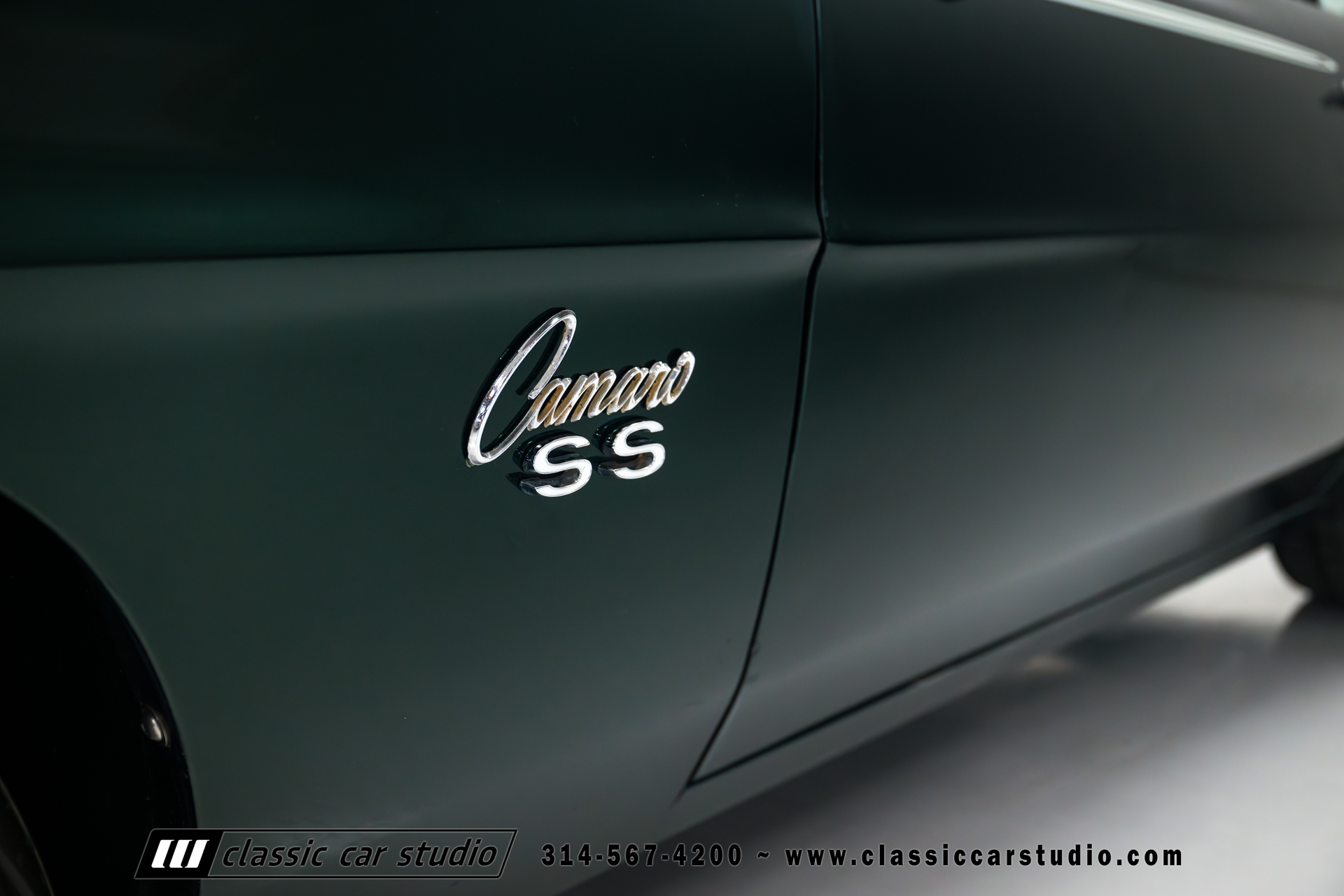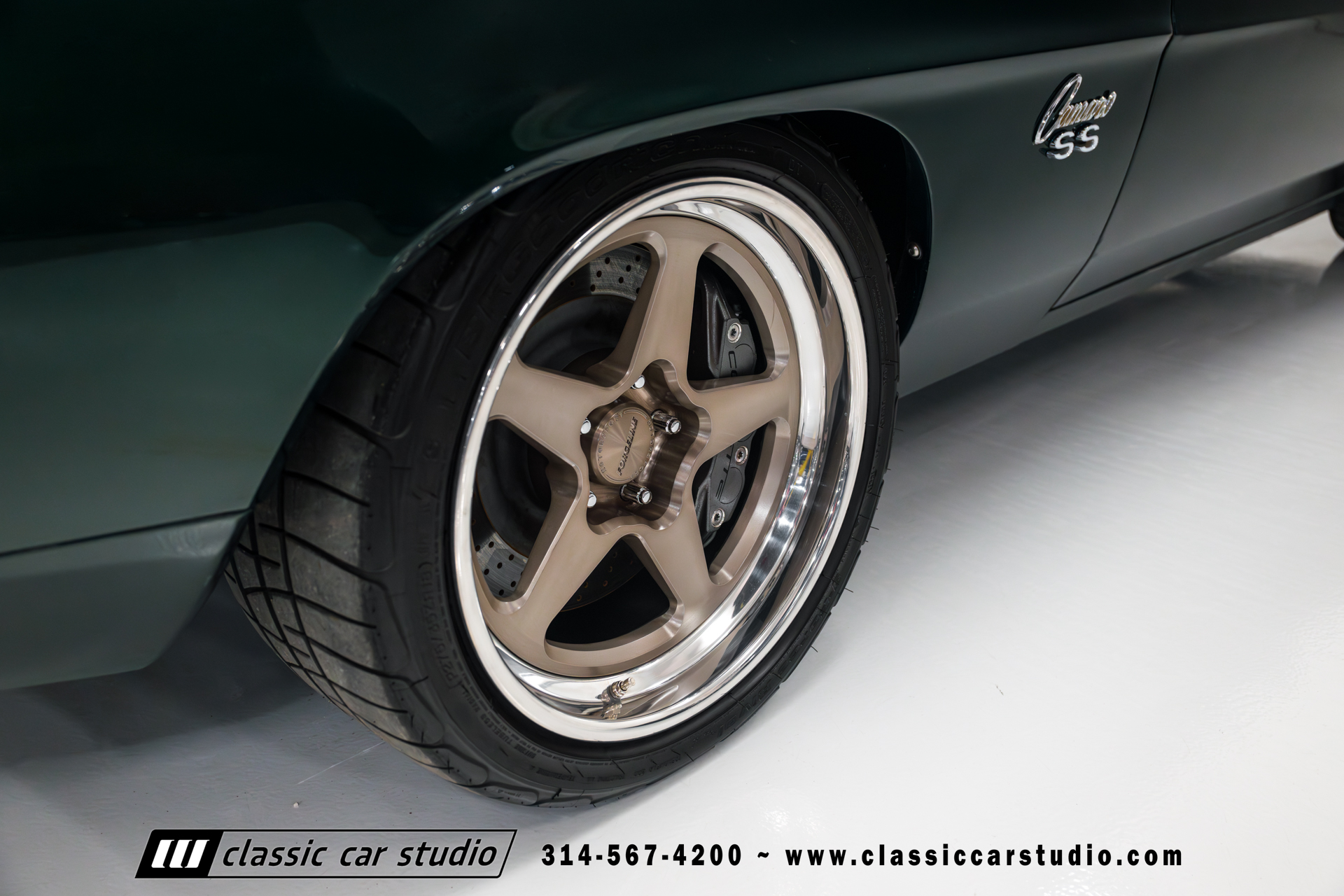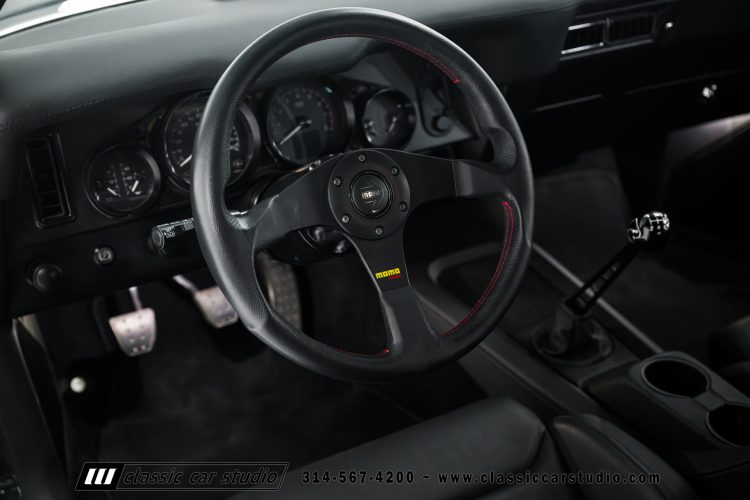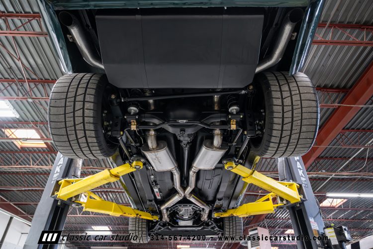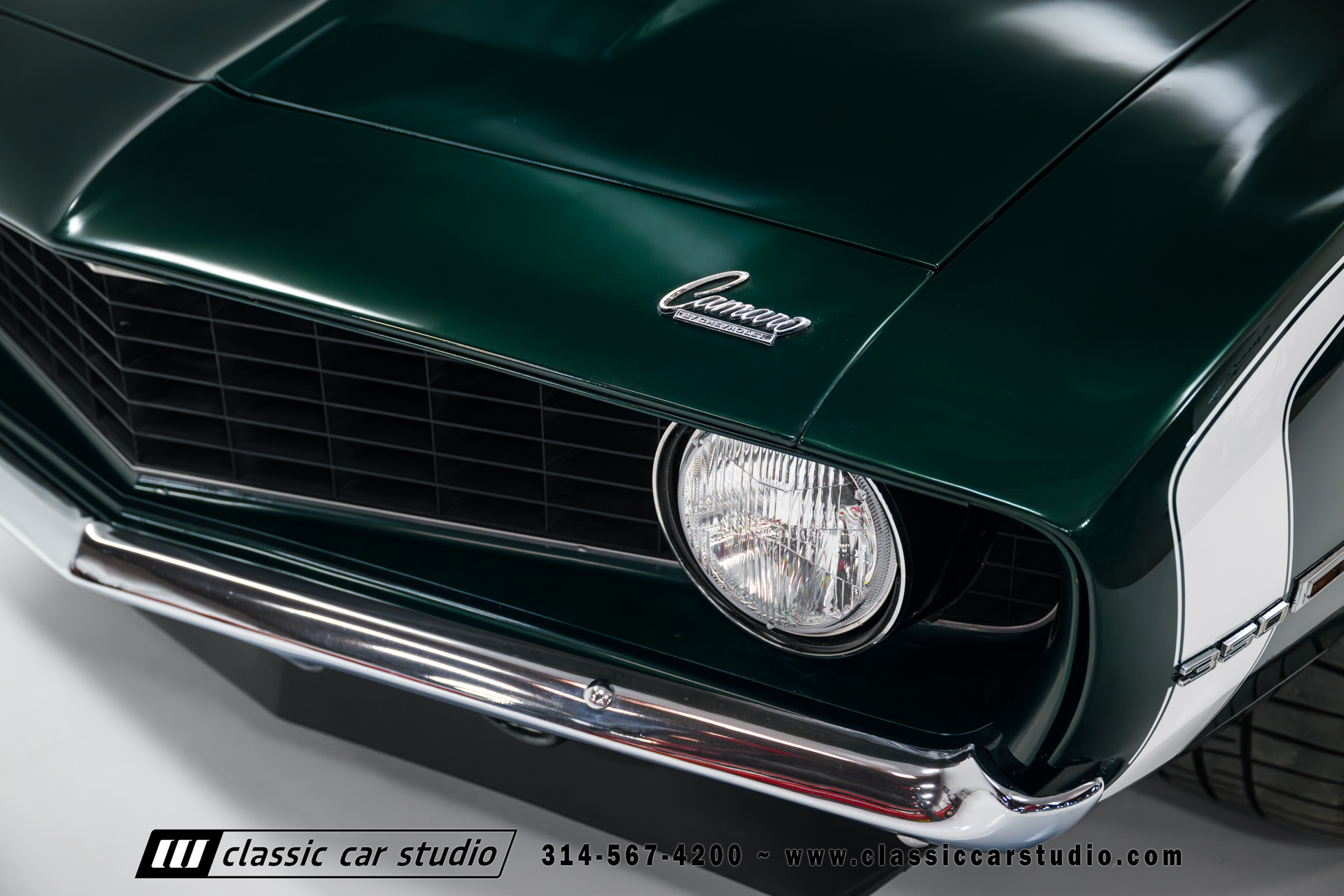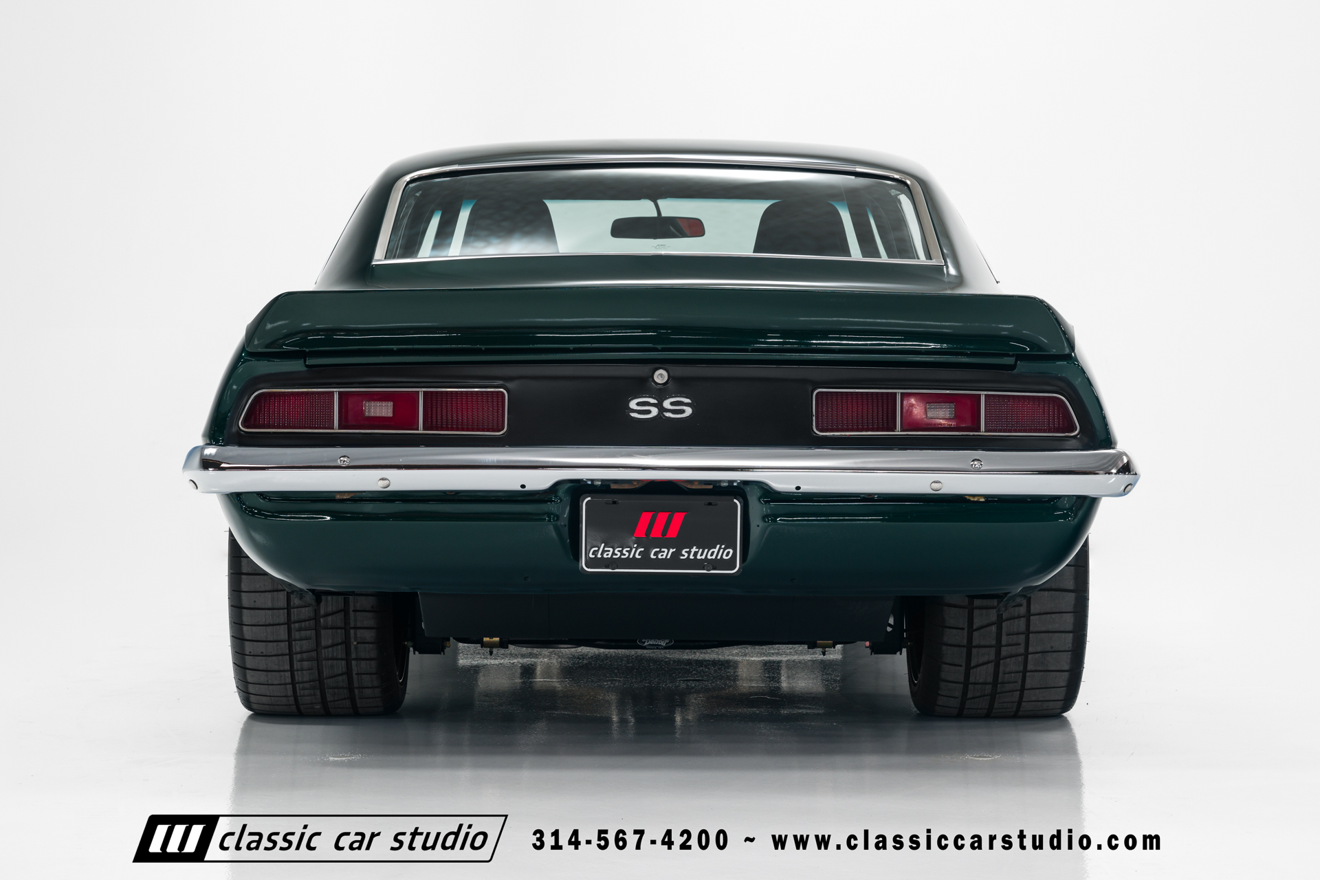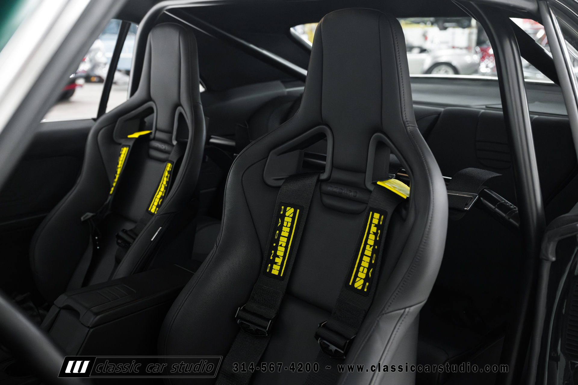 This 1969 Chevrolet Camaro coupe is powered by a 6.2-liter LT4 V8 that is equipped with a Katech supercharger and linked to a Tremec six-speed manual transmission. The car rides on a Detroit Speed suspension kit with a hydroformed front subframe, sway bars, and a Quadralink rear setup, and the Forgeline 18″ wheels are mounted over C6 Z06-specification brakes. The body is finished in dark green with white side stripes and features front and rear spoilers and a cowl induction hood, while the cabin is outfitted with a roll bar, digital climate control, a Kenwood head unit, Hertz audio, cruise control, and black leather Recaro front seats with Schroth harnesses…. (full write up on bringatrailer.com, at the link above)