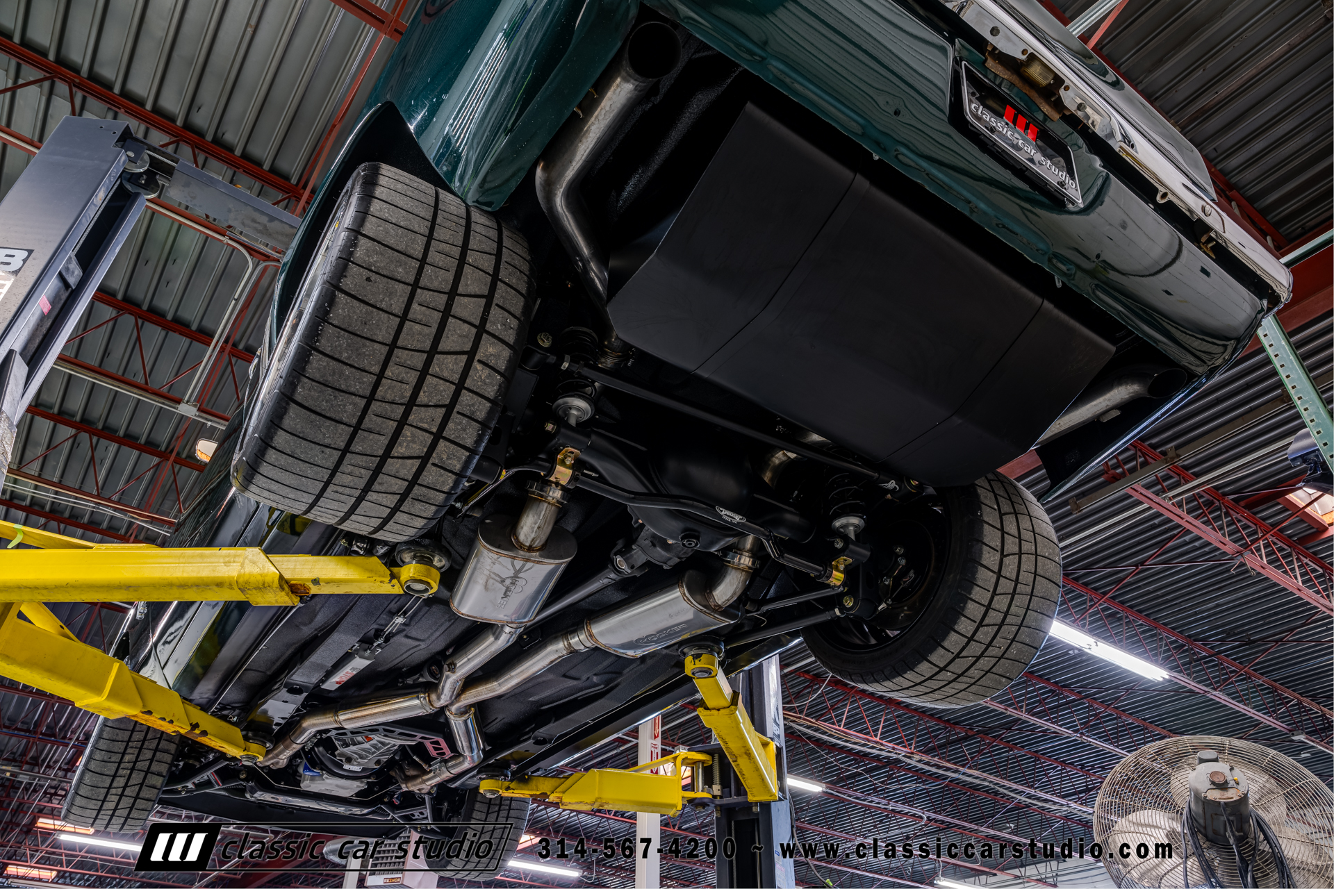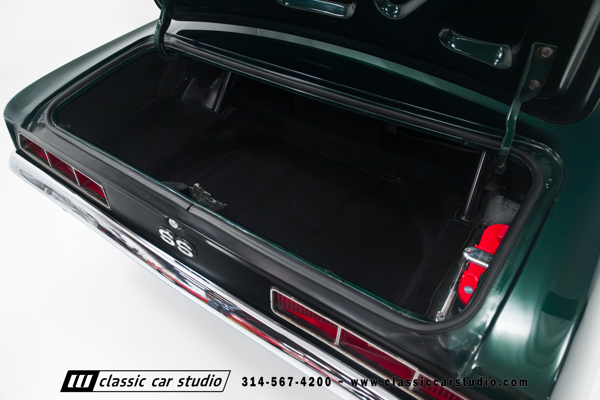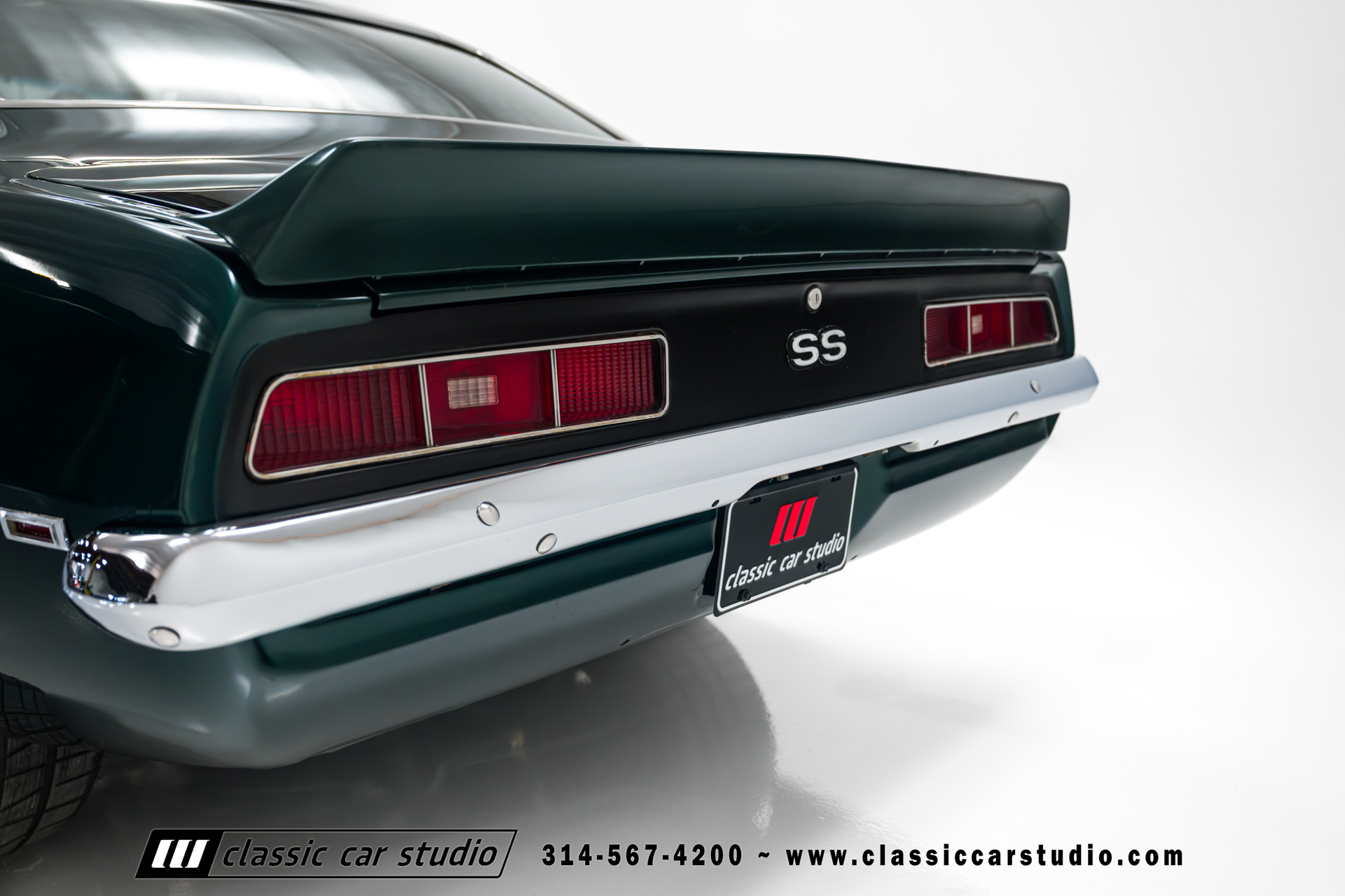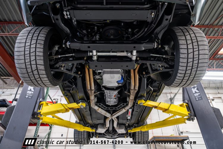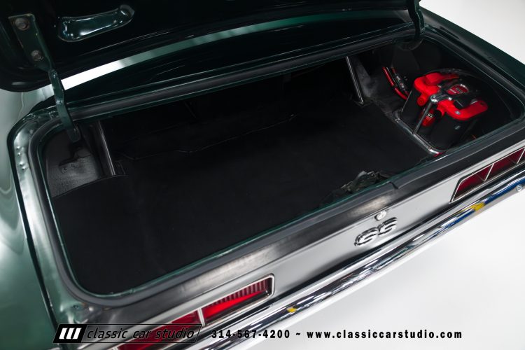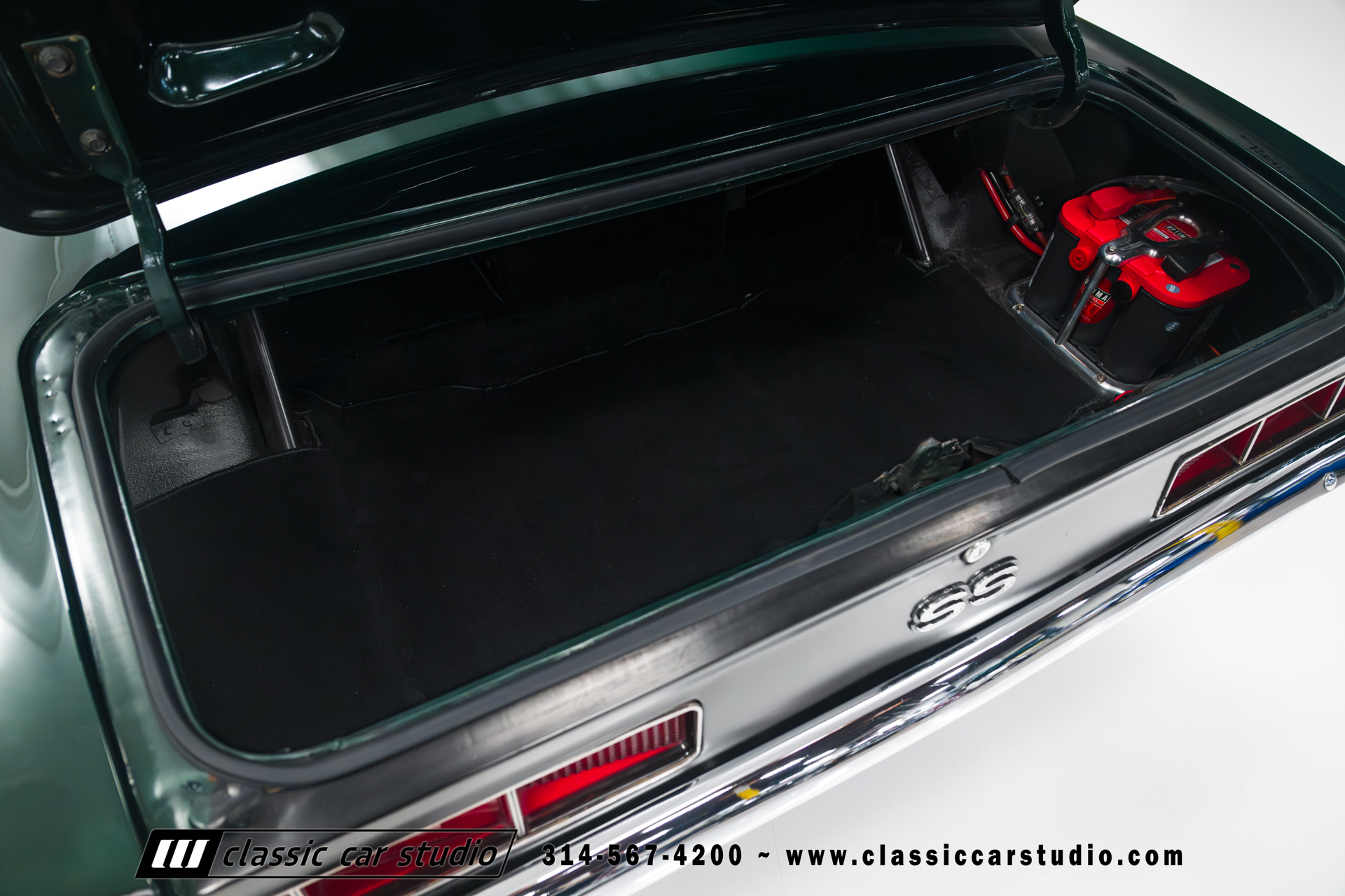 This 1969 Chevrolet Camaro coupe is powered by a 6.2-liter LT4 V8 that is equipped with a Katech supercharger and linked to a Tremec six-speed manual transmission. The car rides on a Detroit Speed suspension kit with a hydroformed front subframe, sway bars, and a Quadralink rear setup, and the Forgeline 18″ wheels are mounted over C6 Z06-specification brakes. The body is finished in dark green with white side stripes and features front and rear spoilers and a cowl induction hood, while the cabin is outfitted with a roll bar, digital climate control, a Kenwood head unit, Hertz audio, cruise control, and black leather Recaro front seats with Schroth harnesses…. (full write up on bringatrailer.com, at the link above)