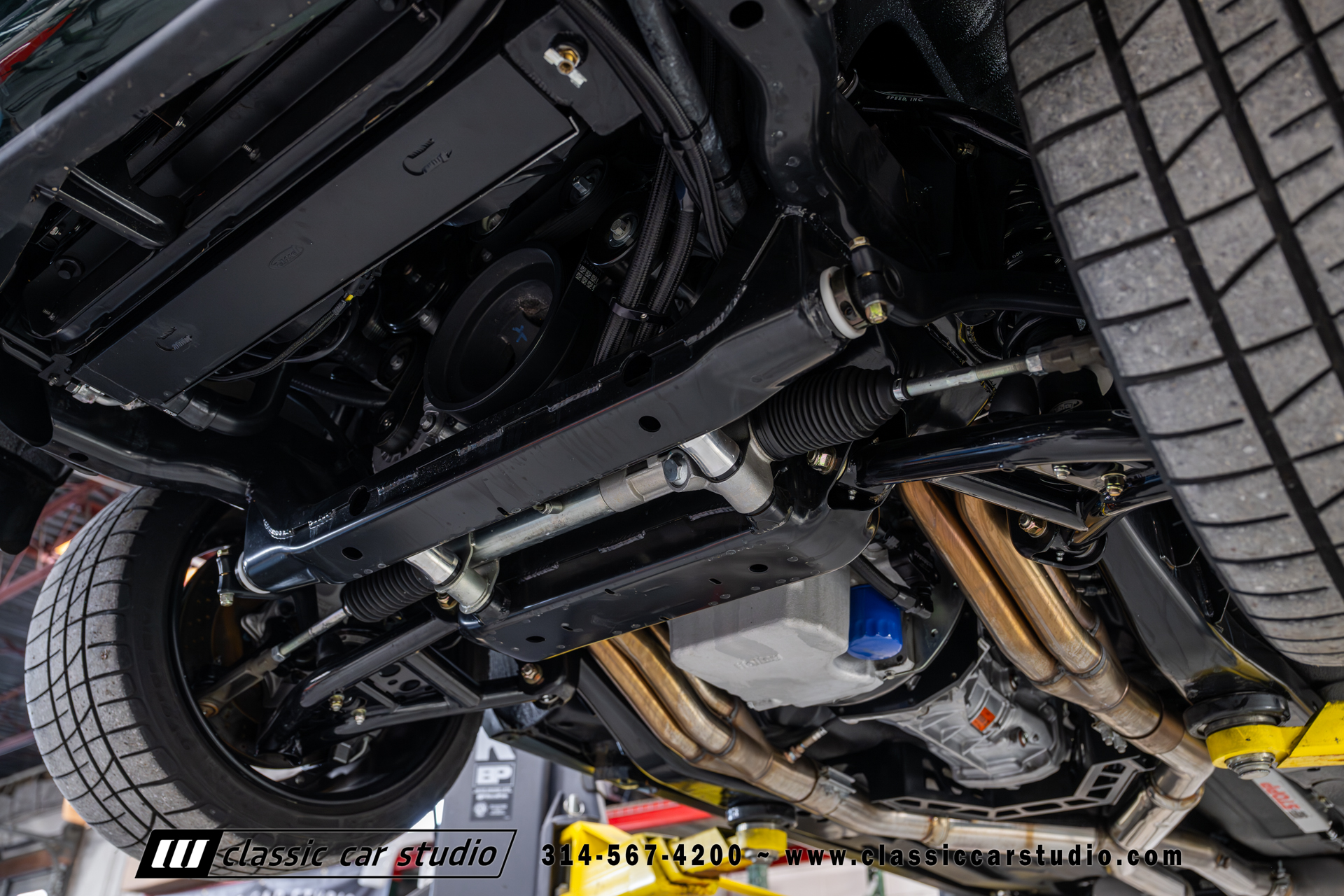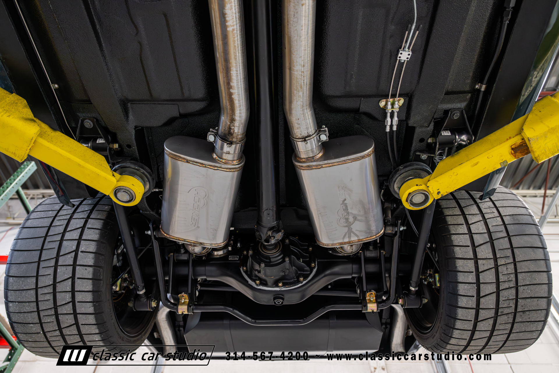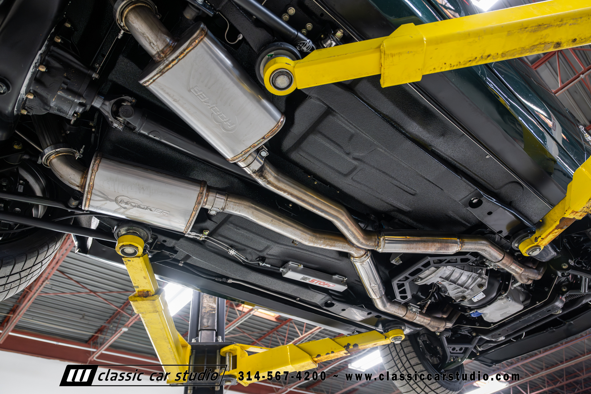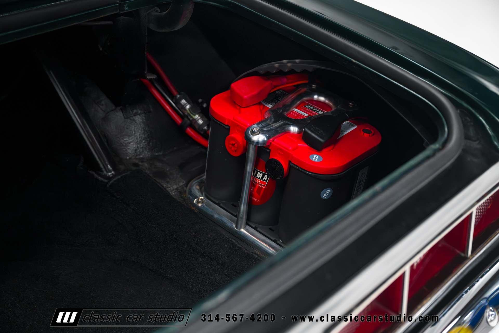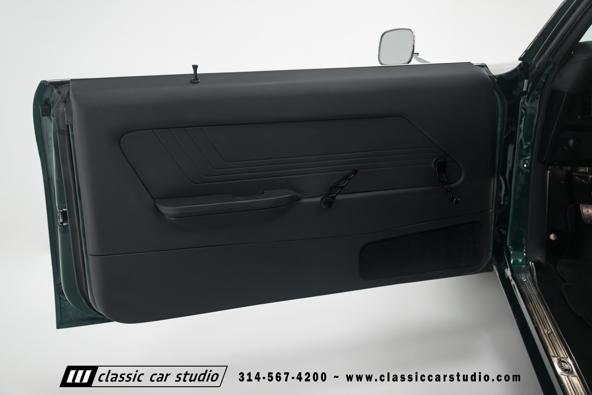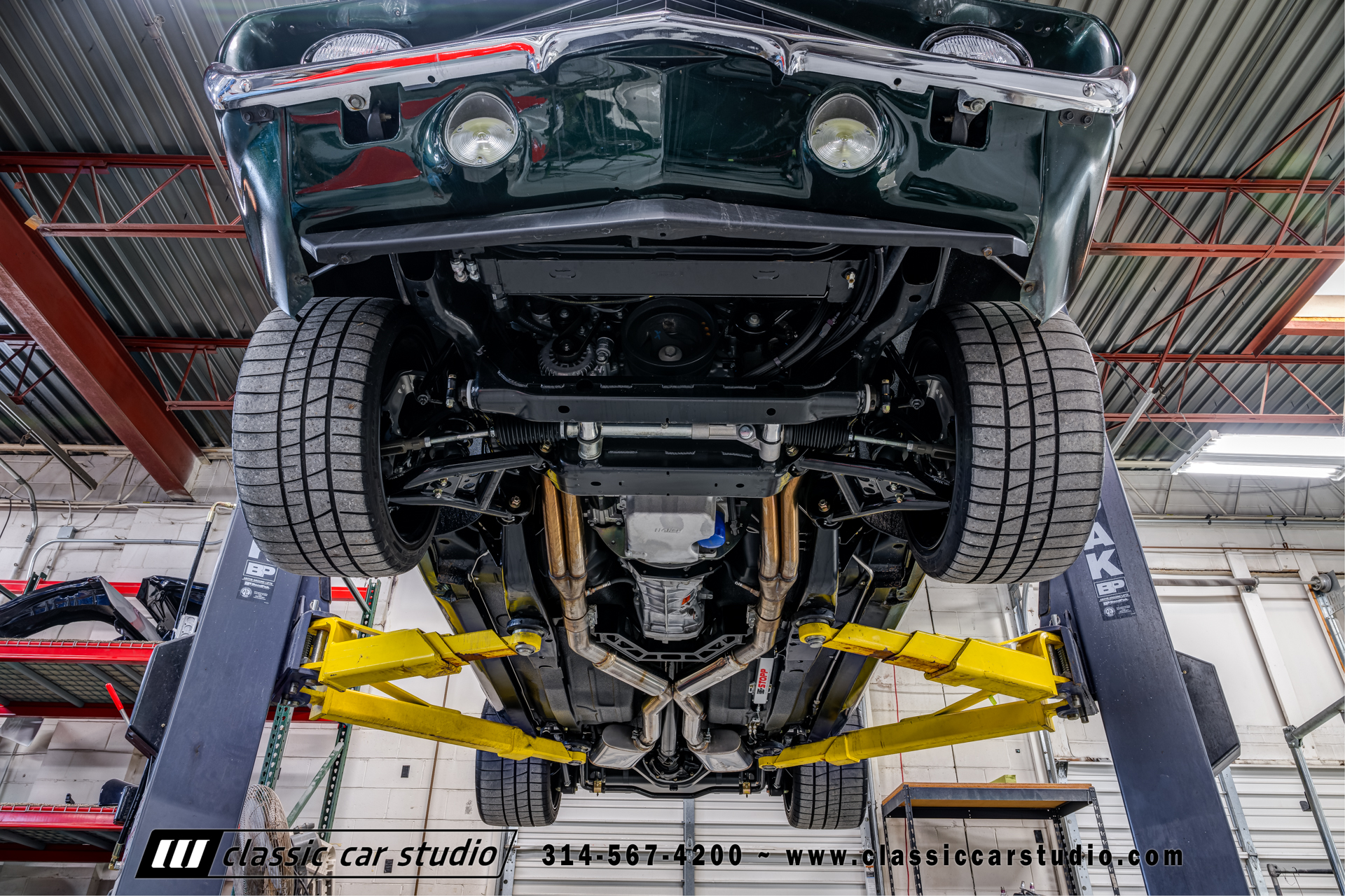 This 1969 Chevrolet Camaro coupe is powered by a 6.2-liter LT4 V8 that is equipped with a Katech supercharger and linked to a Tremec six-speed manual transmission. The car rides on a Detroit Speed suspension kit with a hydroformed front subframe, sway bars, and a Quadralink rear setup, and the Forgeline 18″ wheels are mounted over C6 Z06-specification brakes. The body is finished in dark green with white side stripes and features front and rear spoilers and a cowl induction hood, while the cabin is outfitted with a roll bar, digital climate control, a Kenwood head unit, Hertz audio, cruise control, and black leather Recaro front seats with Schroth harnesses…. (full write up on bringatrailer.com, at the link above)