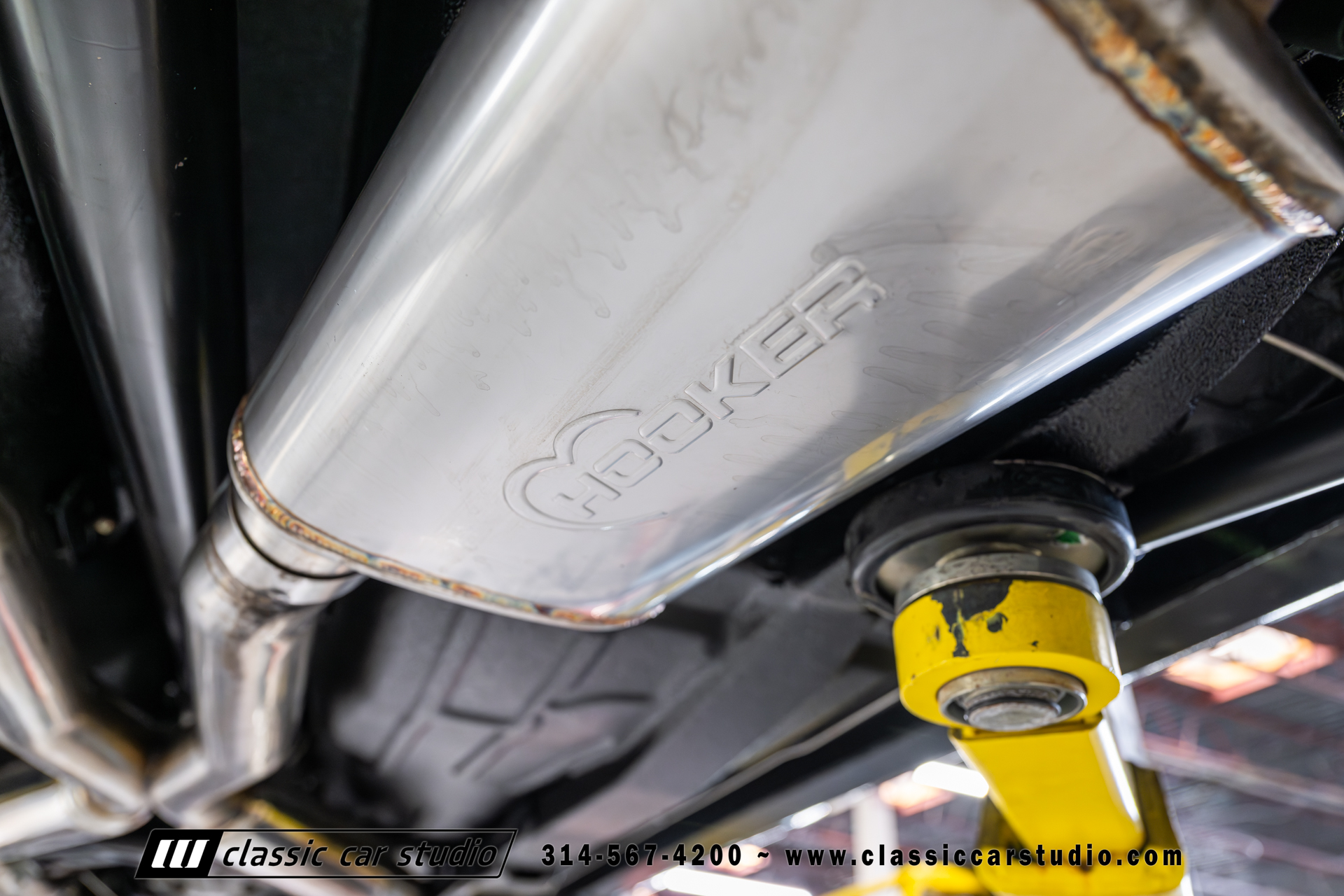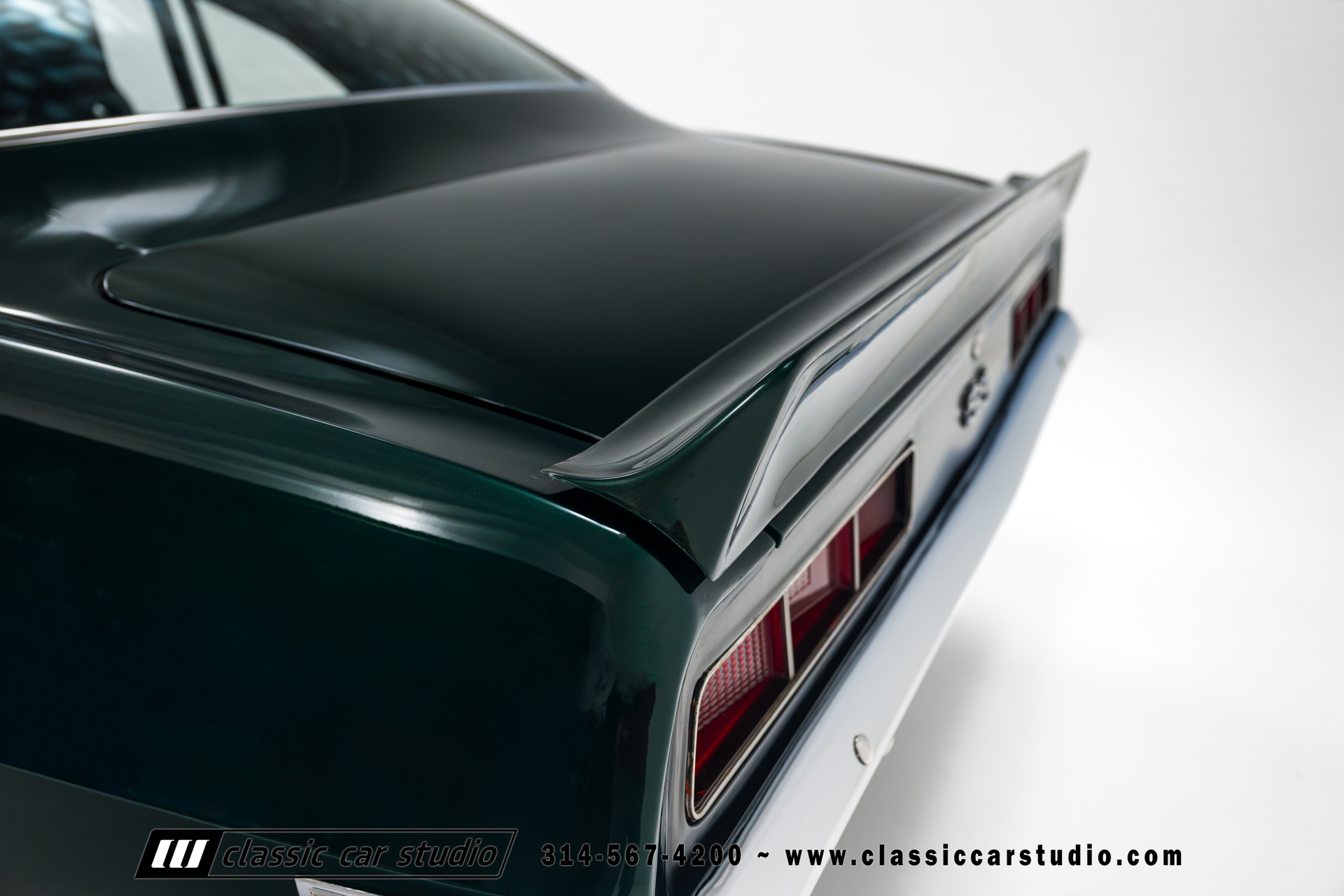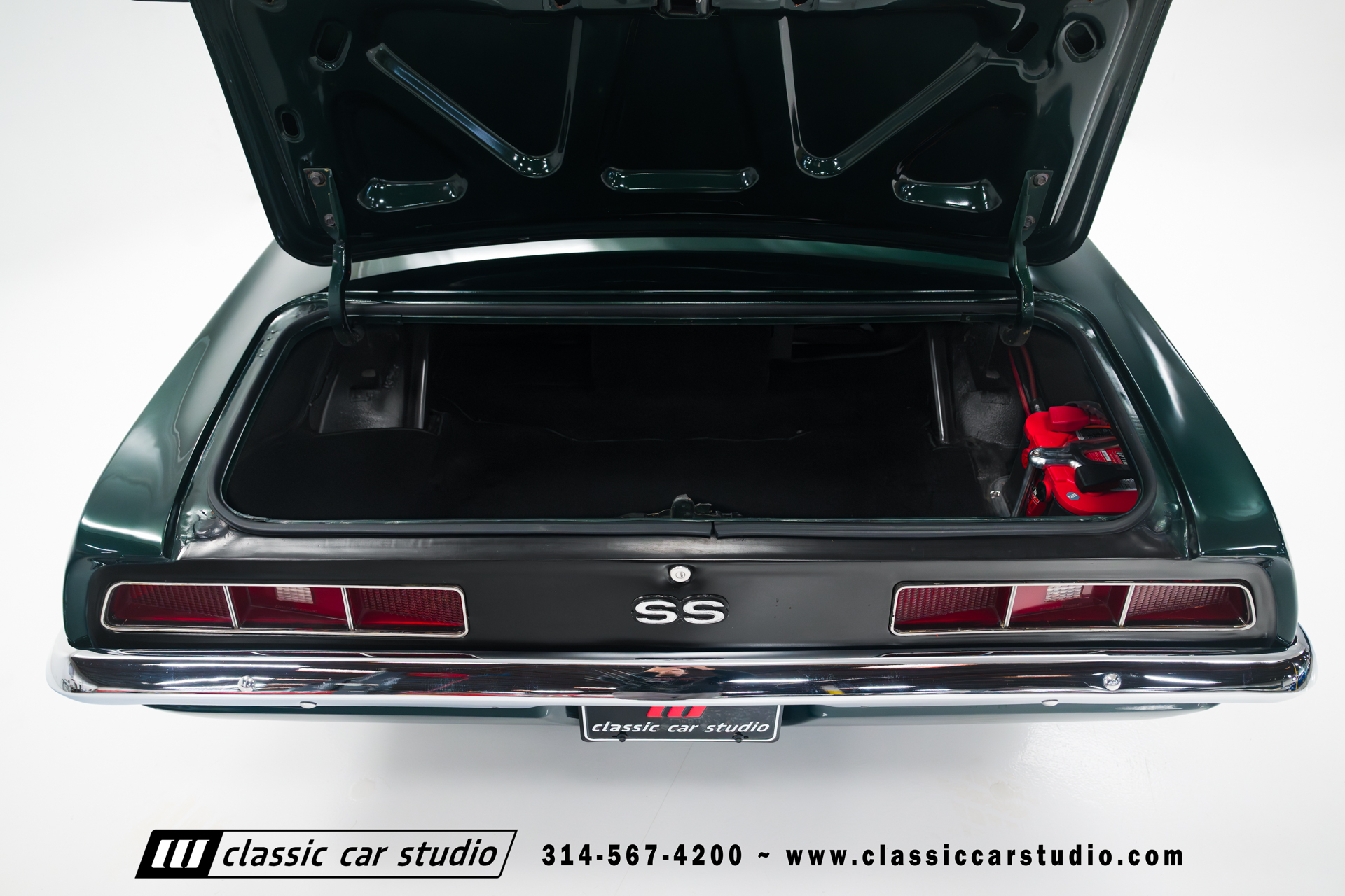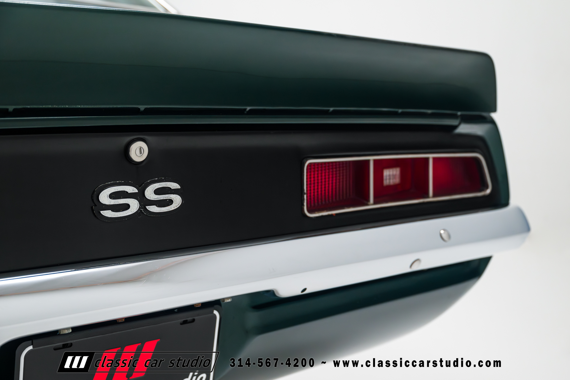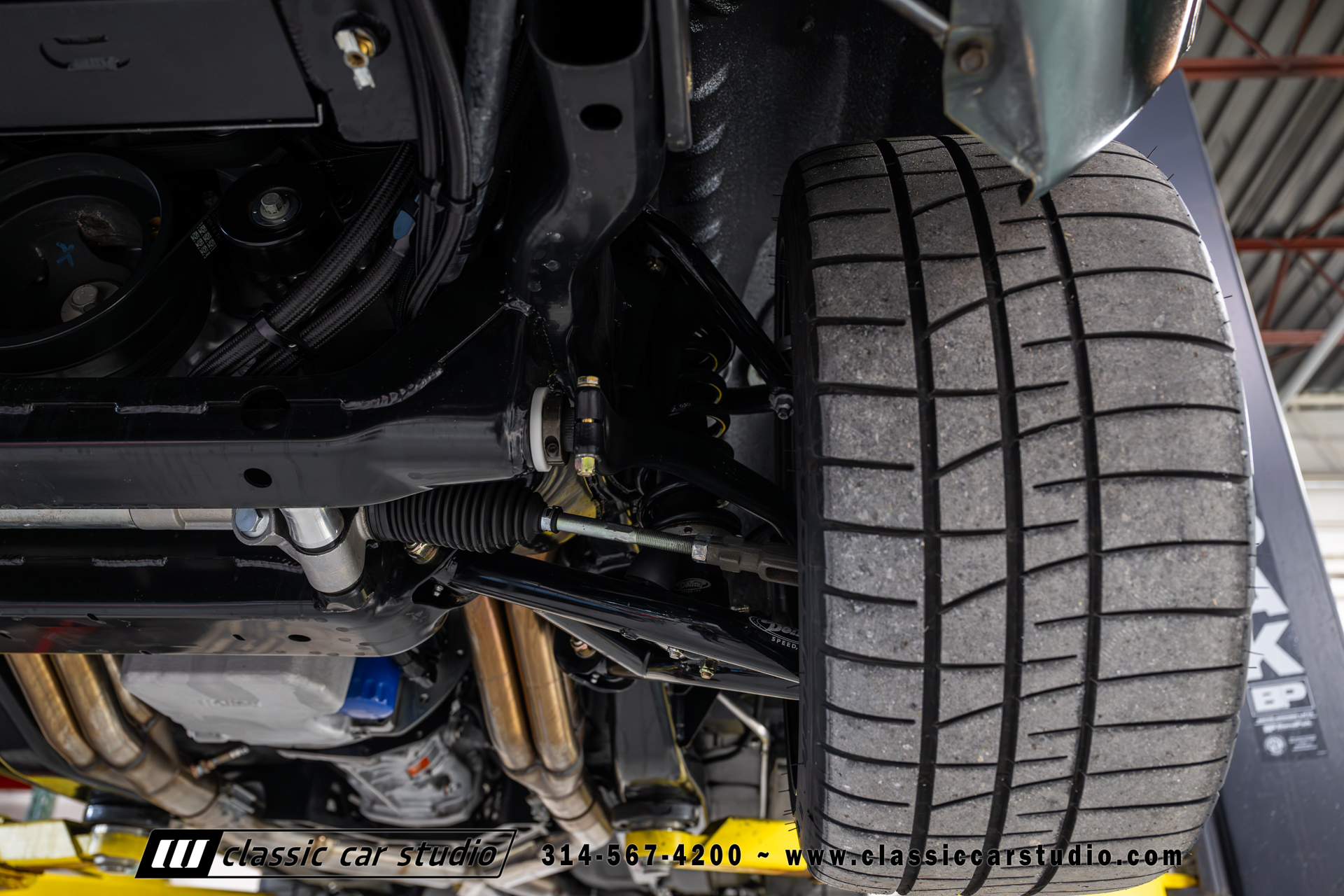 This 1969 Chevrolet Camaro coupe is powered by a 6.2-liter LT4 V8 that is equipped with a Katech supercharger and linked to a Tremec six-speed manual transmission. The car rides on a Detroit Speed suspension kit with a hydroformed front subframe, sway bars, and a Quadralink rear setup, and the Forgeline 18″ wheels are mounted over C6 Z06-specification brakes. The body is finished in dark green with white side stripes and features front and rear spoilers and a cowl induction hood, while the cabin is outfitted with a roll bar, digital climate control, a Kenwood head unit, Hertz audio, cruise control, and black leather Recaro front seats with Schroth harnesses…. (full write up on bringatrailer.com, at the link above)