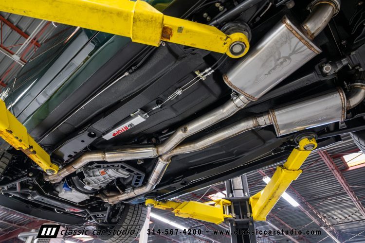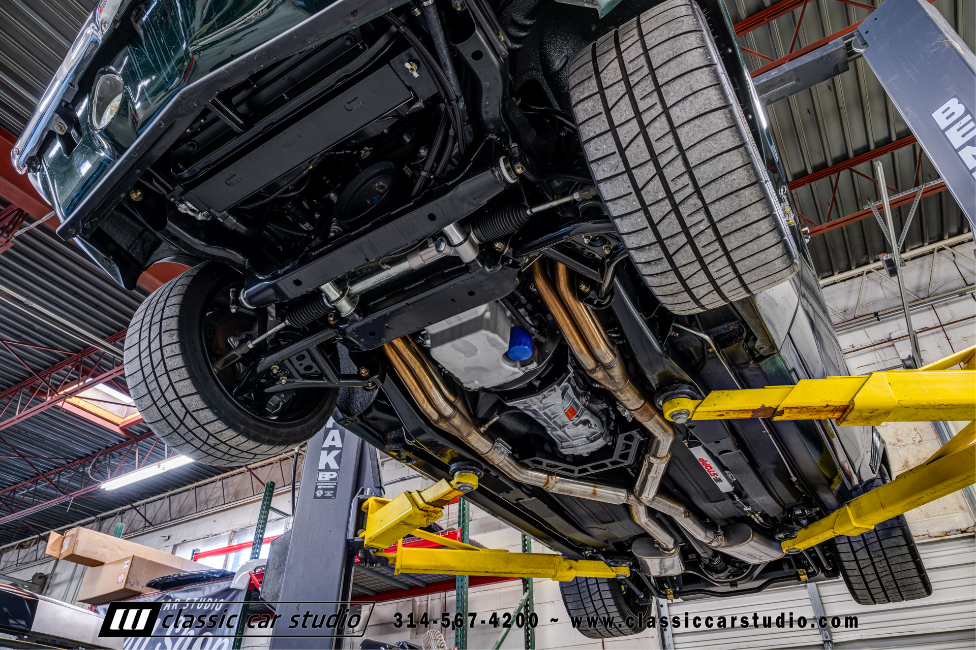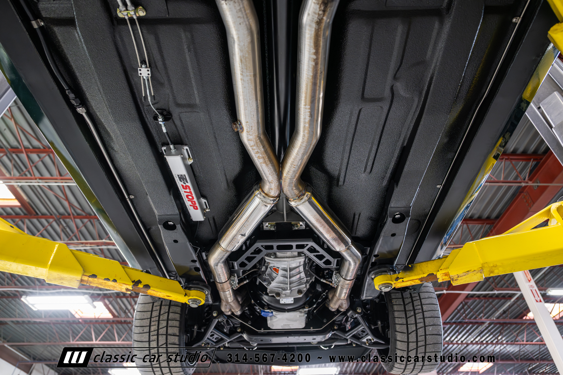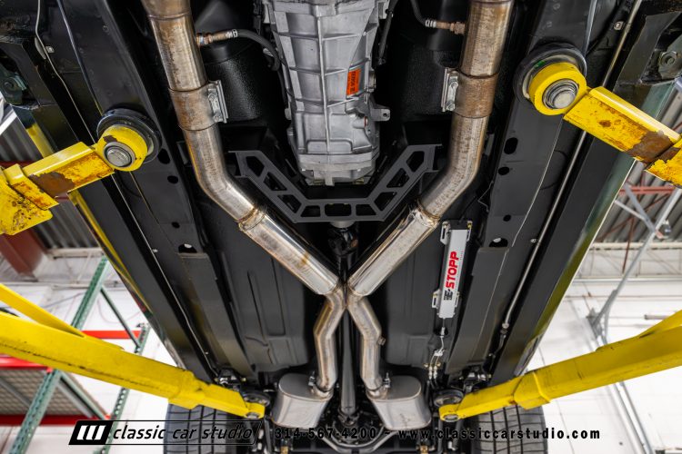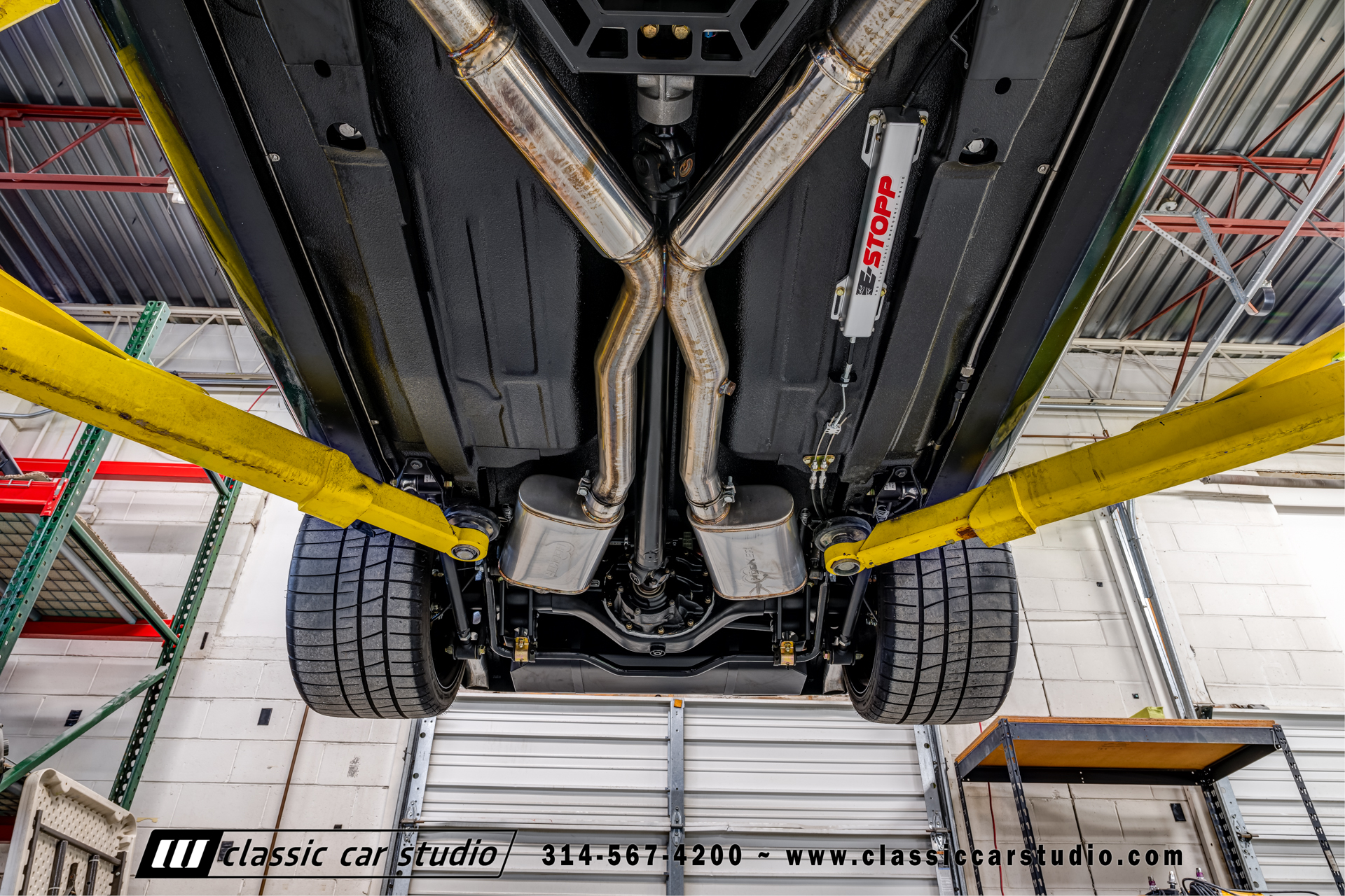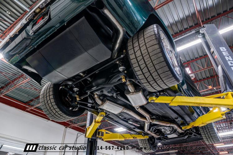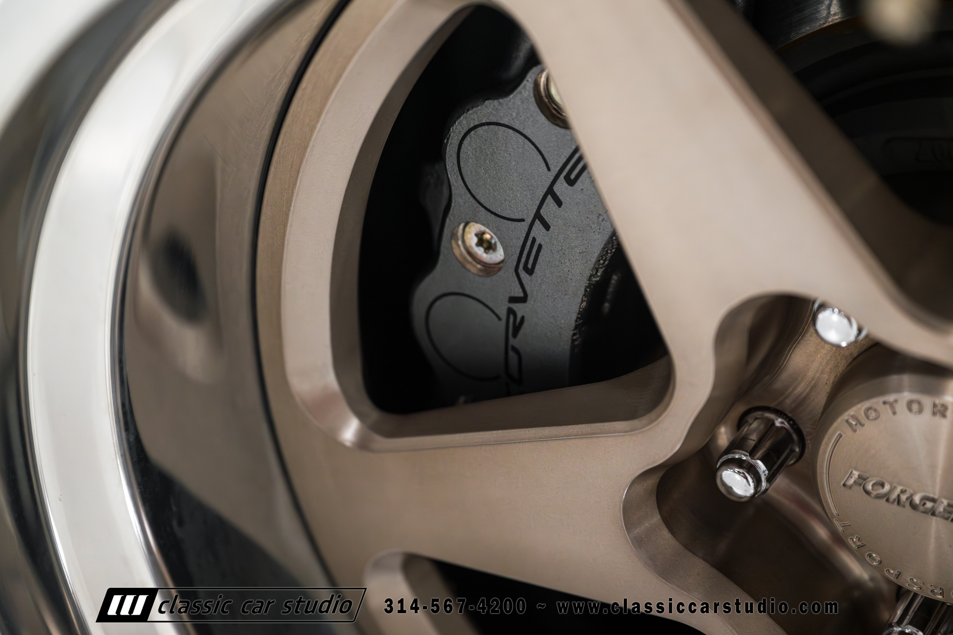 This 1969 Chevrolet Camaro coupe is powered by a 6.2-liter LT4 V8 that is equipped with a Katech supercharger and linked to a Tremec six-speed manual transmission. The car rides on a Detroit Speed suspension kit with a hydroformed front subframe, sway bars, and a Quadralink rear setup, and the Forgeline 18″ wheels are mounted over C6 Z06-specification brakes. The body is finished in dark green with white side stripes and features front and rear spoilers and a cowl induction hood, while the cabin is outfitted with a roll bar, digital climate control, a Kenwood head unit, Hertz audio, cruise control, and black leather Recaro front seats with Schroth harnesses…. (full write up on bringatrailer.com, at the link above)