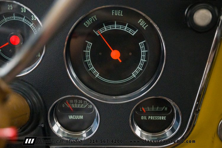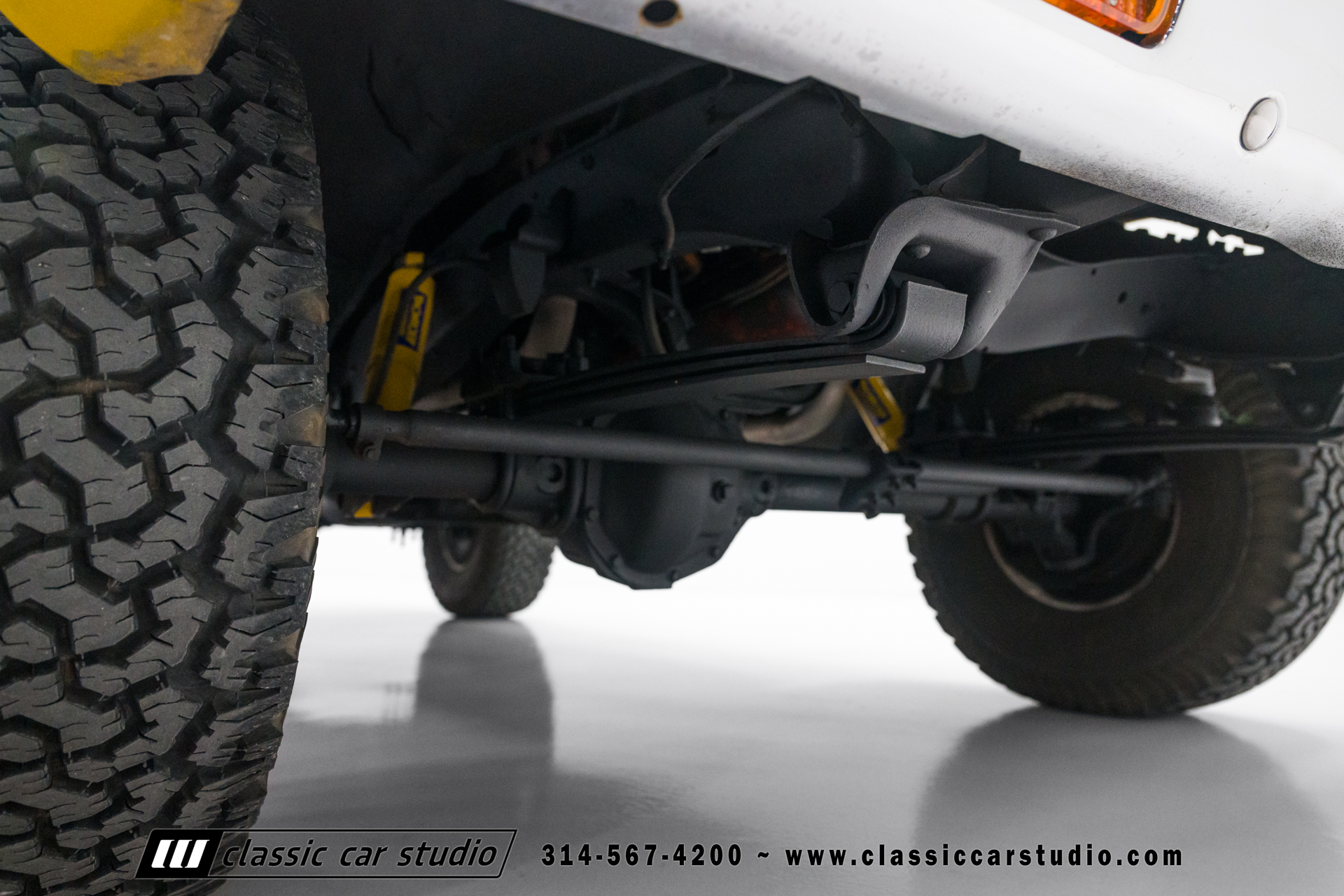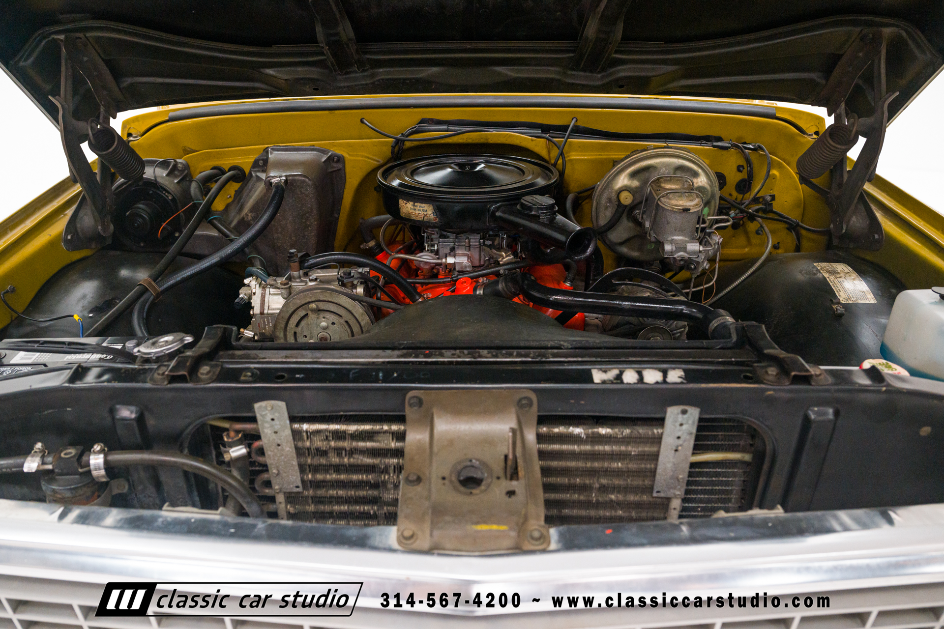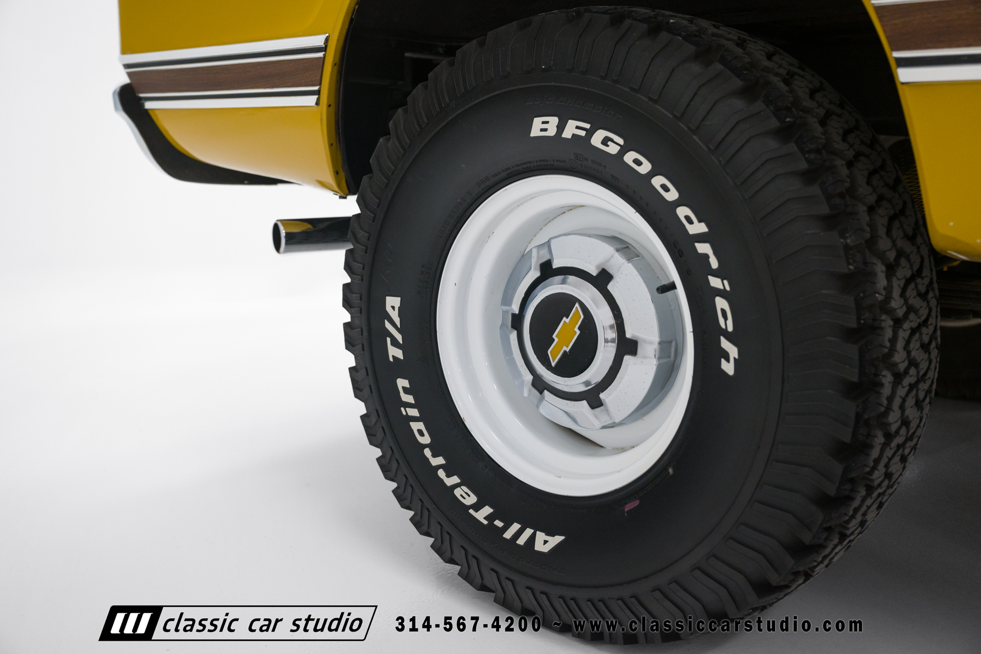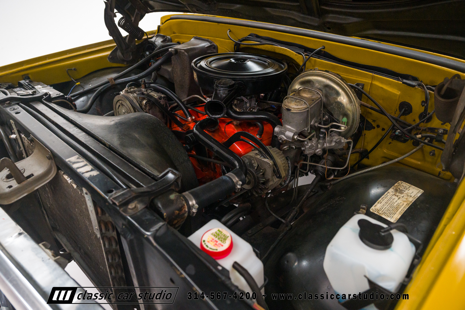 The original 350 fires right up, the transmission shifts properly through all the gears and the transfer case works as it should. All of the gauges are in good working order but the original radio does not turn on. The interior is mostly original and very well kept. The seat covers and door panels are in very good condition for their age.