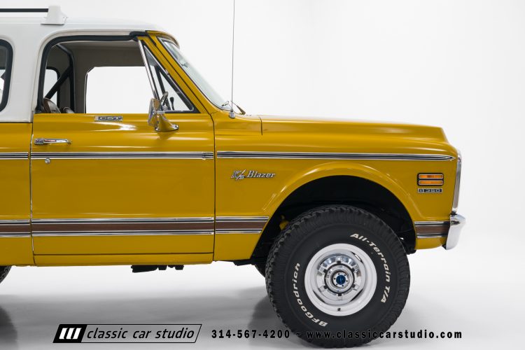 Finished in Ochre over a Saddle interior, this 1972 Blazer CST 4×4 is a beautiful survivor with only 1 repaint around 20 years ago. They are only nice and original once, and this solid Texas truck is free from unsightly modifications and poor quality restoration work that we see on many older vehicles. The K5 has spent much of its life in Texas where it was spared from rust by the arid climate, and to date, she has driven just under 78,000 miles.