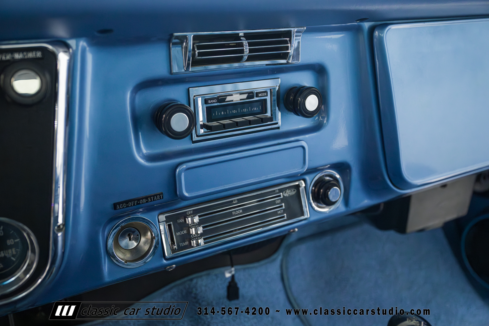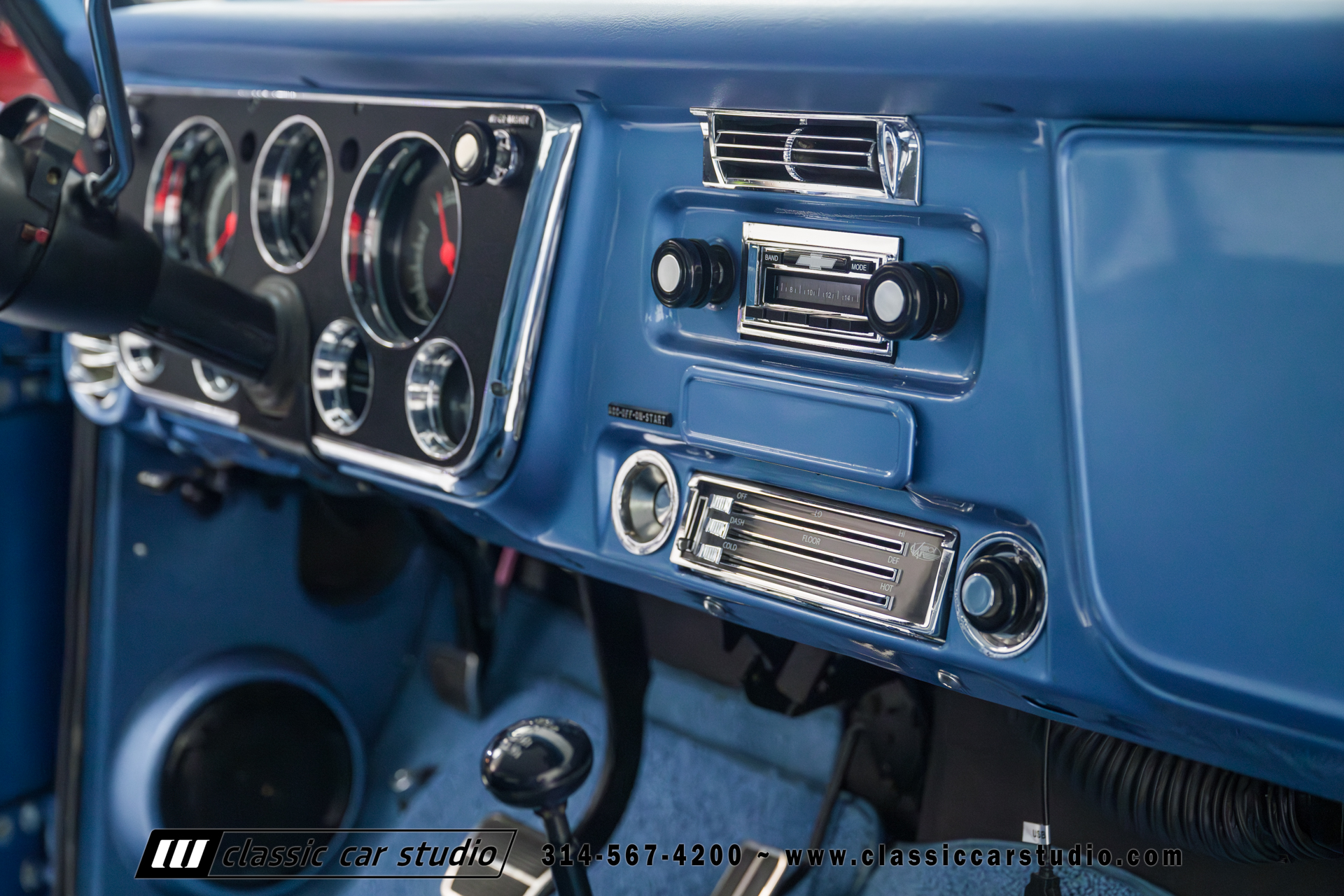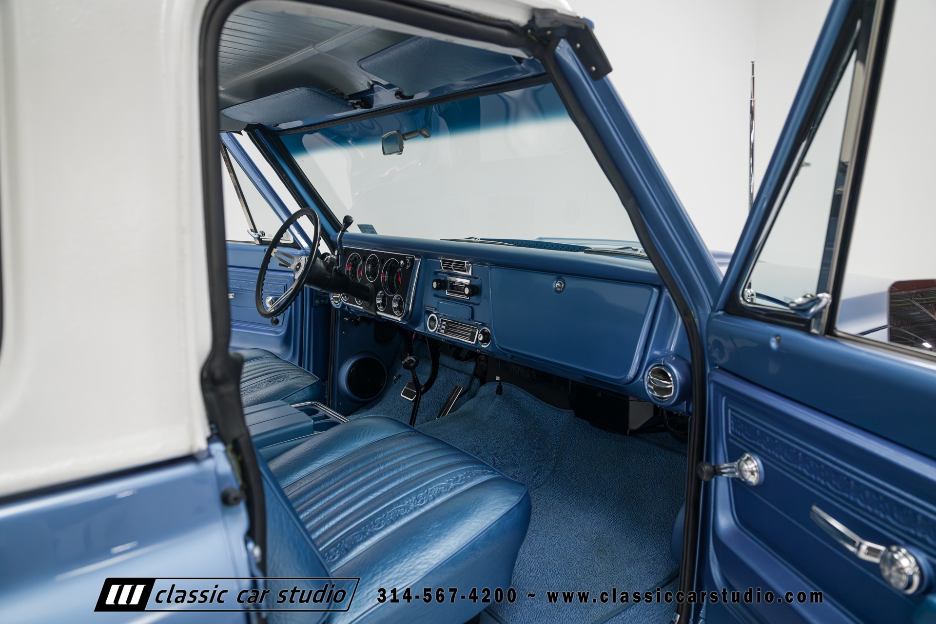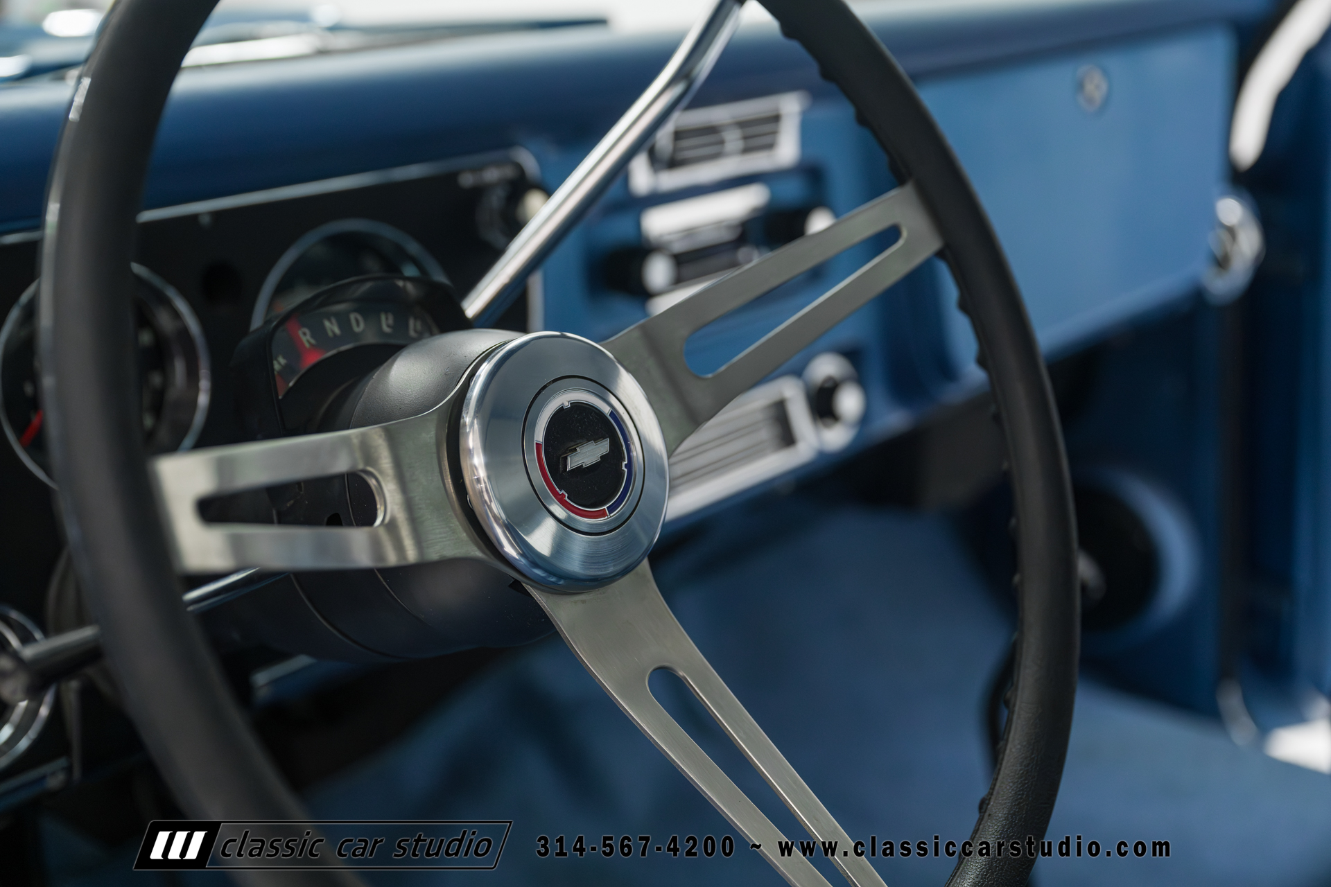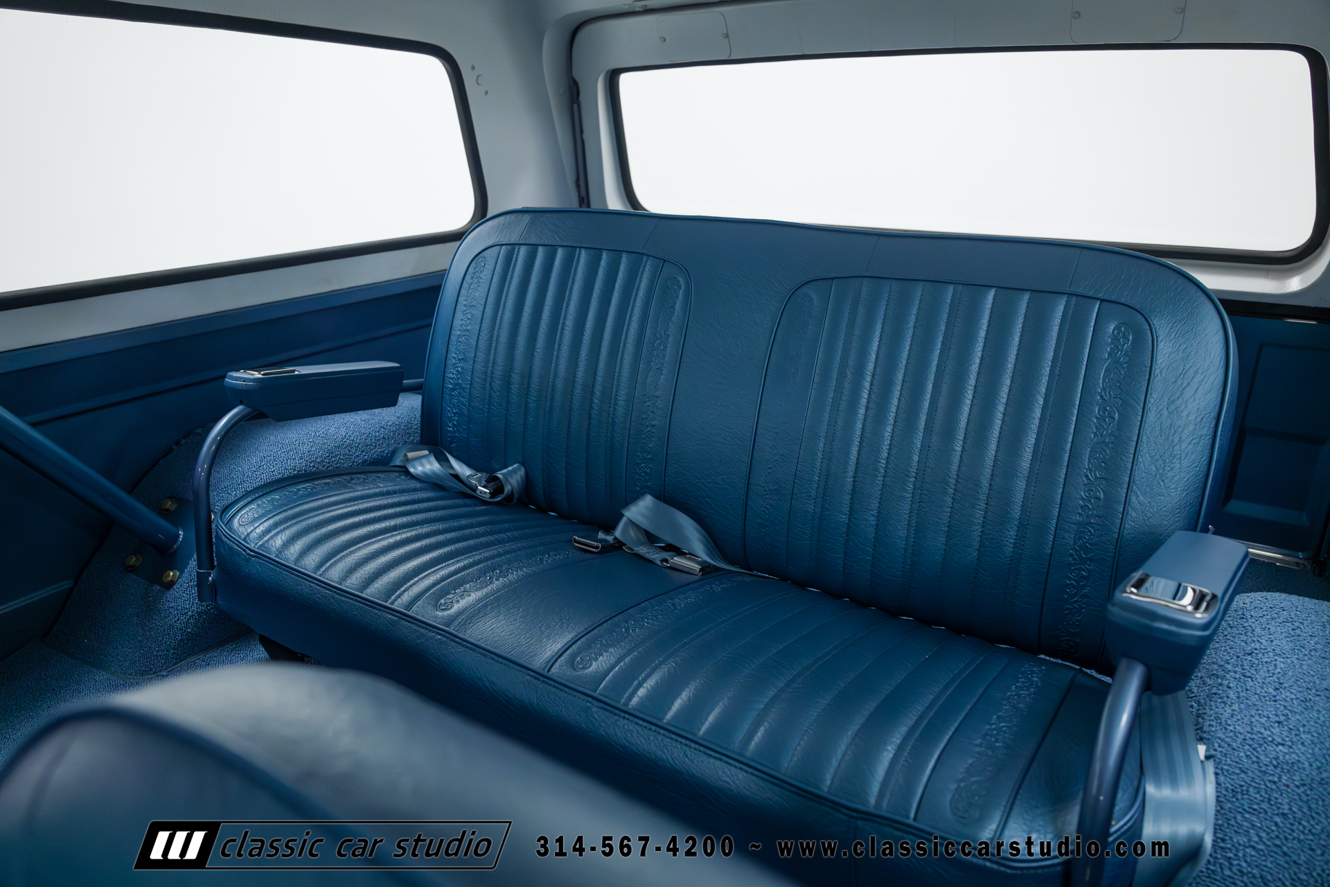 While the body was off, the frame was sandblasted and powder coated before it was reassembled with all new suspension components. The brakes have been rebuilt and are configured with front disc, rear drum, and a new master cylinder and booster. All of the brake lines and hoses are new as well. The wheels are 17” steel wheels with custom fitted restored dog dishes and new BFG tires.