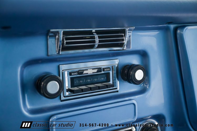 The interior has been replaced with new carpeting, new upholstery, a 3-spoke steering wheel, and a Custom Autosound radio with all 4 new speakers. The gauges include a 100 MPH speedo, 8k tach, and accompanying auxiliary gauges. Under the dash, you’ll find all new Painless wiring, a modern fuse box, and everything else is squeaky clean just like the rest of the truck. The hardtop is the hard-to-come-by, double-walled version. Keeping you cool is a Vintage Air system that comes with a Sanden compressor, and all new under-dash components.