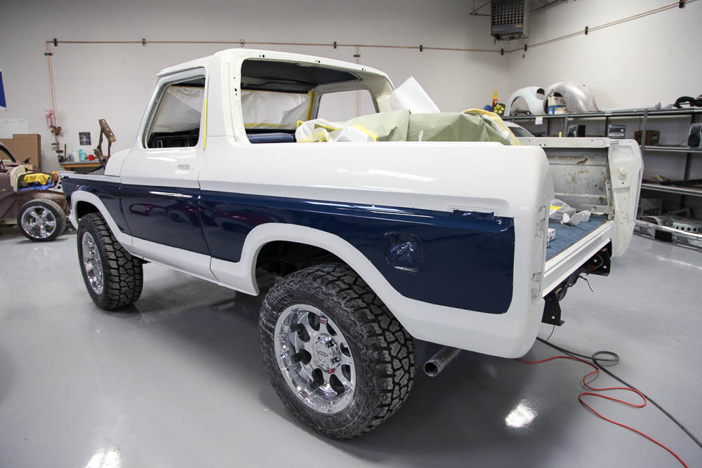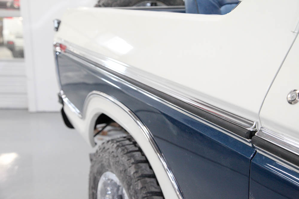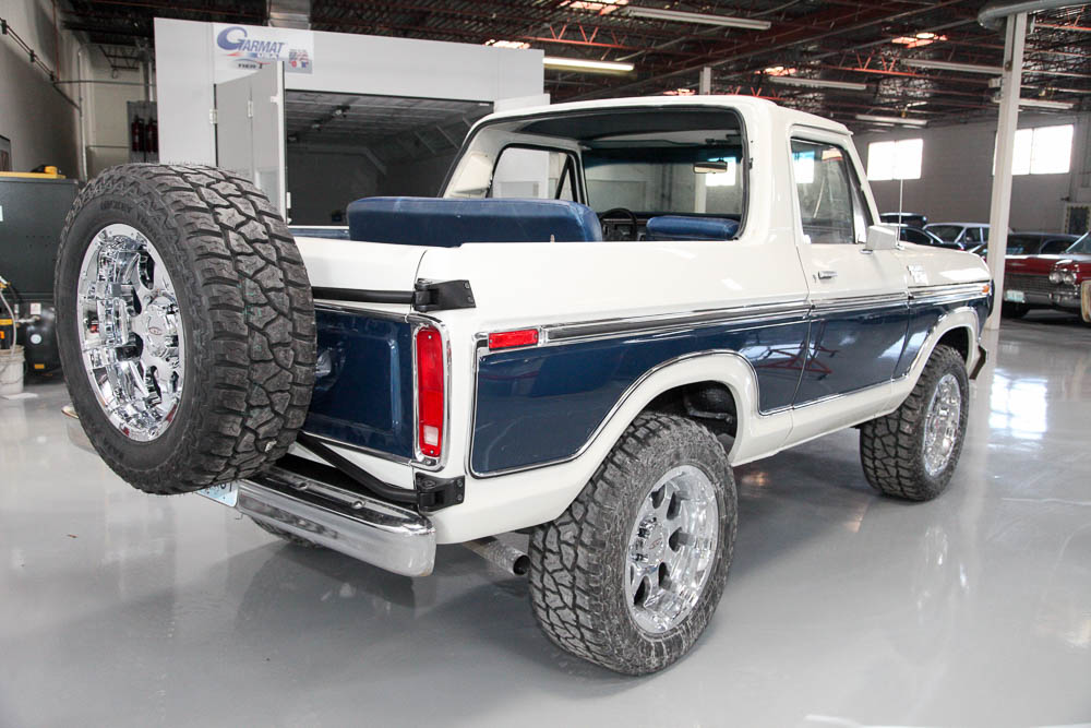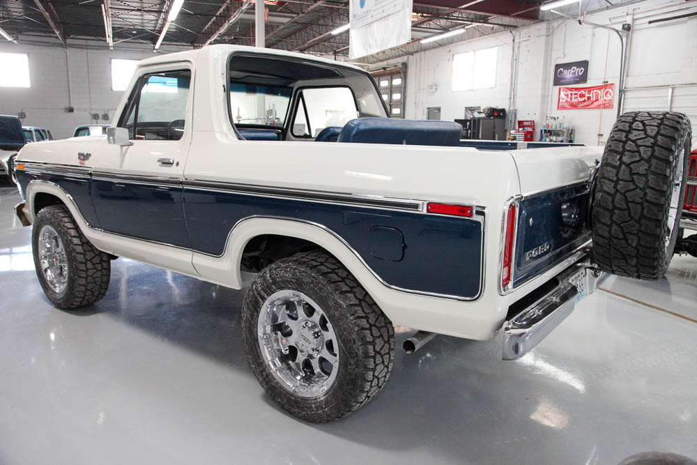 The Bronco features a rebuilt 351M connected to a manual transmission and a Ford 9” rear end. All were rebuilt during the restoration work. At the time of the restoration, we added Vintage Air and aftermarket wheels, a larger cooling system, electronic ignition, and a modern stereo.