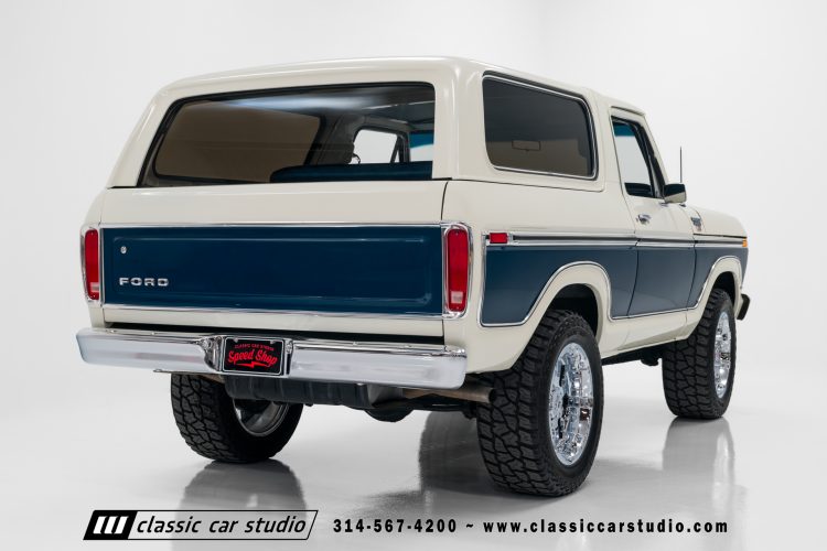 This 1978 Bronco was a restoration performed 10 years ago by Classic Car Studio. We originally purchased it for the build as a solid survivor out of the desert. It’s been stored in a climate controlled garage since then and was driven just over 10,000 miles since it was completed. We’ve also been servicing the truck in house for our customer since it was restored. This is a great driving truck that you can drive and enjoy!
