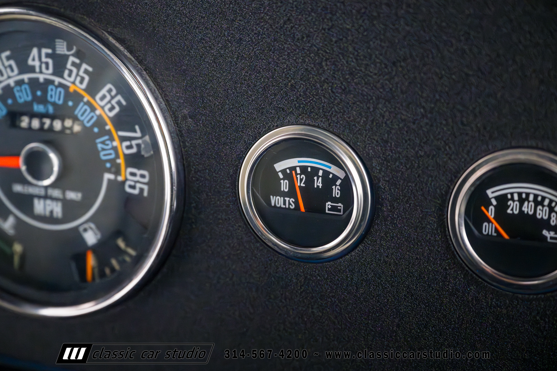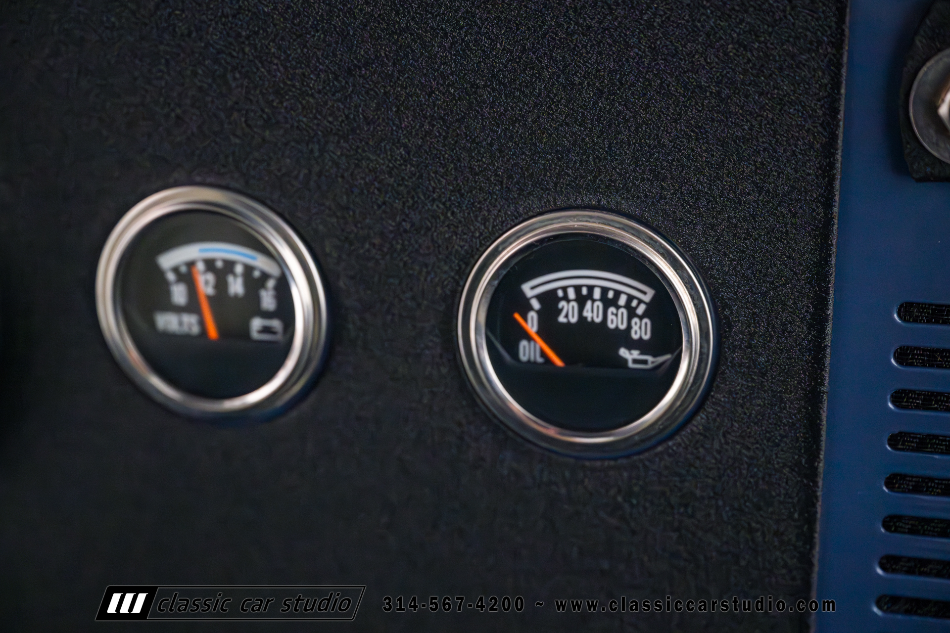 Behind the three-spoke steering wheel, a prominent 85-mph speedometer takes center stage, flanked by inset readouts for coolant temperature and fuel level. Supplementary gauges for oil pressure and voltage provide comprehensive insights into the vehicle’s performance.