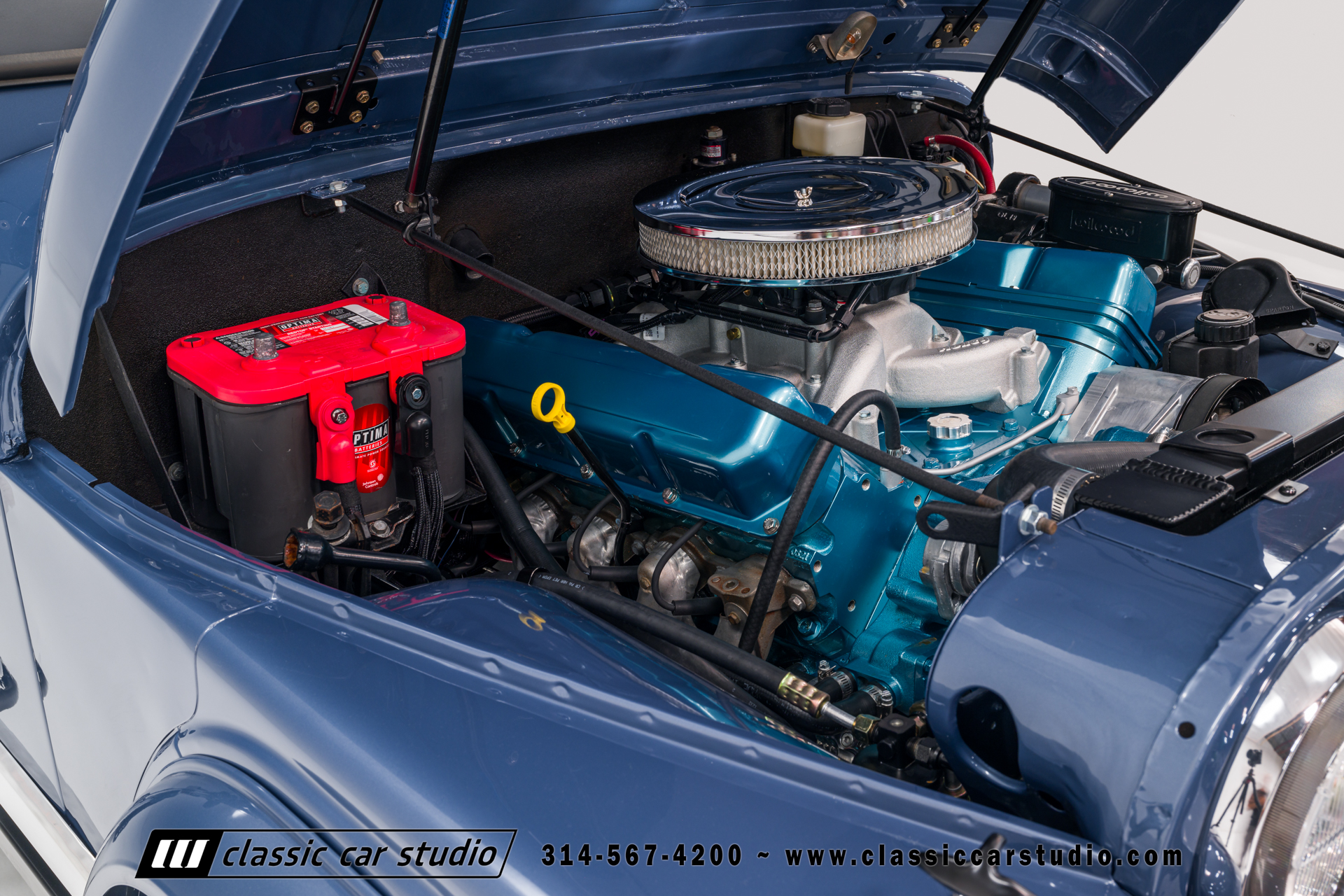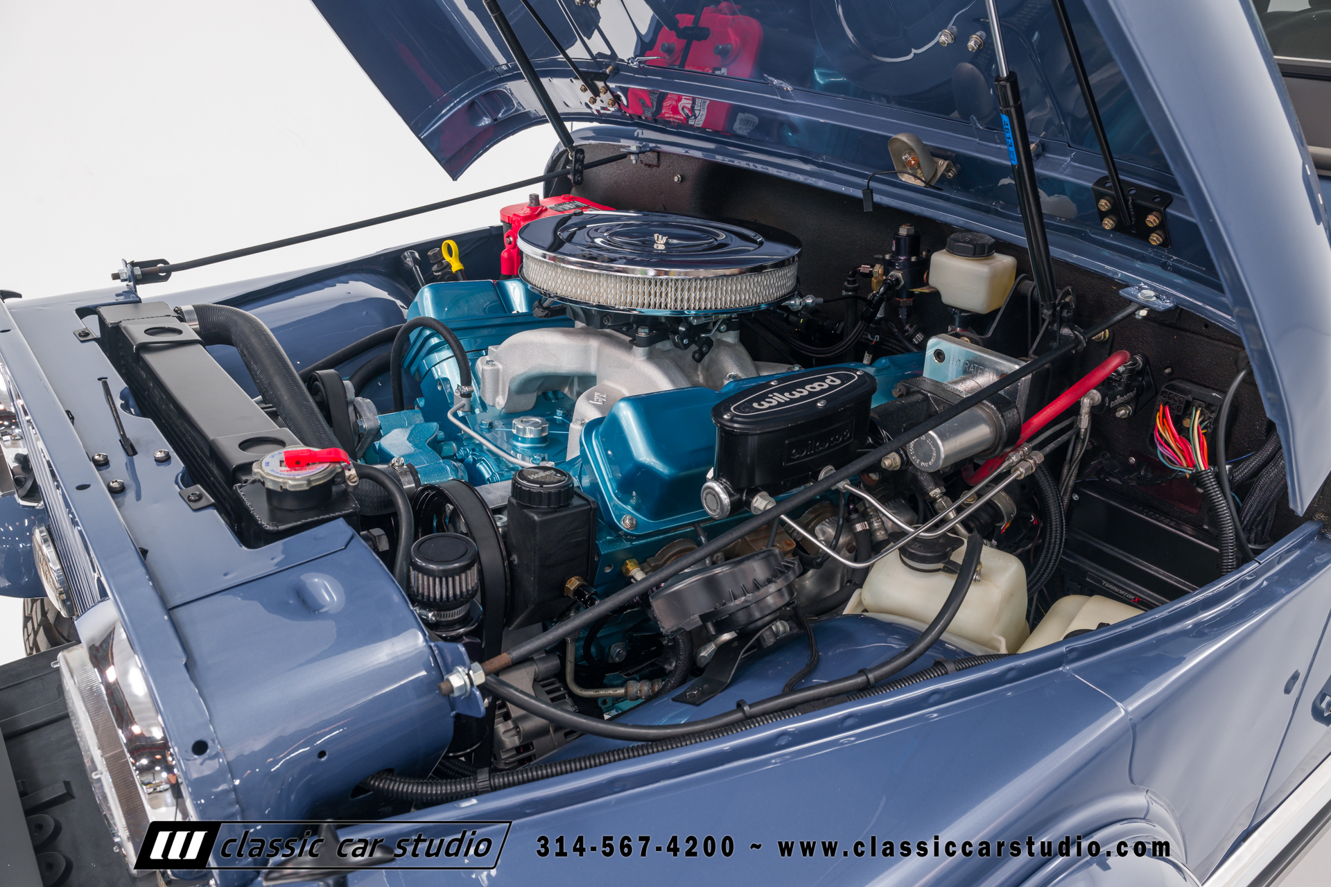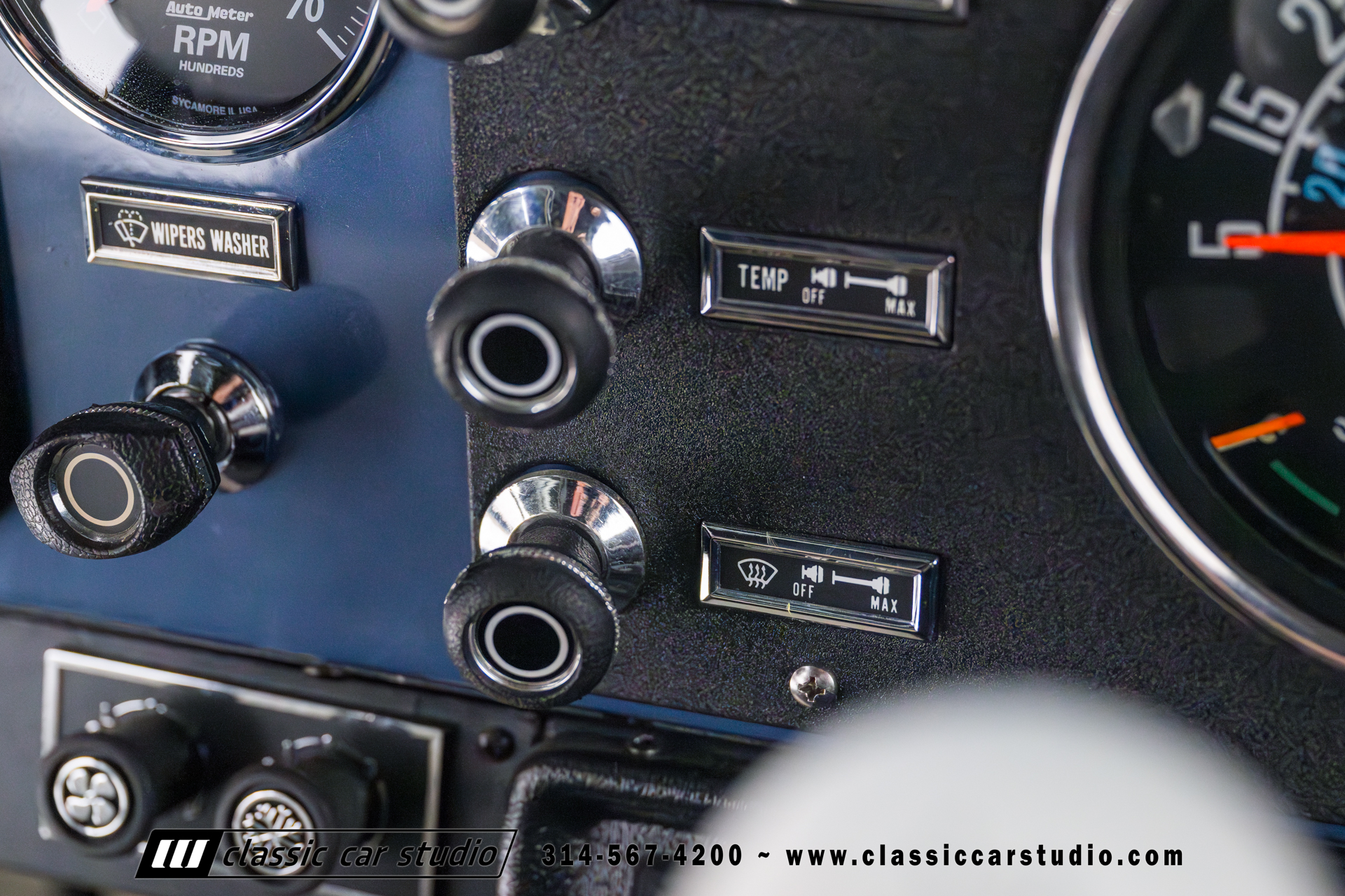 As a recipient of an early Corvette LS1 swap, the owner aimed to elevate the engine to contemporary LS standards. Classic Car Studio, in pursuit of enhancing an already remarkable platform, replaced the engine with a new GM Performance LS3, controlled by a Holley Terminator system. The engine, meticulously painted in the correct AMC blue, mirrors the original Jeep’s finish.