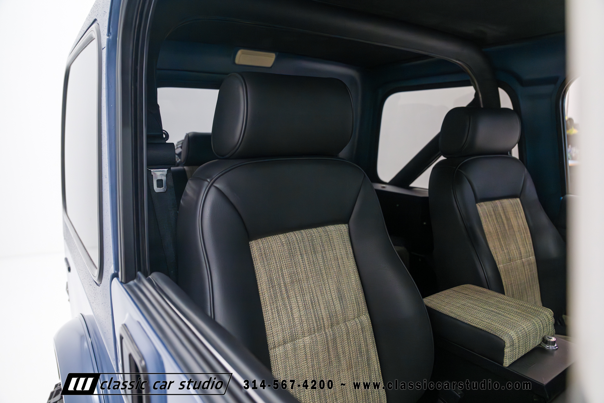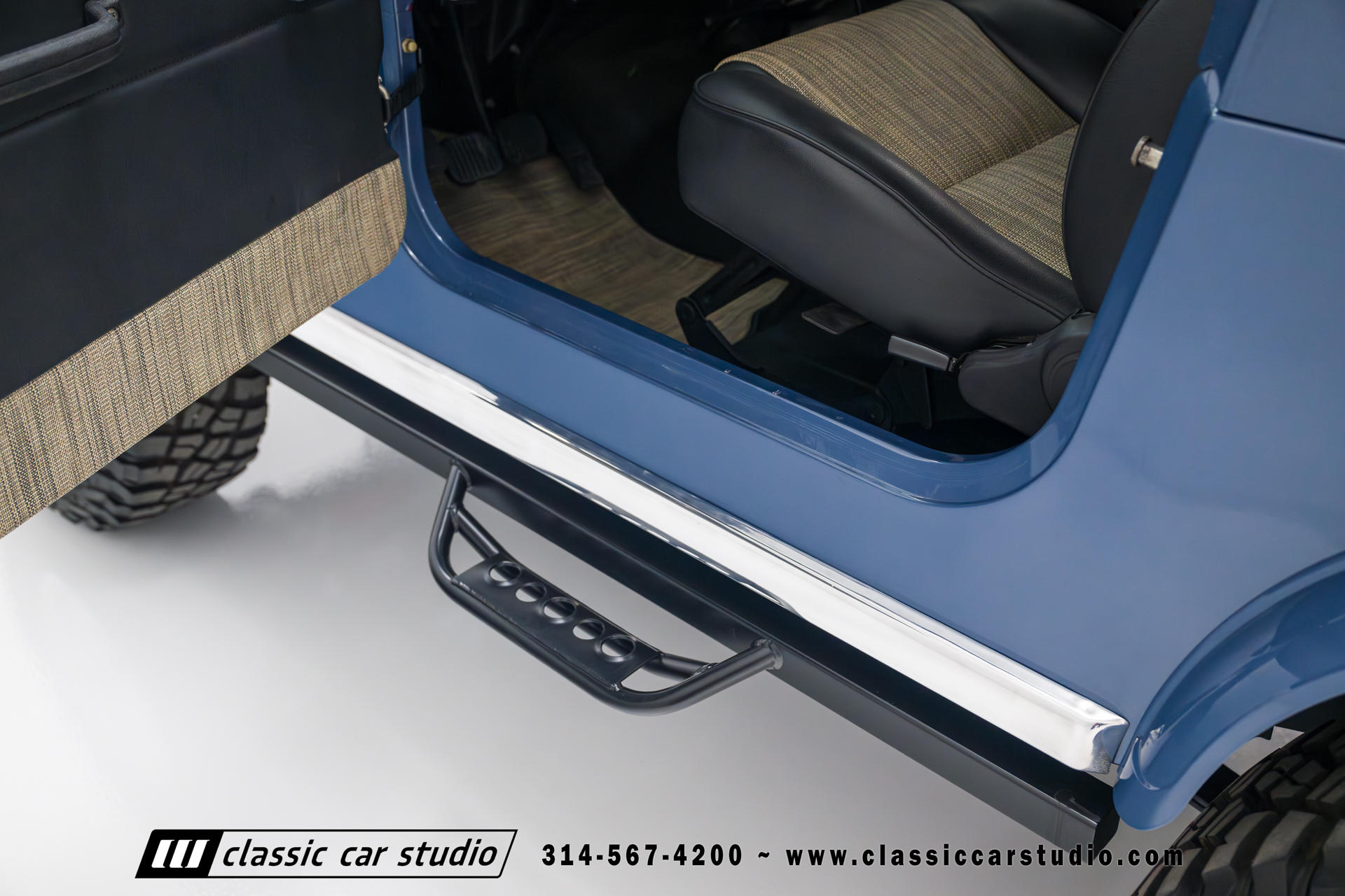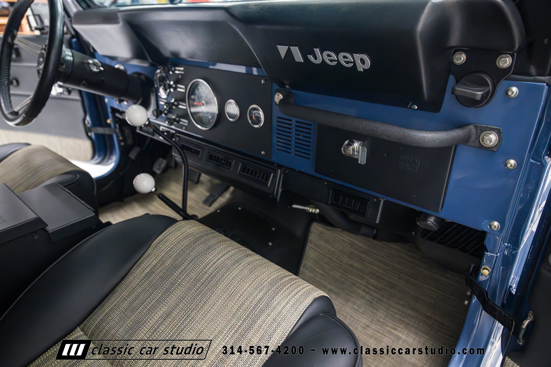 Initially, this CJ-7 started its journey as a robust Limited Edition truck. As of 2021, it retained its original mileage at just 27,000, showcasing its enduring quality. Seeking to actualize a modern version of the CJ7 Limited, the current owner entrusted the truck to Classic Car Studio in 2023.