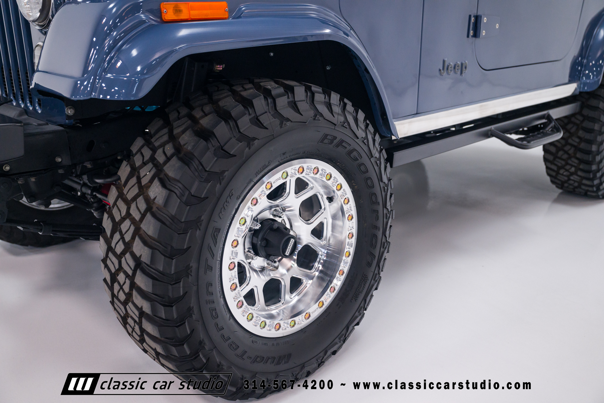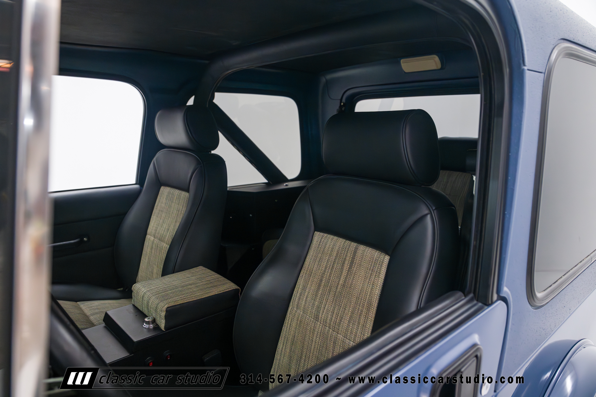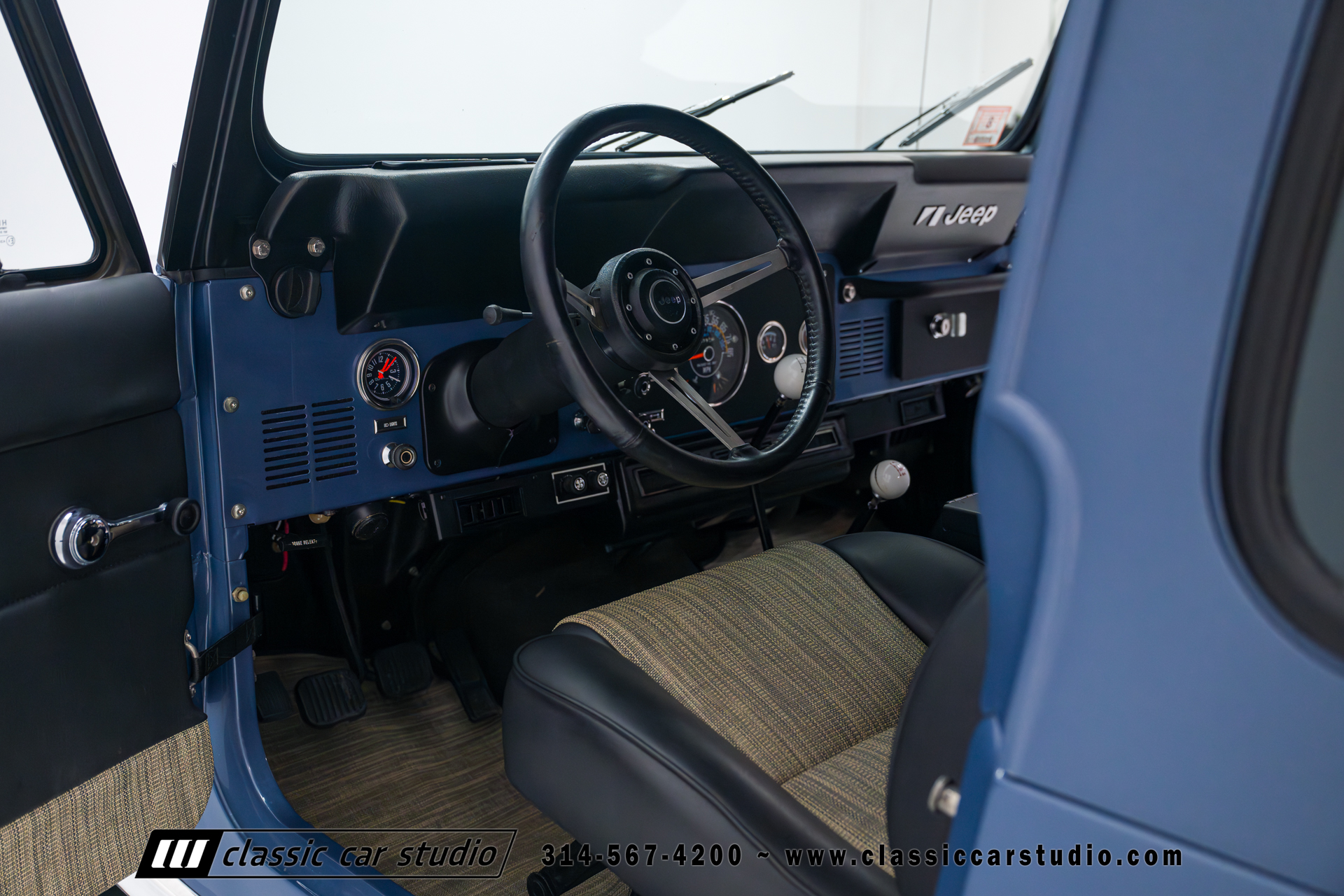 Initially, this CJ-7 started its journey as a robust Limited Edition truck. As of 2021, it retained its original mileage at just 27,000, showcasing its enduring quality. Seeking to actualize a modern version of the CJ7 Limited, the current owner entrusted the truck to Classic Car Studio in 2023.