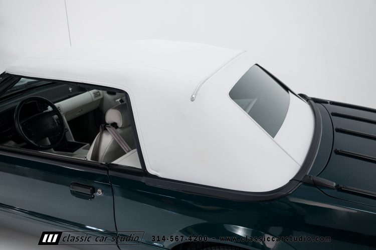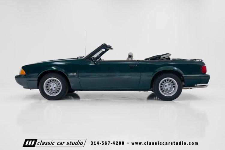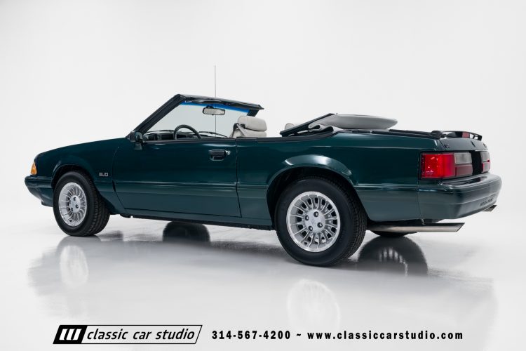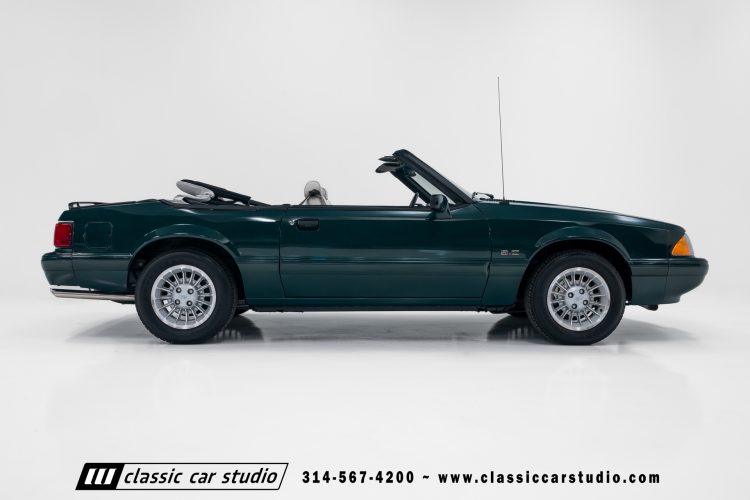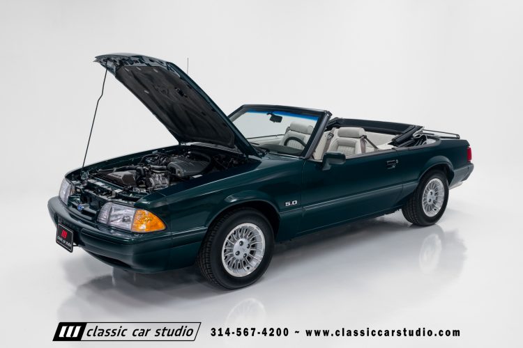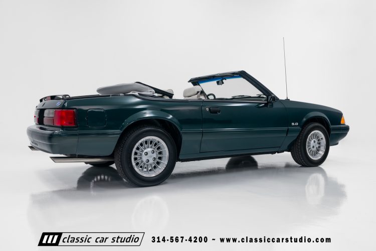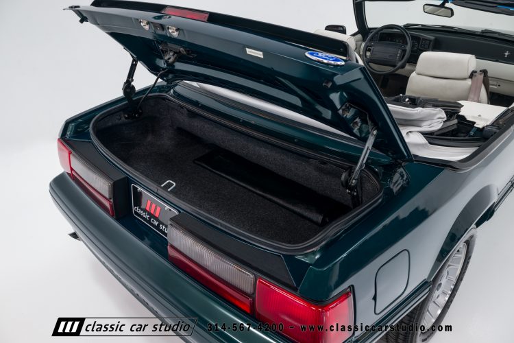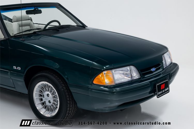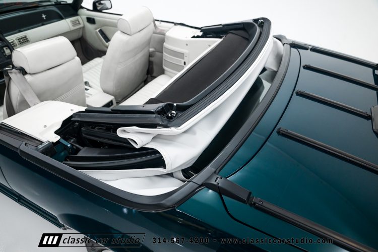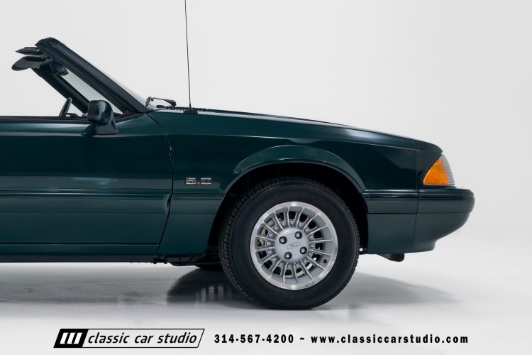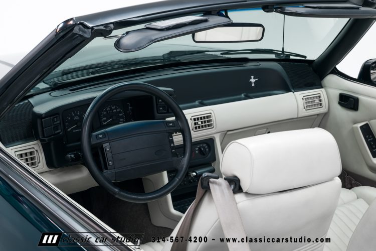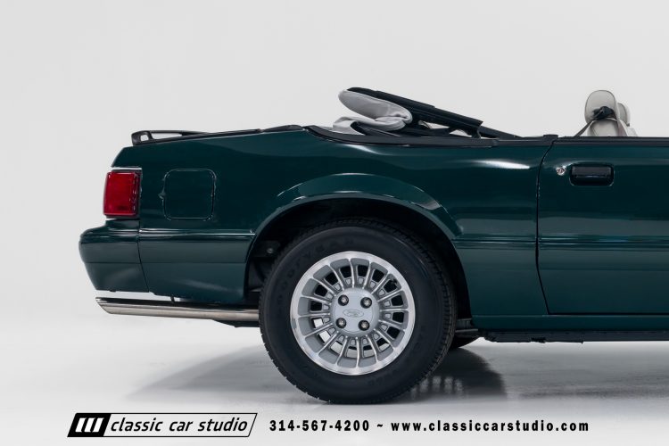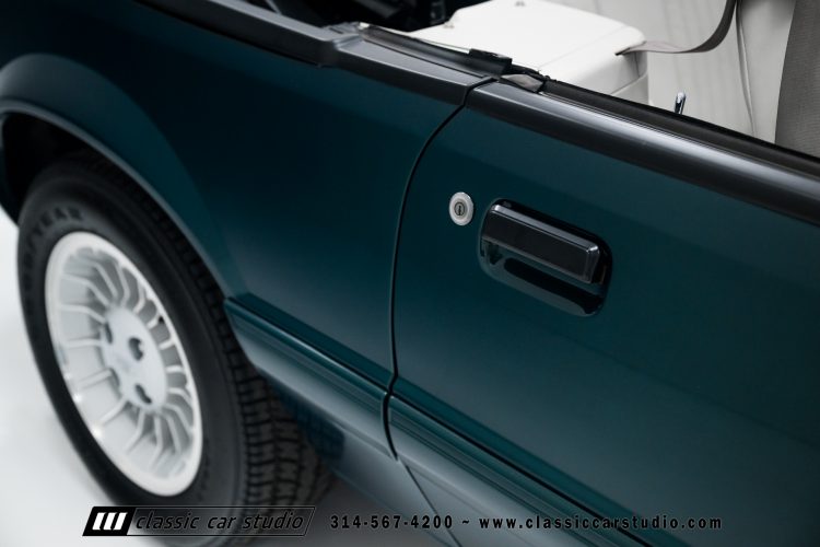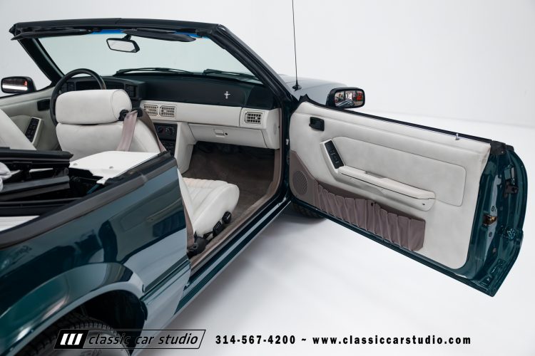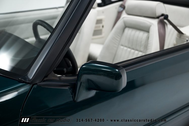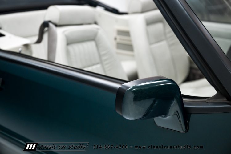 All of the 7-Up Mustangs were LX convertibles powered by the 255 HP, 5.0 V8. They were all finished in Deep Emerald Green with color keyed mirrors and moldings. They also came equipped with the GT’s 15” aluminum rims and a package that included cruise control, an upgraded sound system and AC.