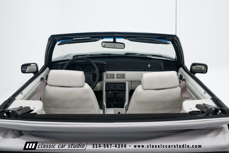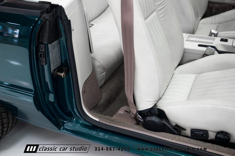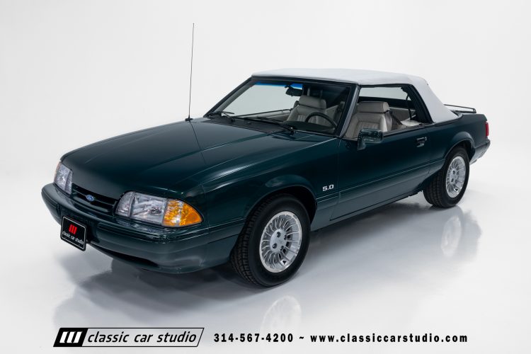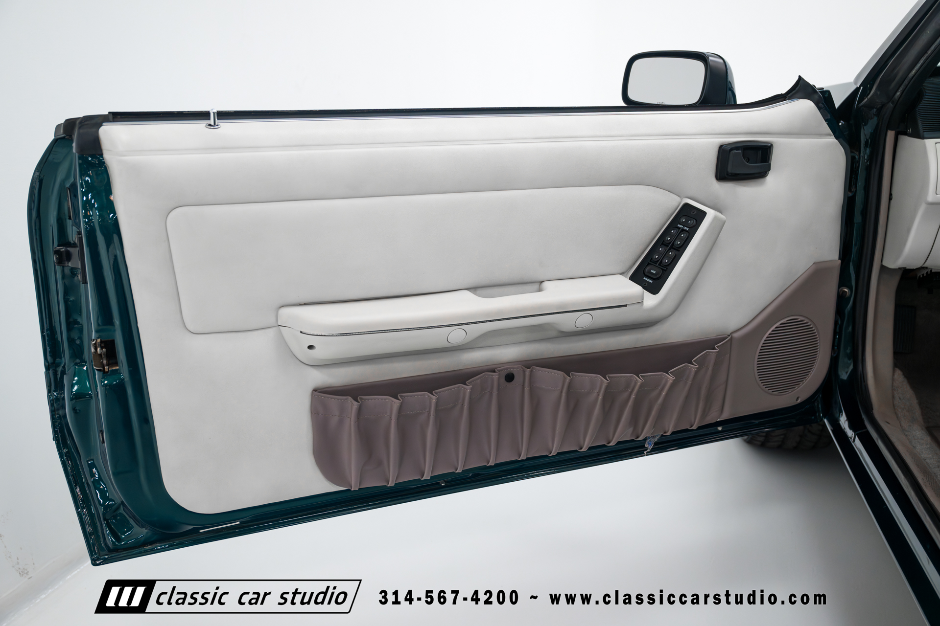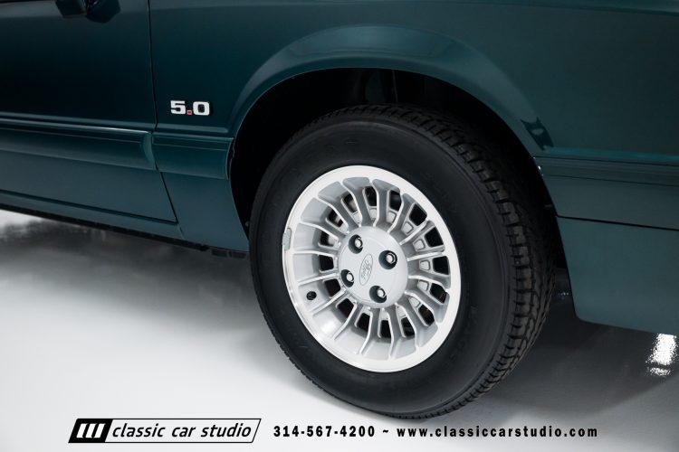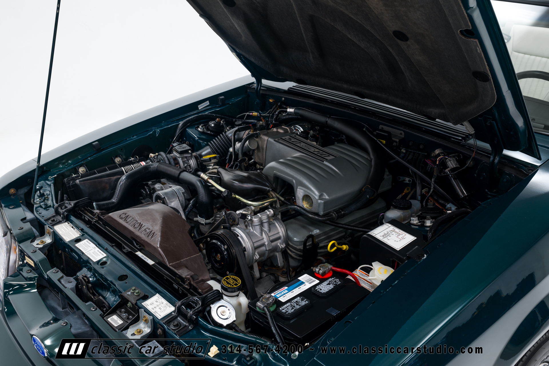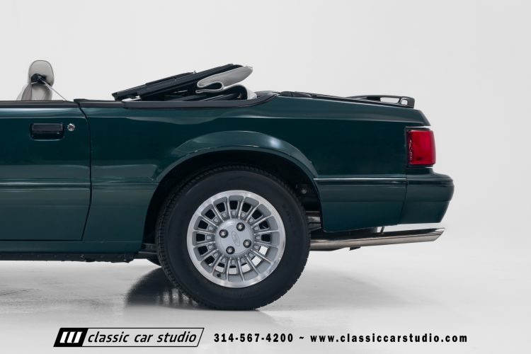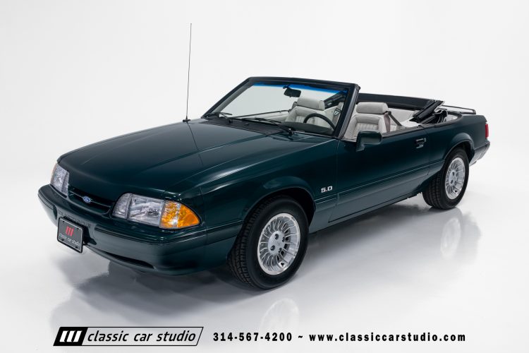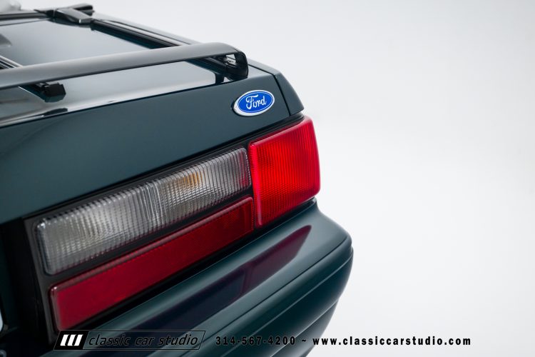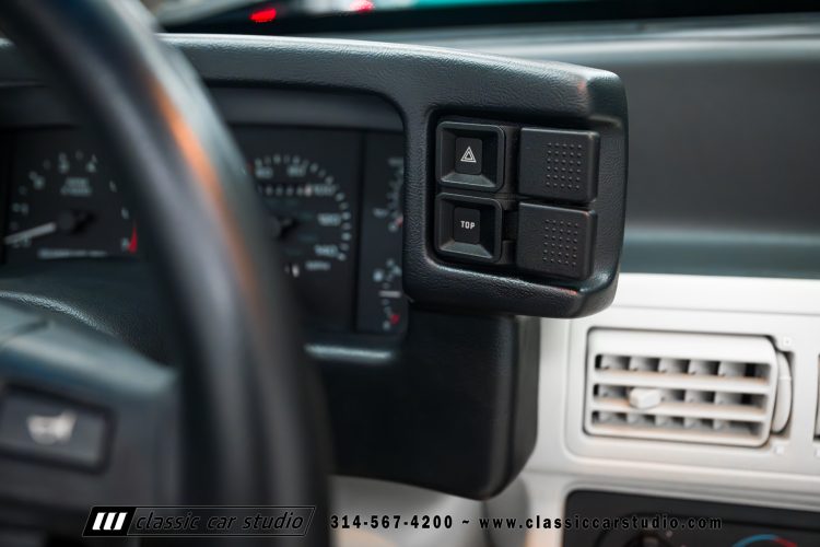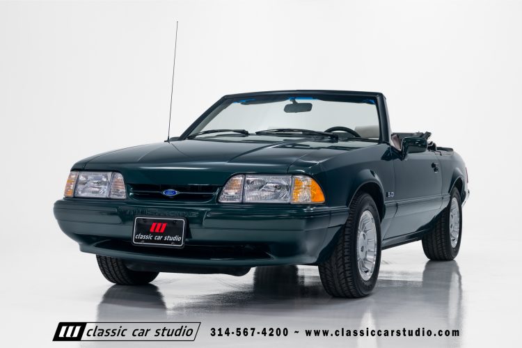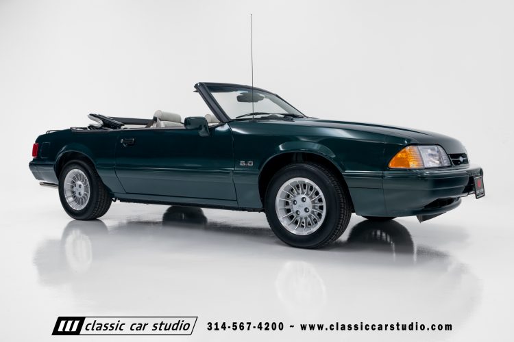 All of the 7-Up Mustangs were LX convertibles powered by the 255 HP, 5.0 V8. They were all finished in Deep Emerald Green with color keyed mirrors and moldings. They also came equipped with the GT’s 15” aluminum rims and a package that included cruise control, an upgraded sound system and AC.