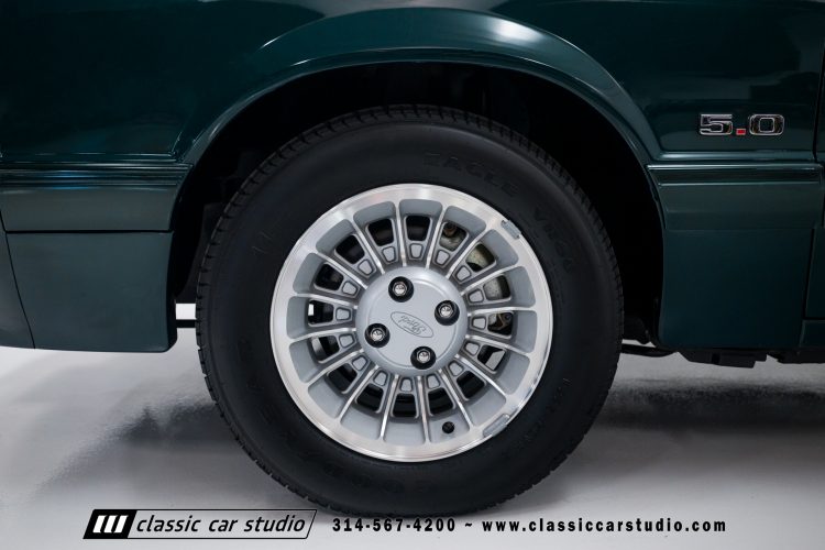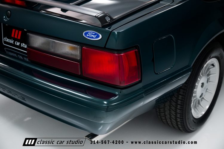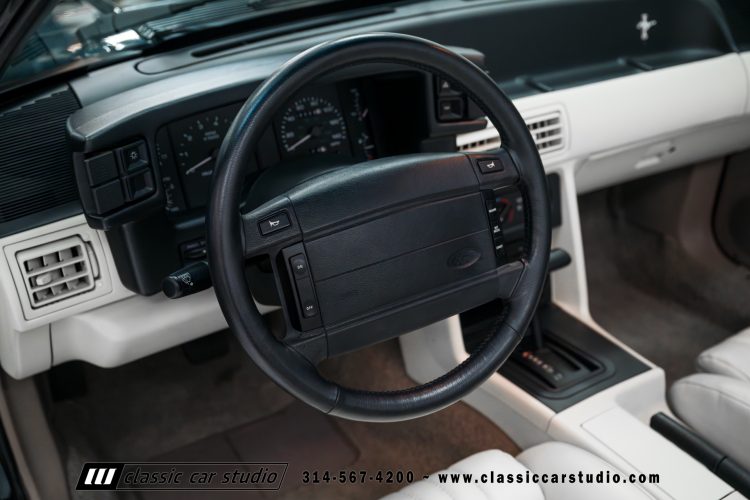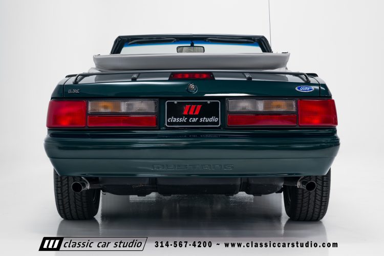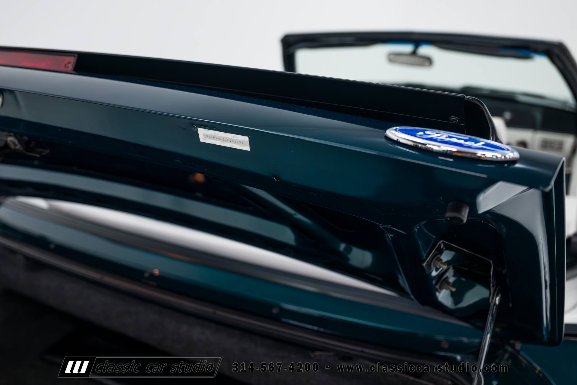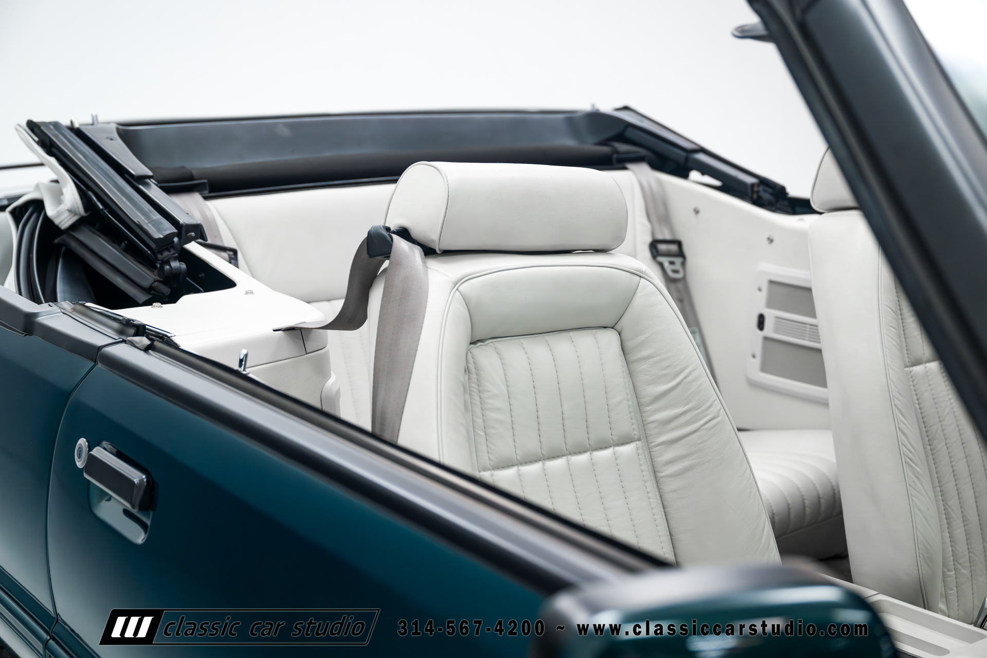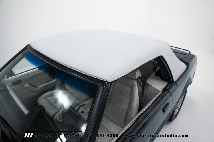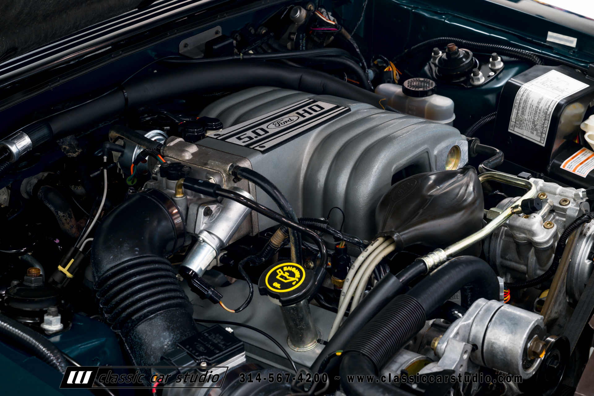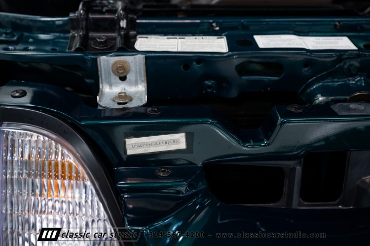 All of the 7-Up Mustangs were LX convertibles powered by the 255 HP, 5.0 V8. They were all finished in Deep Emerald Green with color keyed mirrors and moldings. They also came equipped with the GT’s 15” aluminum rims and a package that included cruise control, an upgraded sound system and AC.