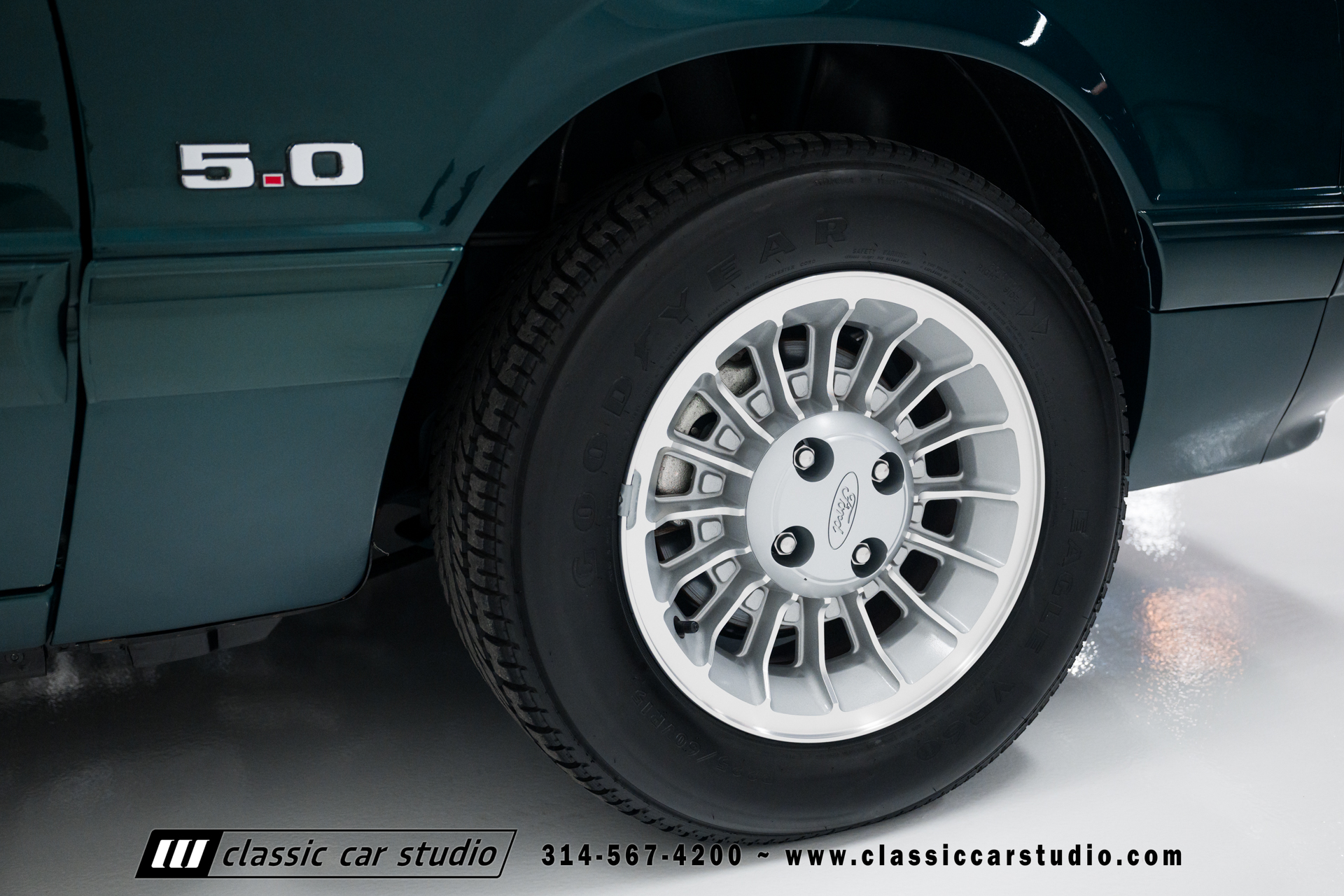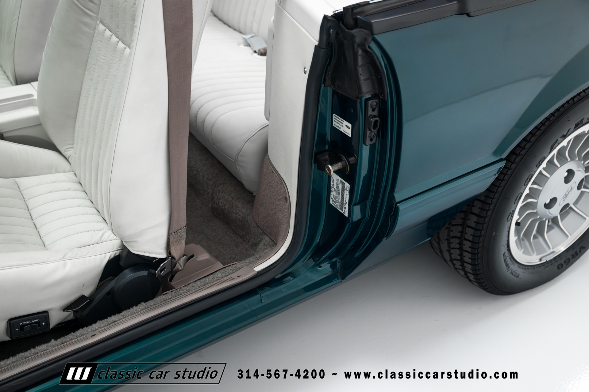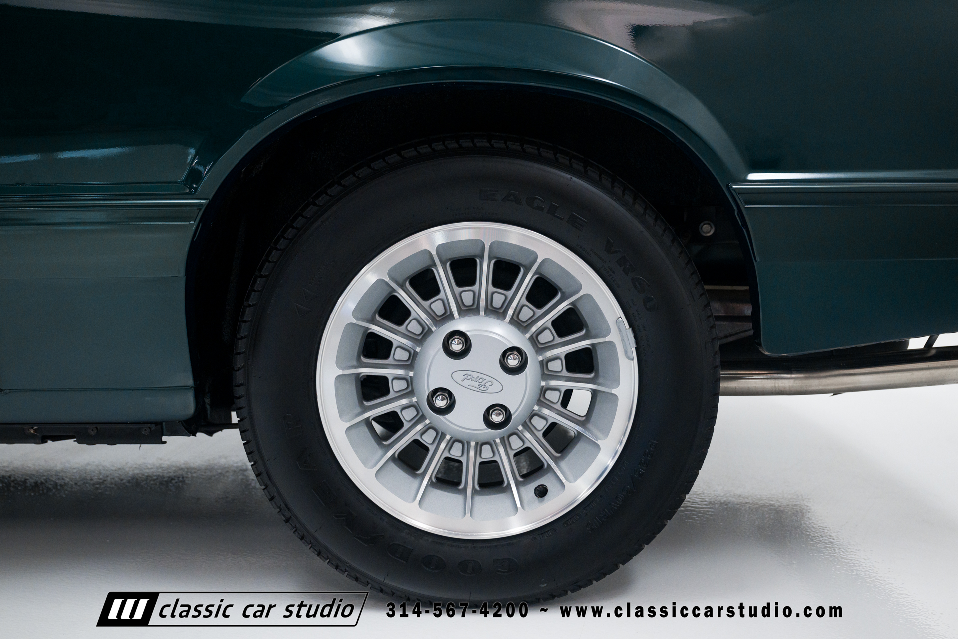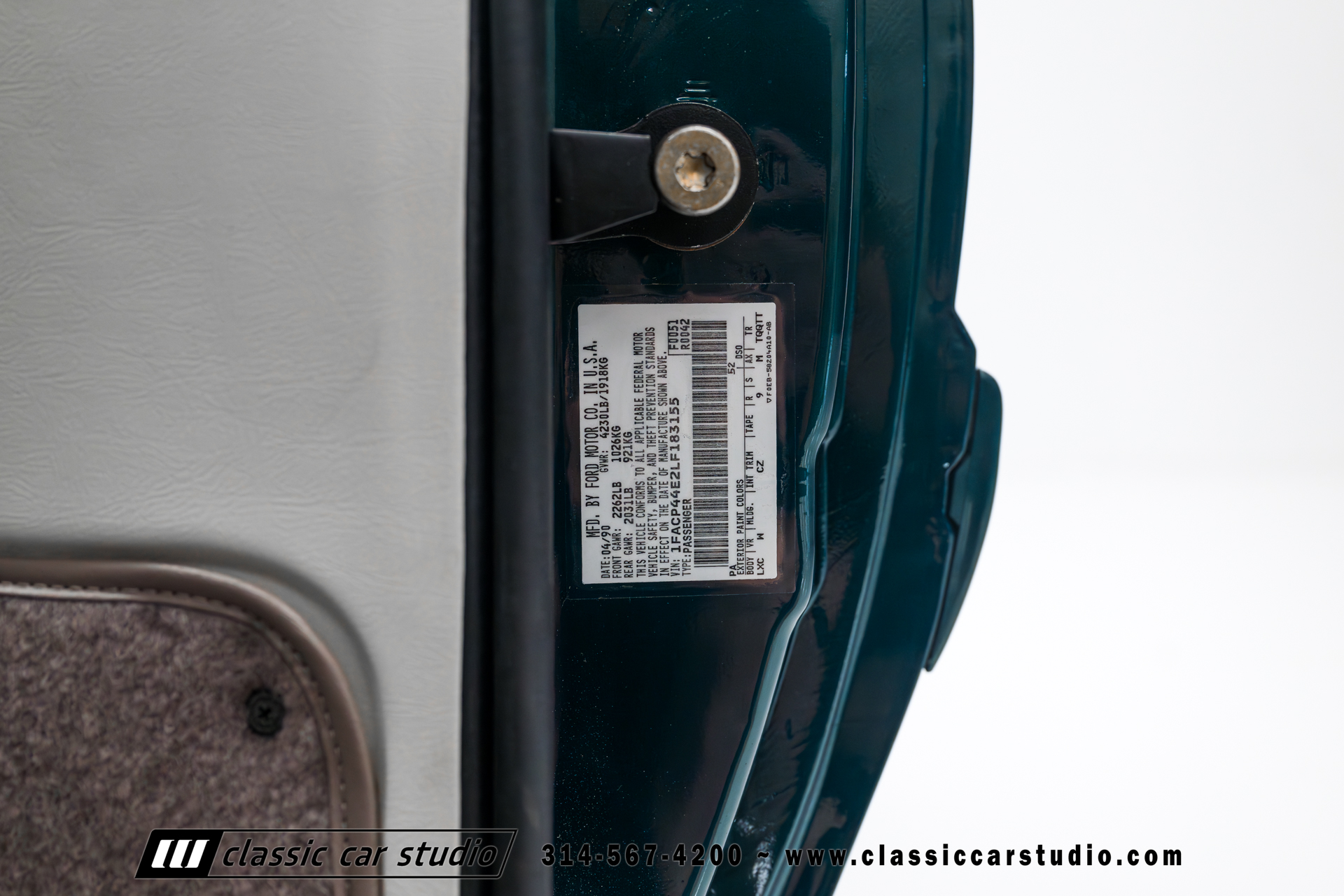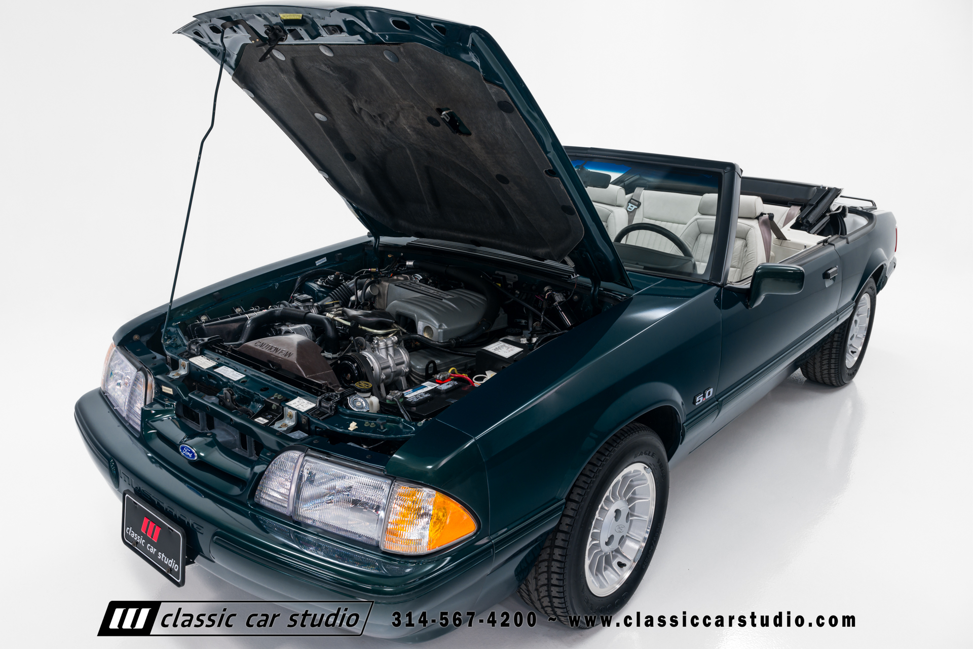 All of the 7-Up Mustangs were LX convertibles powered by the 255 HP, 5.0 V8. They were all finished in Deep Emerald Green with color keyed mirrors and moldings. They also came equipped with the GT’s 15” aluminum rims and a package that included cruise control, an upgraded sound system and AC.
