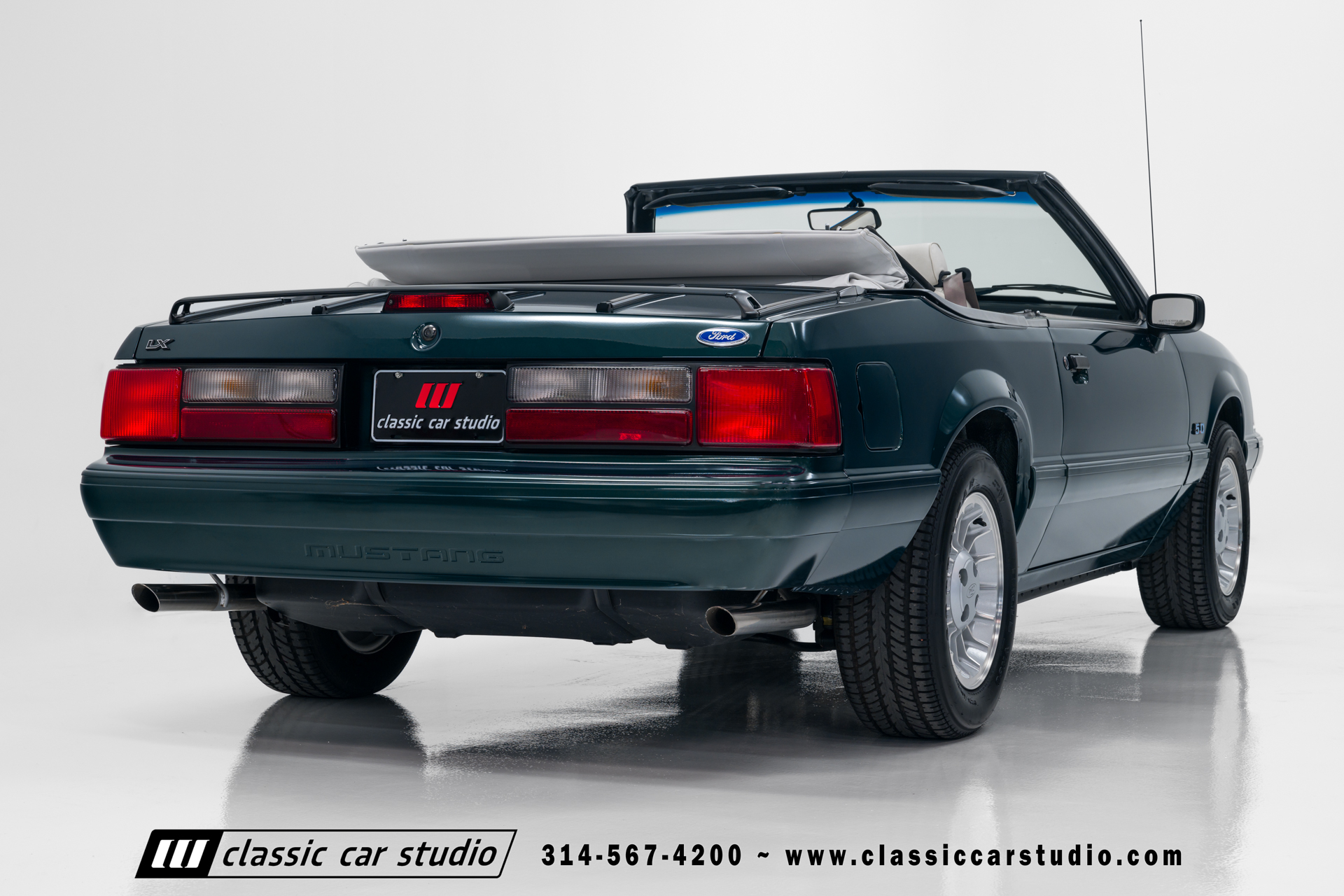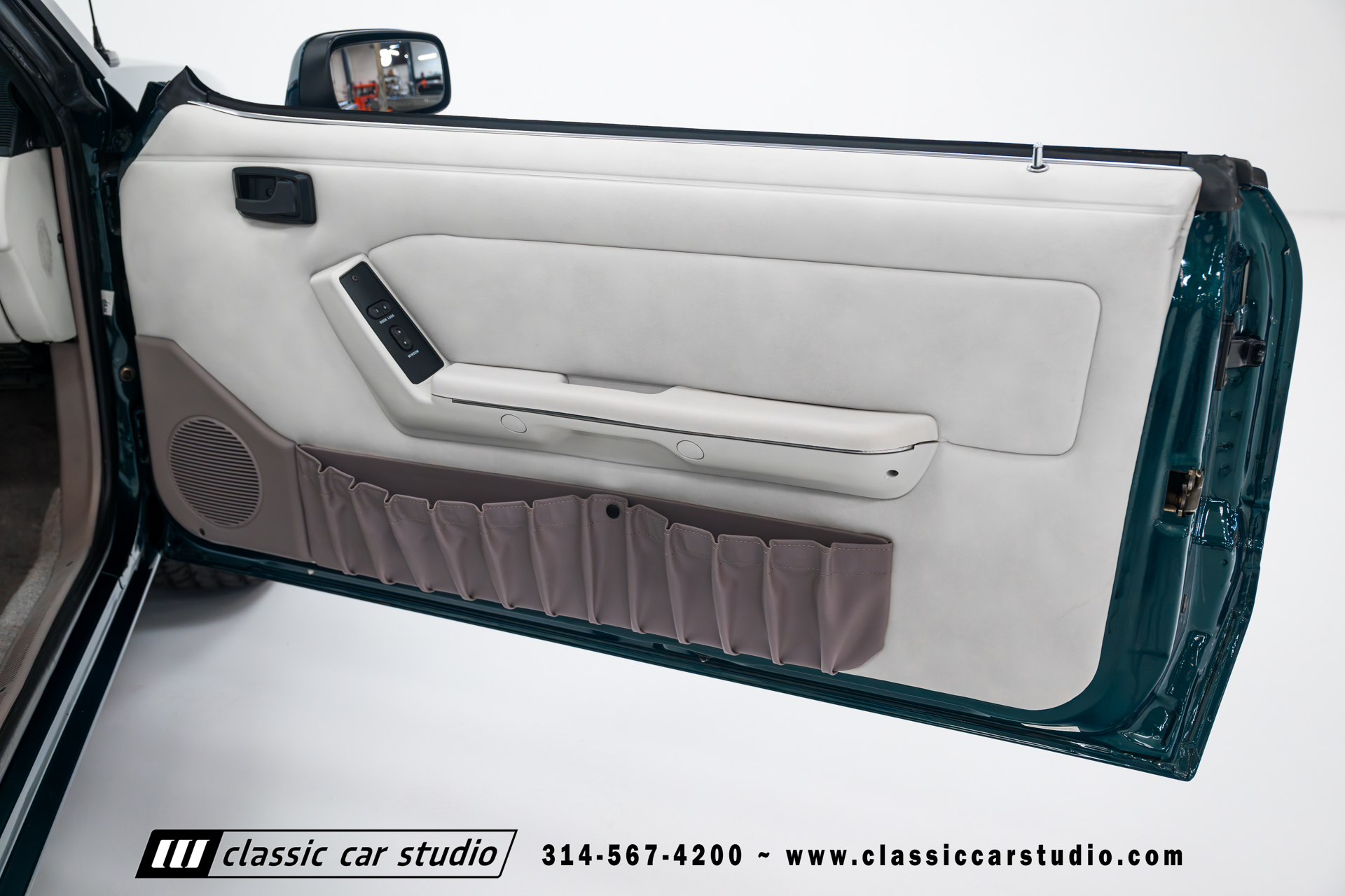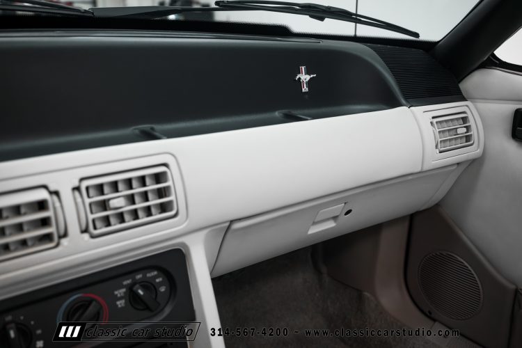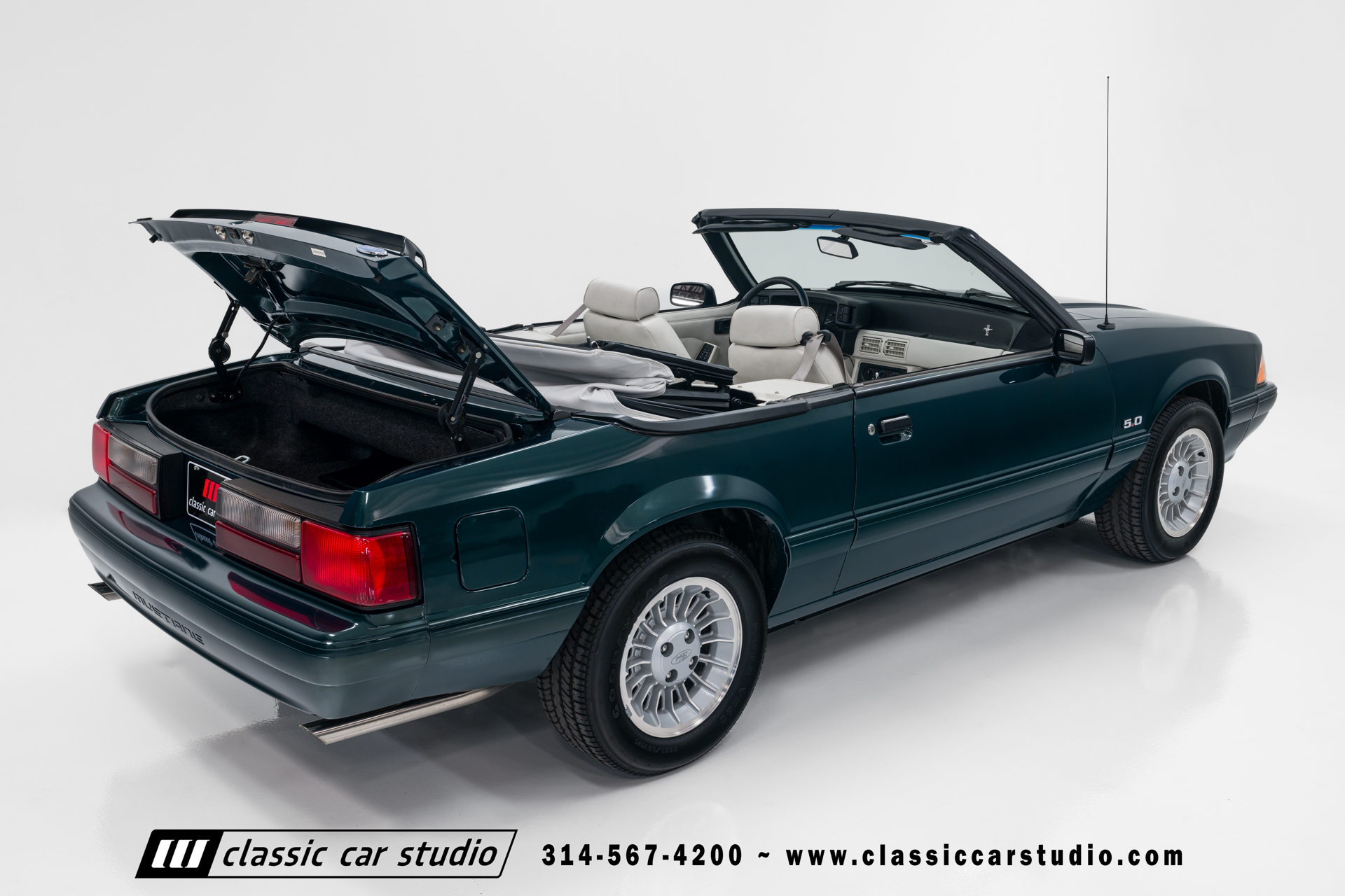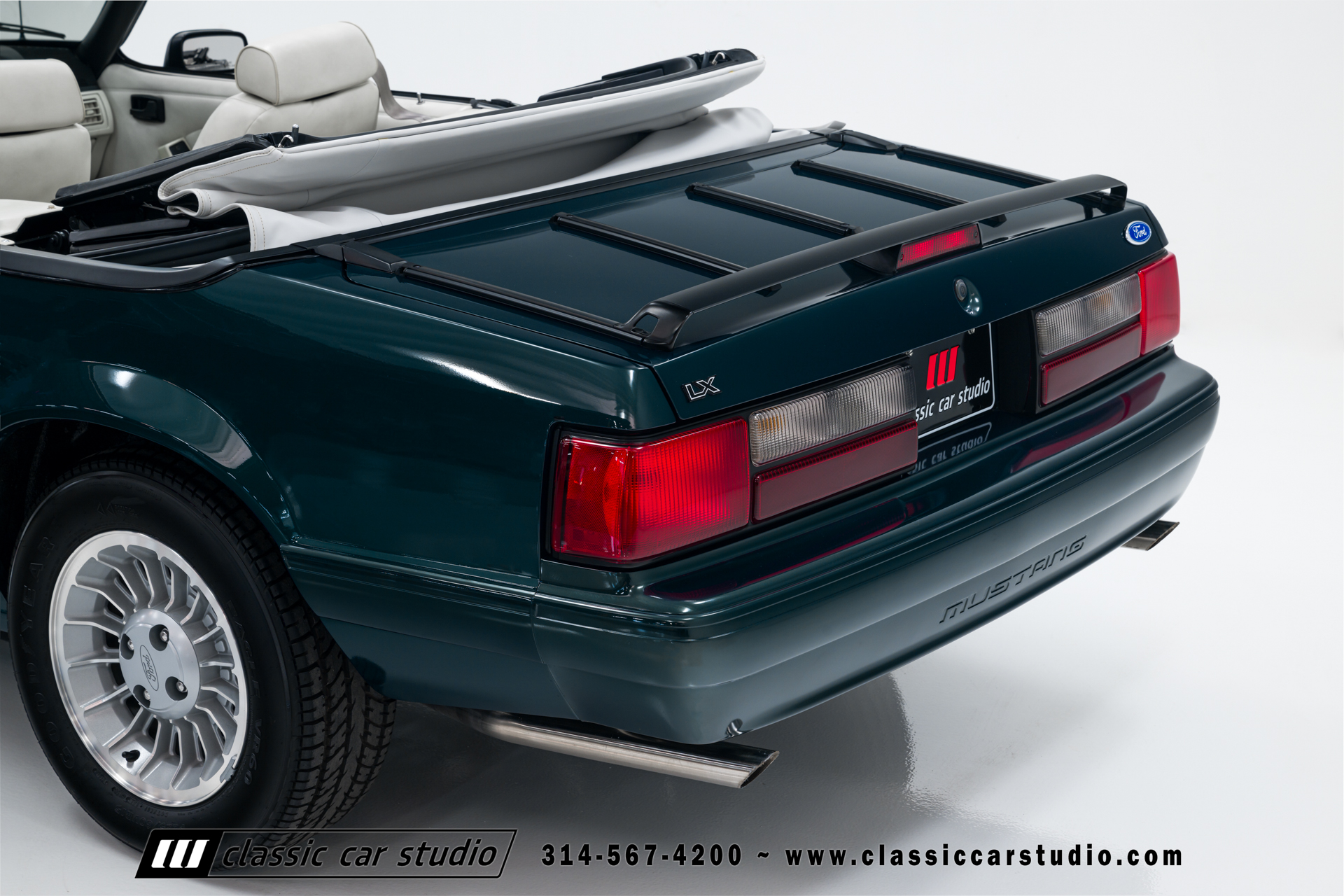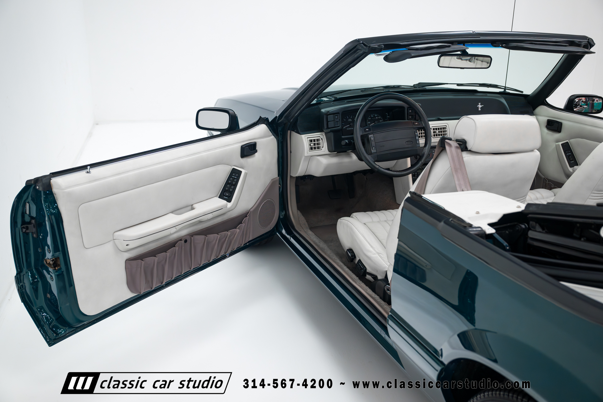 All of the 7-Up Mustangs were LX convertibles powered by the 255 HP, 5.0 V8. They were all finished in Deep Emerald Green with color keyed mirrors and moldings. They also came equipped with the GT’s 15” aluminum rims and a package that included cruise control, an upgraded sound system and AC.